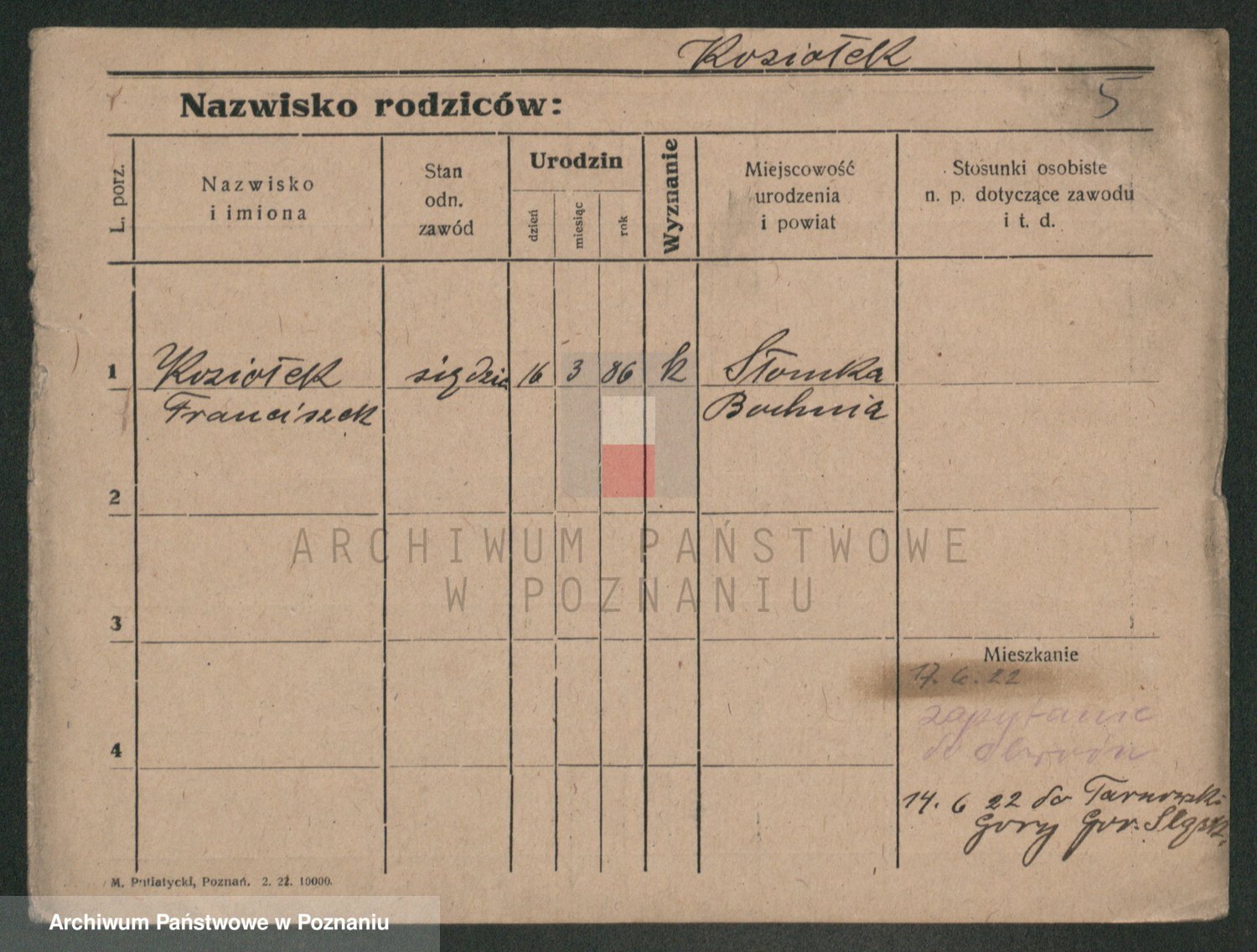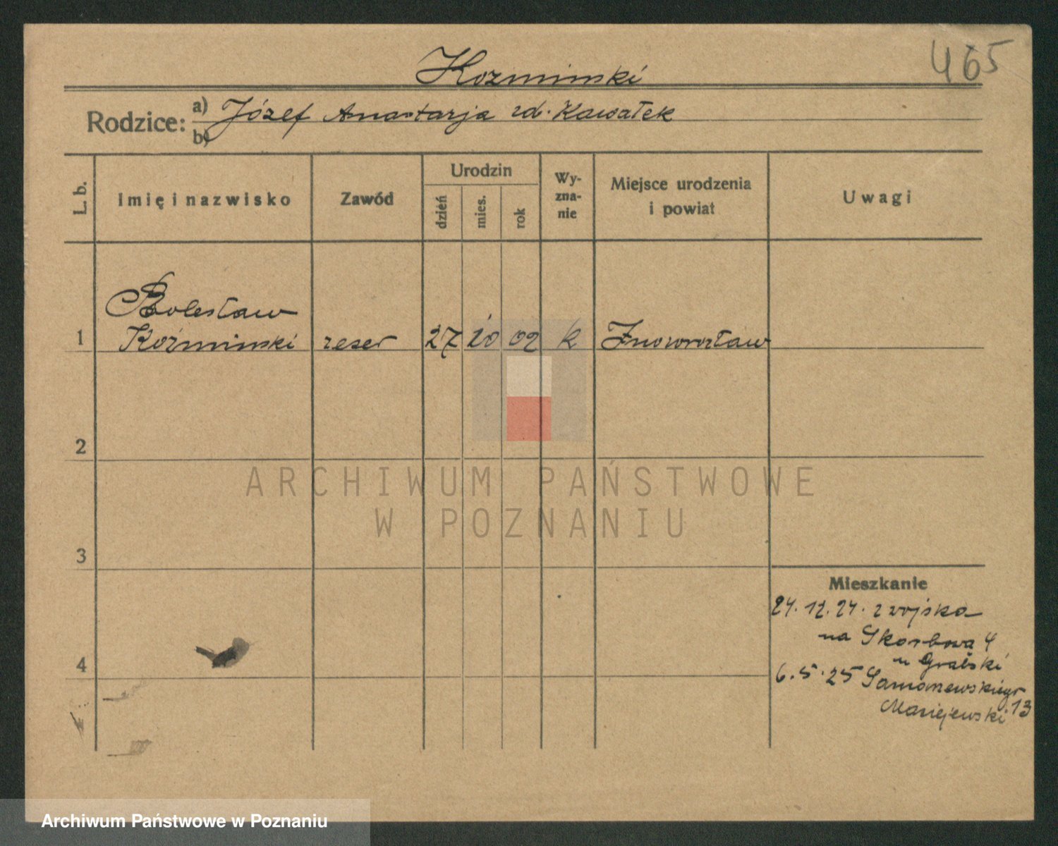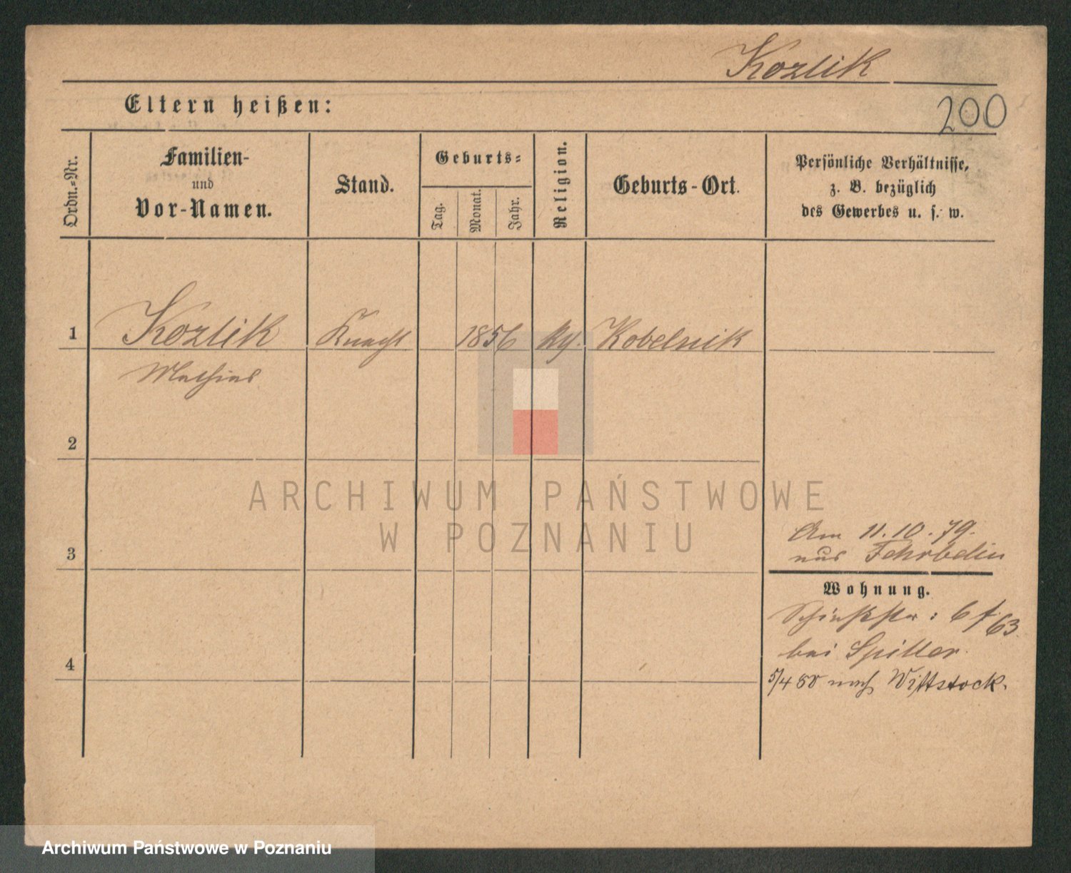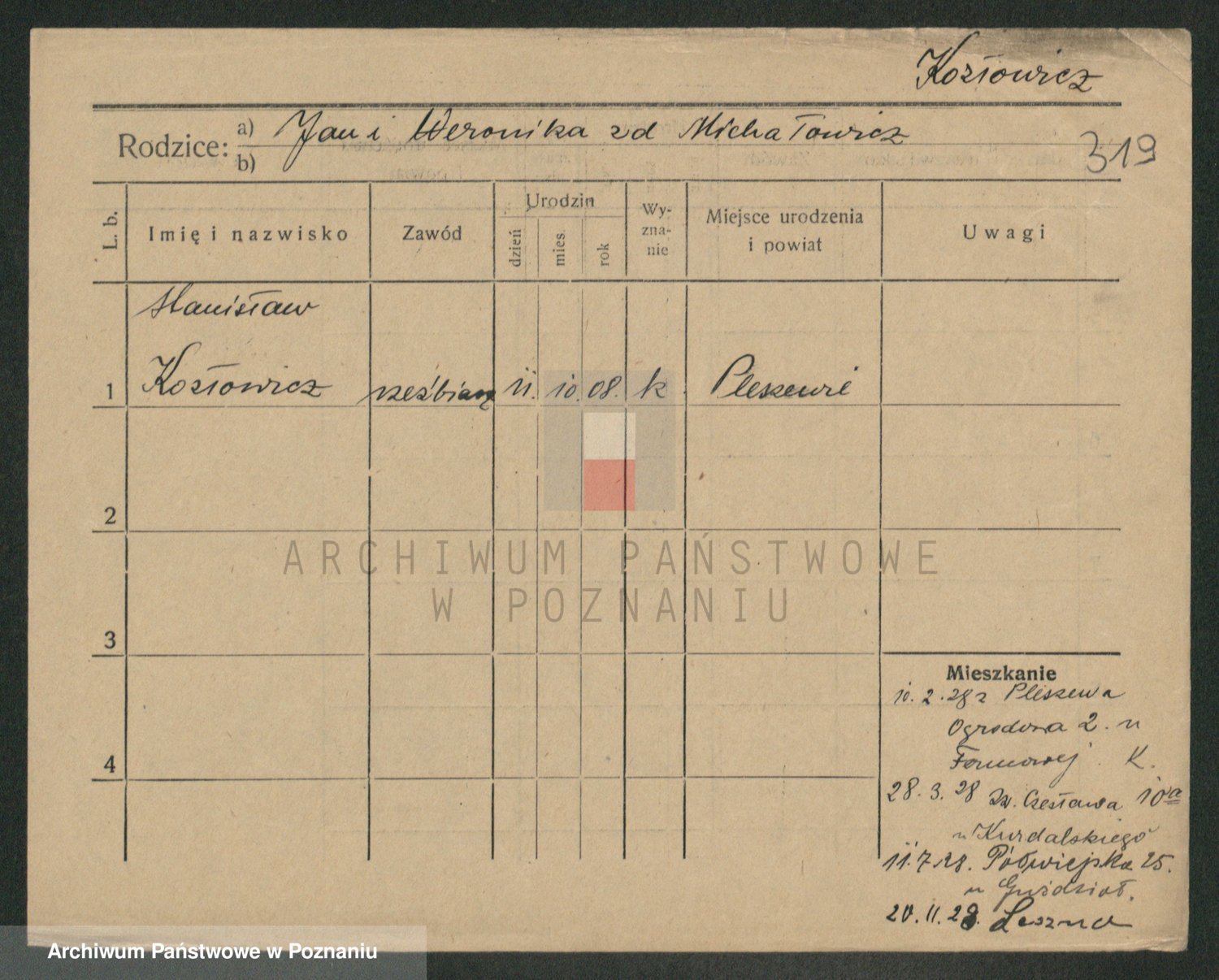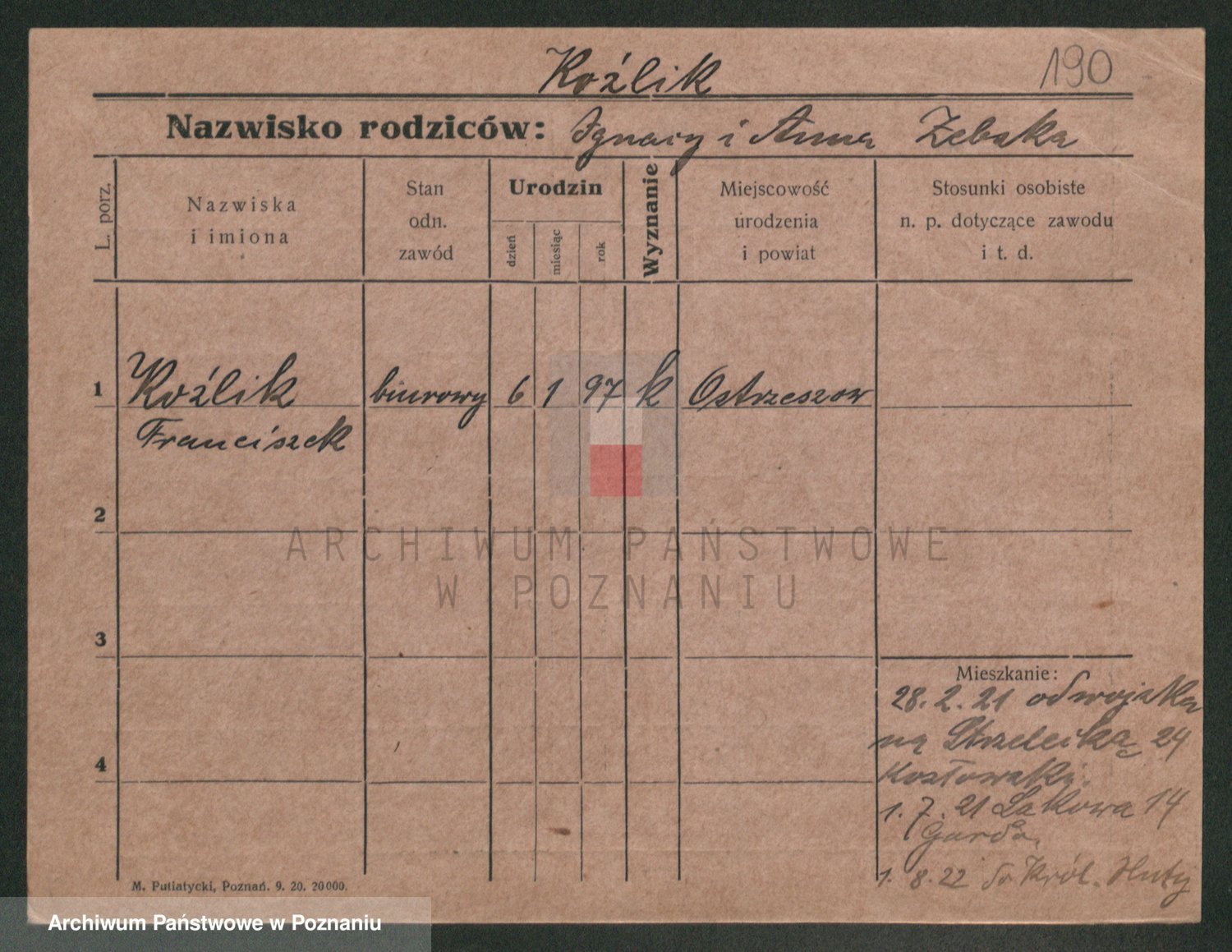 Podgląd karty osobowej dostępny jest po kliknięciu na nazwisko lub ikonkę karty. Można dokonywać powiększenia (ikony na górze) lub przechodzić między kolejnymi skanami (strzałki po bokach).