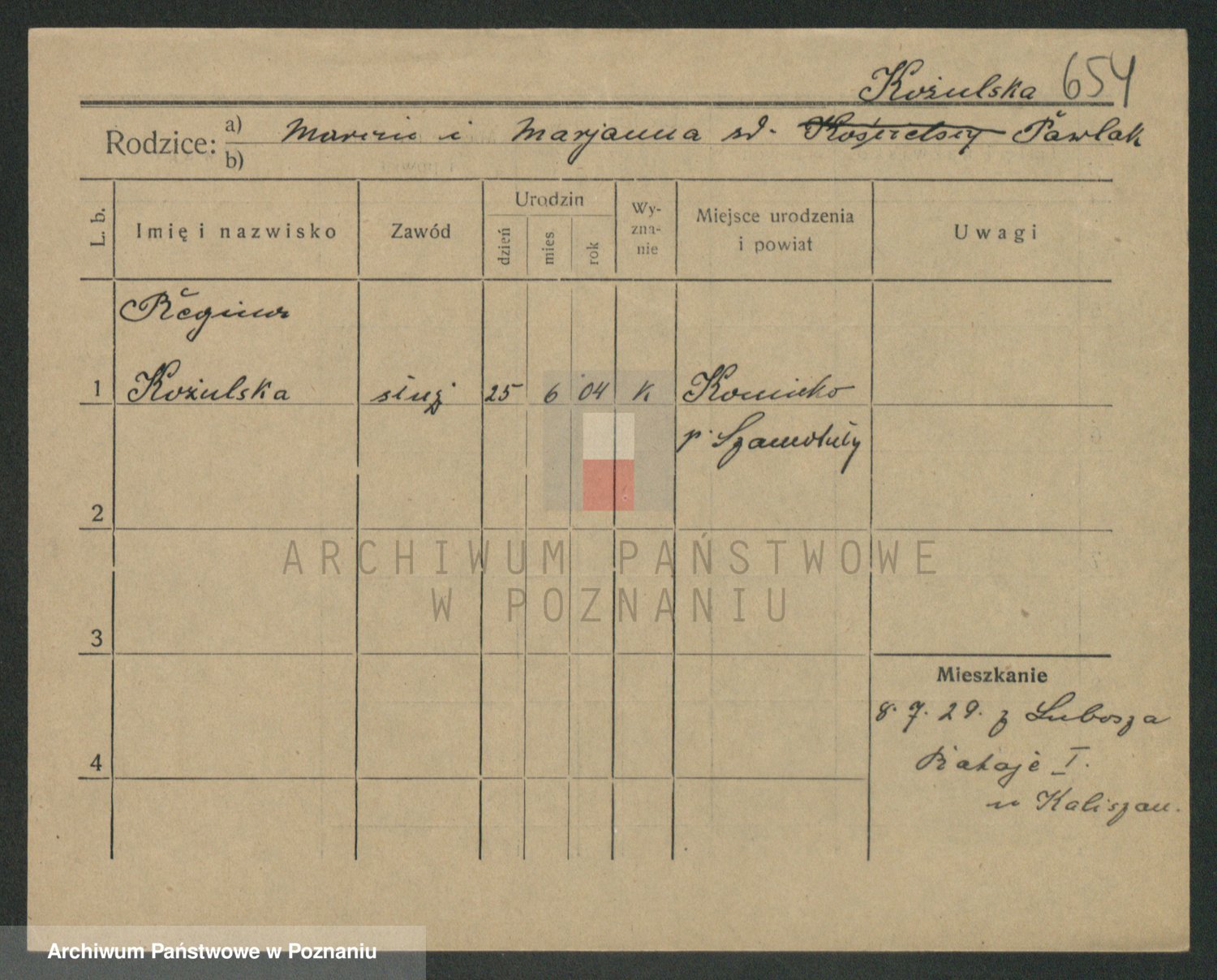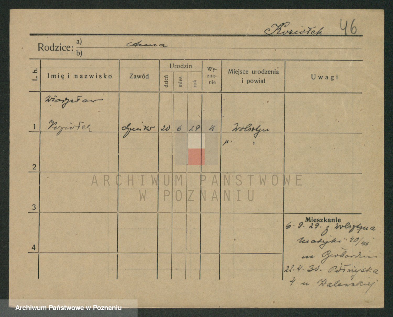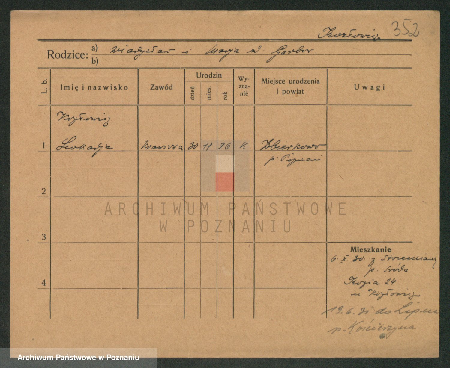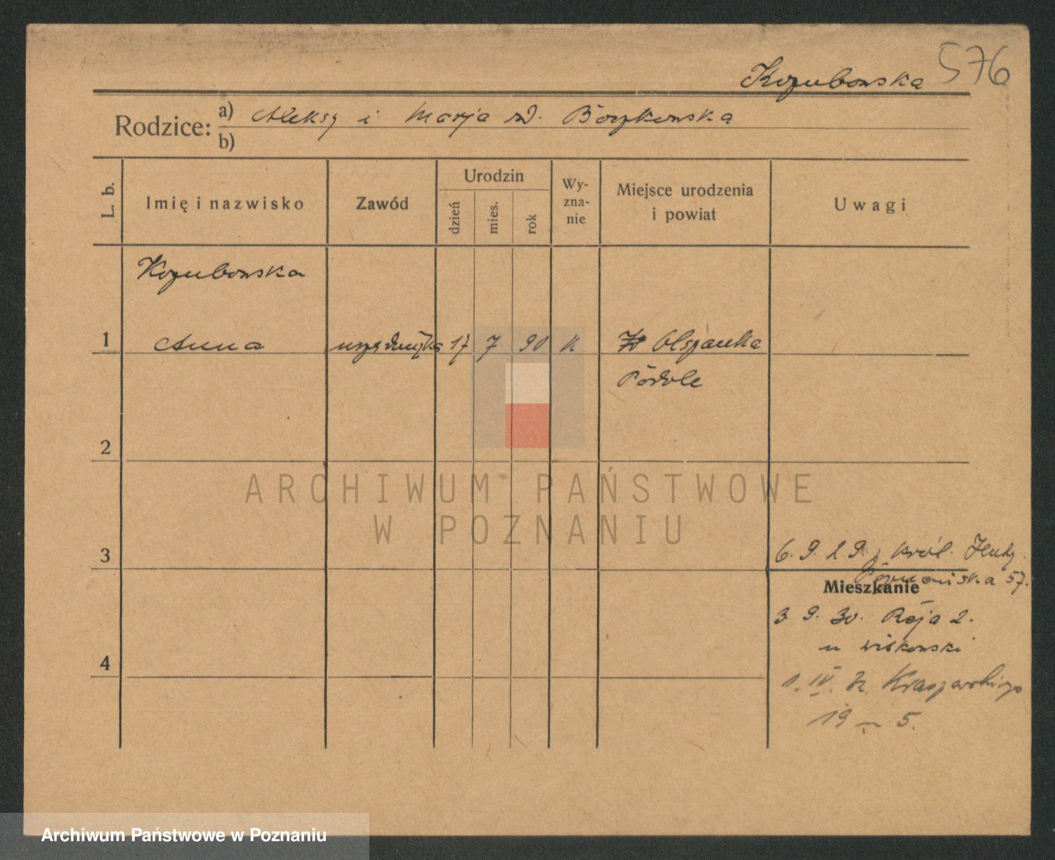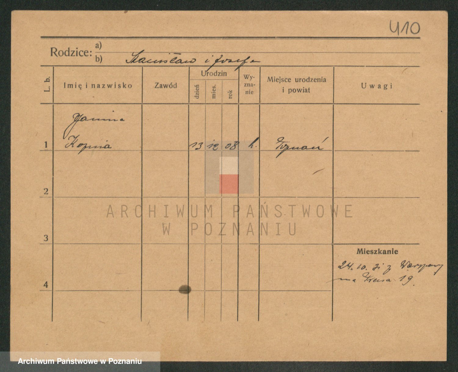 Podgląd karty osobowej dostępny jest po kliknięciu na nazwisko lub ikonkę karty. Można dokonywać powiększenia (ikony na górze) lub przechodzić między kolejnymi skanami (strzałki po bokach).