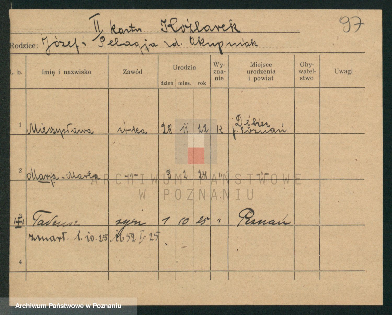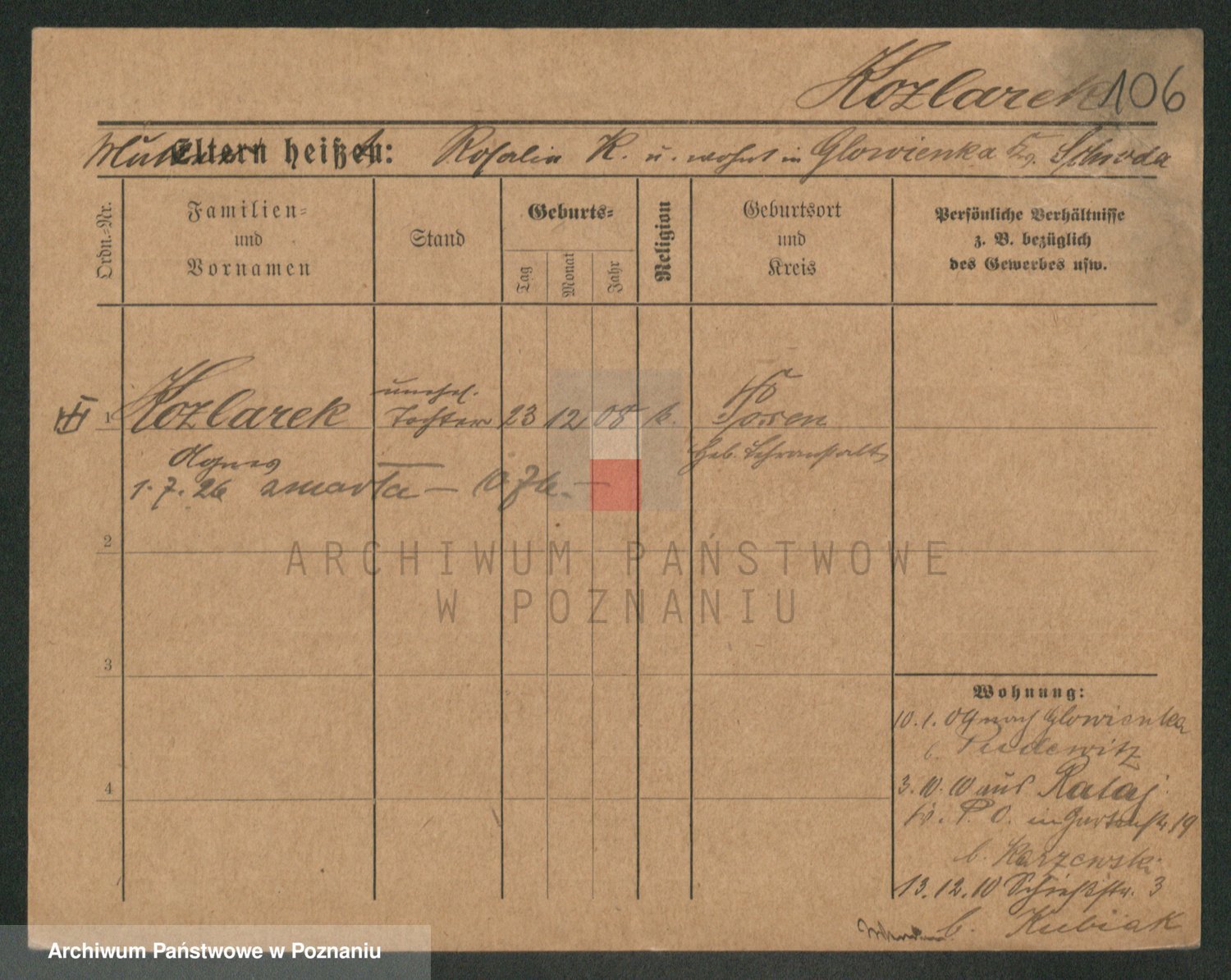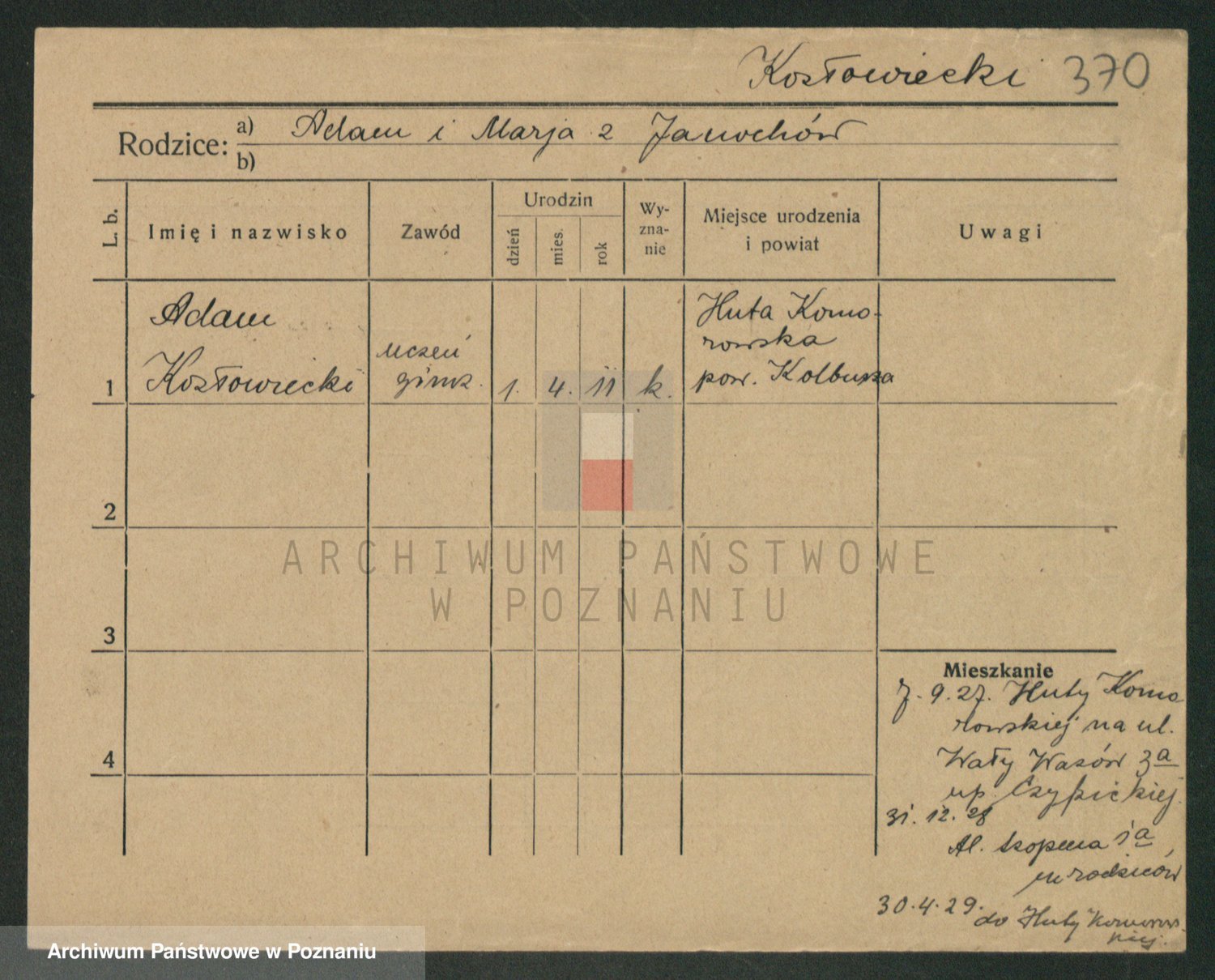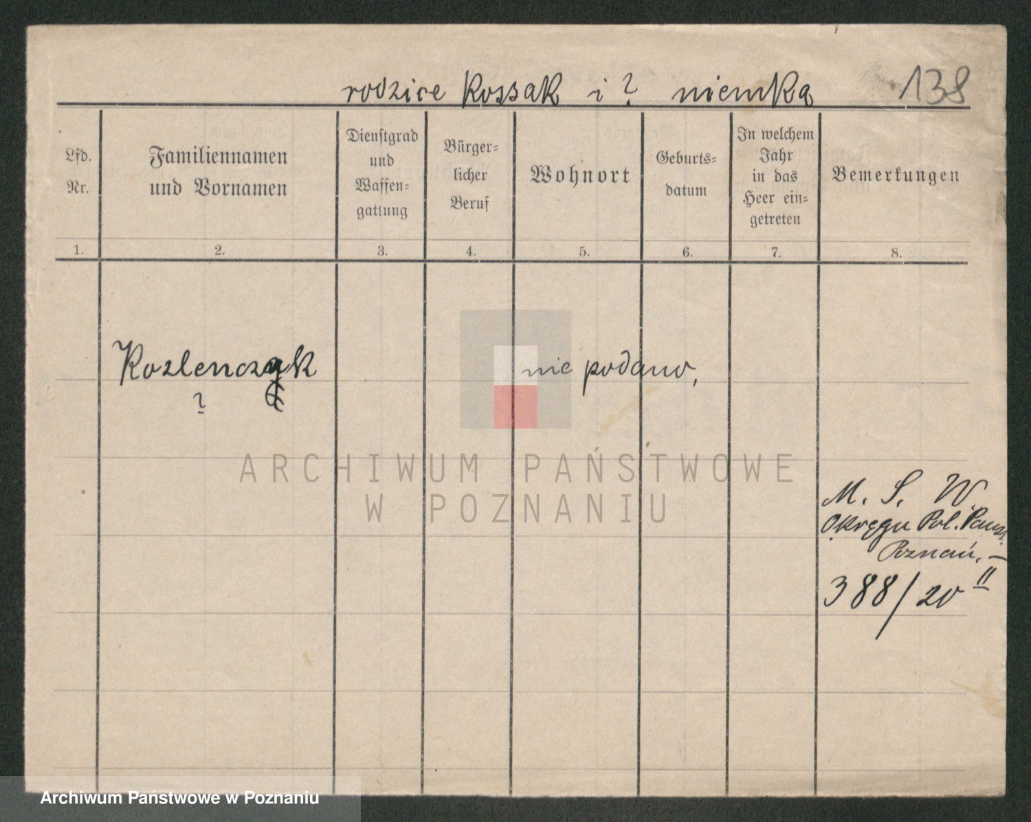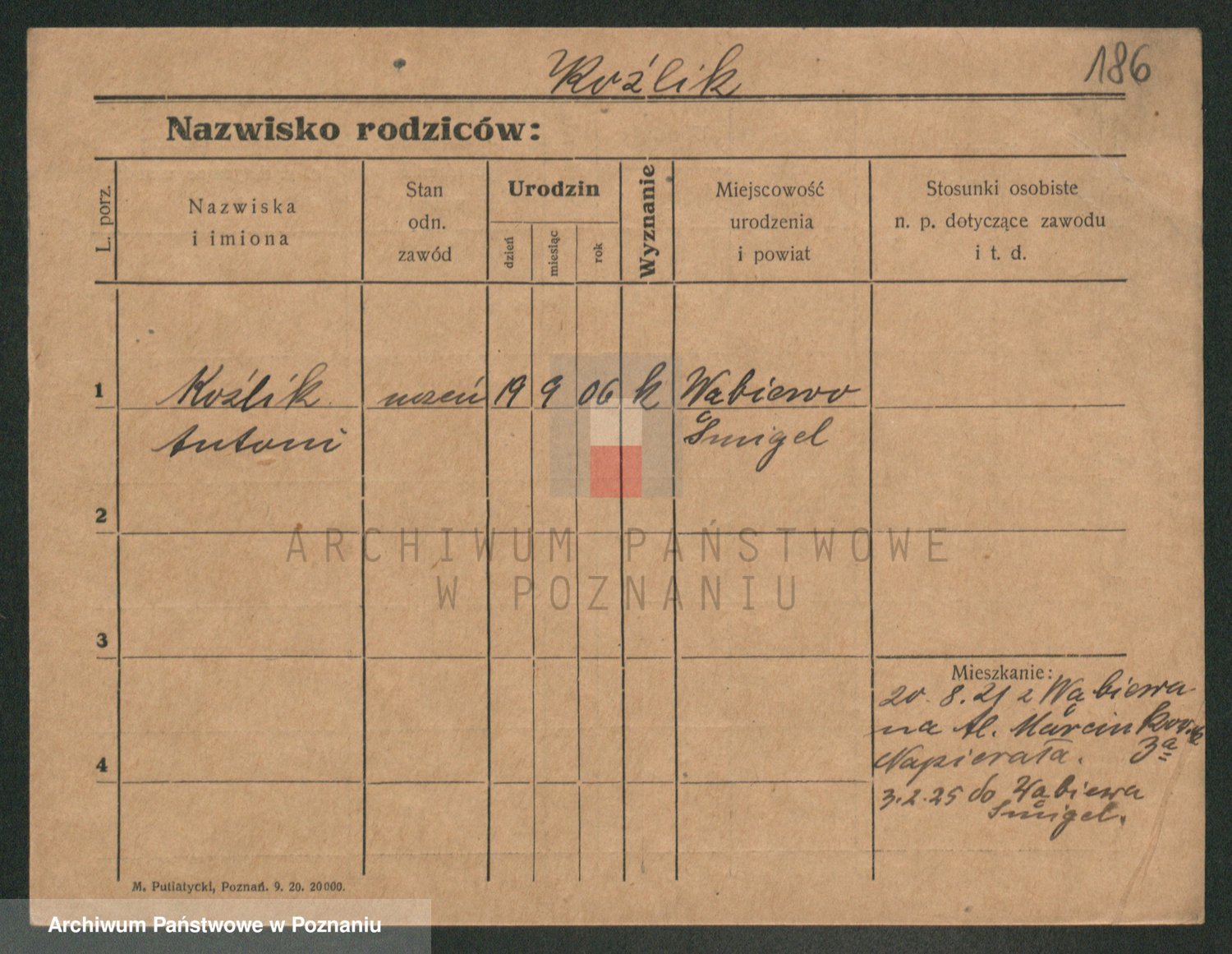 Podgląd karty osobowej dostępny jest po kliknięciu na nazwisko lub ikonkę karty. Można dokonywać powiększenia (ikony na górze) lub przechodzić między kolejnymi skanami (strzałki po bokach).