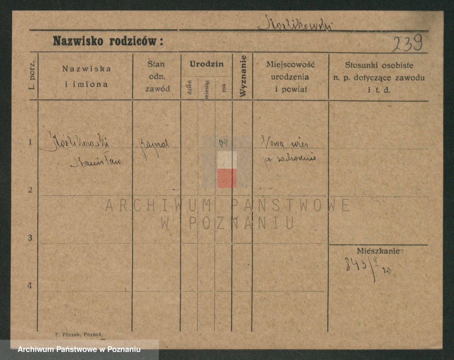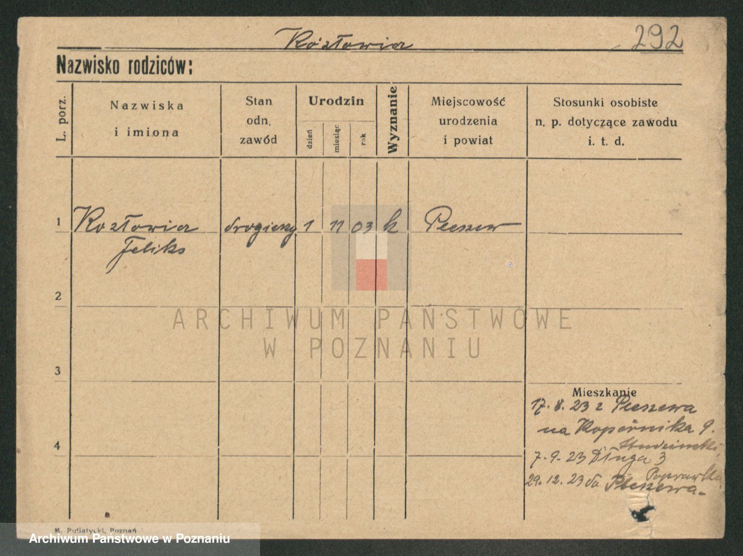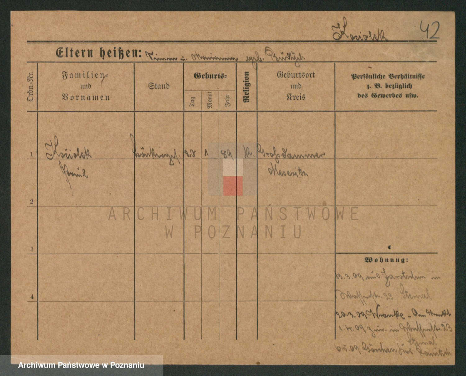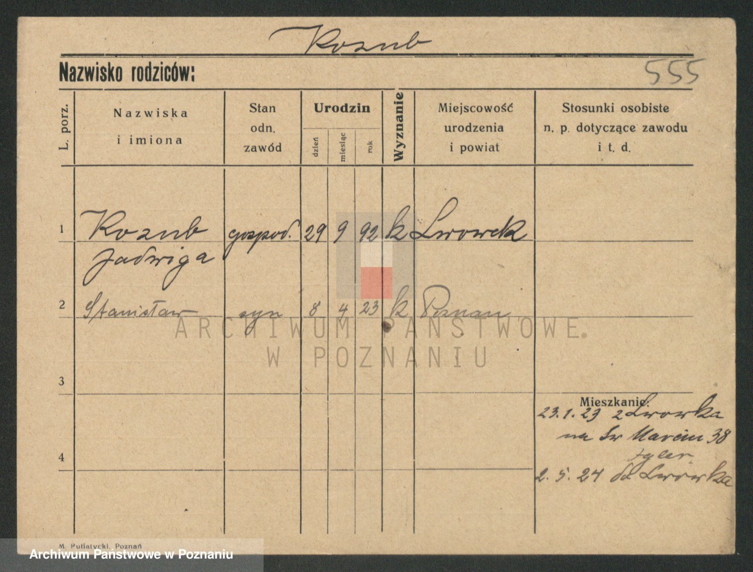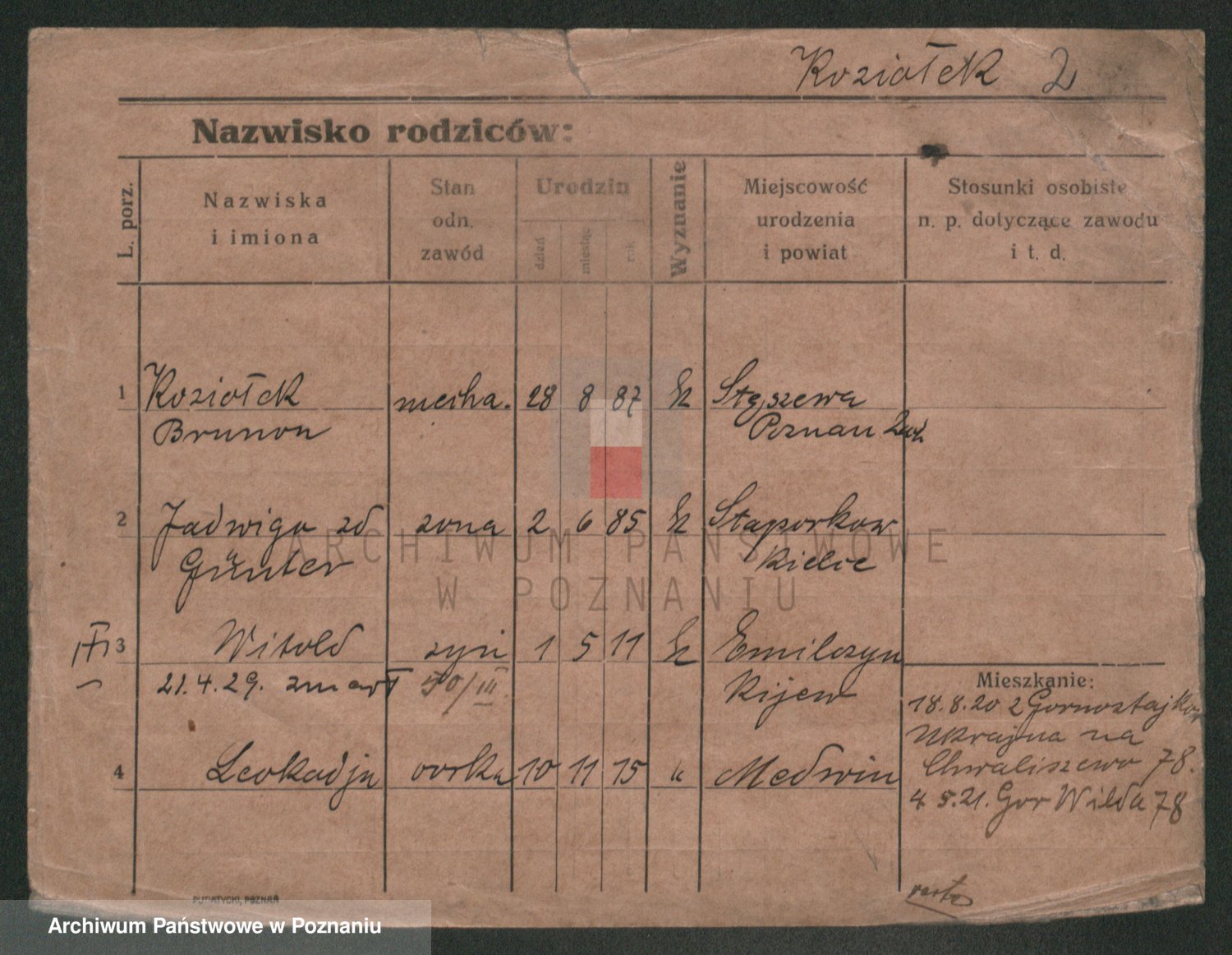 Podgląd karty osobowej dostępny jest po kliknięciu na nazwisko lub ikonkę karty. Można dokonywać powiększenia (ikony na górze) lub przechodzić między kolejnymi skanami (strzałki po bokach).