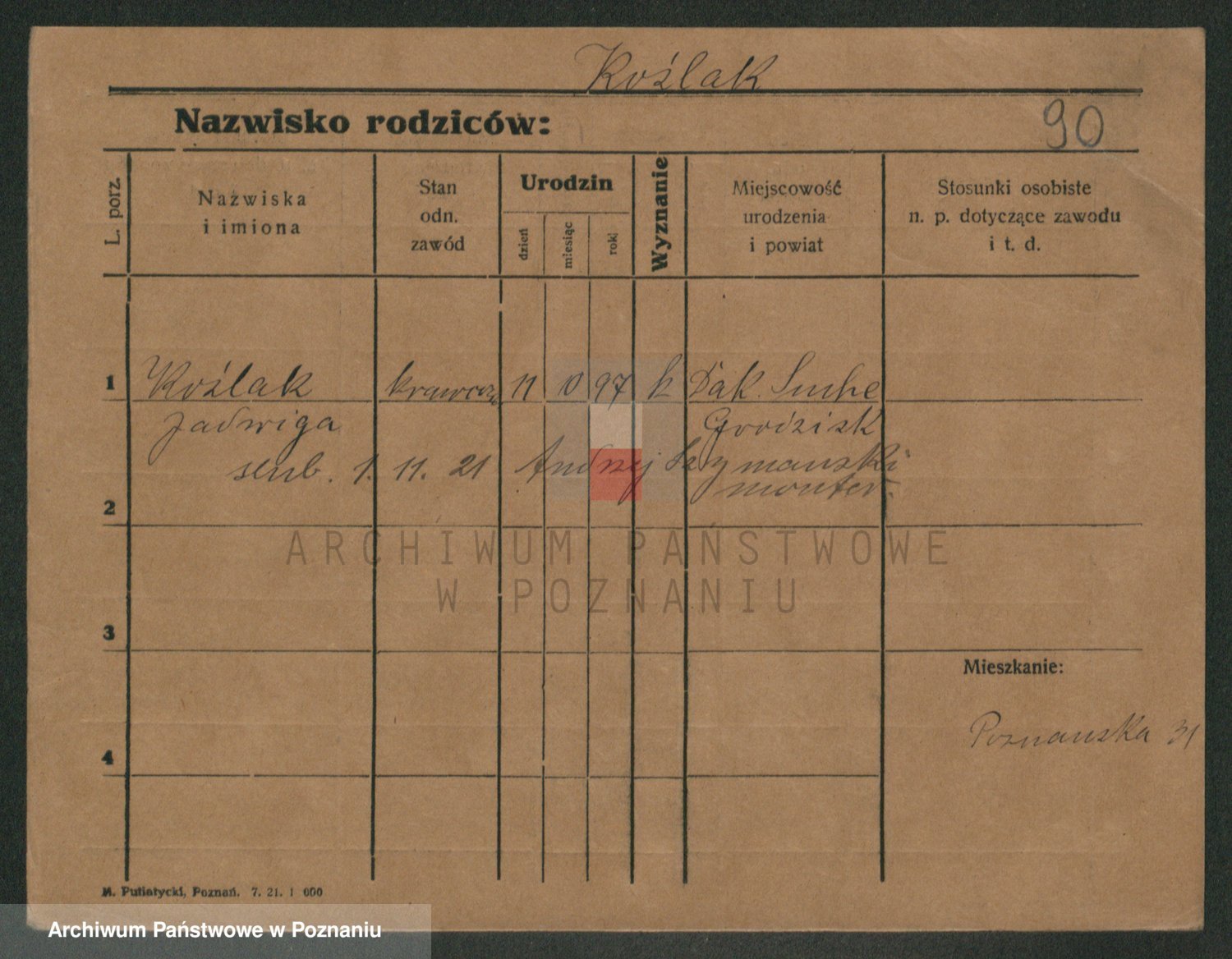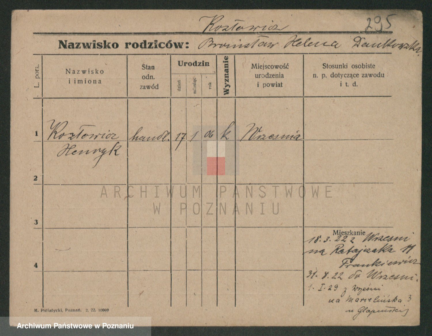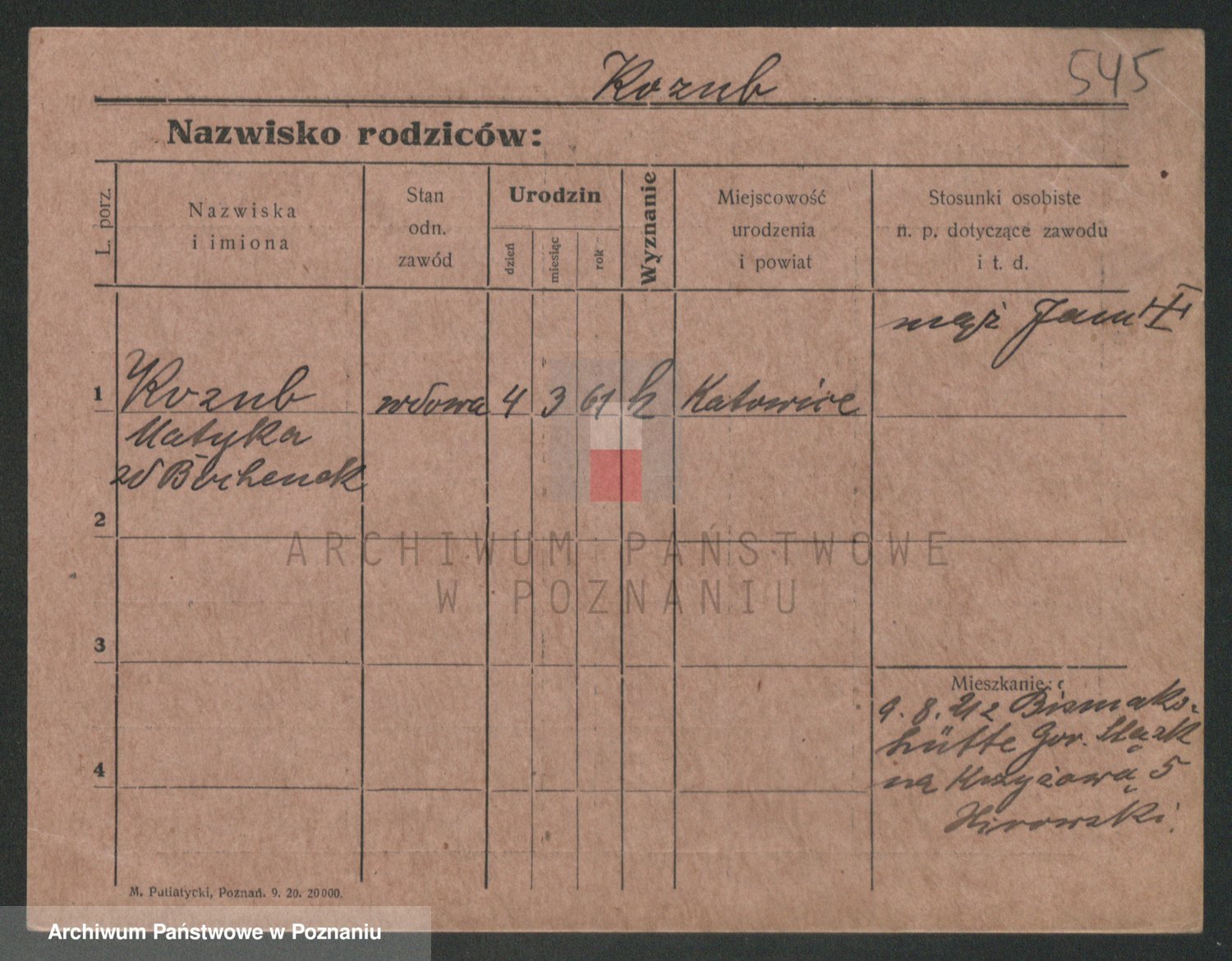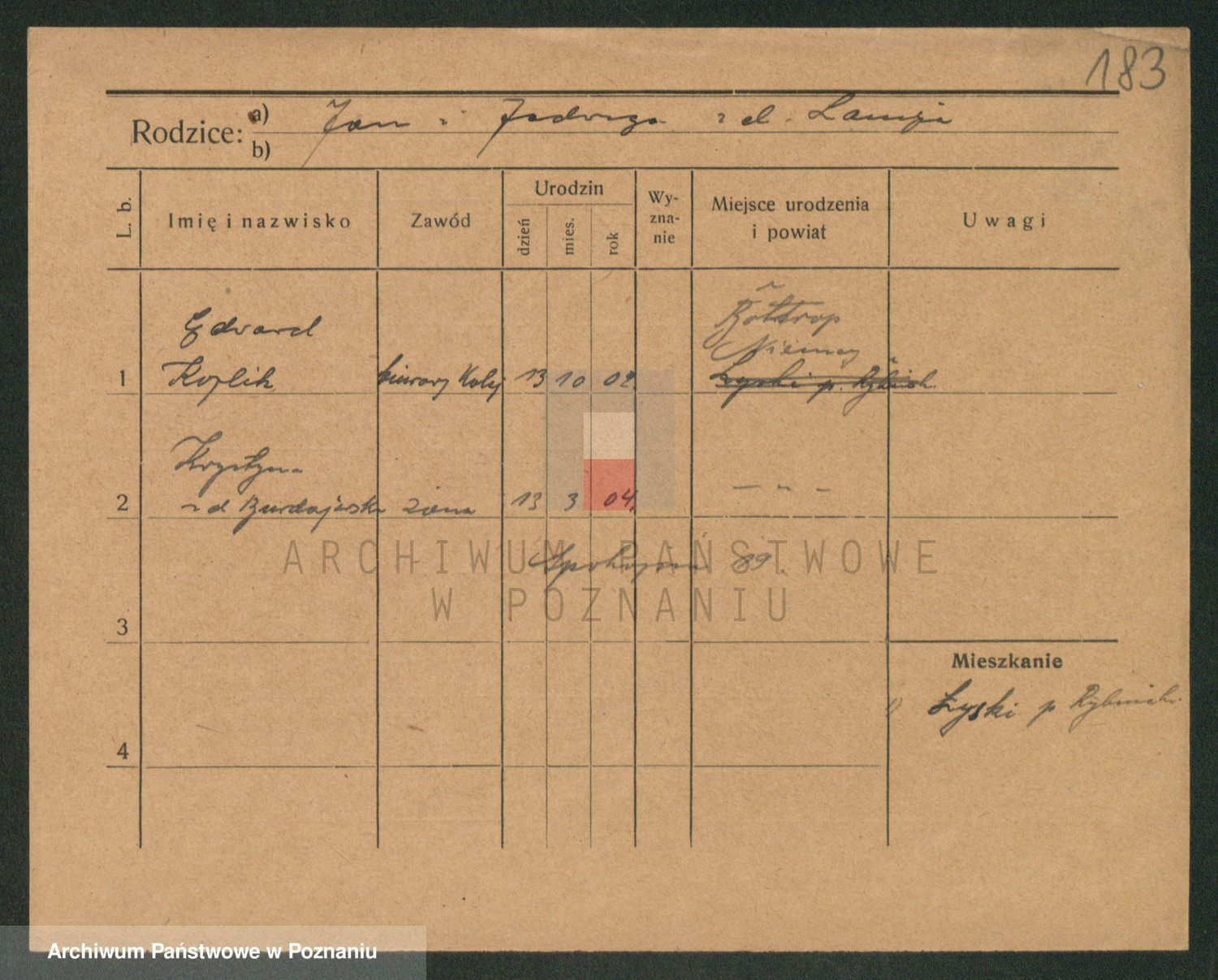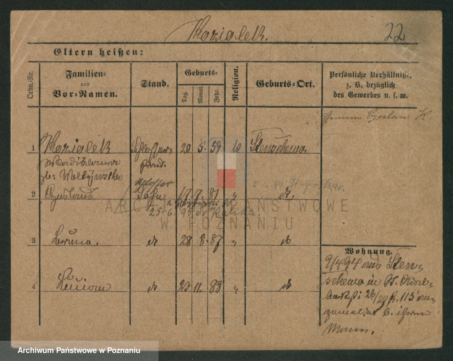 Podgląd karty osobowej dostępny jest po kliknięciu na nazwisko lub ikonkę karty. Można dokonywać powiększenia (ikony na górze) lub przechodzić między kolejnymi skanami (strzałki po bokach).