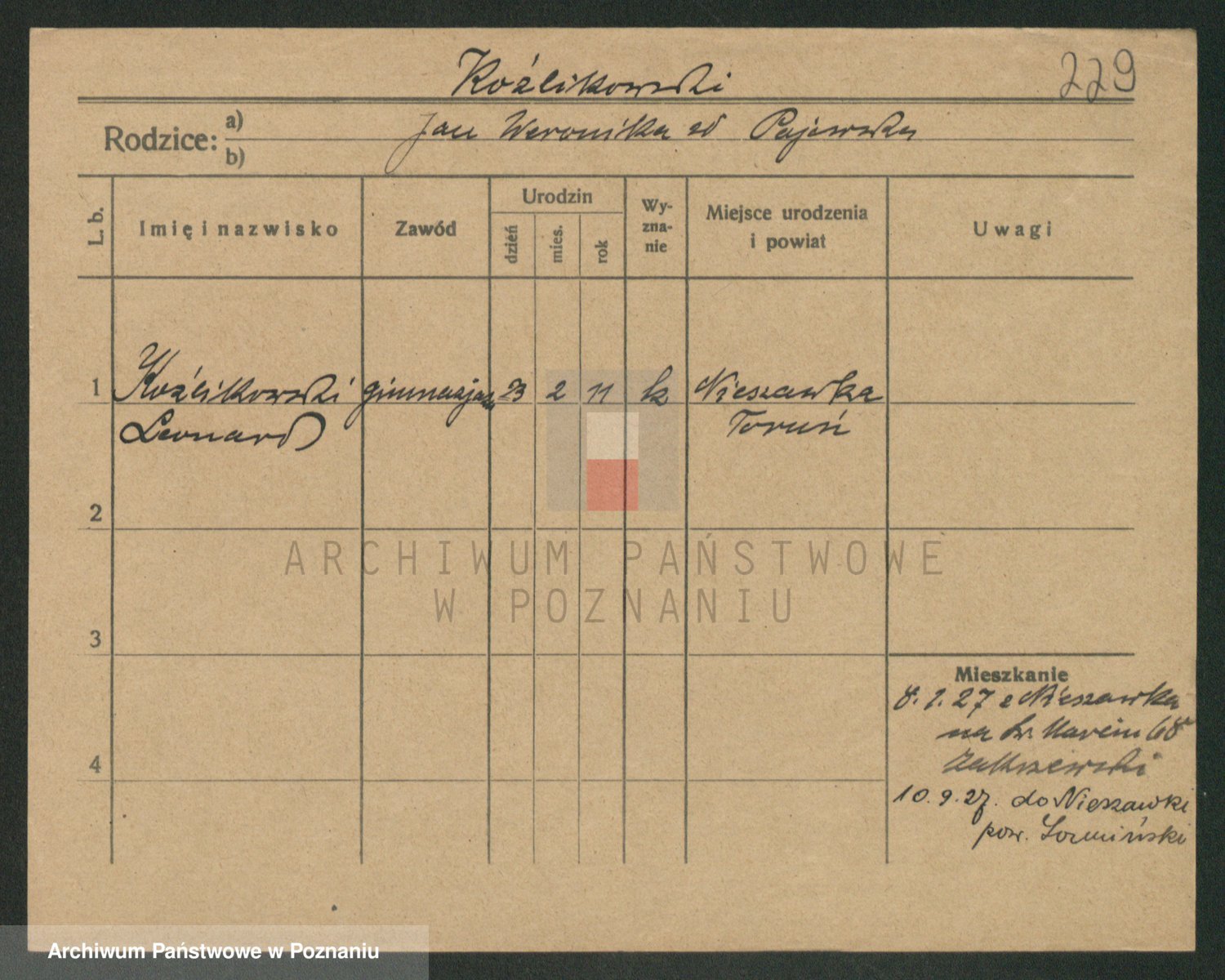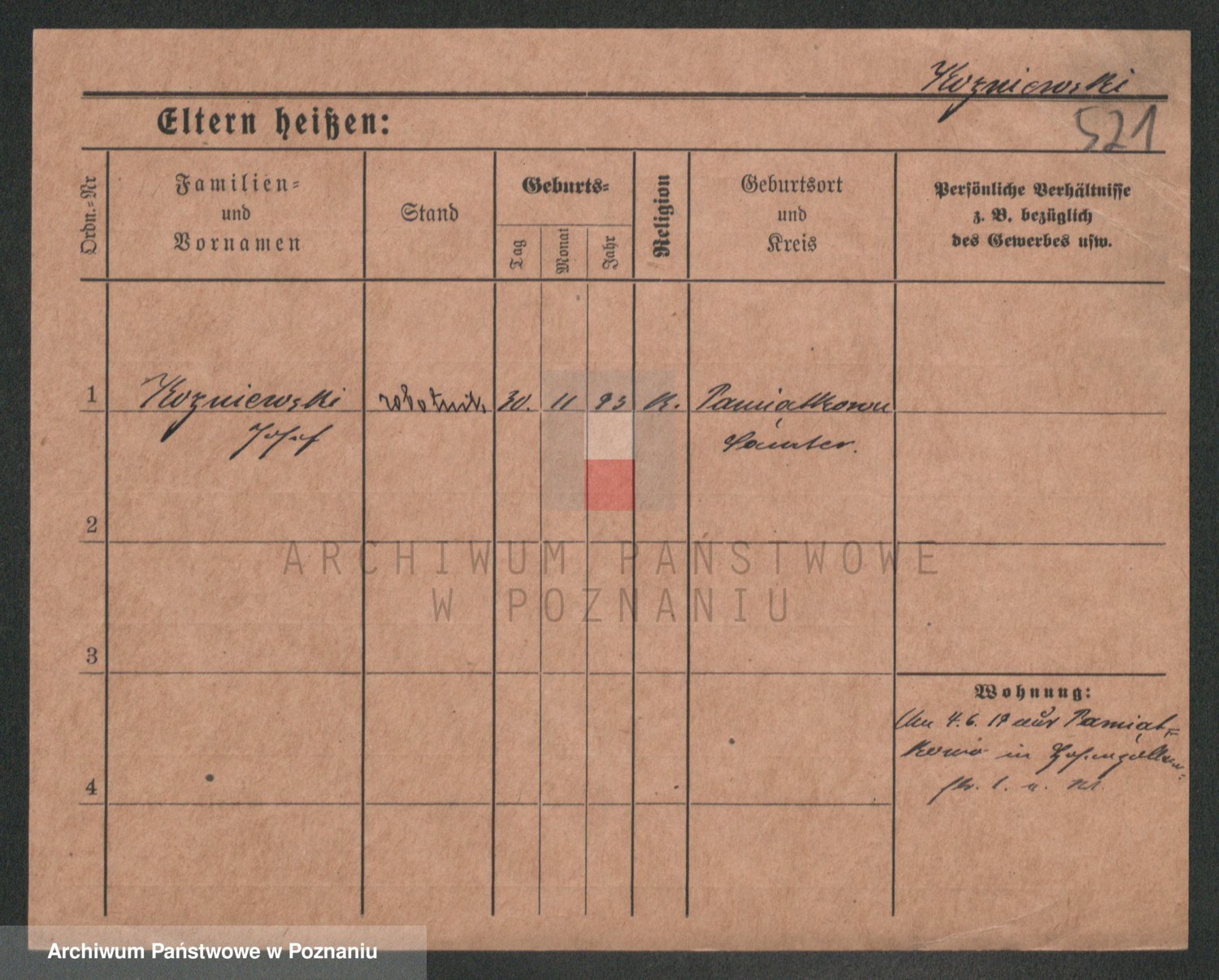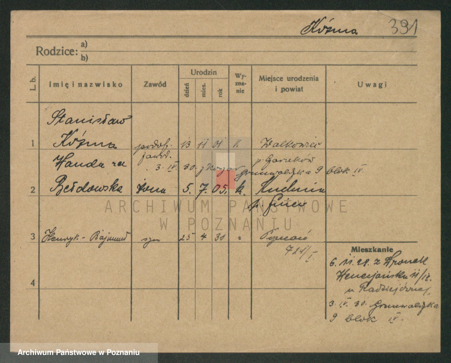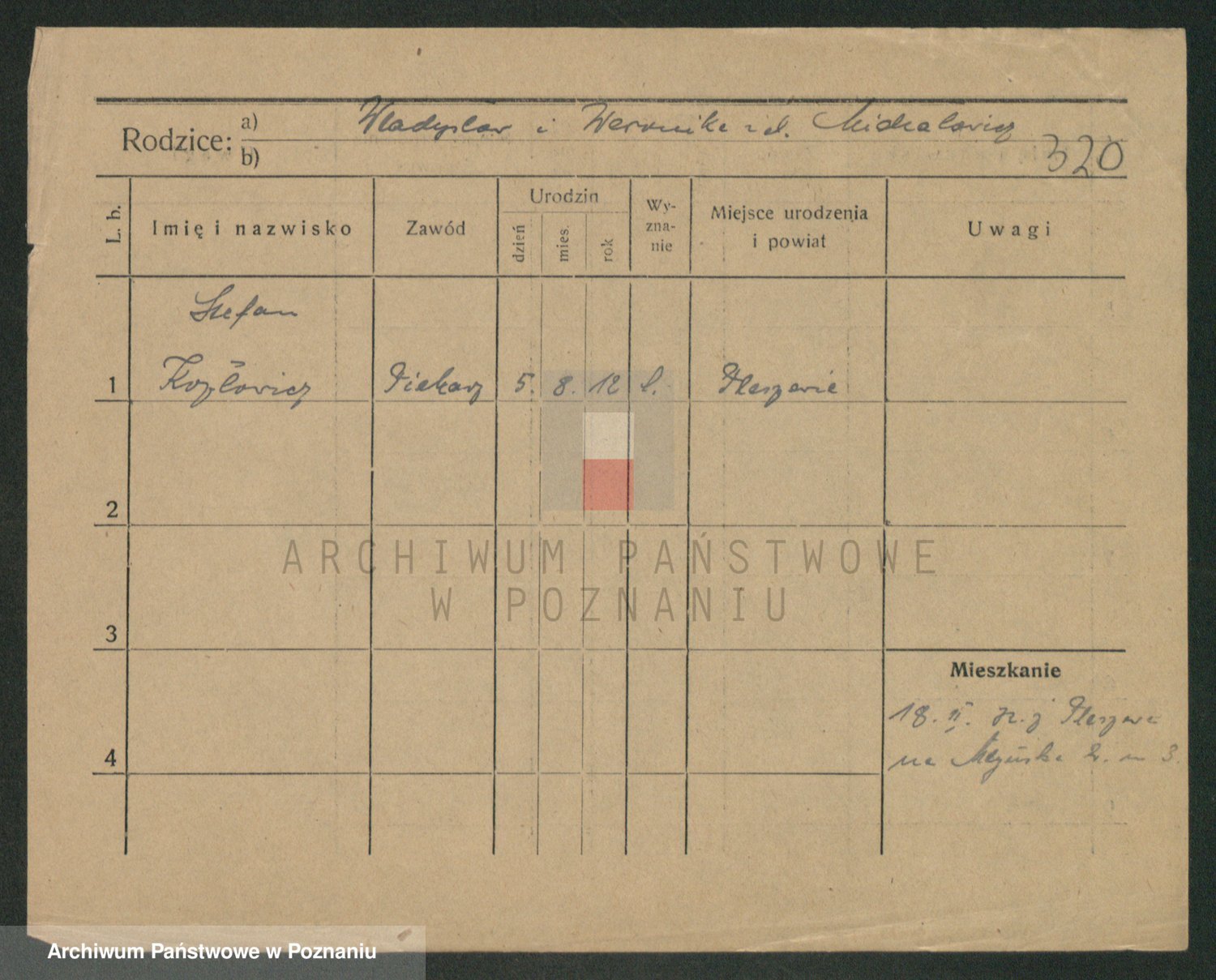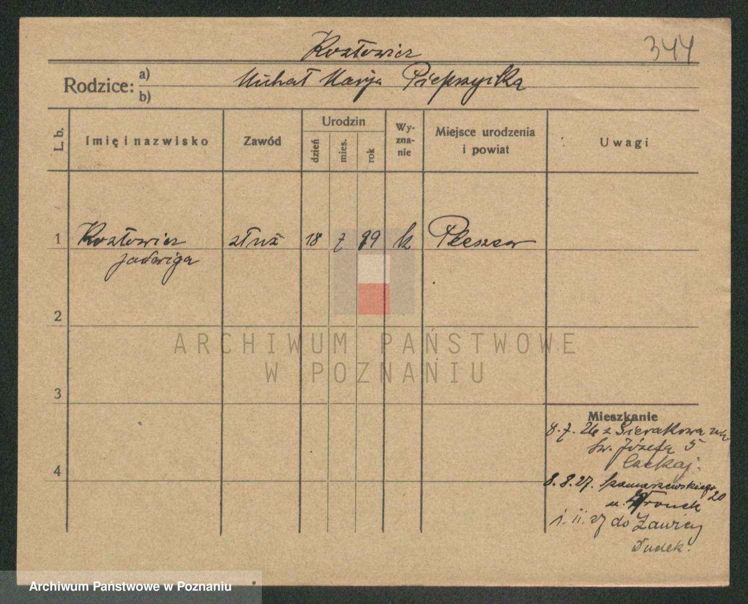 Podgląd karty osobowej dostępny jest po kliknięciu na nazwisko lub ikonkę karty. Można dokonywać powiększenia (ikony na górze) lub przechodzić między kolejnymi skanami (strzałki po bokach).
