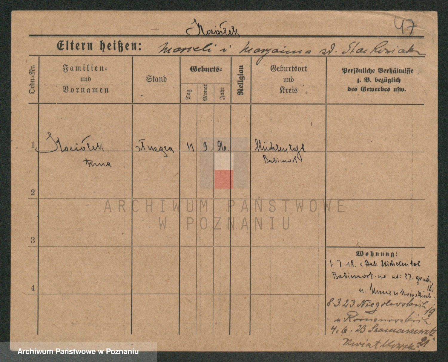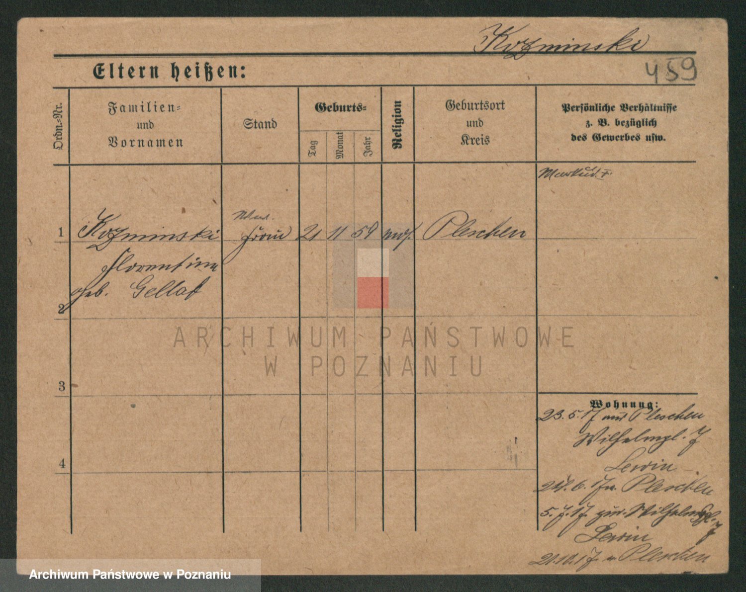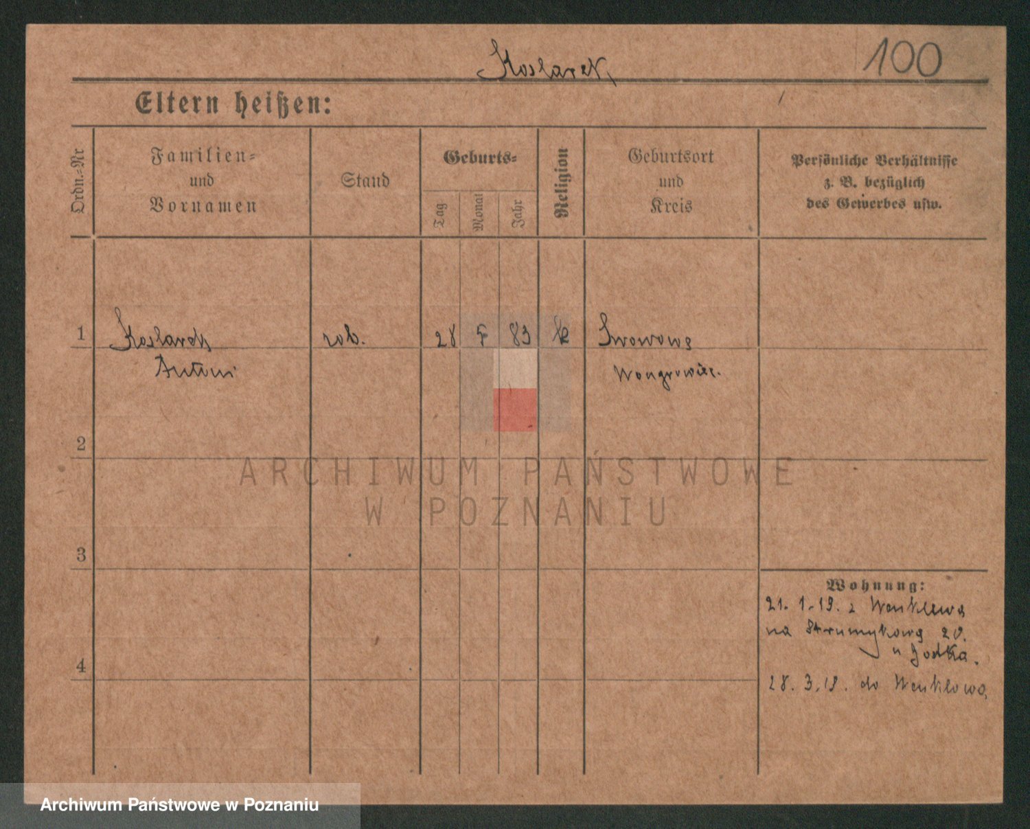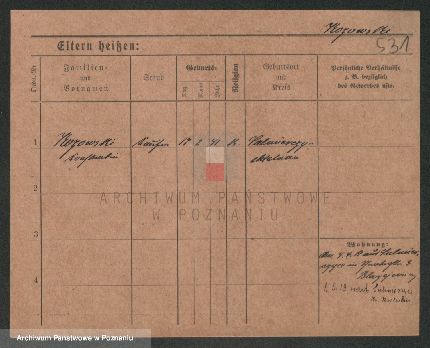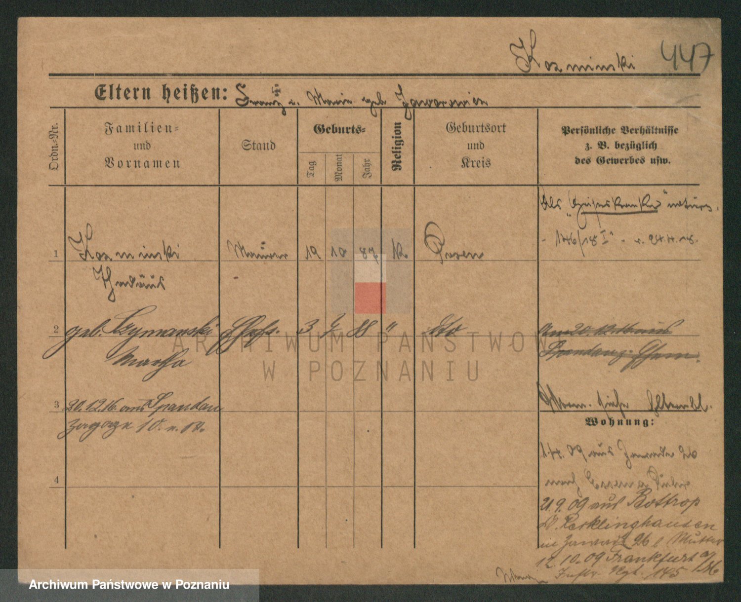 Podgląd karty osobowej dostępny jest po kliknięciu na nazwisko lub ikonkę karty. Można dokonywać powiększenia (ikony na górze) lub przechodzić między kolejnymi skanami (strzałki po bokach).
