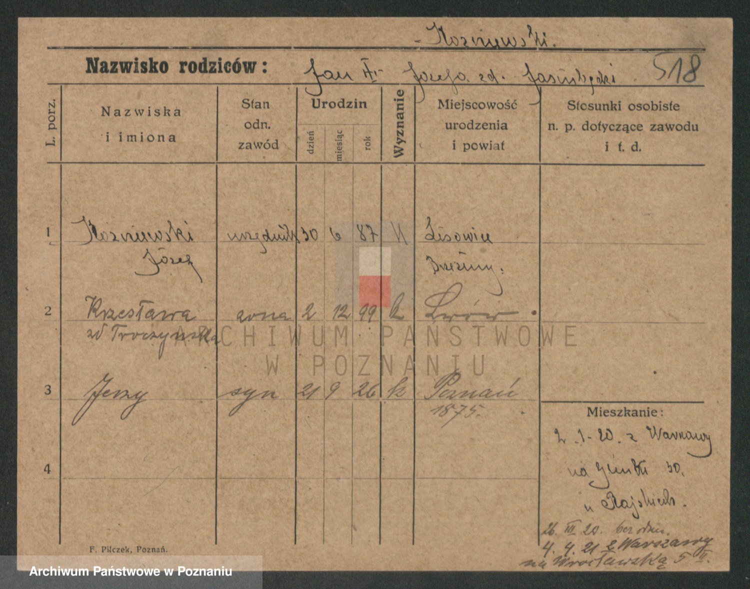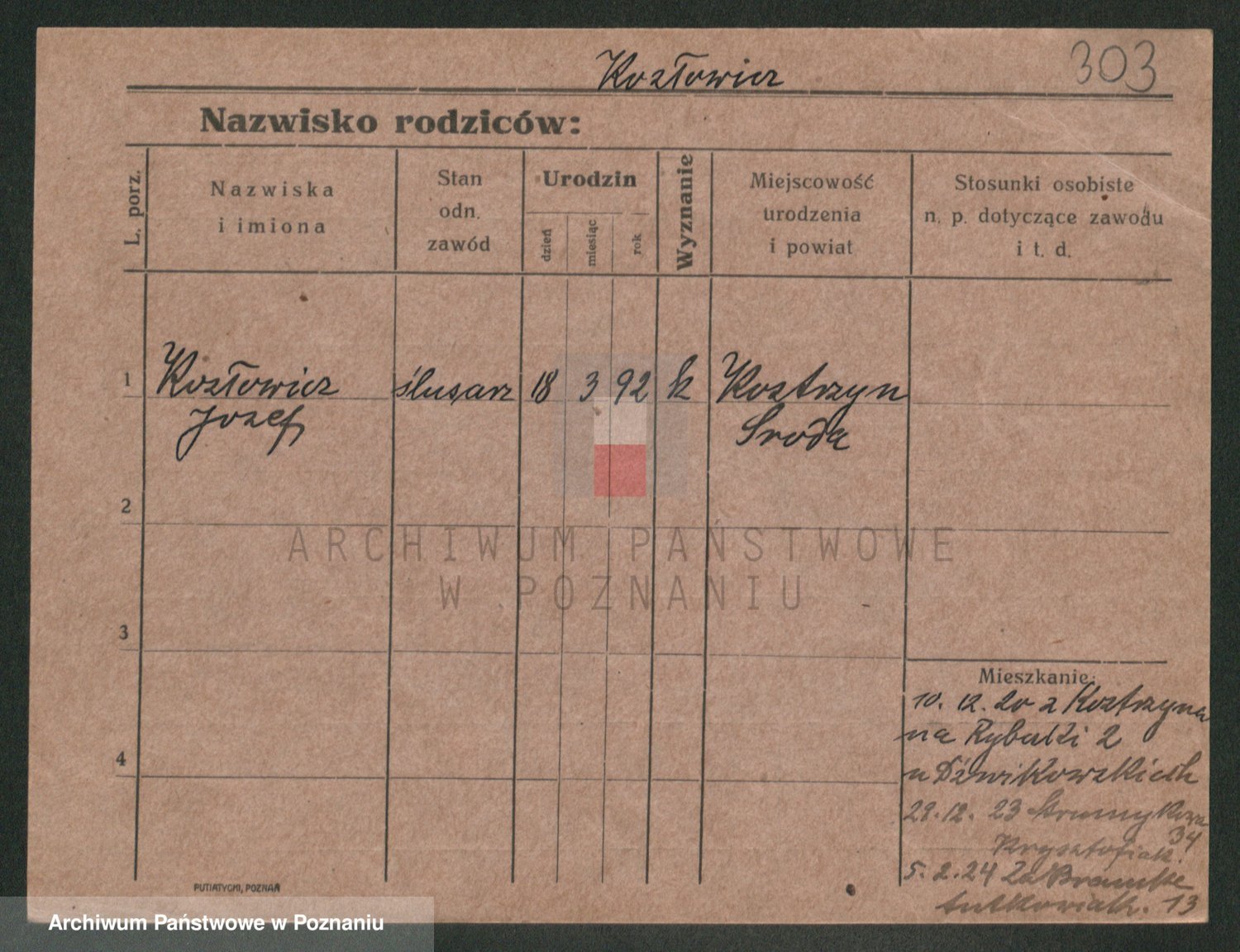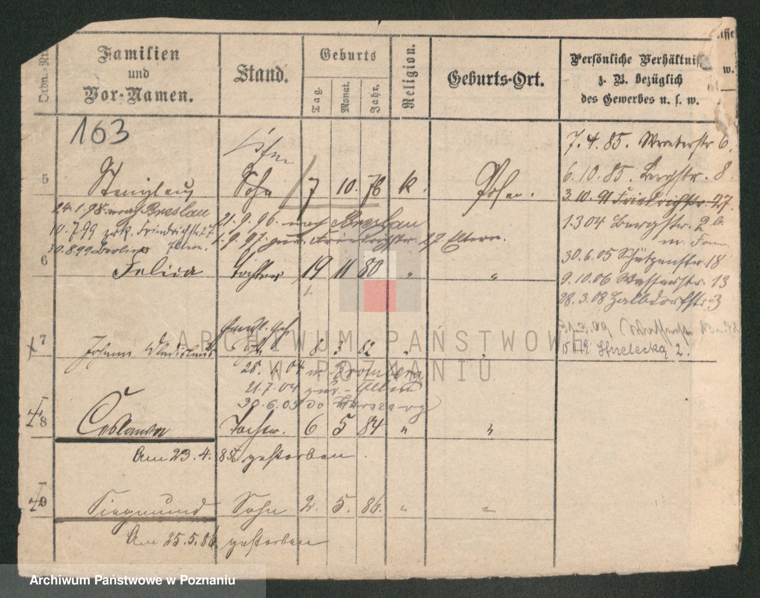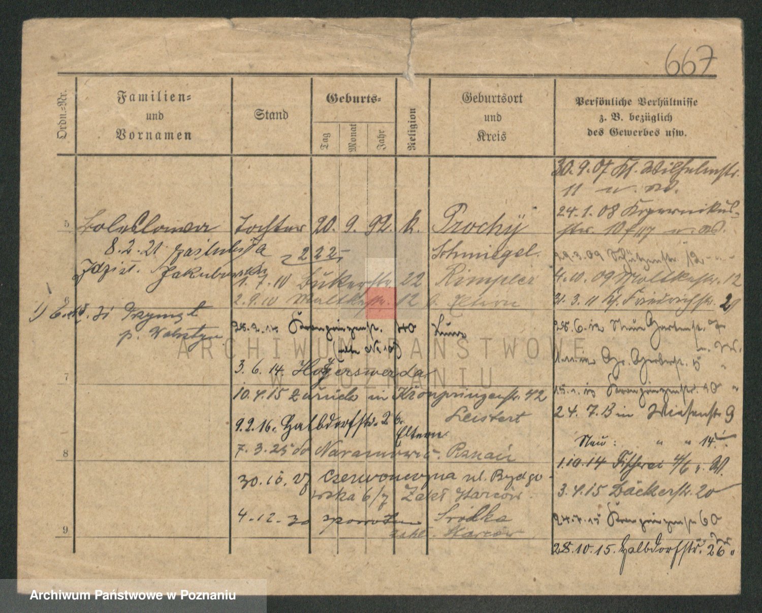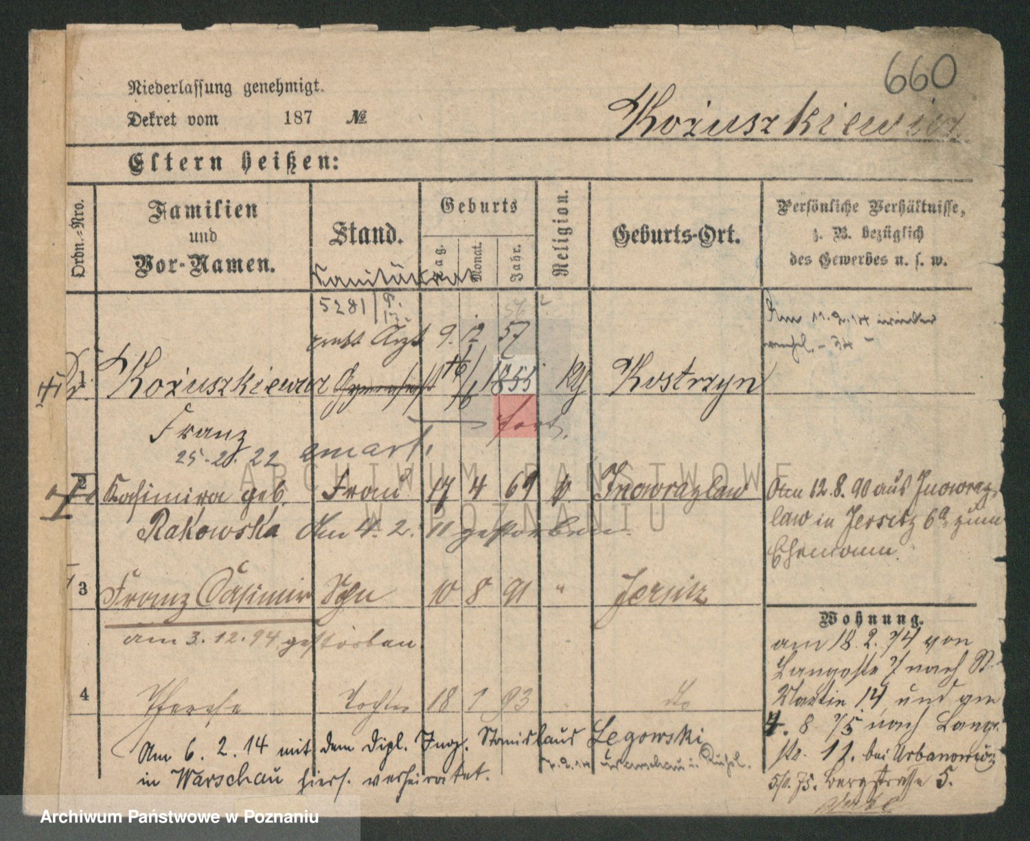Podgląd karty osobowej dostępny jest po kliknięciu na nazwisko lub ikonkę karty. Można dokonywać powiększenia (ikony na górze) lub przechodzić między kolejnymi skanami (strzałki po bokach).