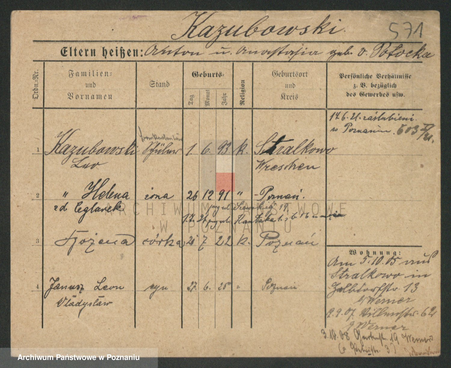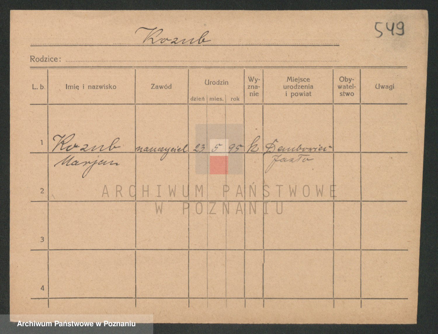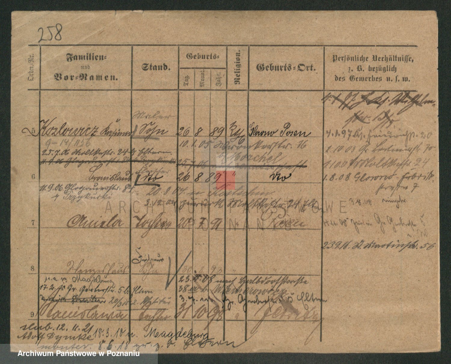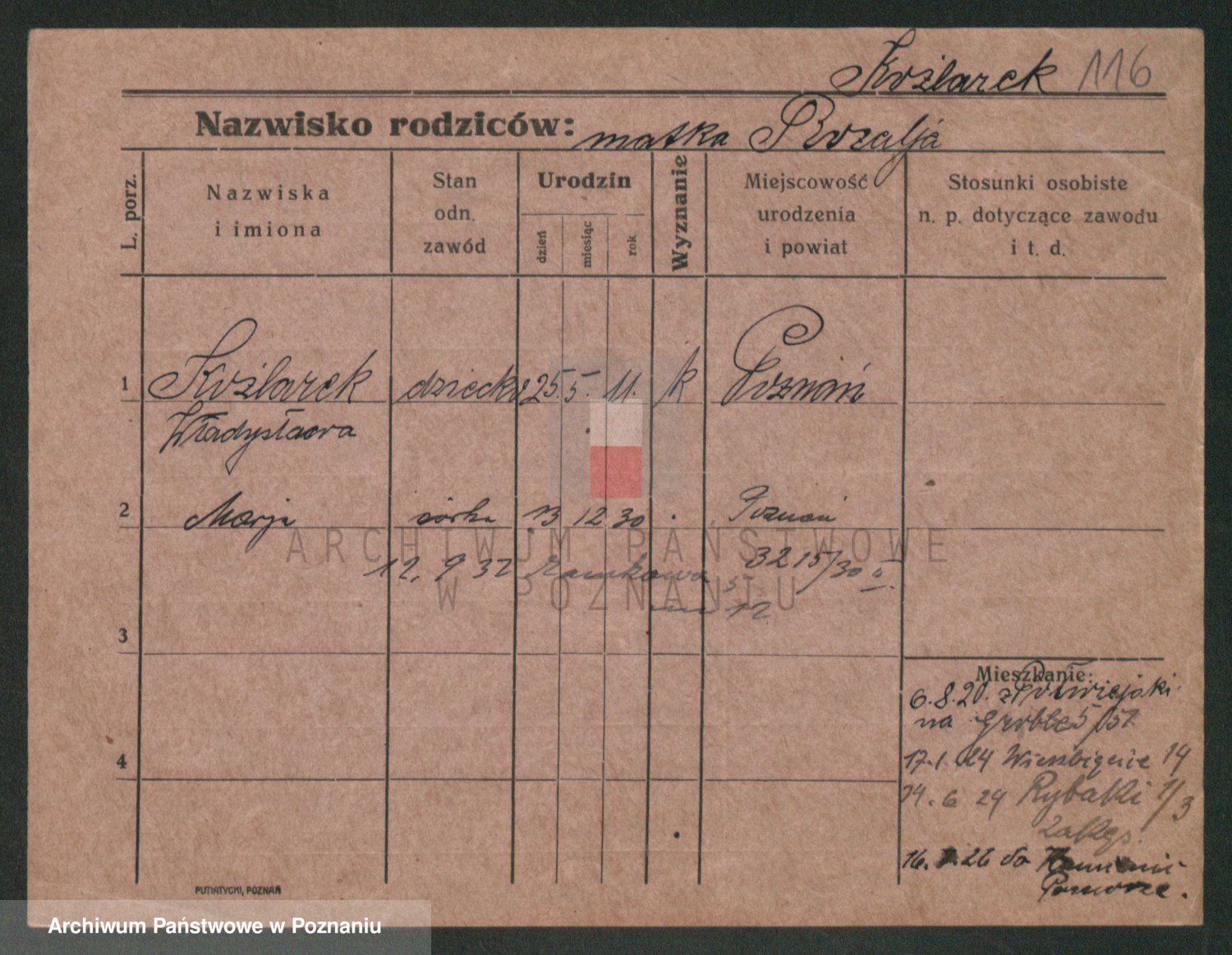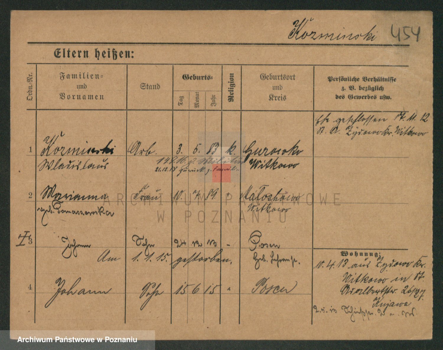 Podgląd karty osobowej dostępny jest po kliknięciu na nazwisko lub ikonkę karty. Można dokonywać powiększenia (ikony na górze) lub przechodzić między kolejnymi skanami (strzałki po bokach).
