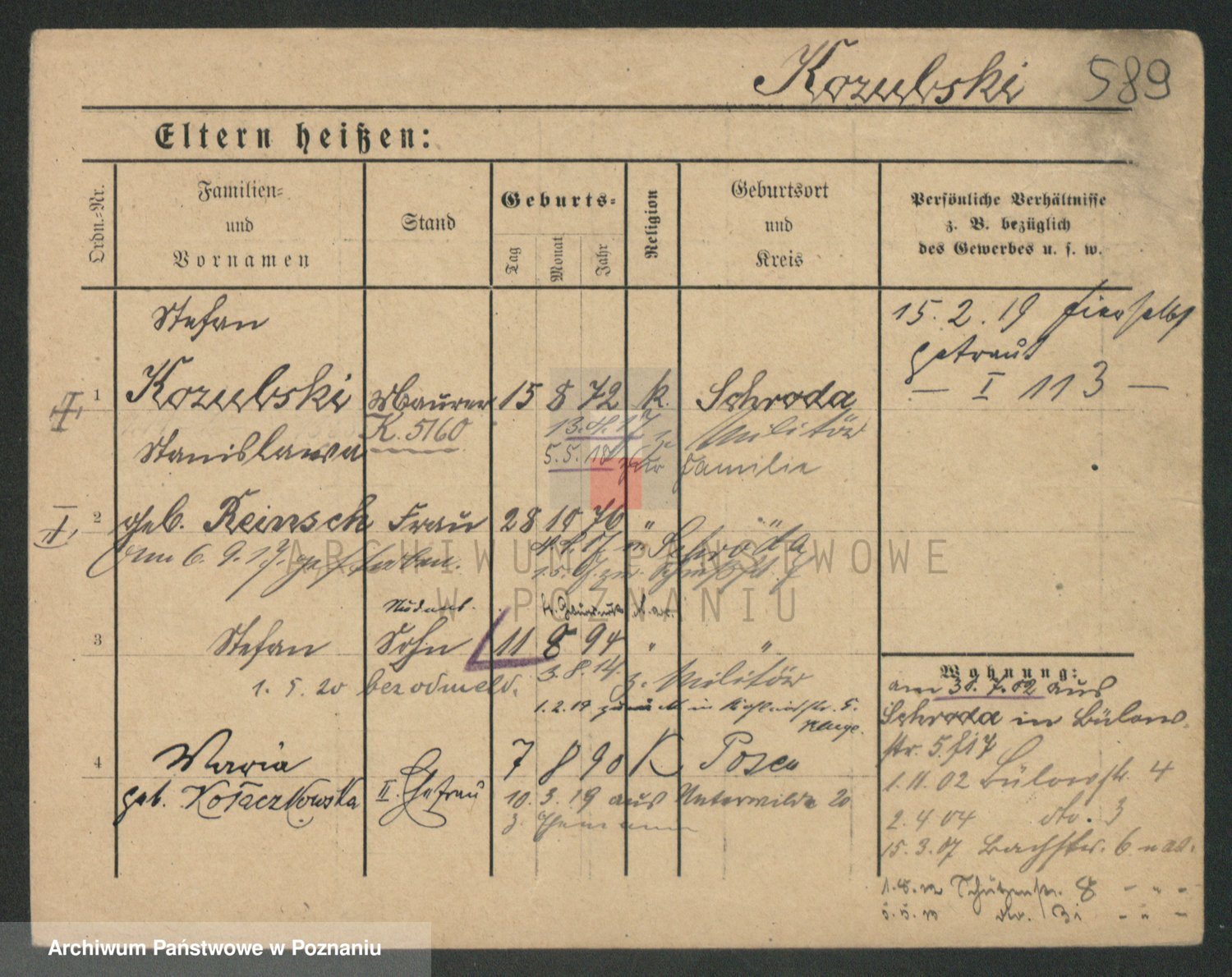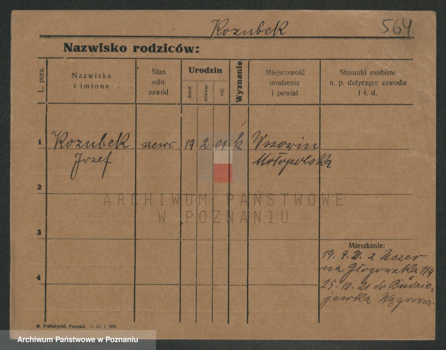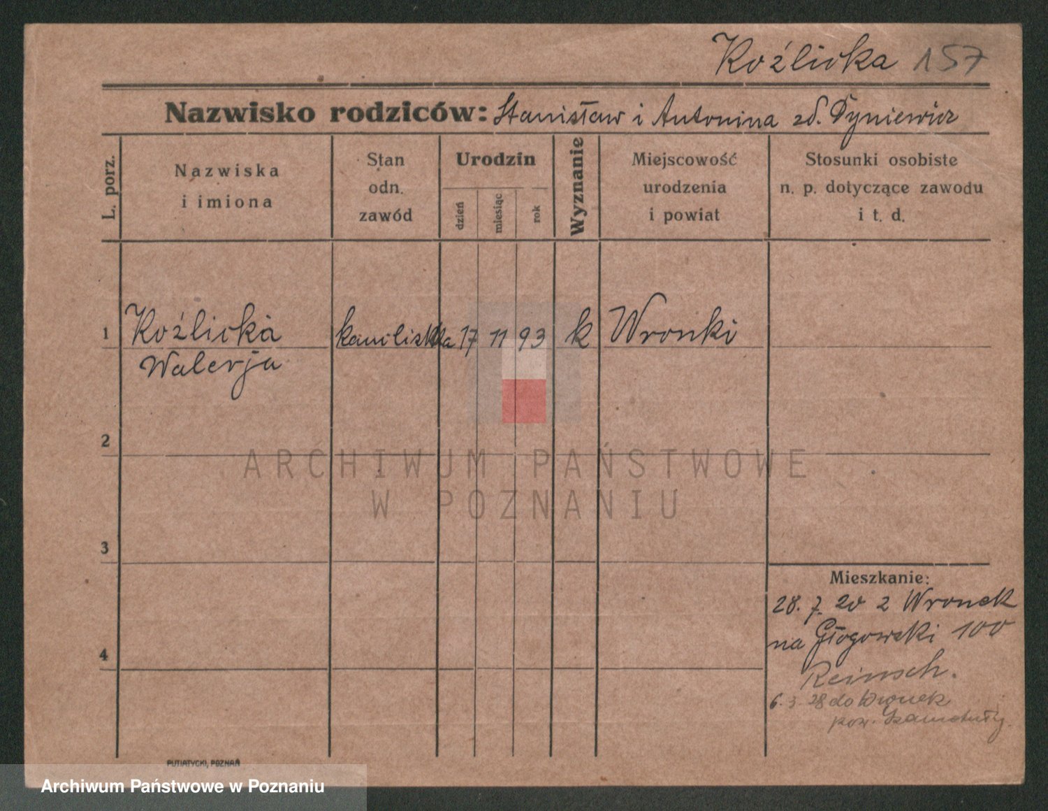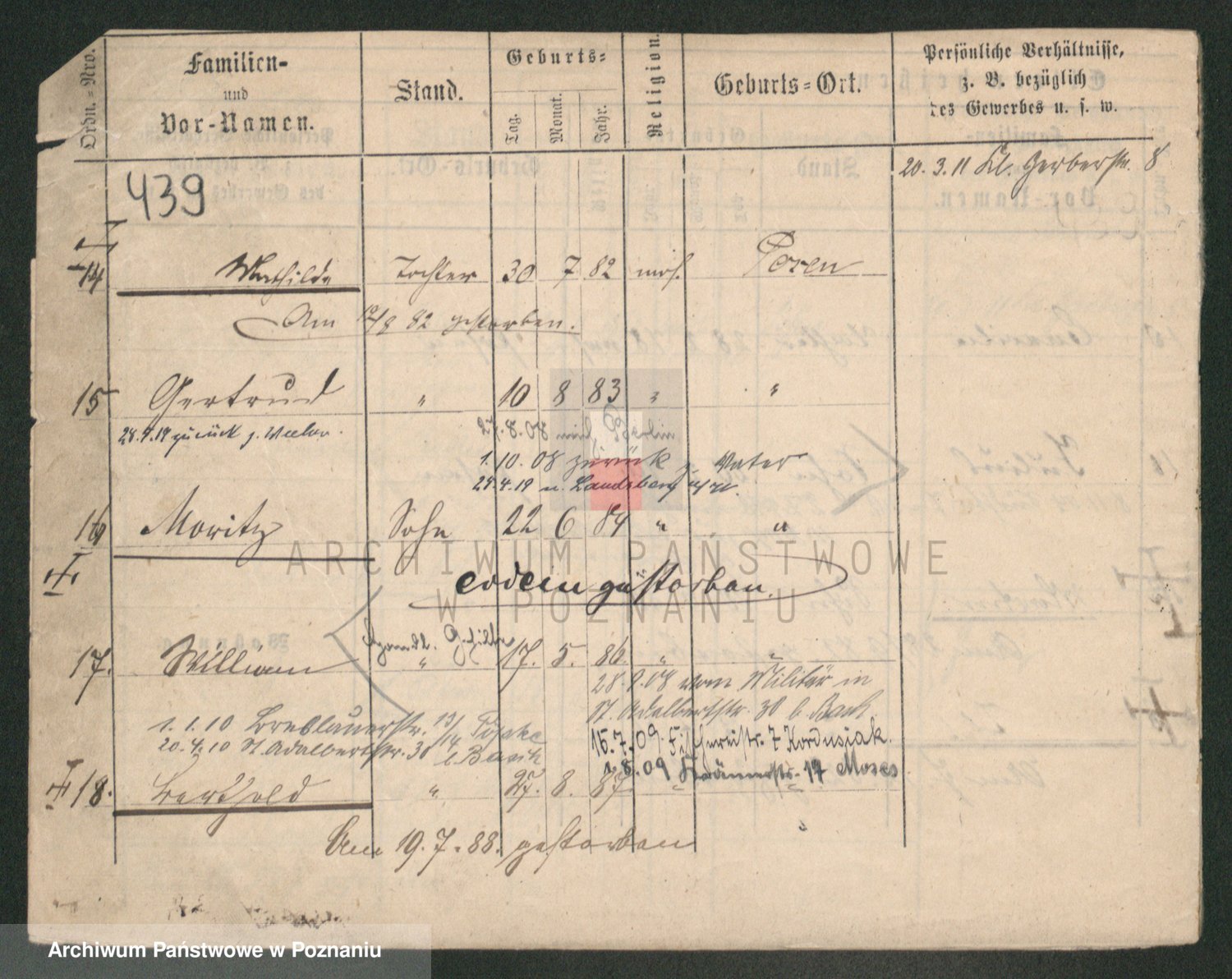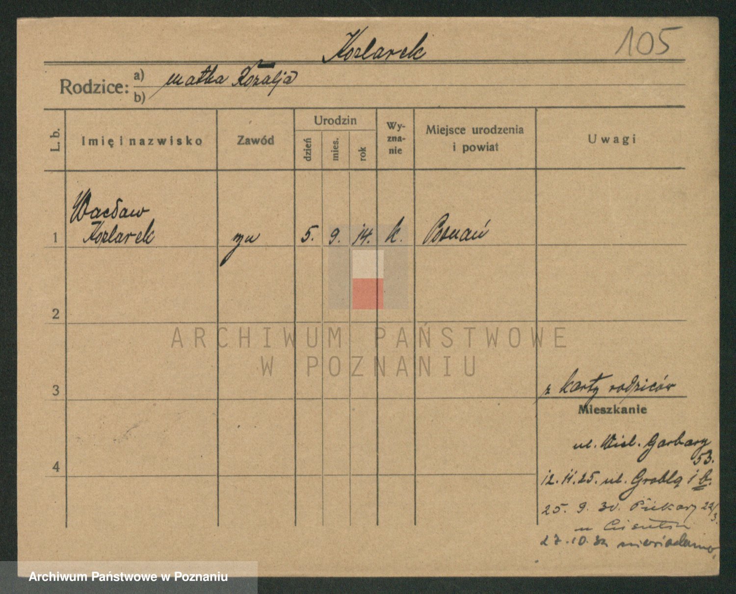 Podgląd karty osobowej dostępny jest po kliknięciu na nazwisko lub ikonkę karty. Można dokonywać powiększenia (ikony na górze) lub przechodzić między kolejnymi skanami (strzałki po bokach).