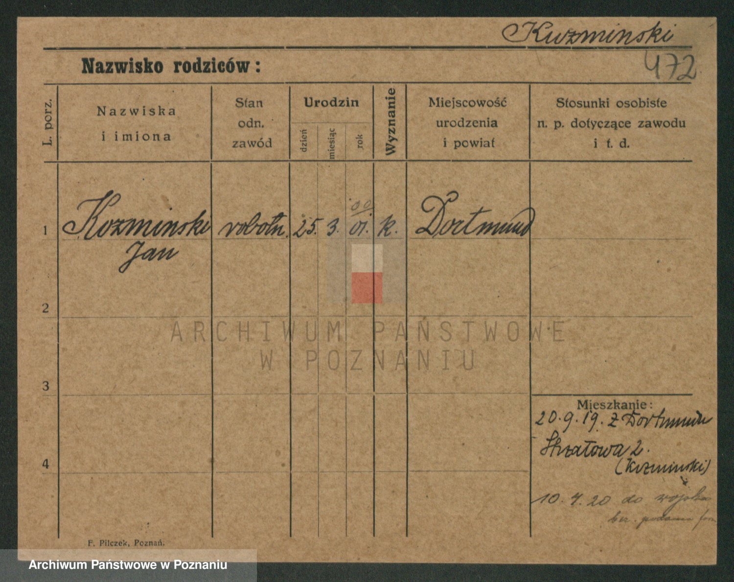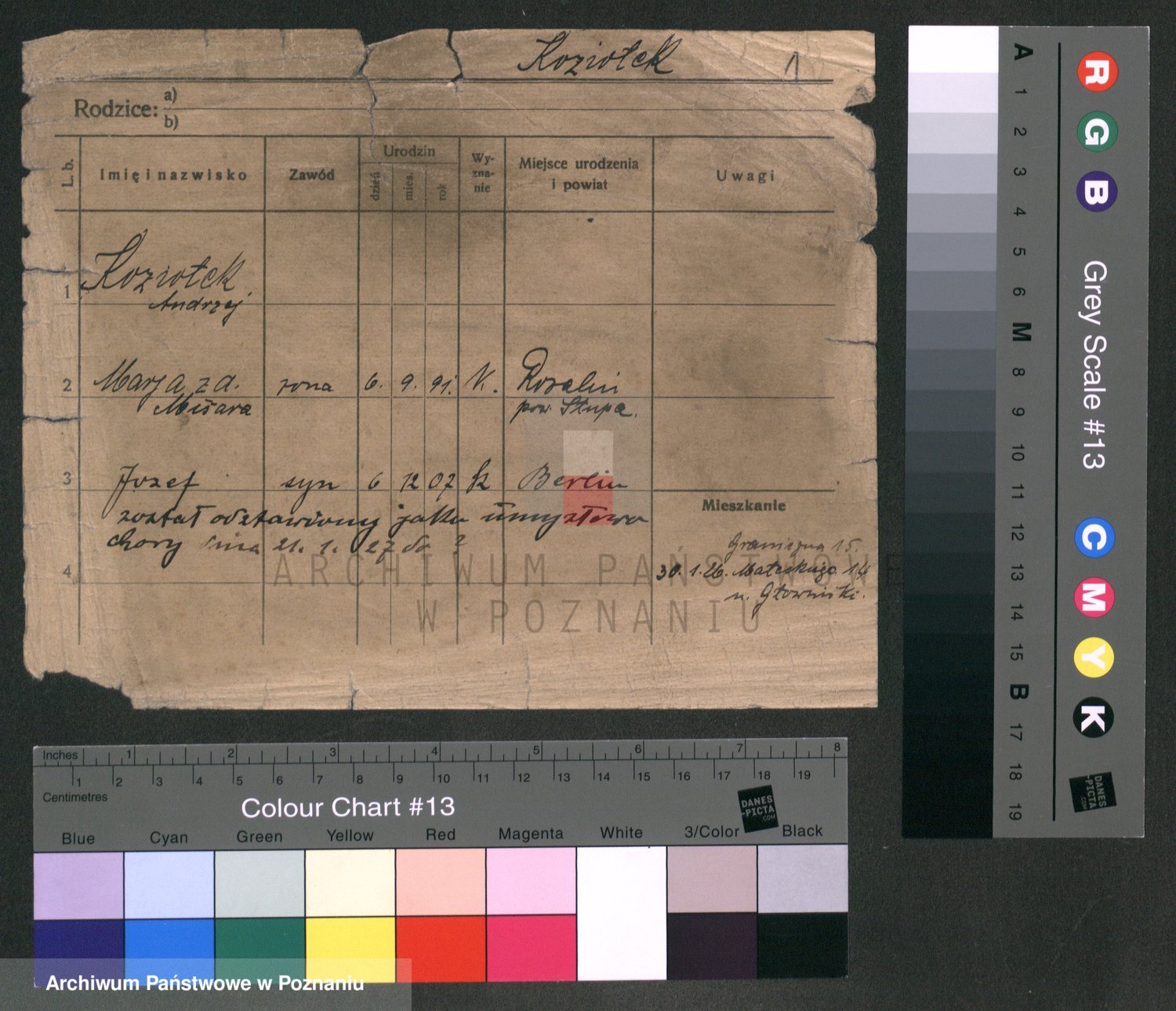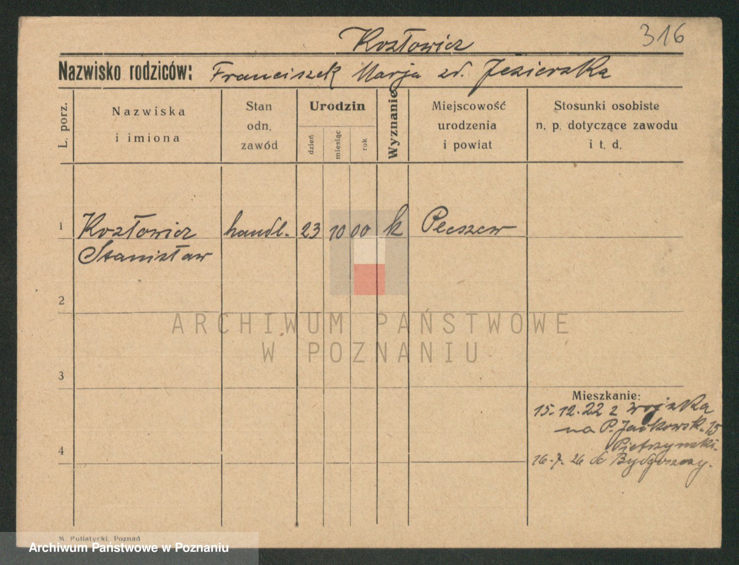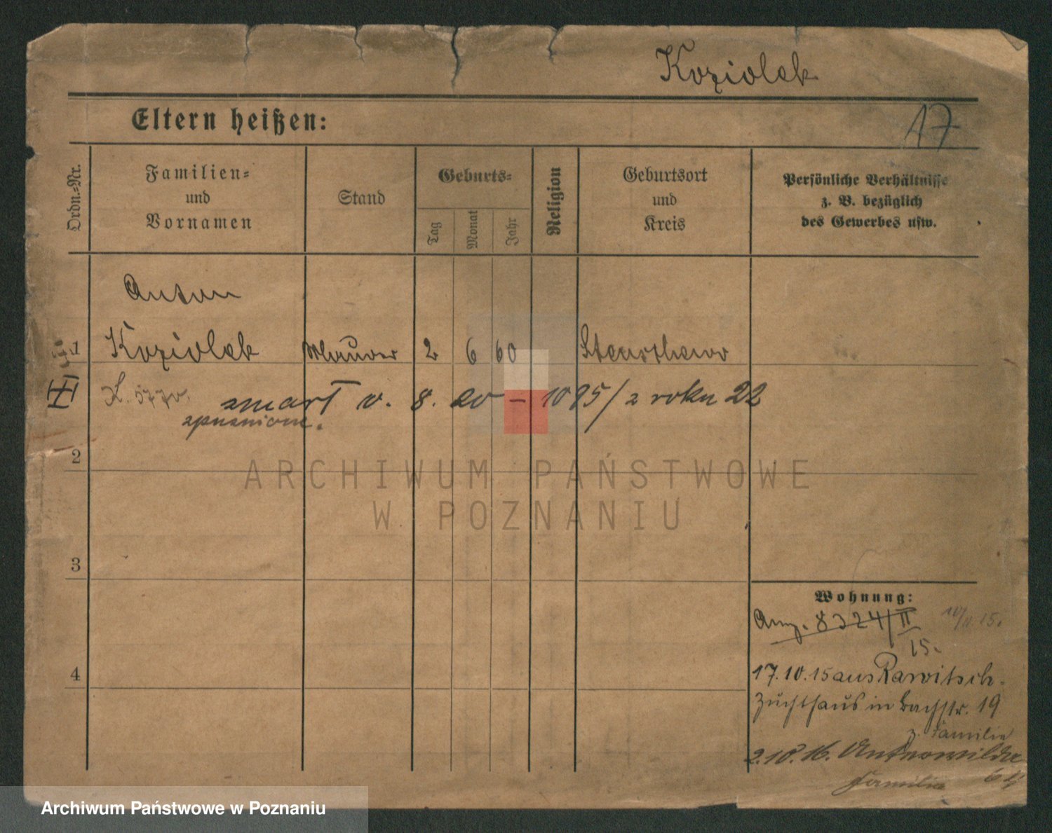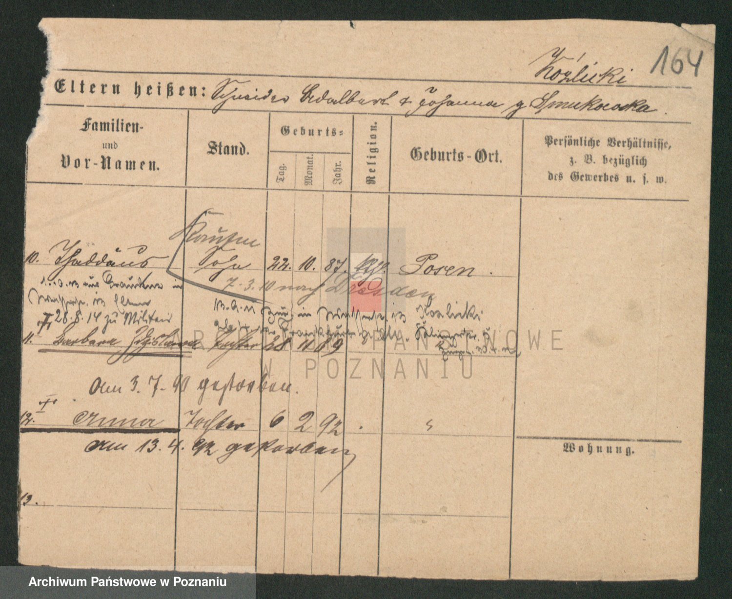 Podgląd karty osobowej dostępny jest po kliknięciu na nazwisko lub ikonkę karty. Można dokonywać powiększenia (ikony na górze) lub przechodzić między kolejnymi skanami (strzałki po bokach).