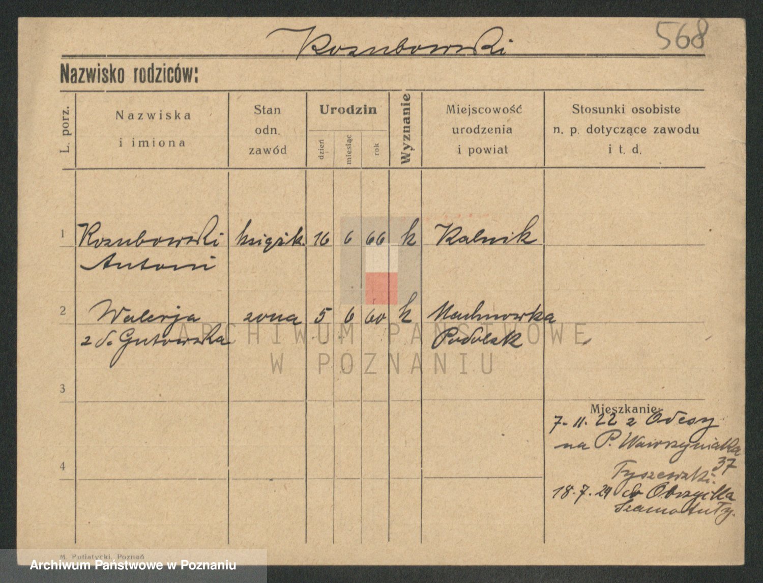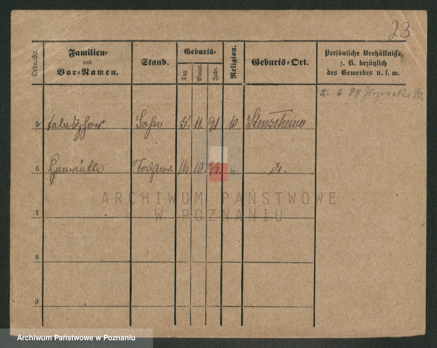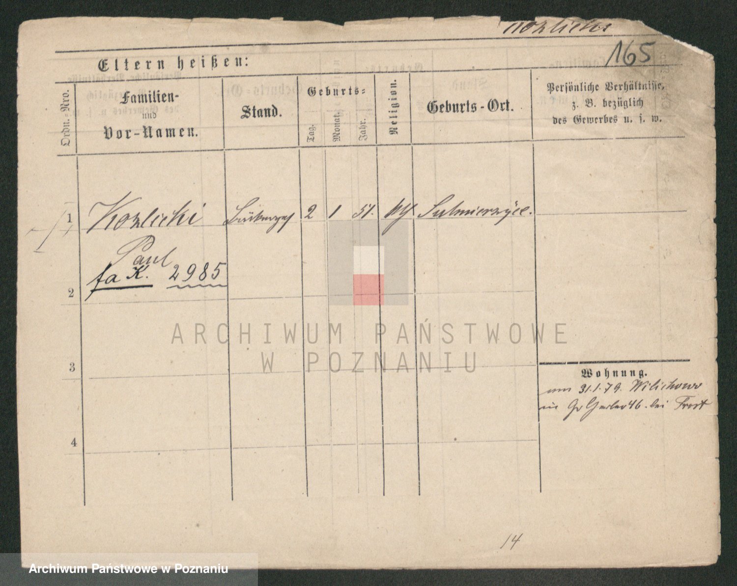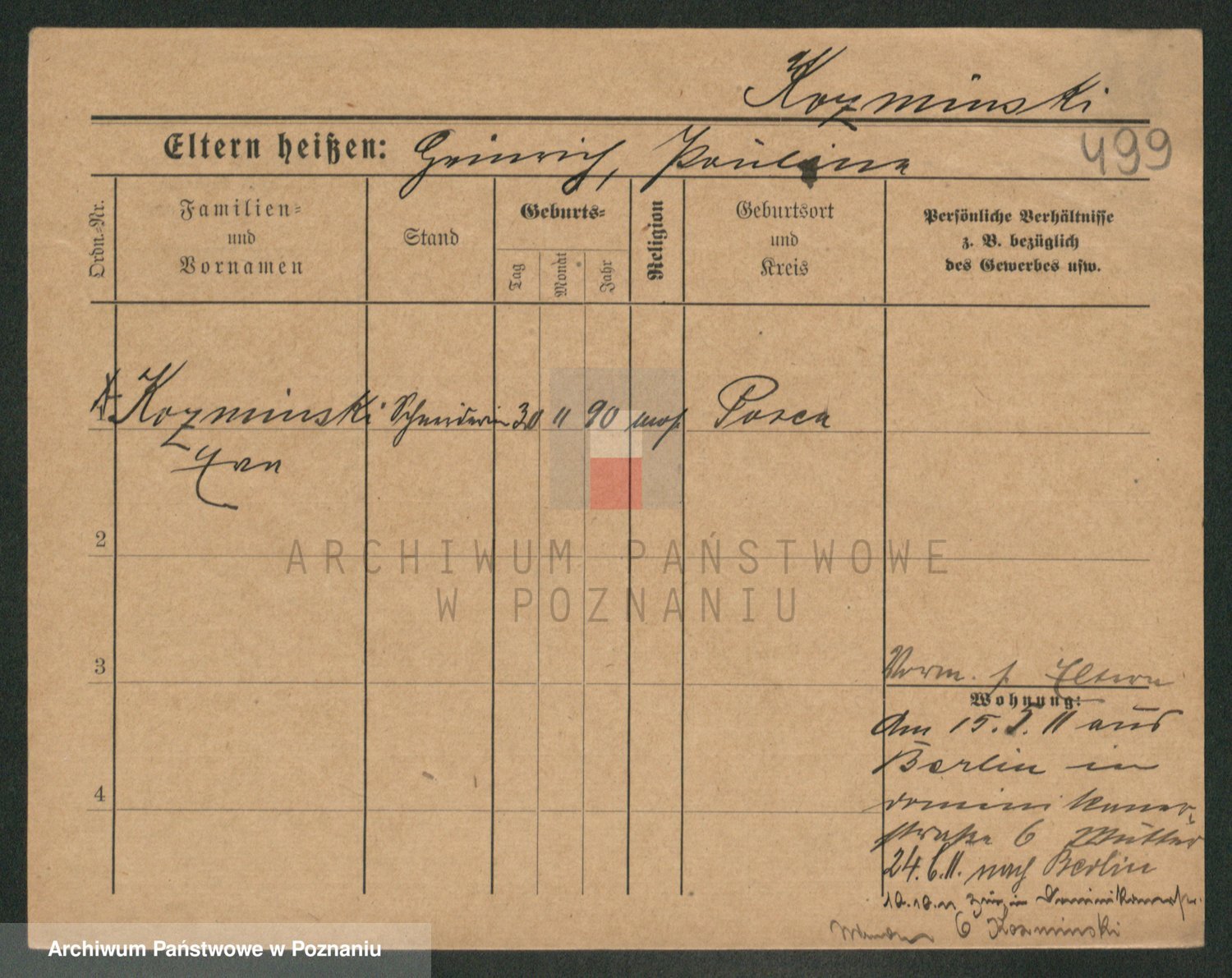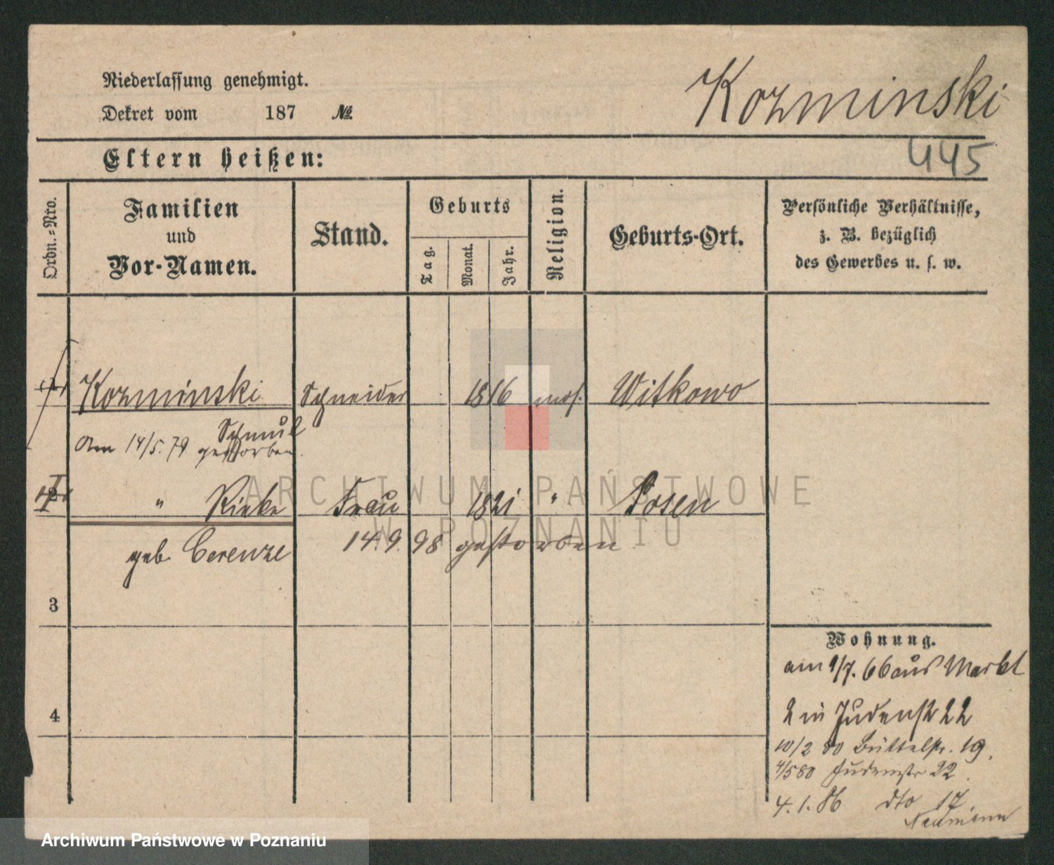 Podgląd karty osobowej dostępny jest po kliknięciu na nazwisko lub ikonkę karty. Można dokonywać powiększenia (ikony na górze) lub przechodzić między kolejnymi skanami (strzałki po bokach).