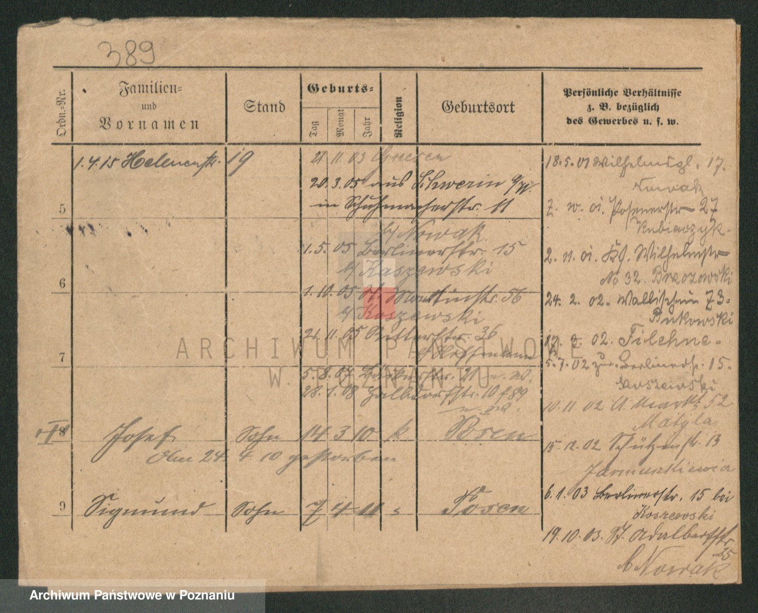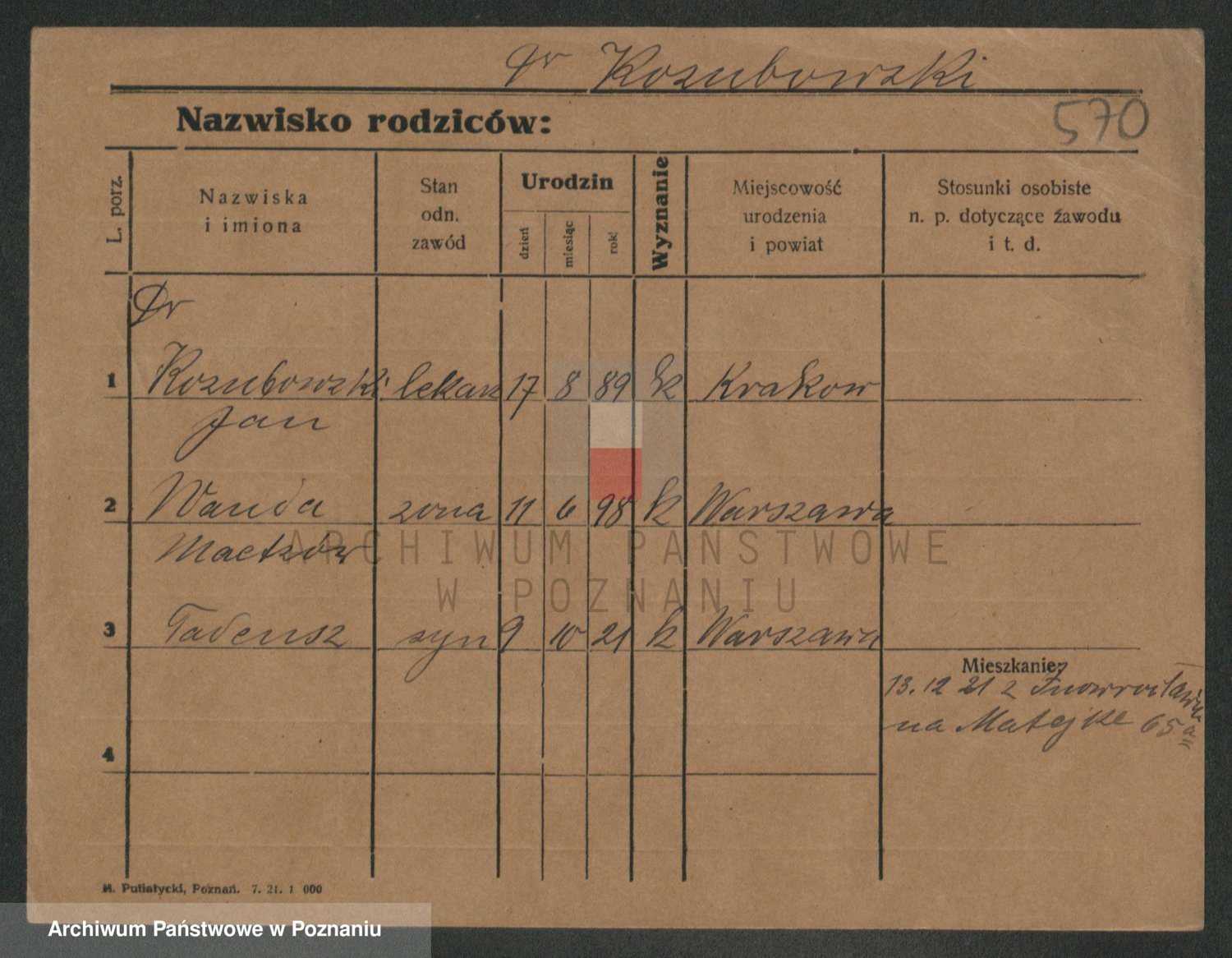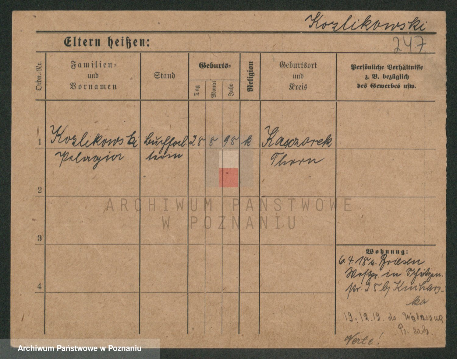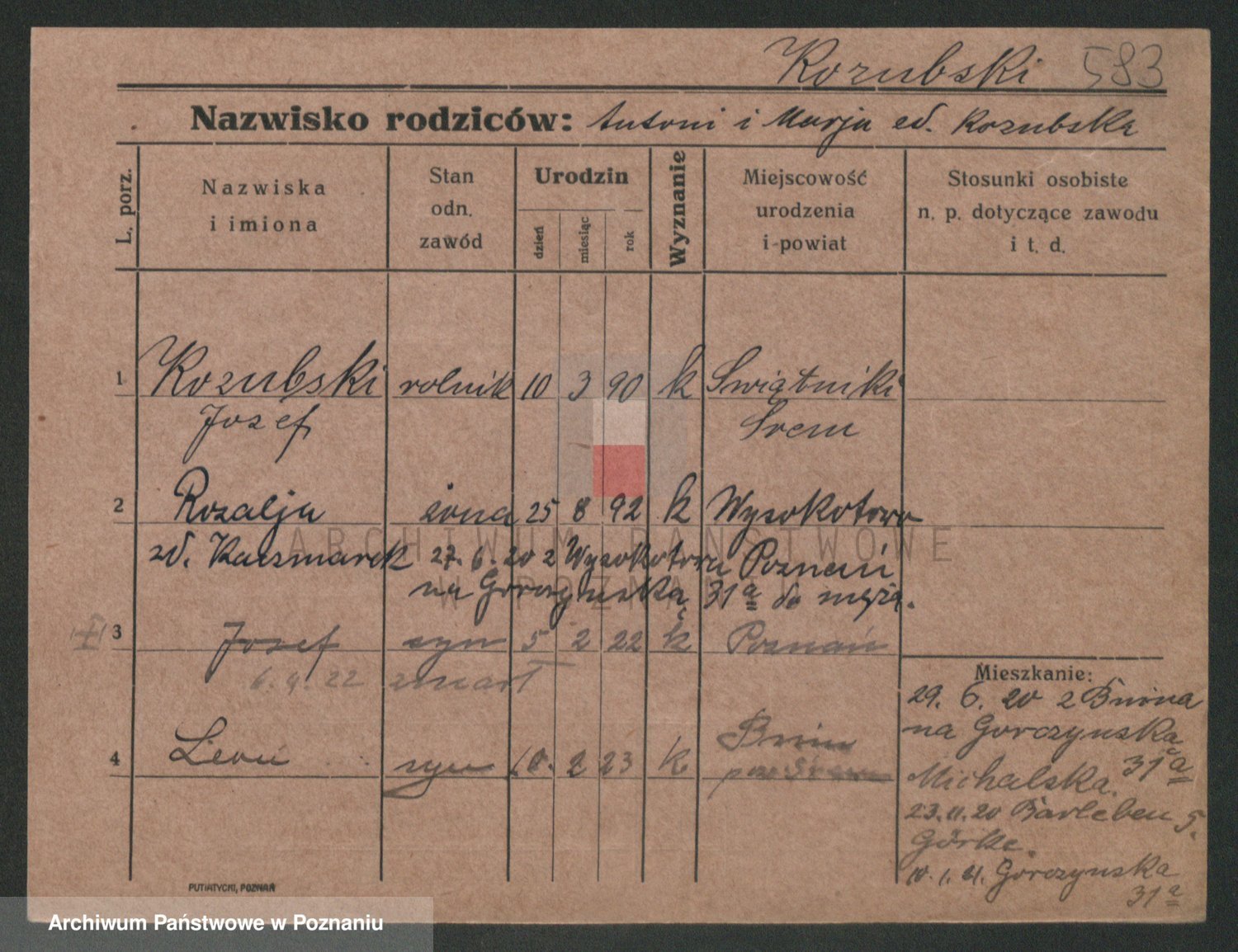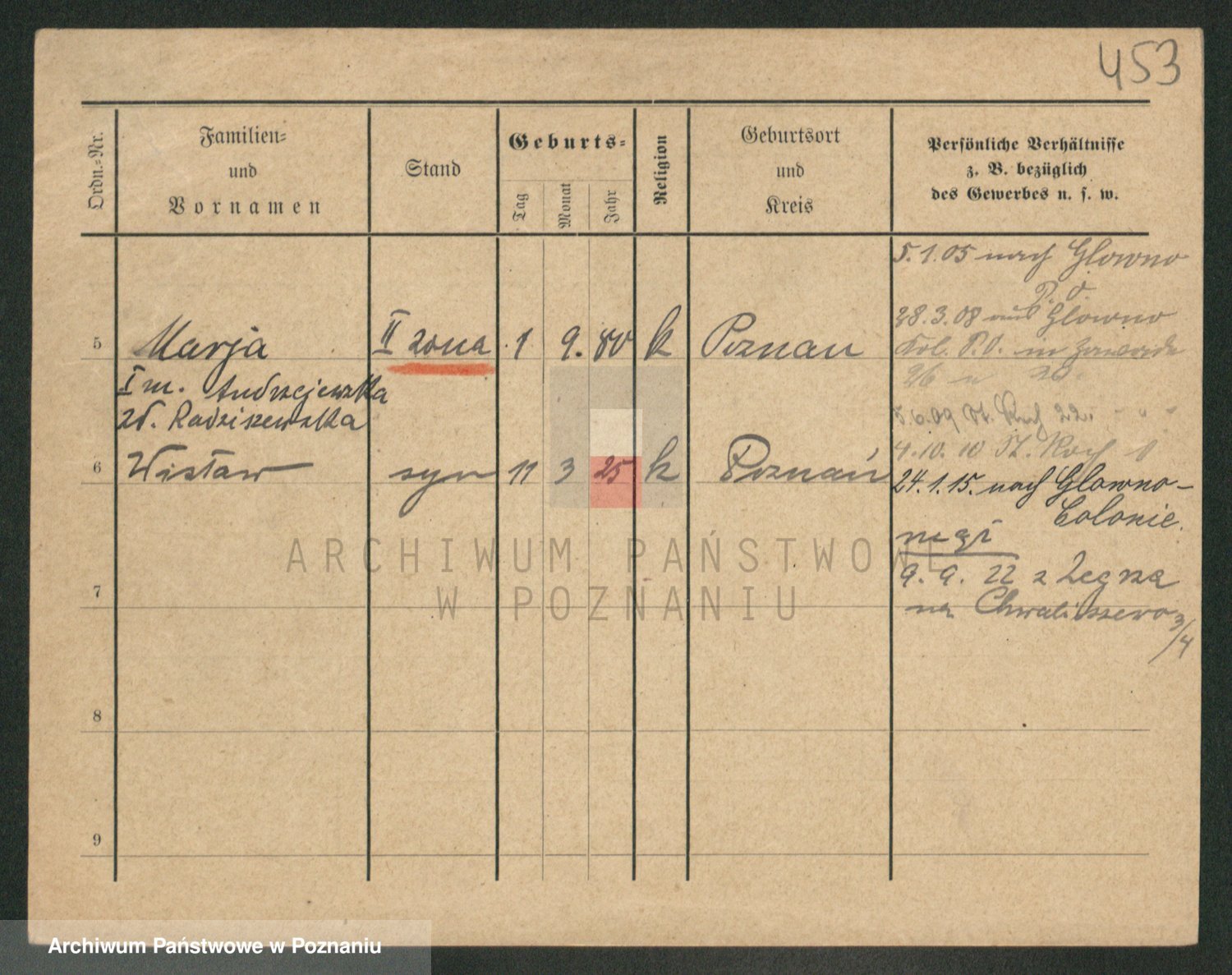 Podgląd karty osobowej dostępny jest po kliknięciu na nazwisko lub ikonkę karty. Można dokonywać powiększenia (ikony na górze) lub przechodzić między kolejnymi skanami (strzałki po bokach).