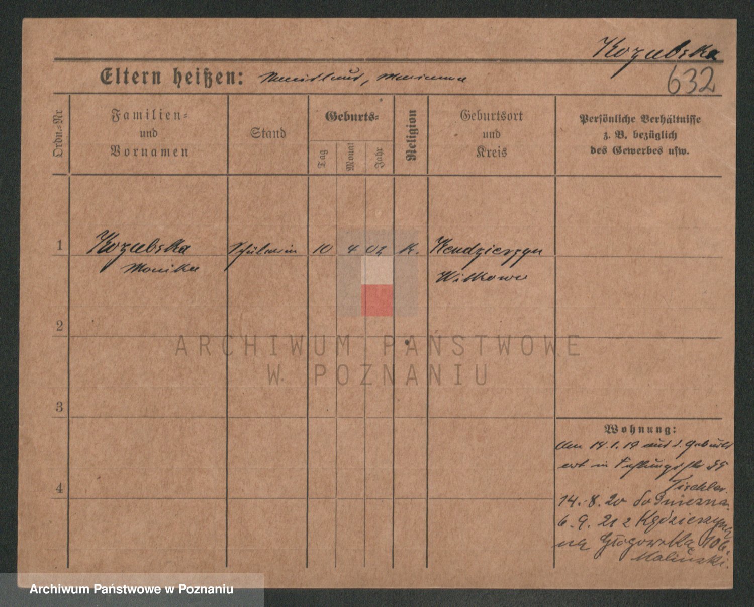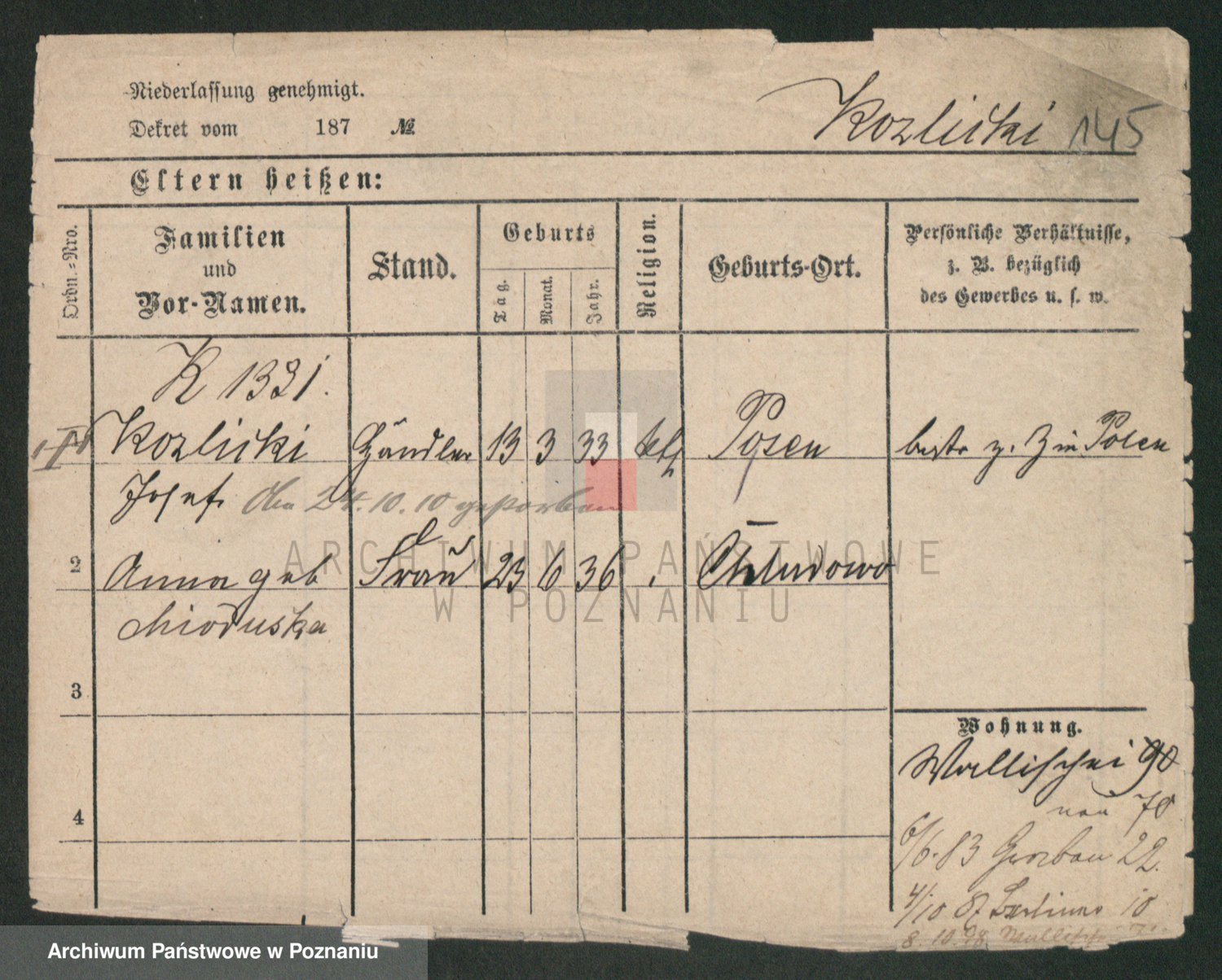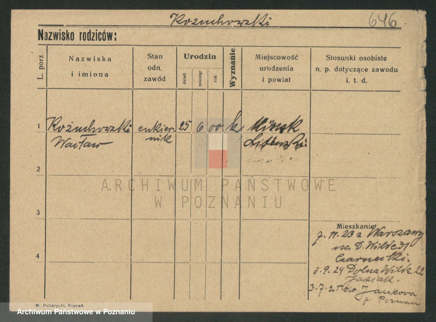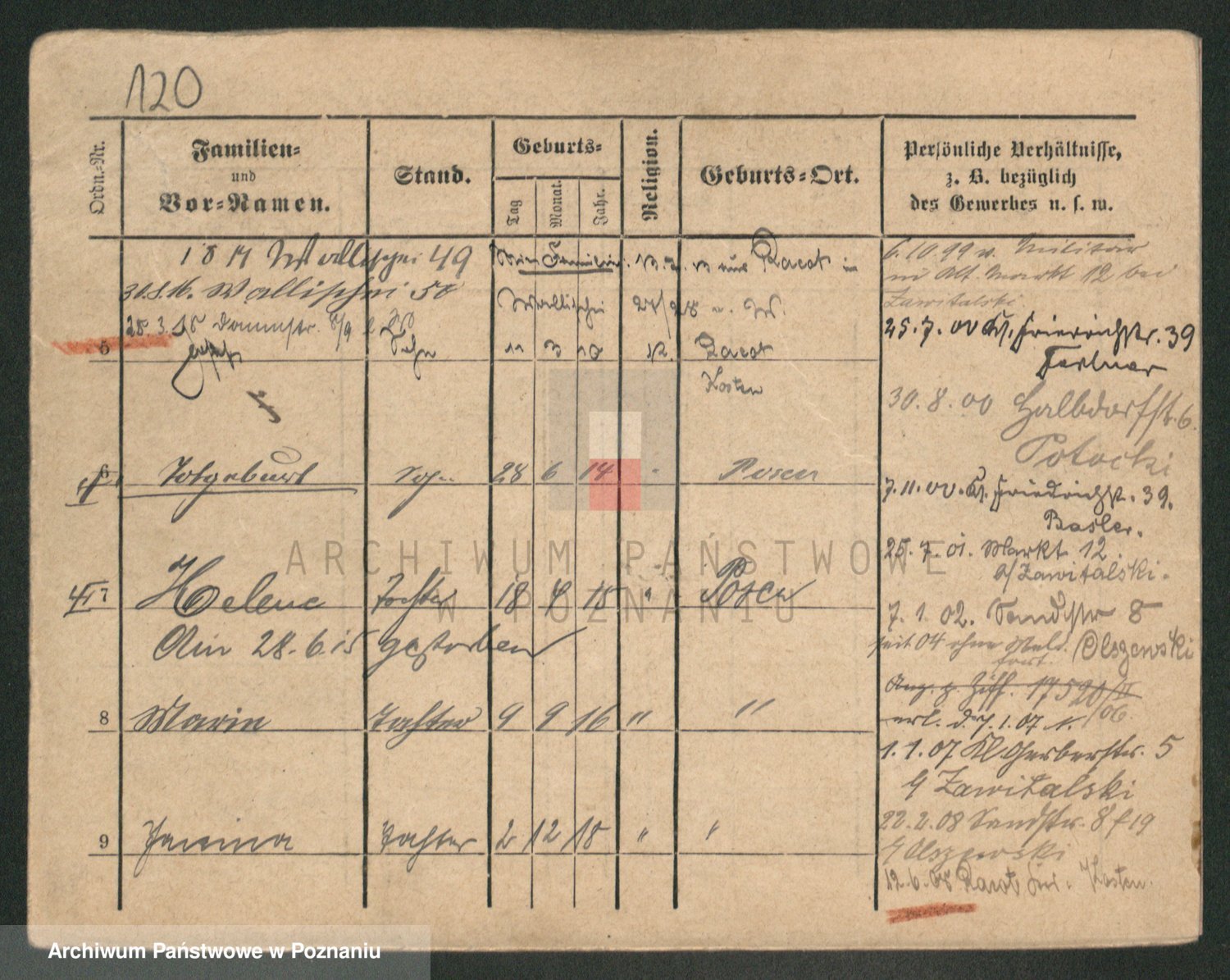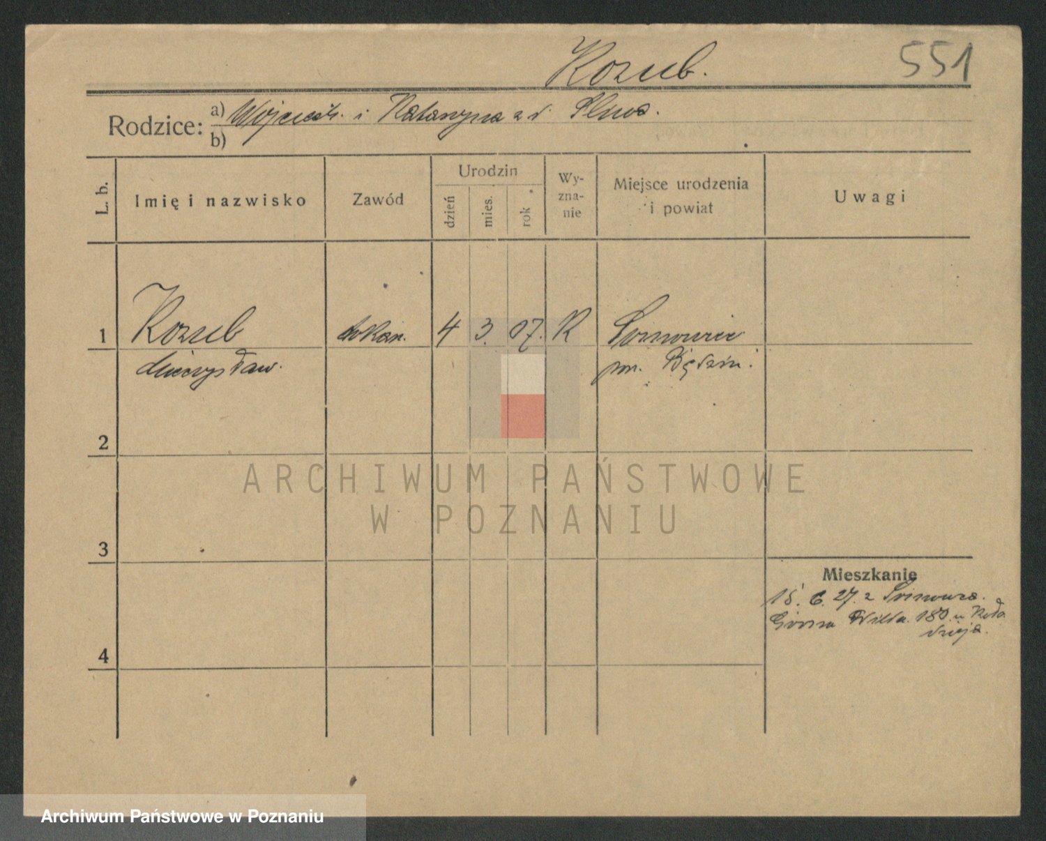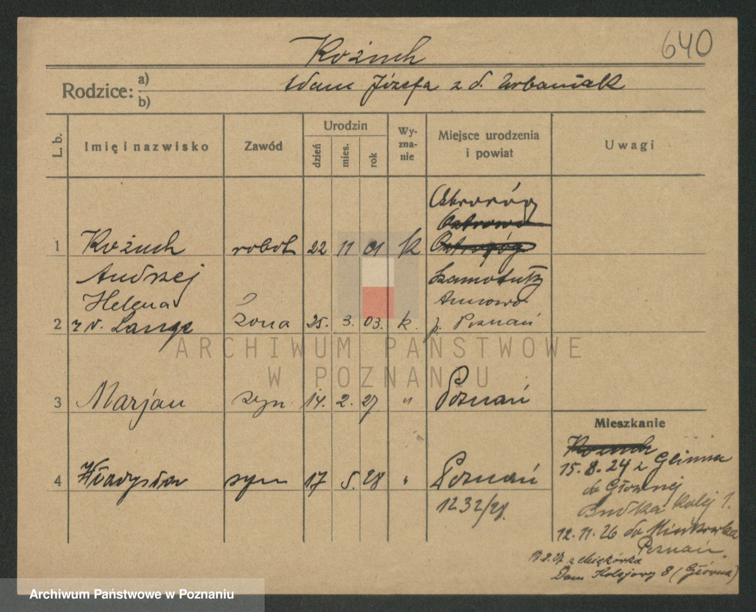Podgląd karty osobowej dostępny jest po kliknięciu na nazwisko lub ikonkę karty. Można dokonywać powiększenia (ikony na górze) lub przechodzić między kolejnymi skanami (strzałki po bokach).