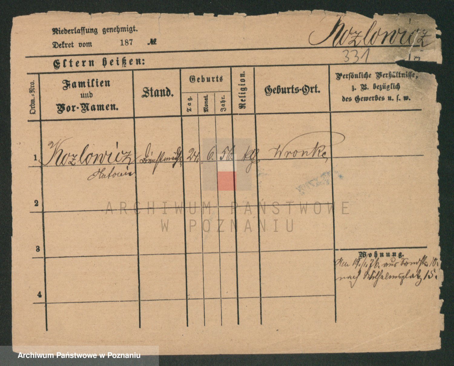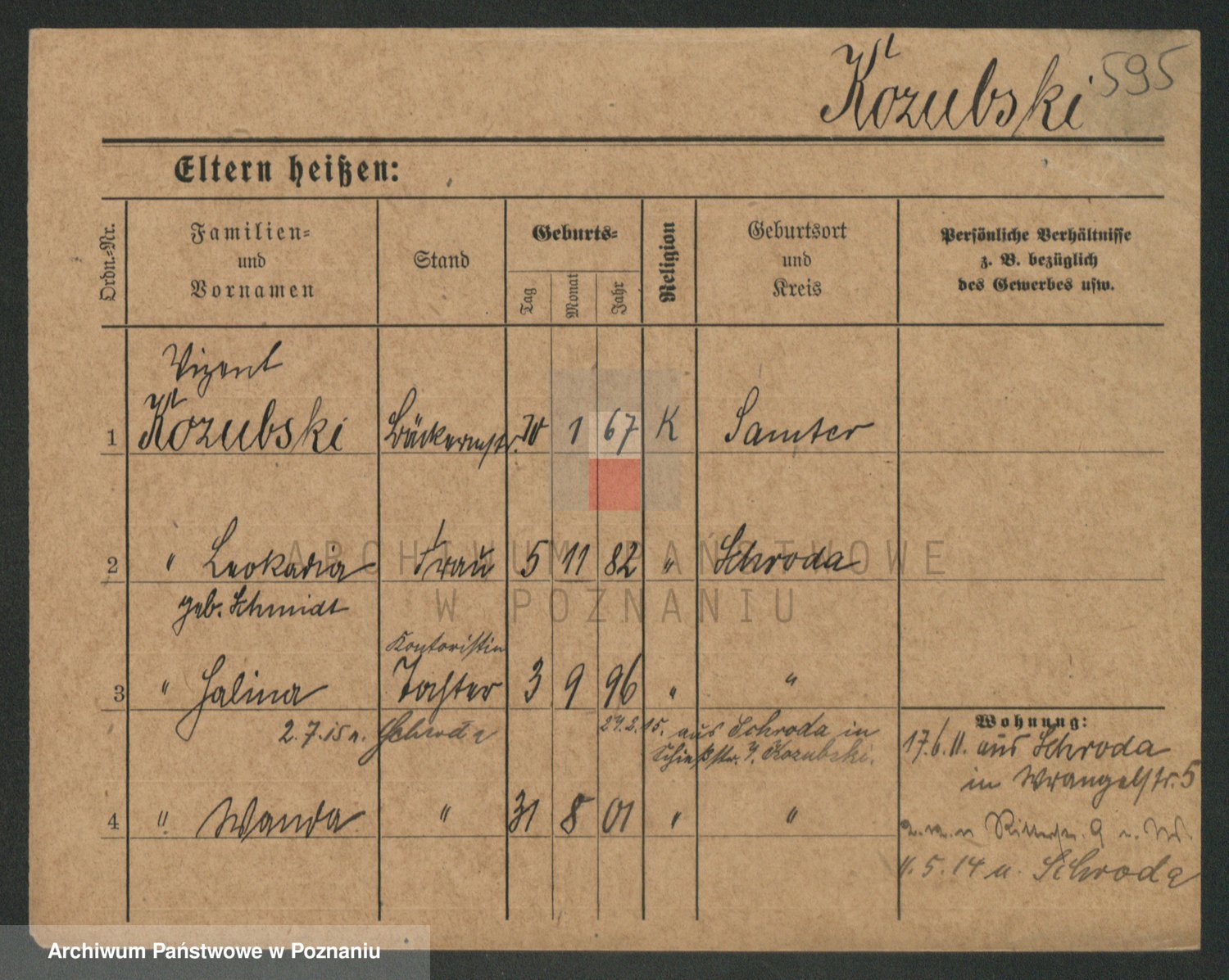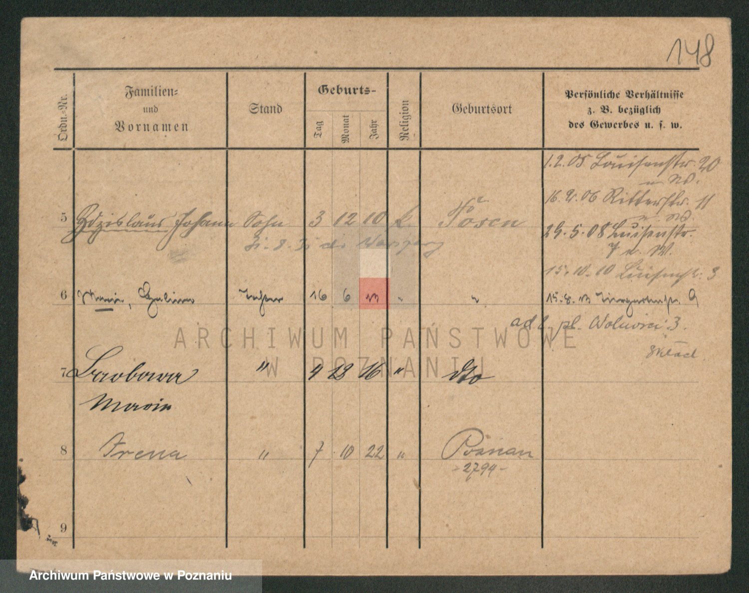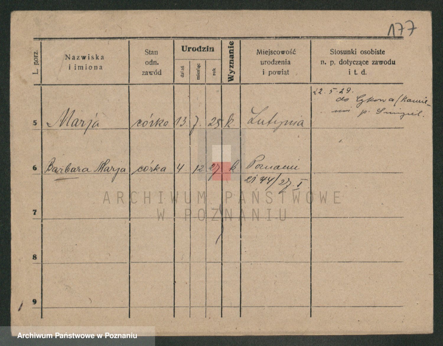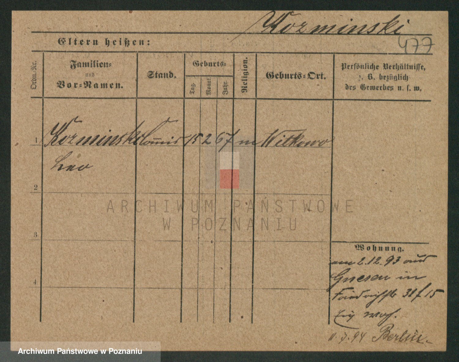 Podgląd karty osobowej dostępny jest po kliknięciu na nazwisko lub ikonkę karty. Można dokonywać powiększenia (ikony na górze) lub przechodzić między kolejnymi skanami (strzałki po bokach).