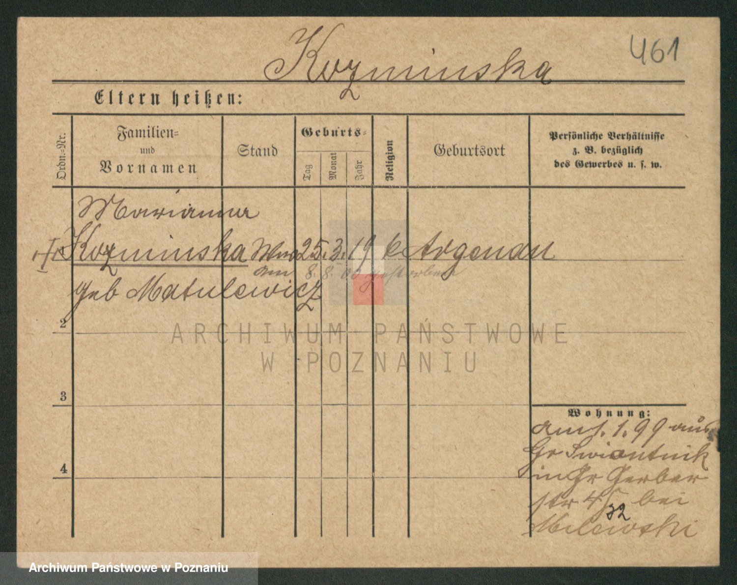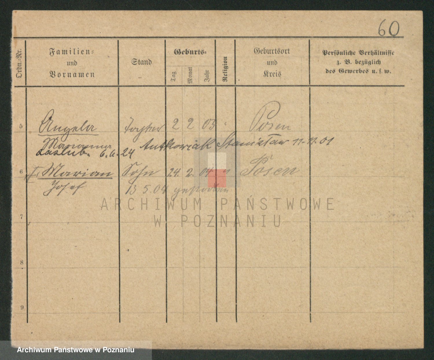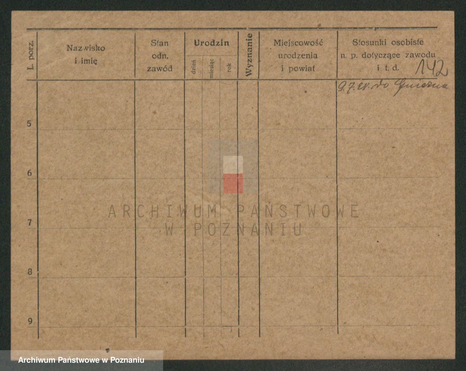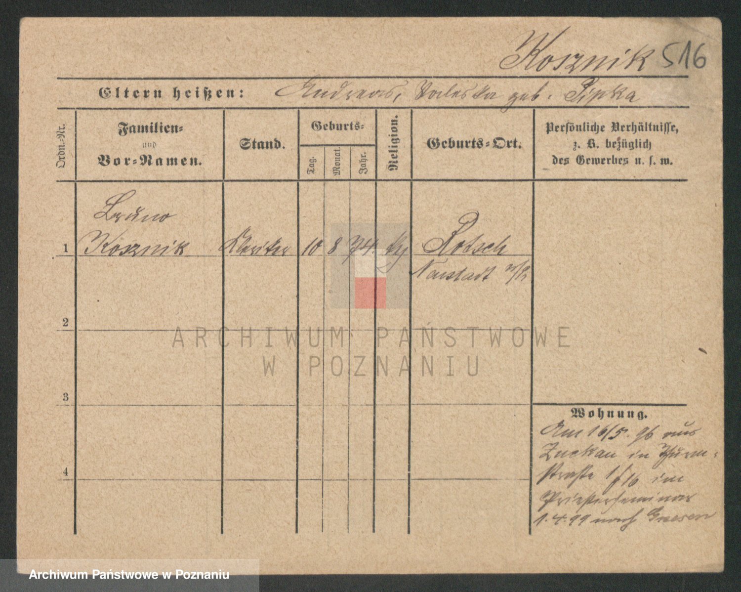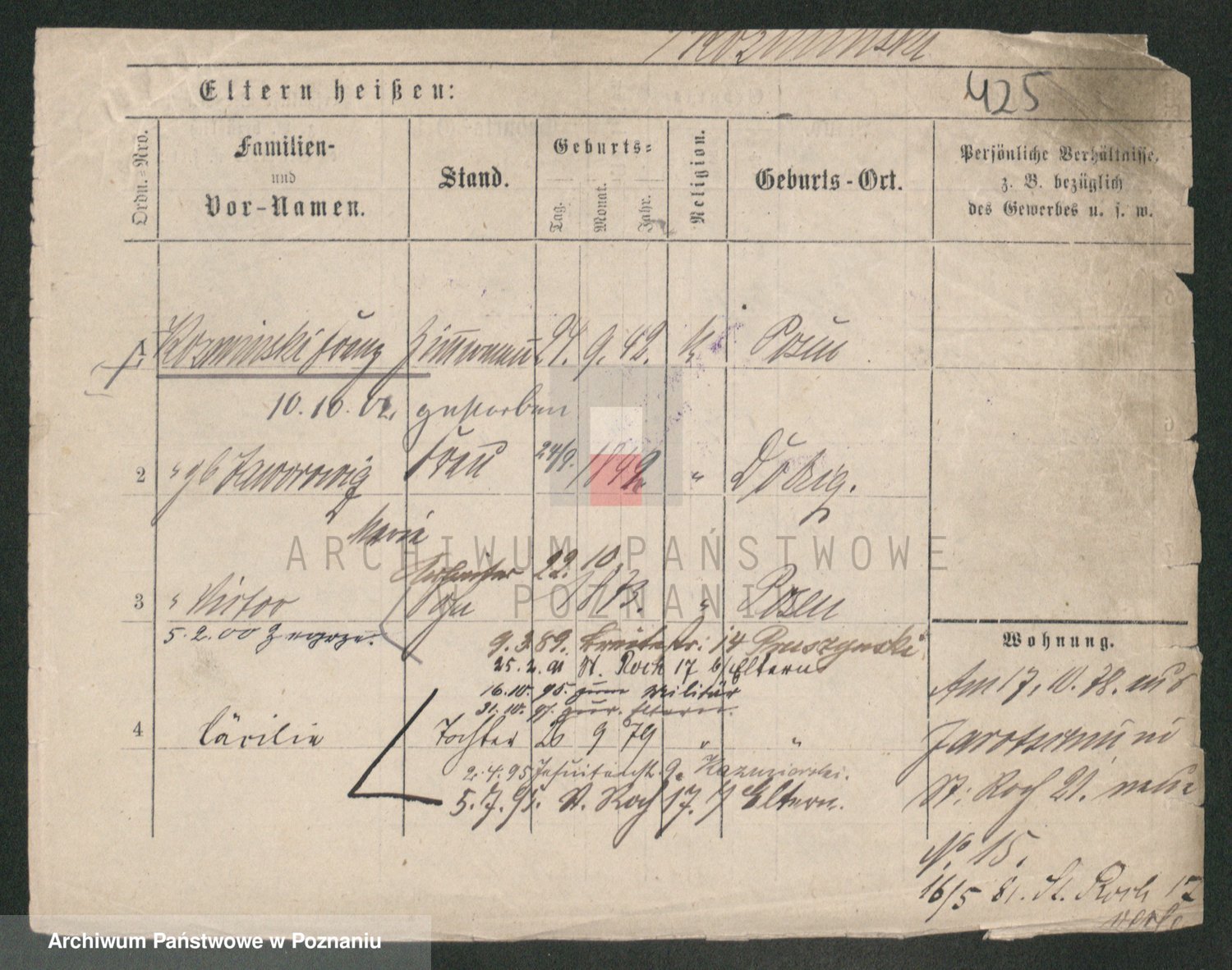 Podgląd karty osobowej dostępny jest po kliknięciu na nazwisko lub ikonkę karty. Można dokonywać powiększenia (ikony na górze) lub przechodzić między kolejnymi skanami (strzałki po bokach).