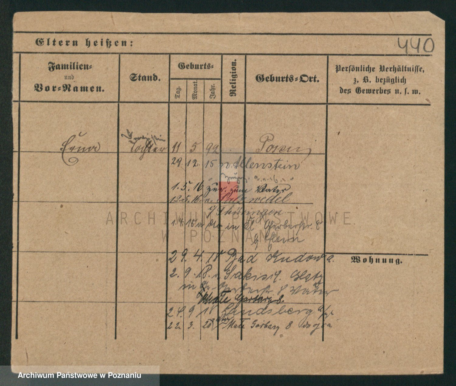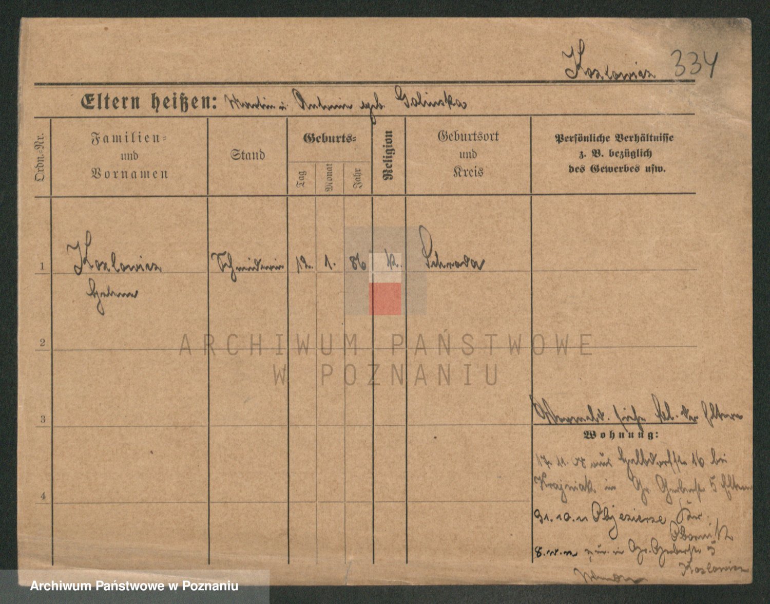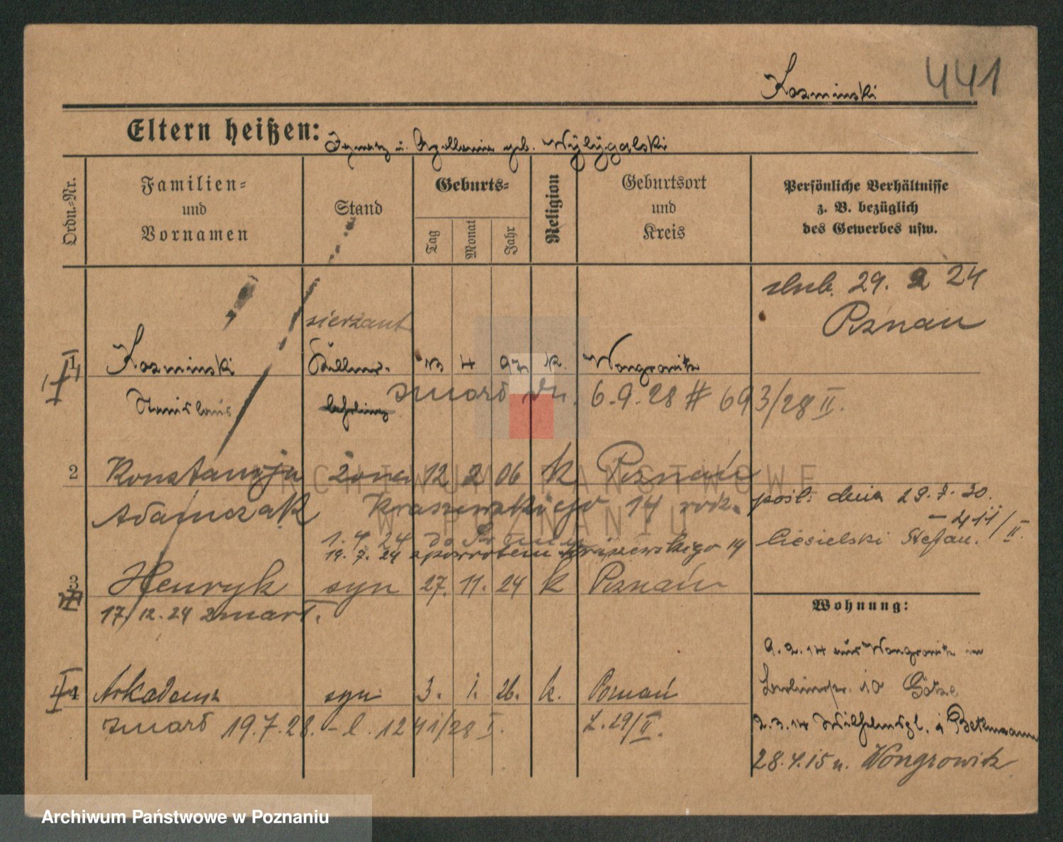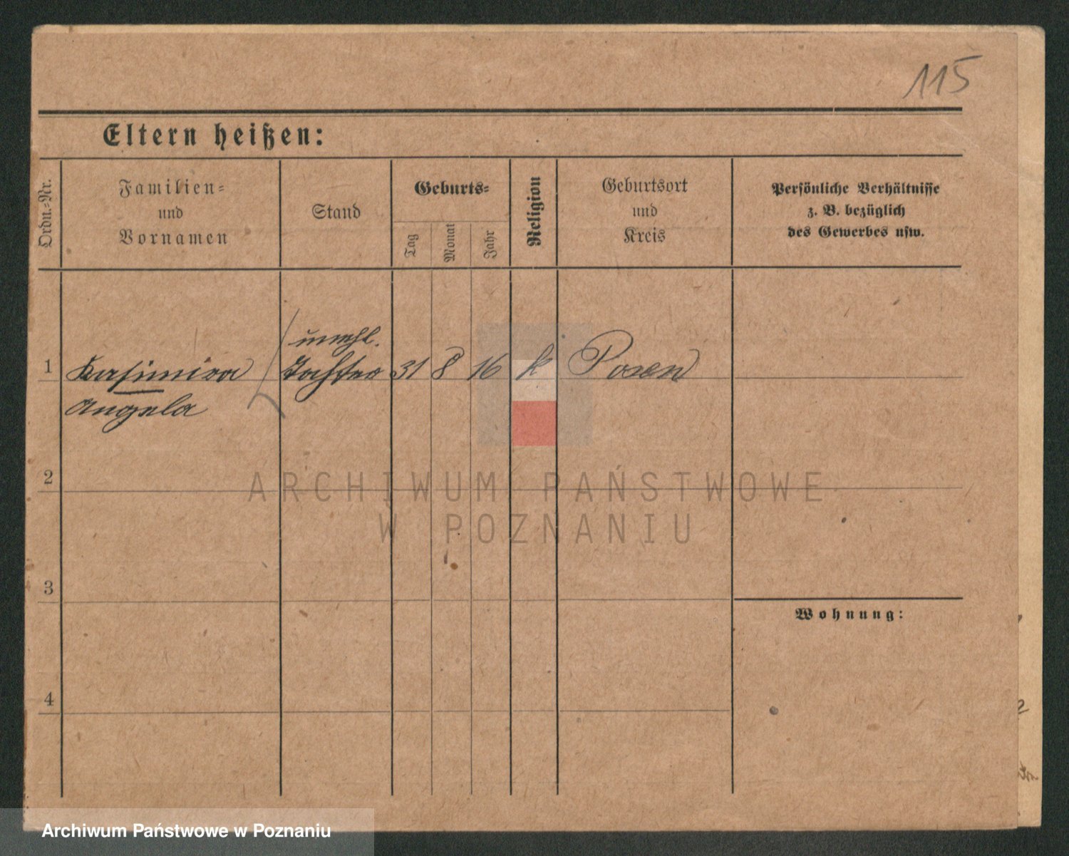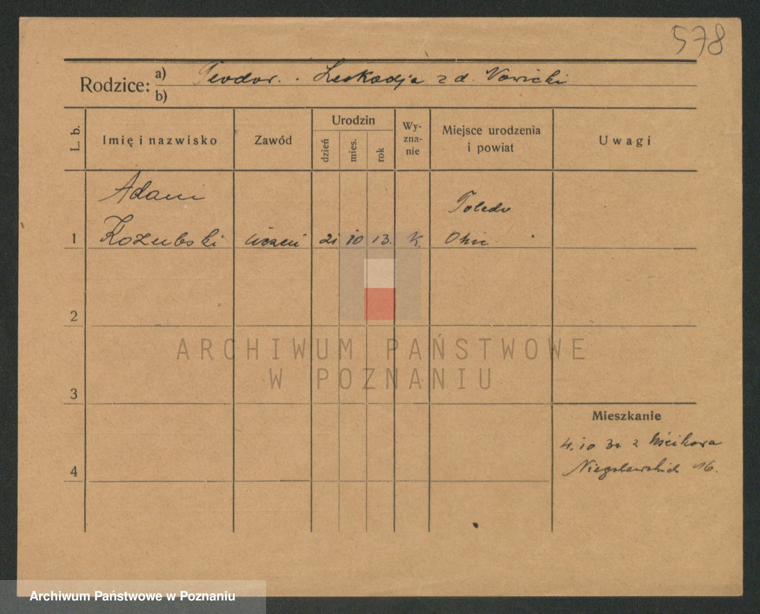 Podgląd karty osobowej dostępny jest po kliknięciu na nazwisko lub ikonkę karty. Można dokonywać powiększenia (ikony na górze) lub przechodzić między kolejnymi skanami (strzałki po bokach).