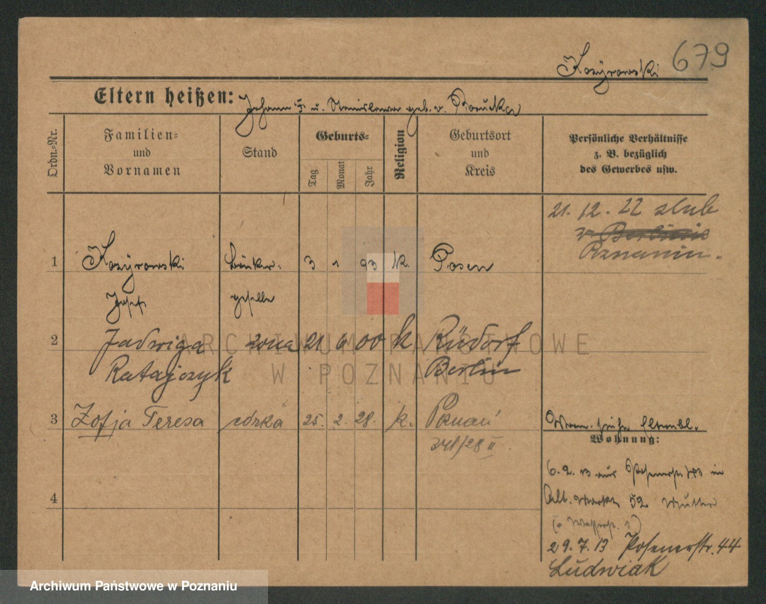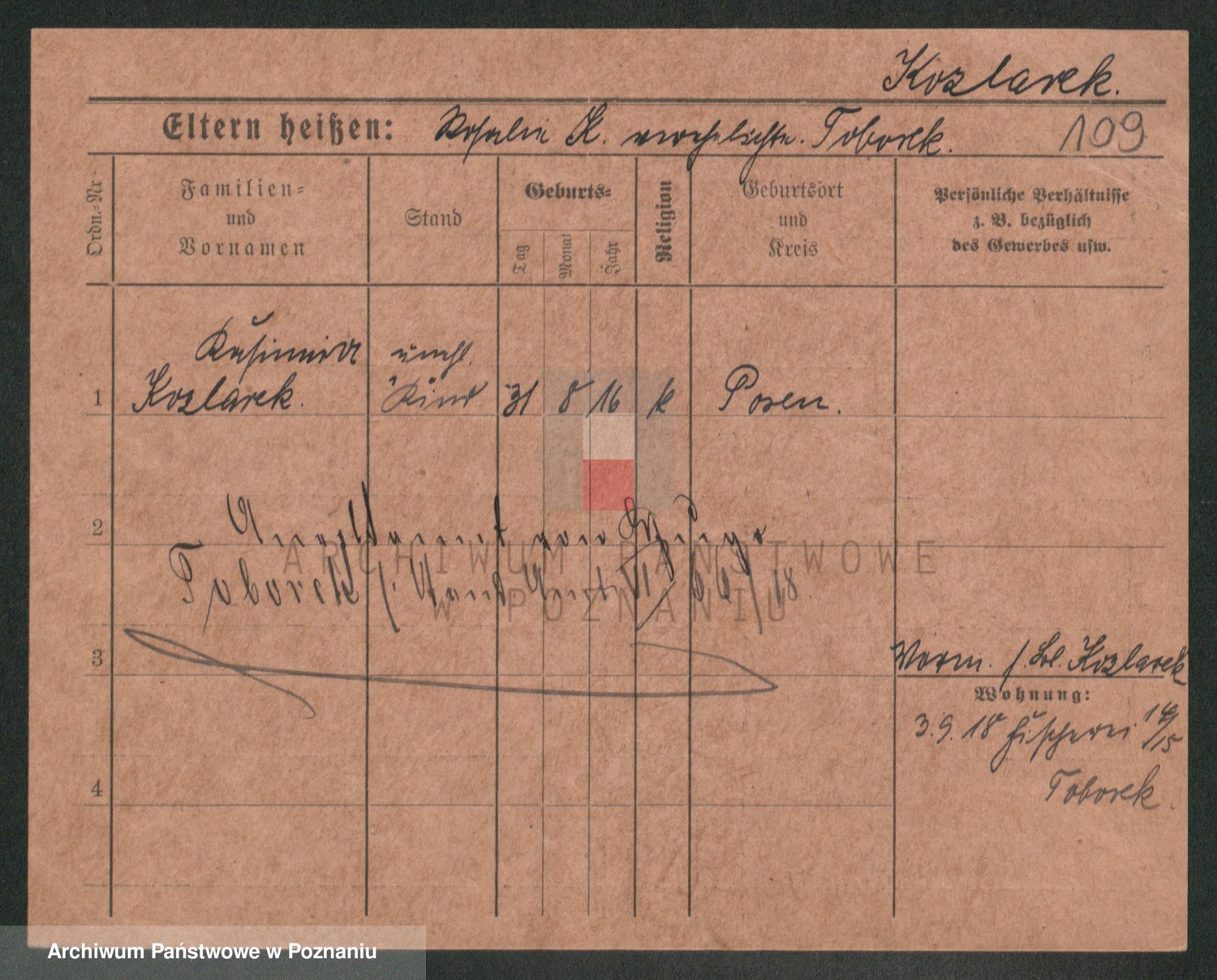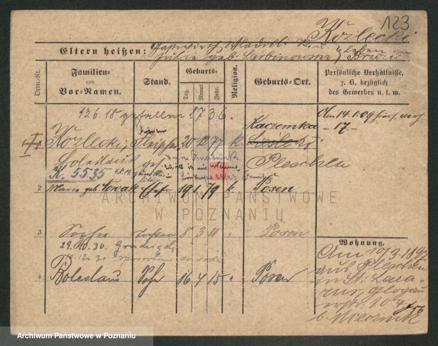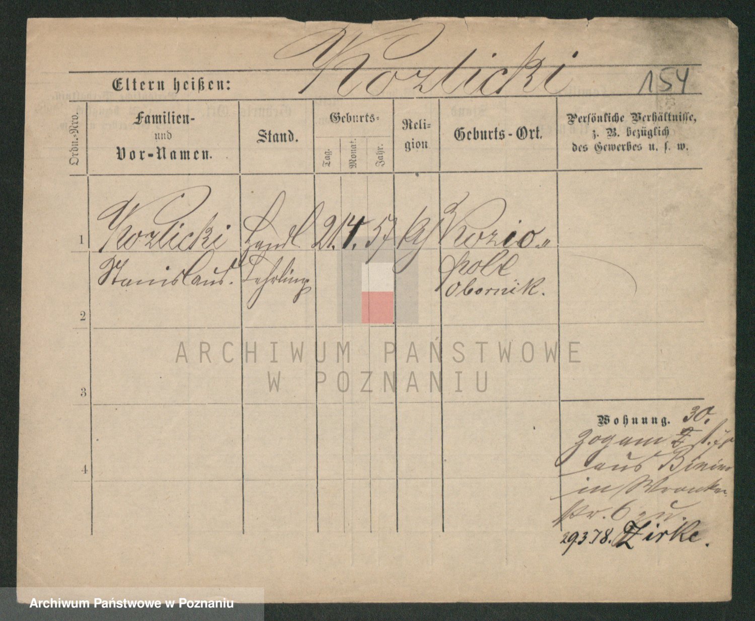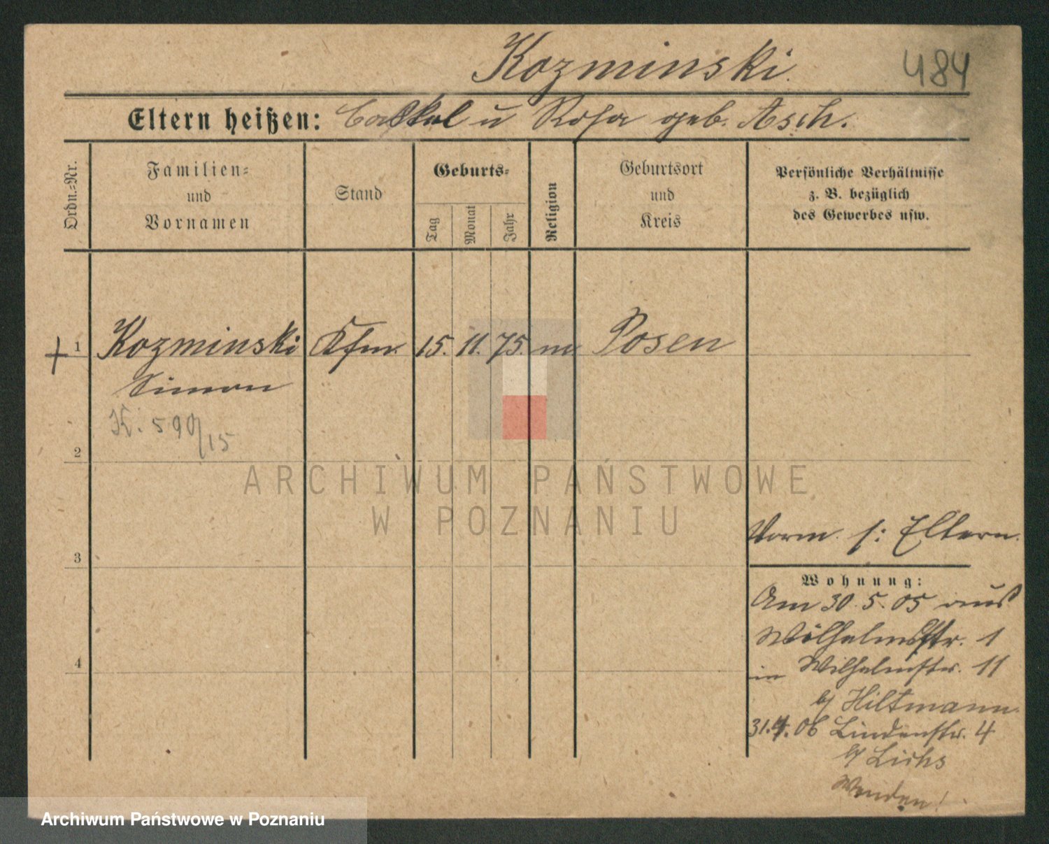 Podgląd karty osobowej dostępny jest po kliknięciu na nazwisko lub ikonkę karty. Można dokonywać powiększenia (ikony na górze) lub przechodzić między kolejnymi skanami (strzałki po bokach).