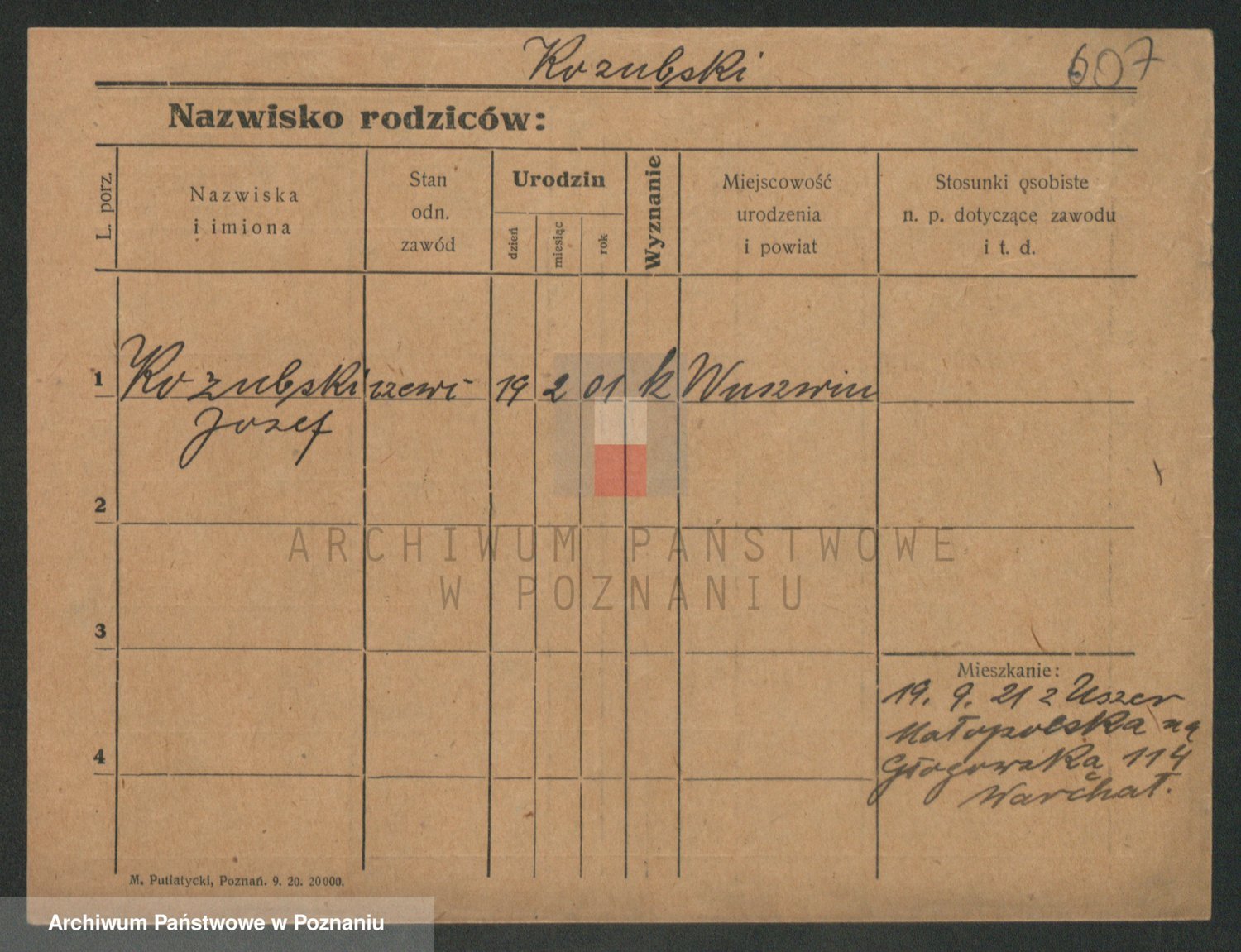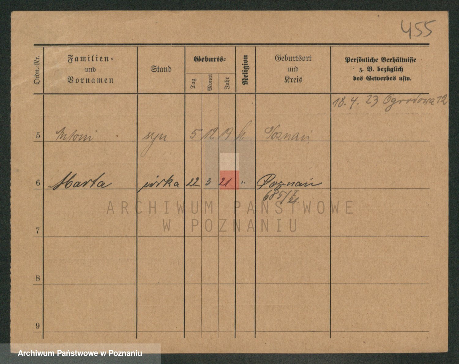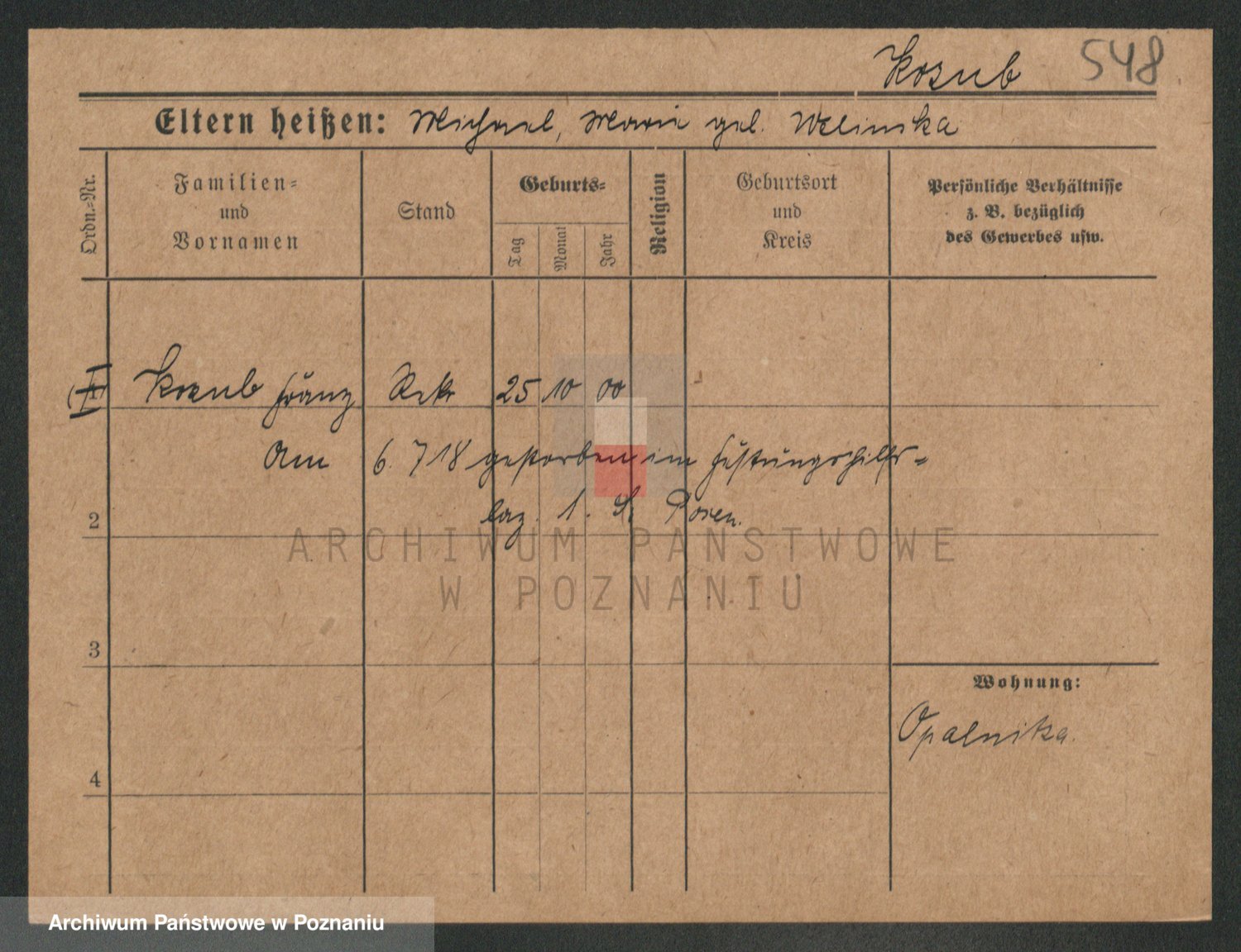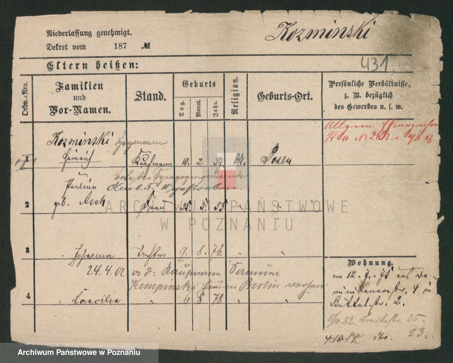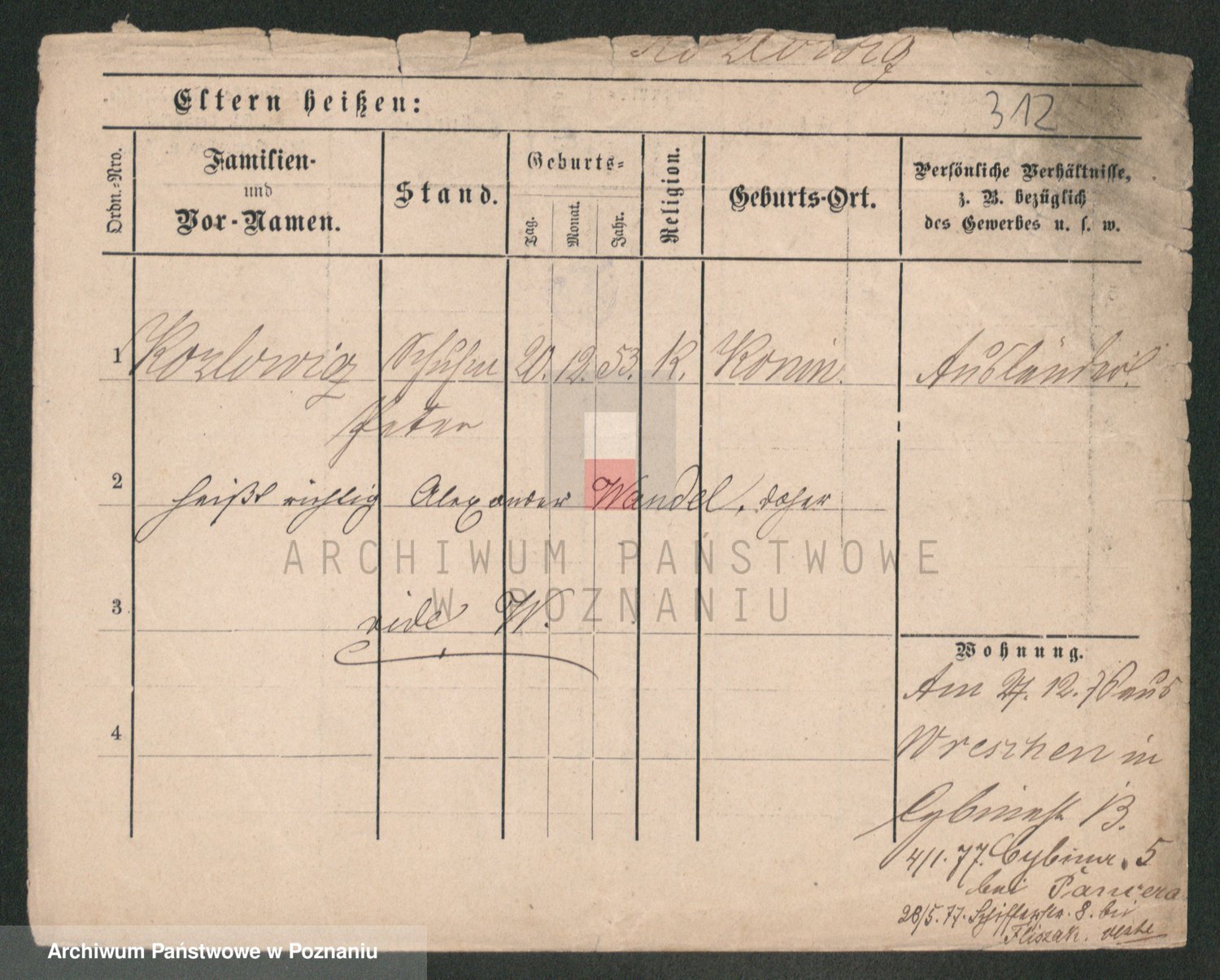 Podgląd karty osobowej dostępny jest po kliknięciu na nazwisko lub ikonkę karty. Można dokonywać powiększenia (ikony na górze) lub przechodzić między kolejnymi skanami (strzałki po bokach).