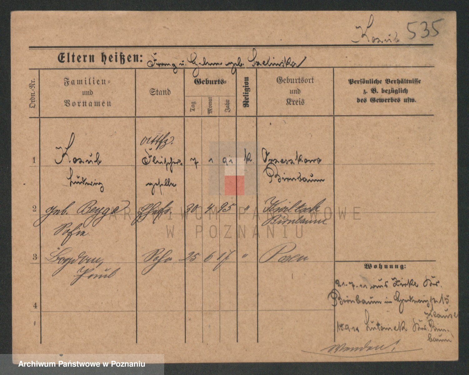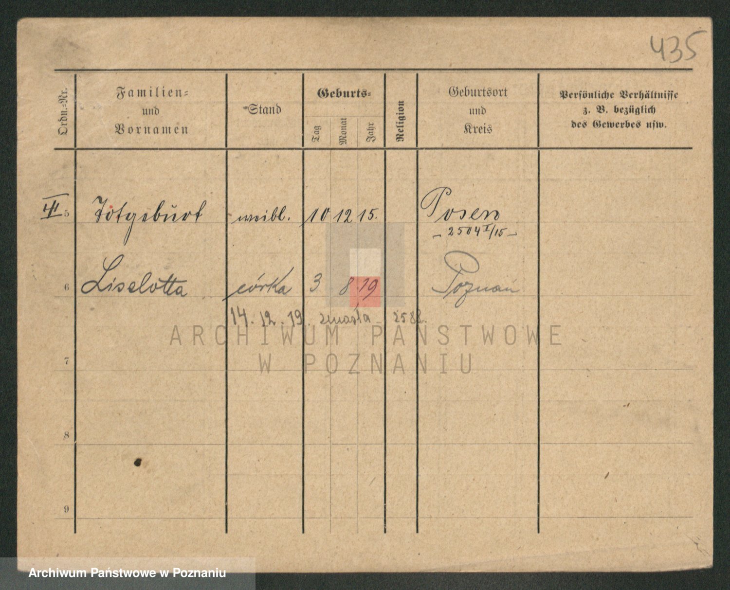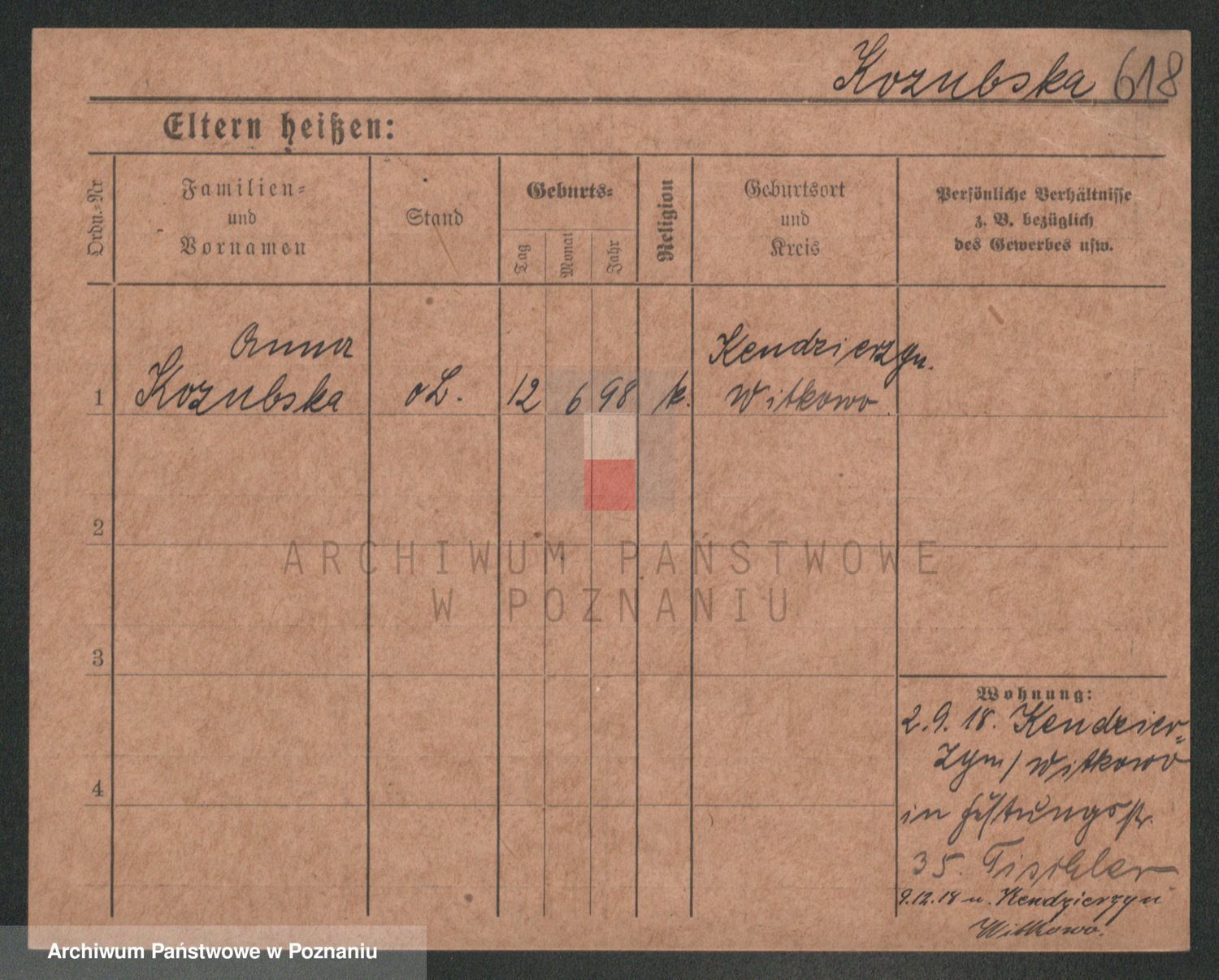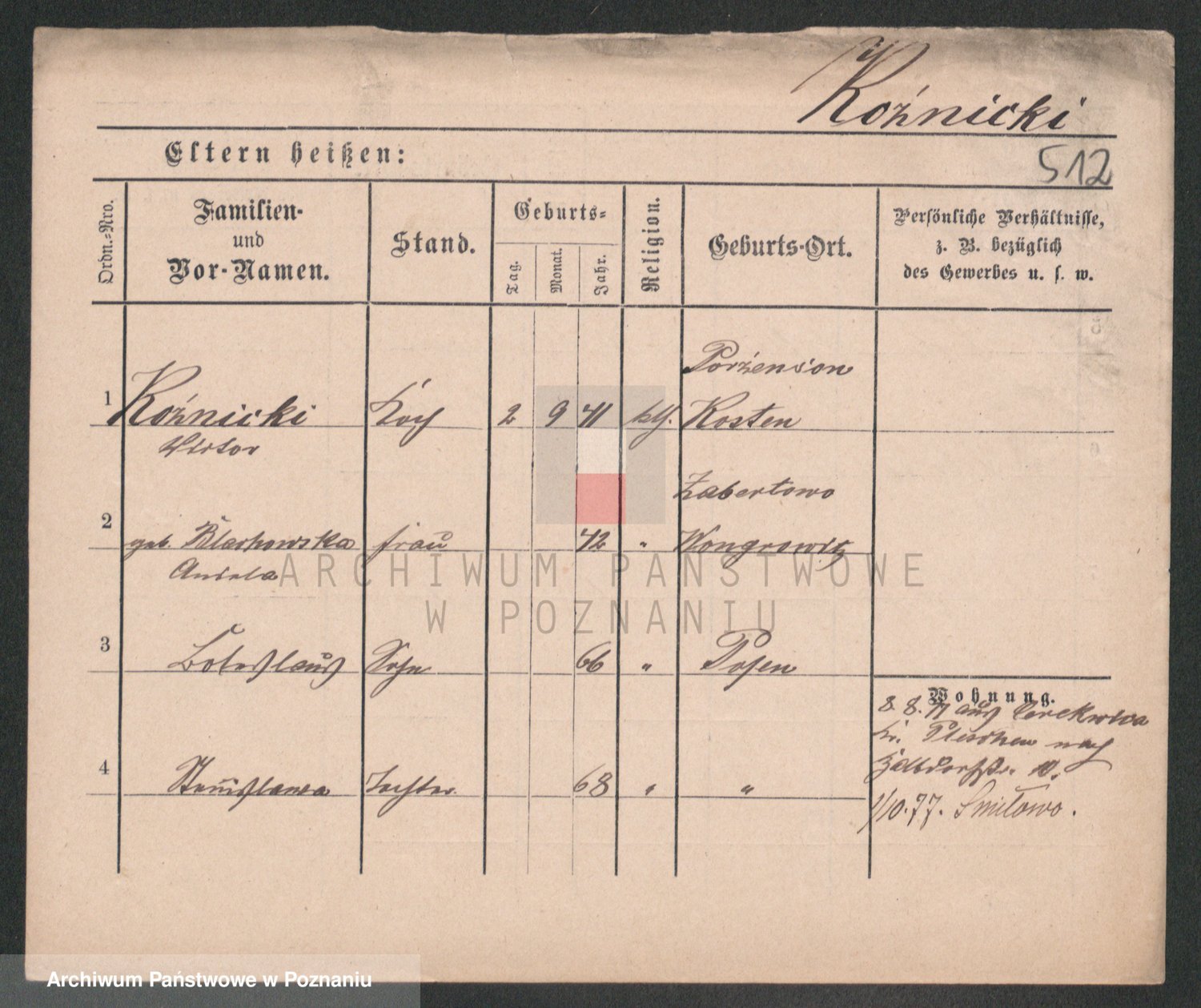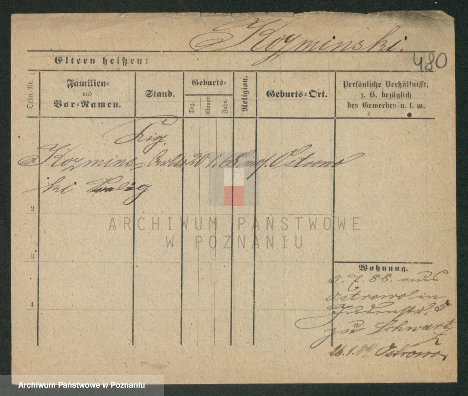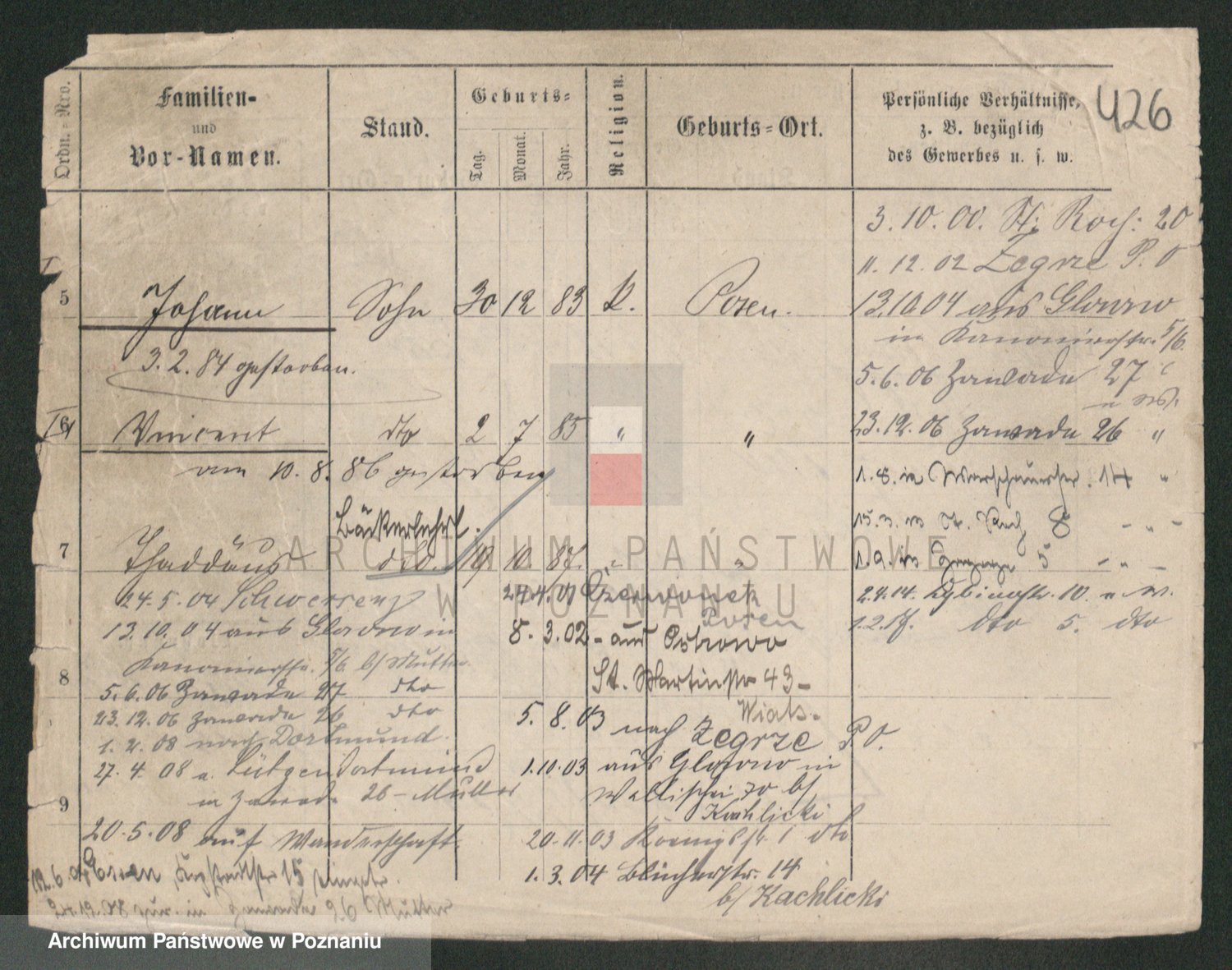 Podgląd karty osobowej dostępny jest po kliknięciu na nazwisko lub ikonkę karty. Można dokonywać powiększenia (ikony na górze) lub przechodzić między kolejnymi skanami (strzałki po bokach).