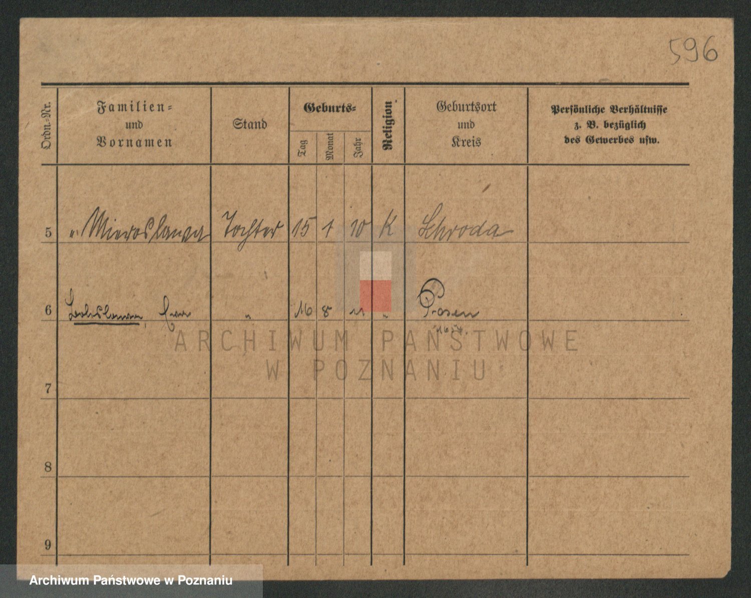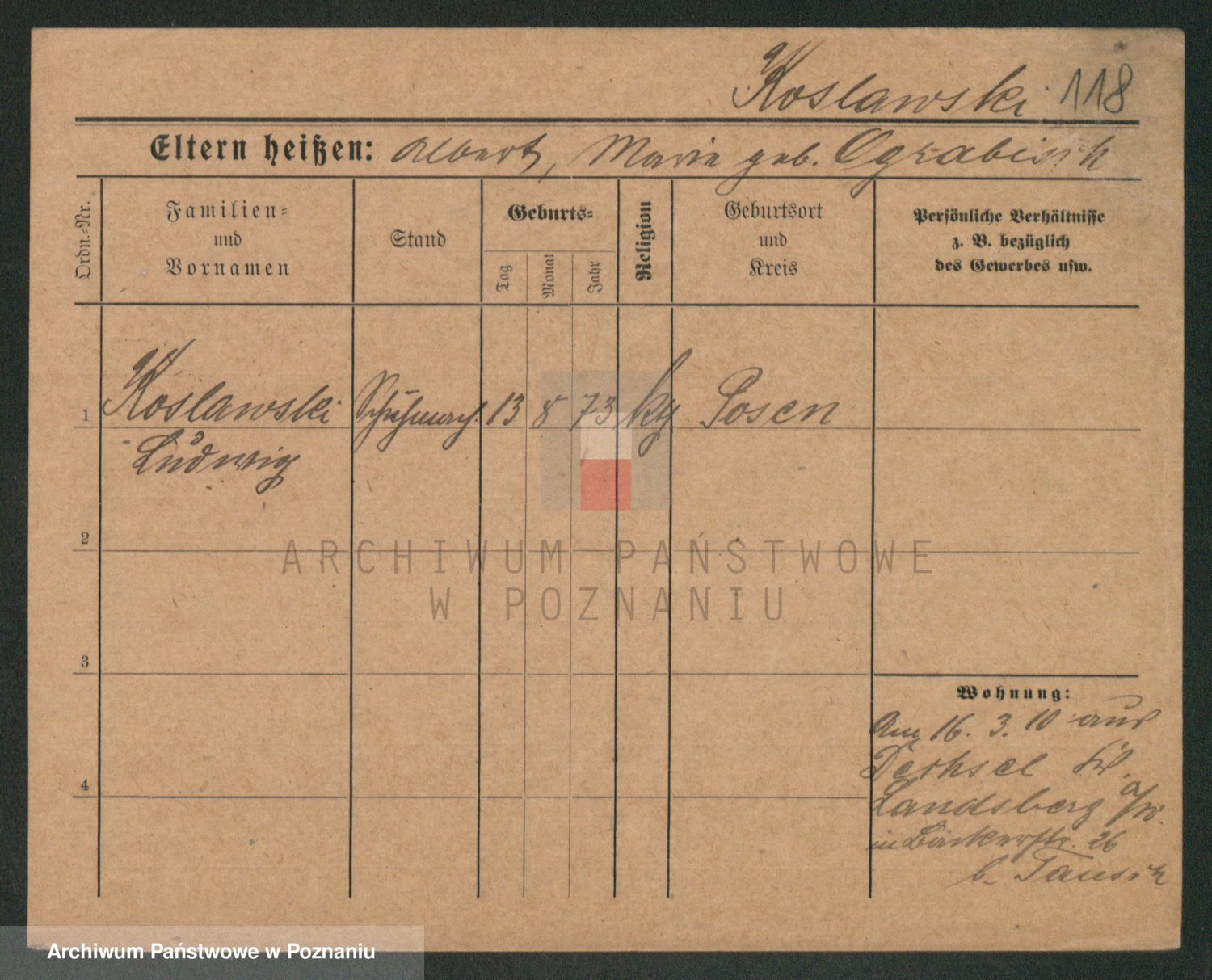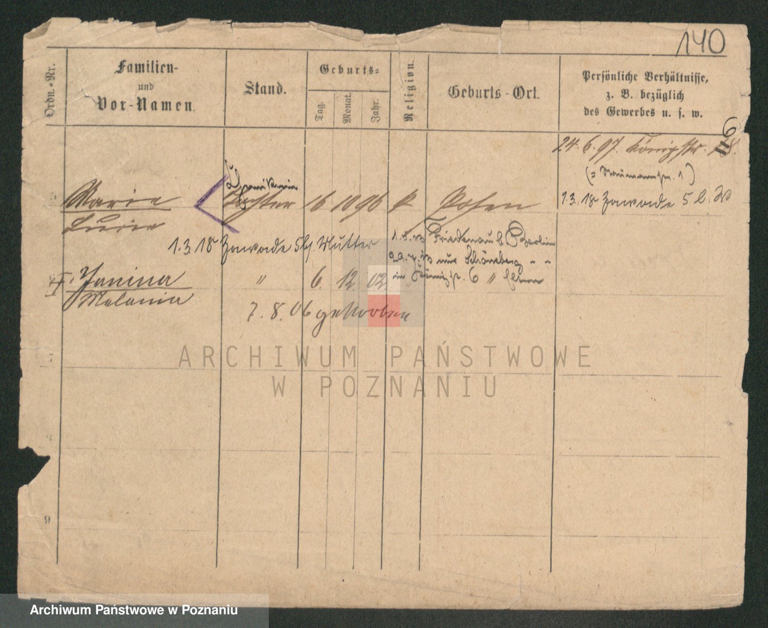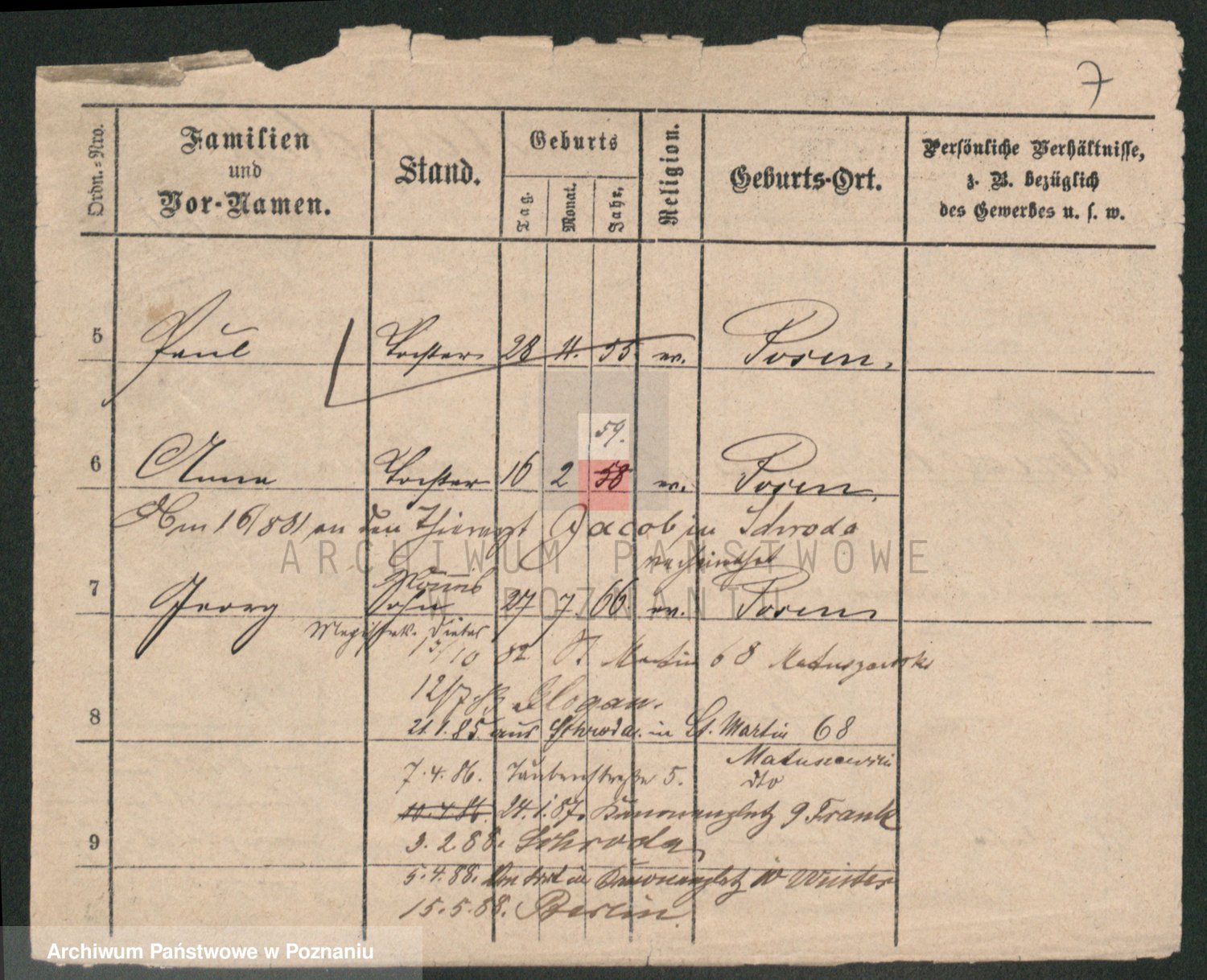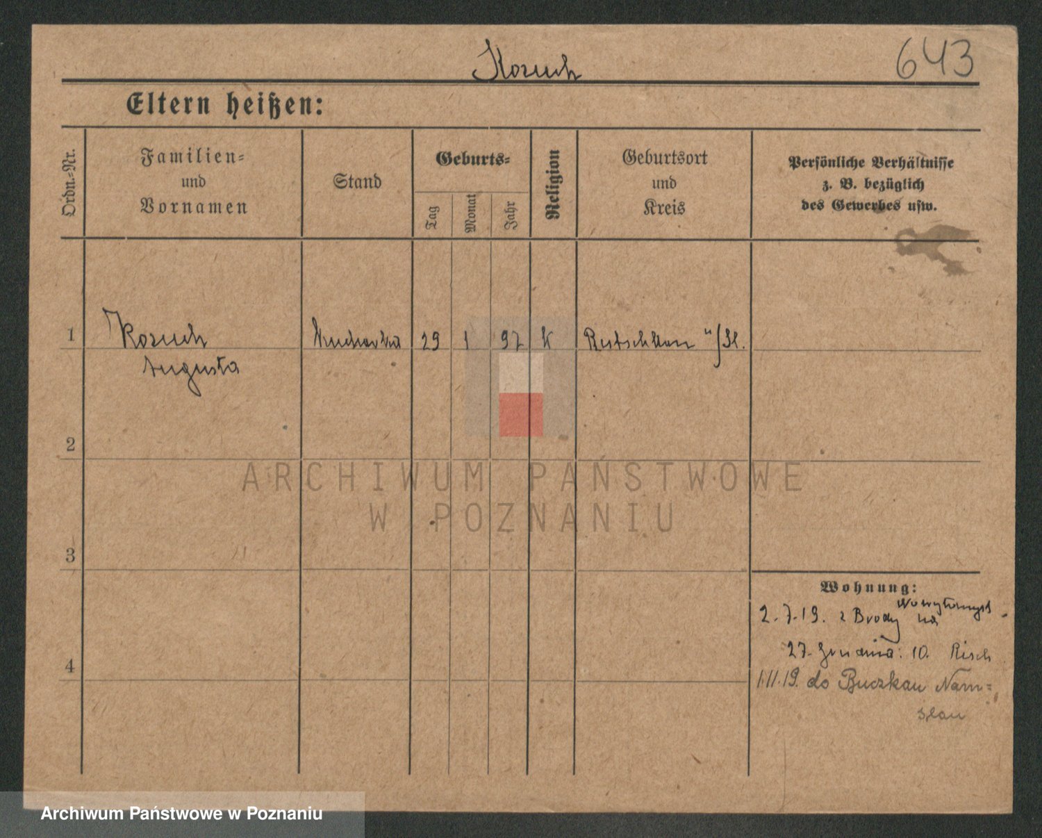 Podgląd karty osobowej dostępny jest po kliknięciu na nazwisko lub ikonkę karty. Można dokonywać powiększenia (ikony na górze) lub przechodzić między kolejnymi skanami (strzałki po bokach).