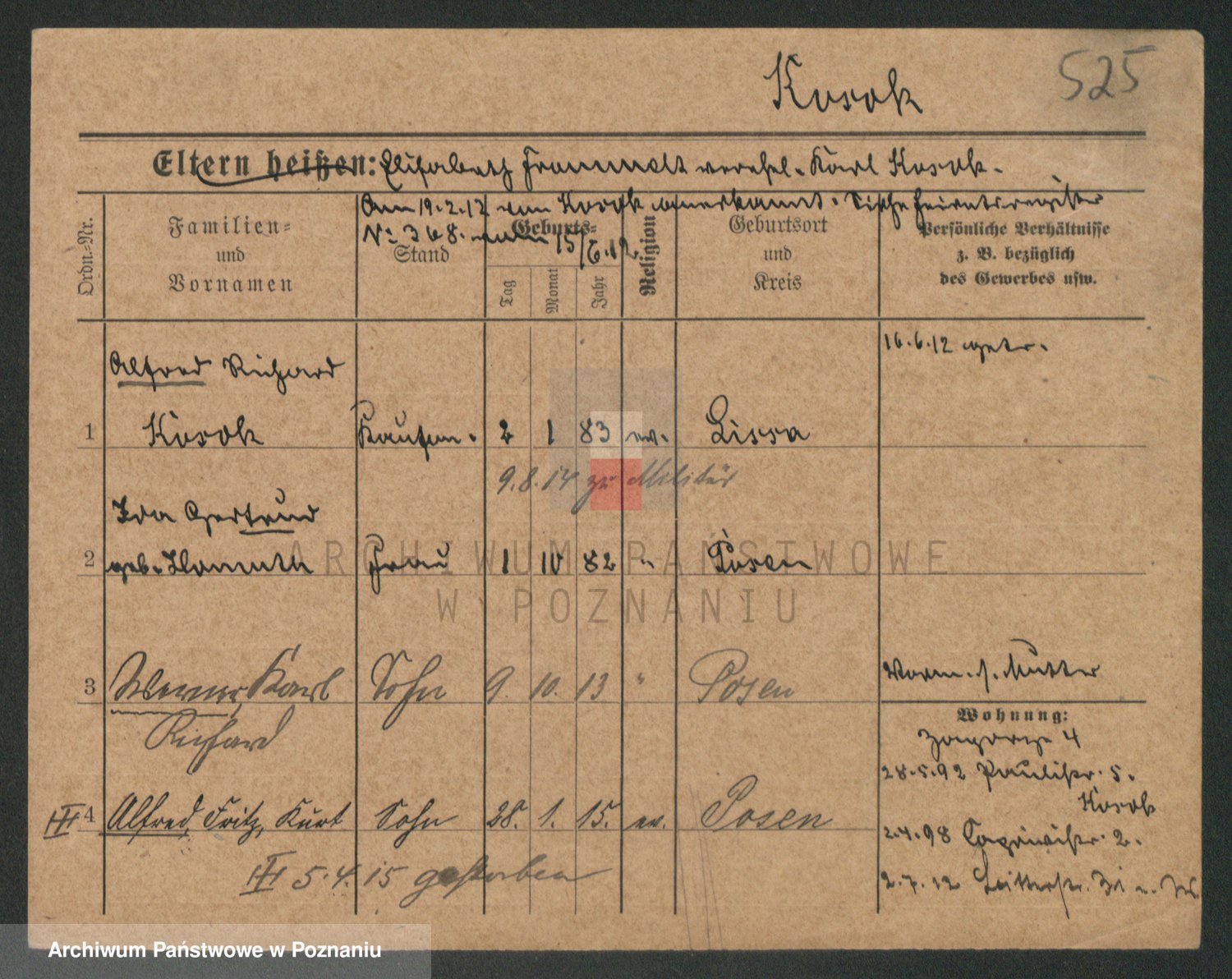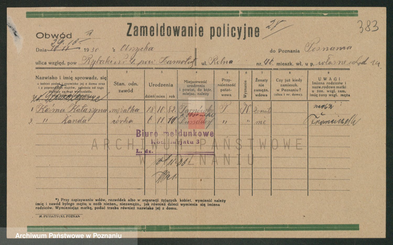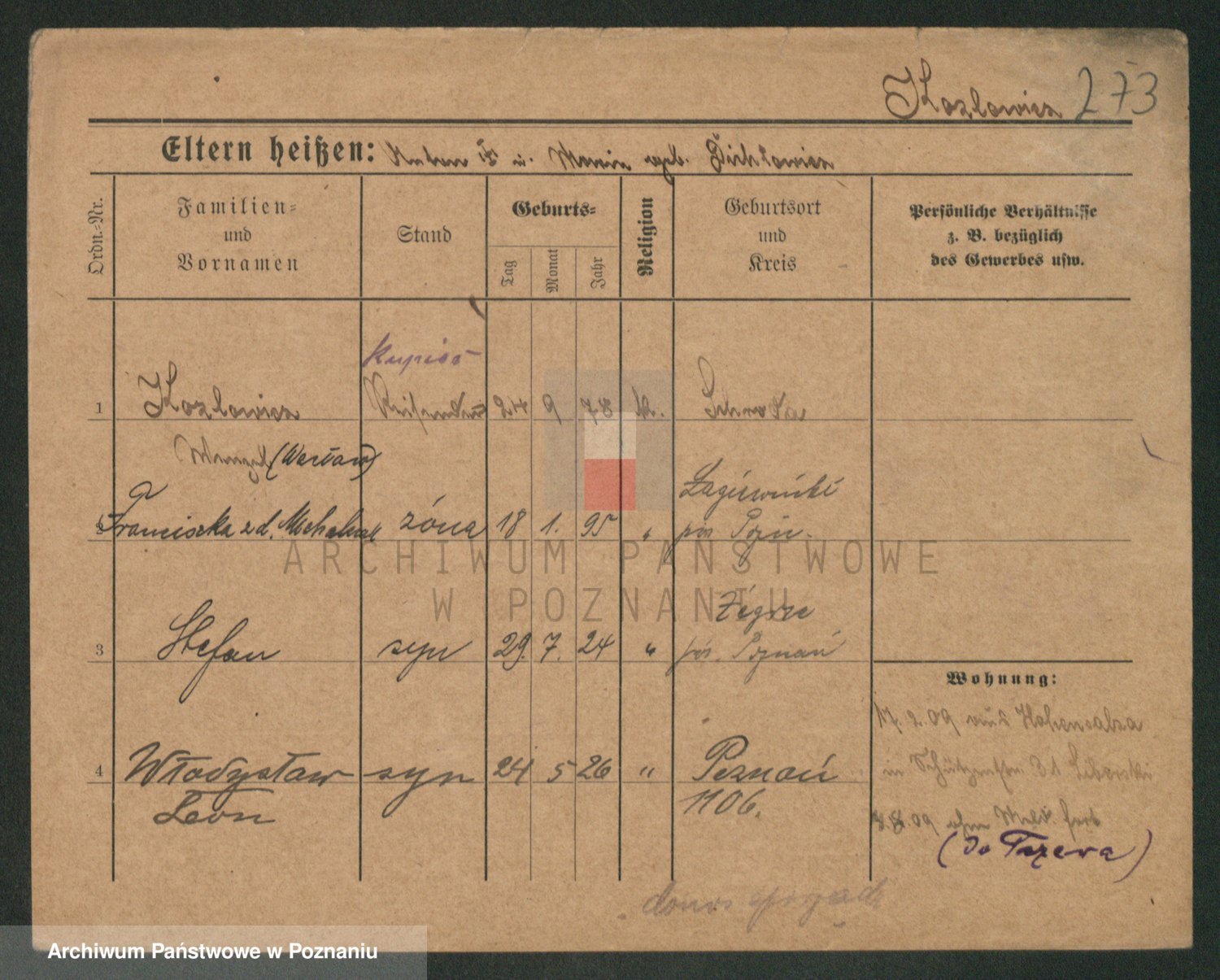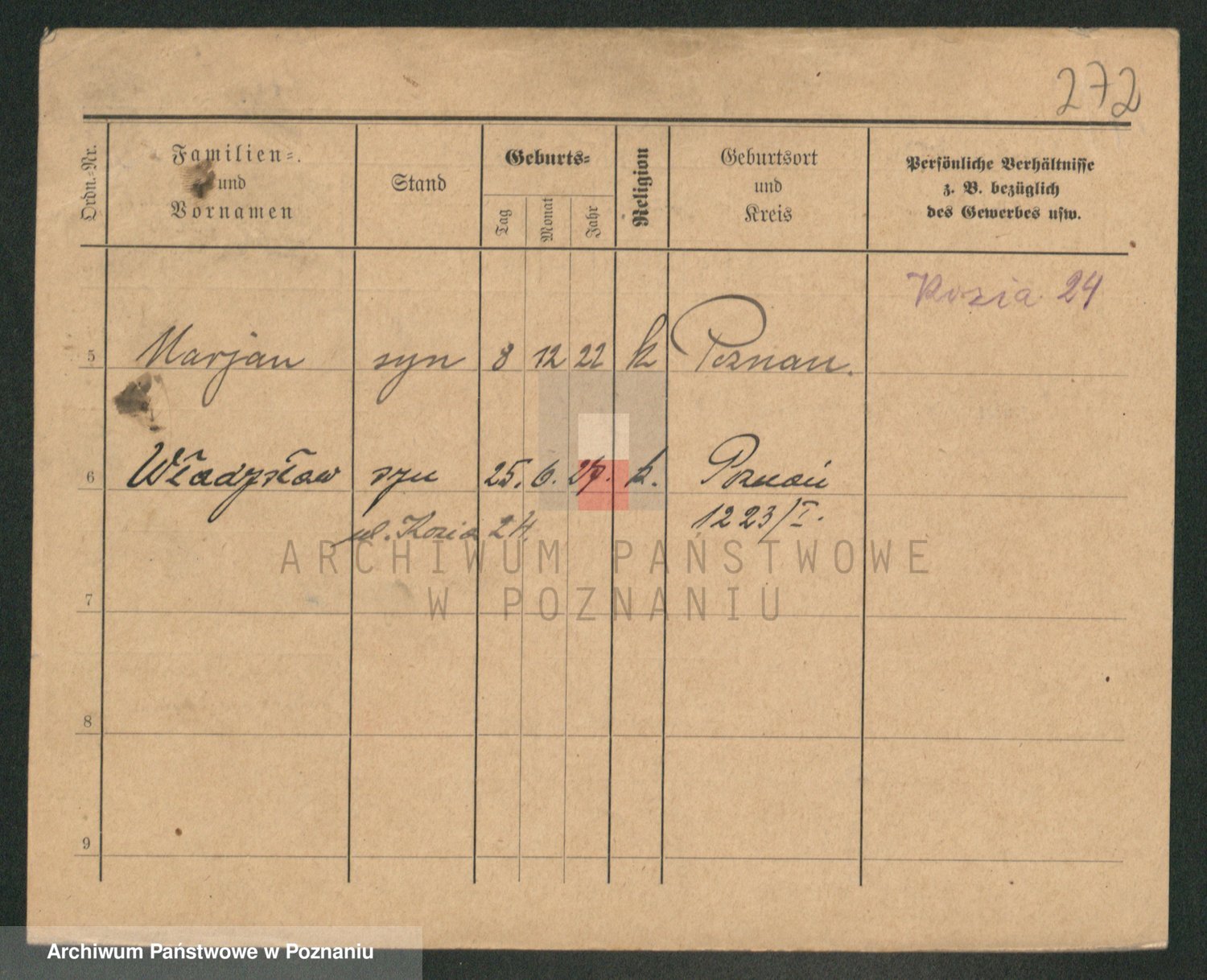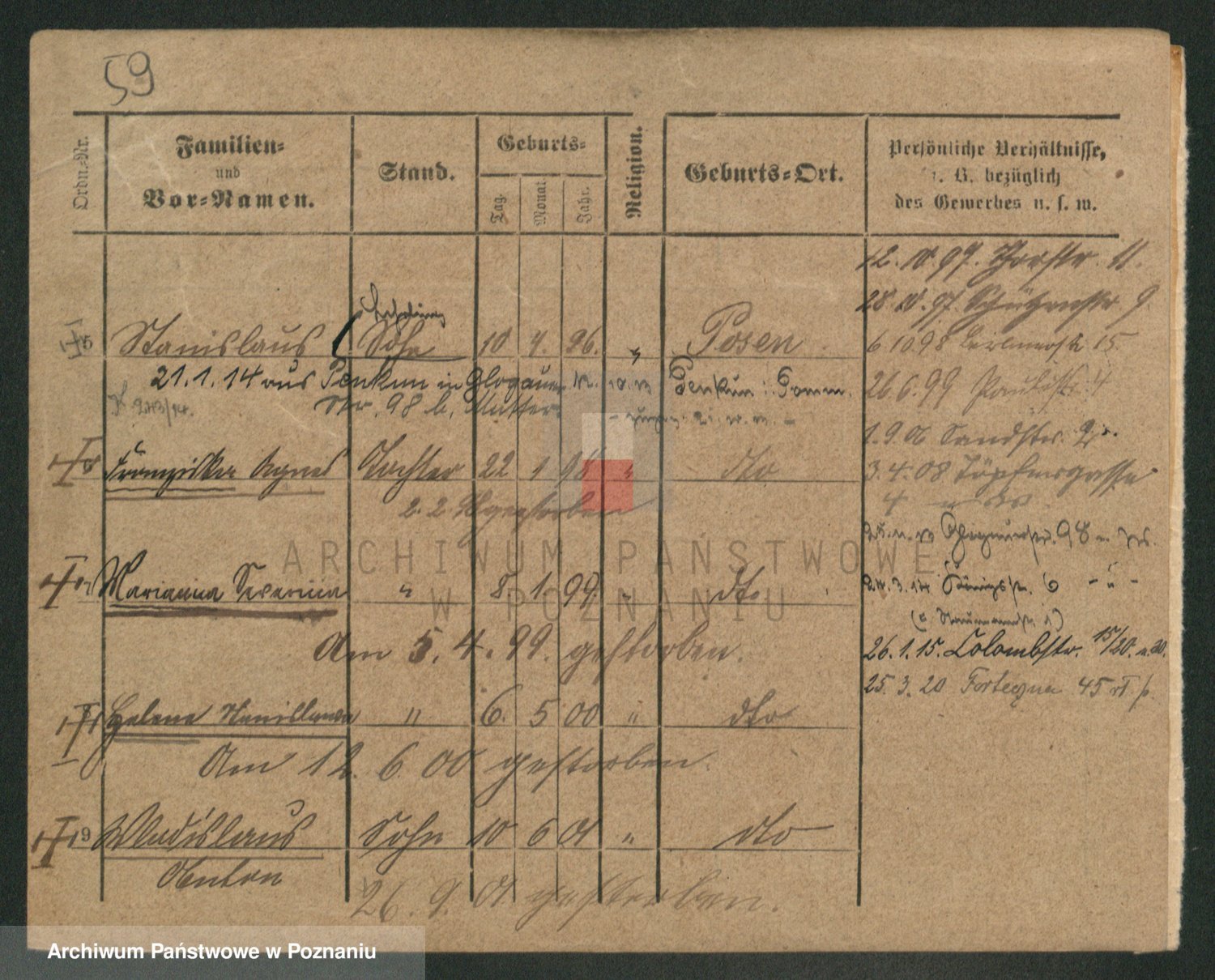 Podgląd karty osobowej dostępny jest po kliknięciu na nazwisko lub ikonkę karty. Można dokonywać powiększenia (ikony na górze) lub przechodzić między kolejnymi skanami (strzałki po bokach).