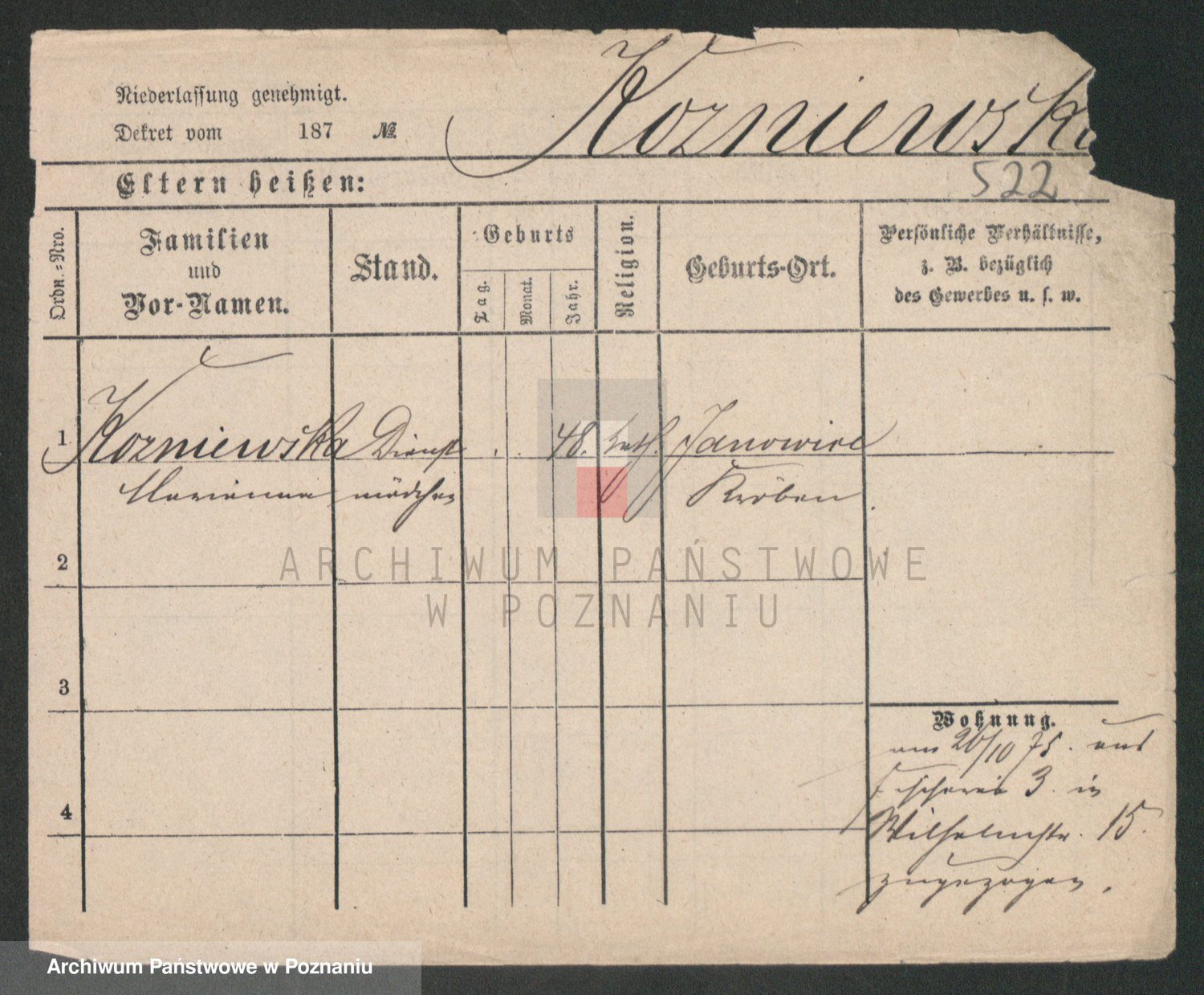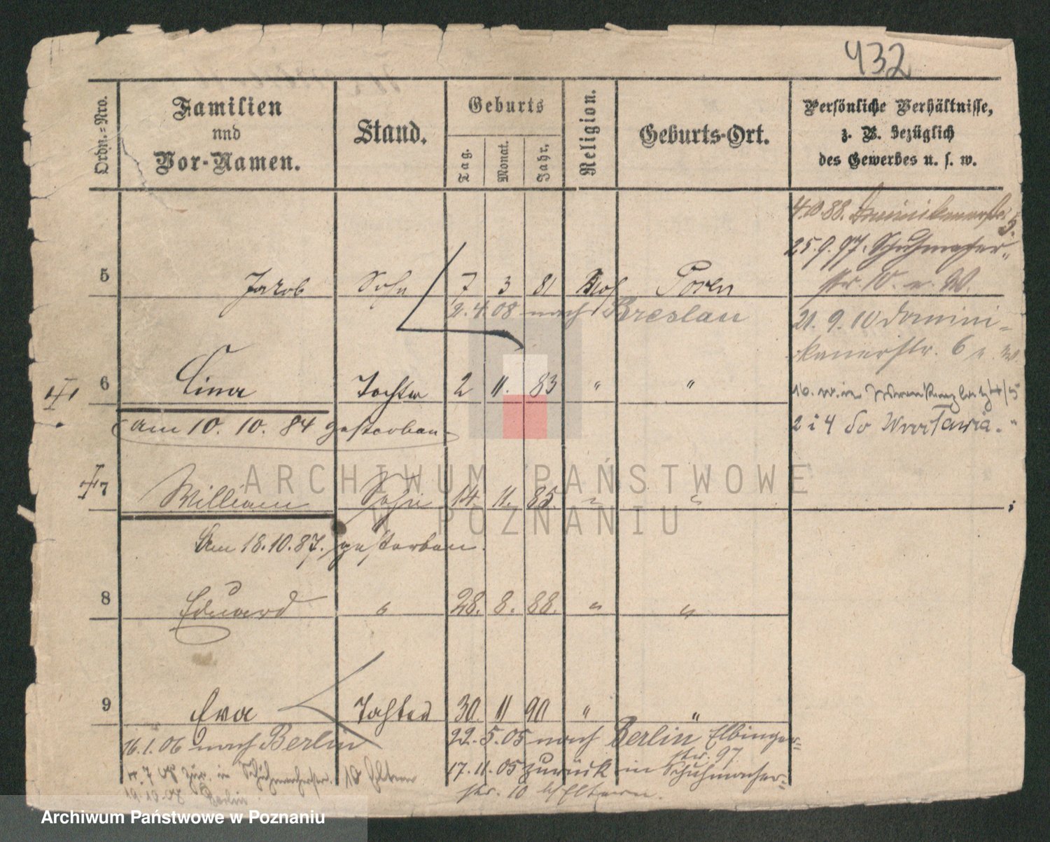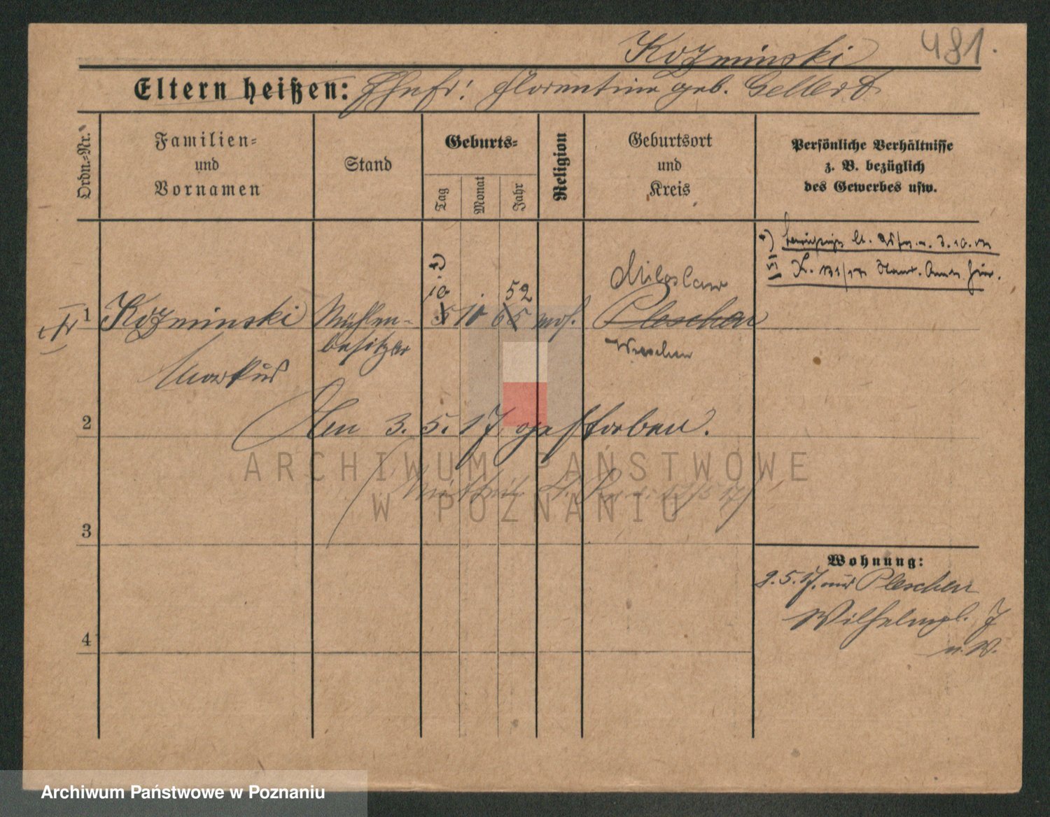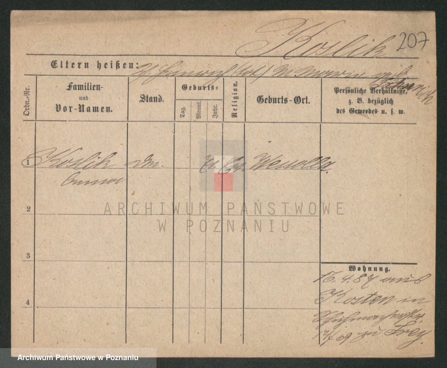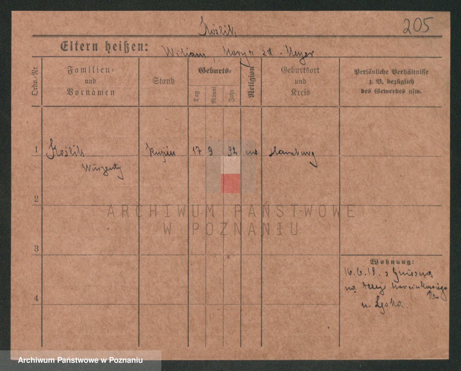 Podgląd karty osobowej dostępny jest po kliknięciu na nazwisko lub ikonkę karty. Można dokonywać powiększenia (ikony na górze) lub przechodzić między kolejnymi skanami (strzałki po bokach).