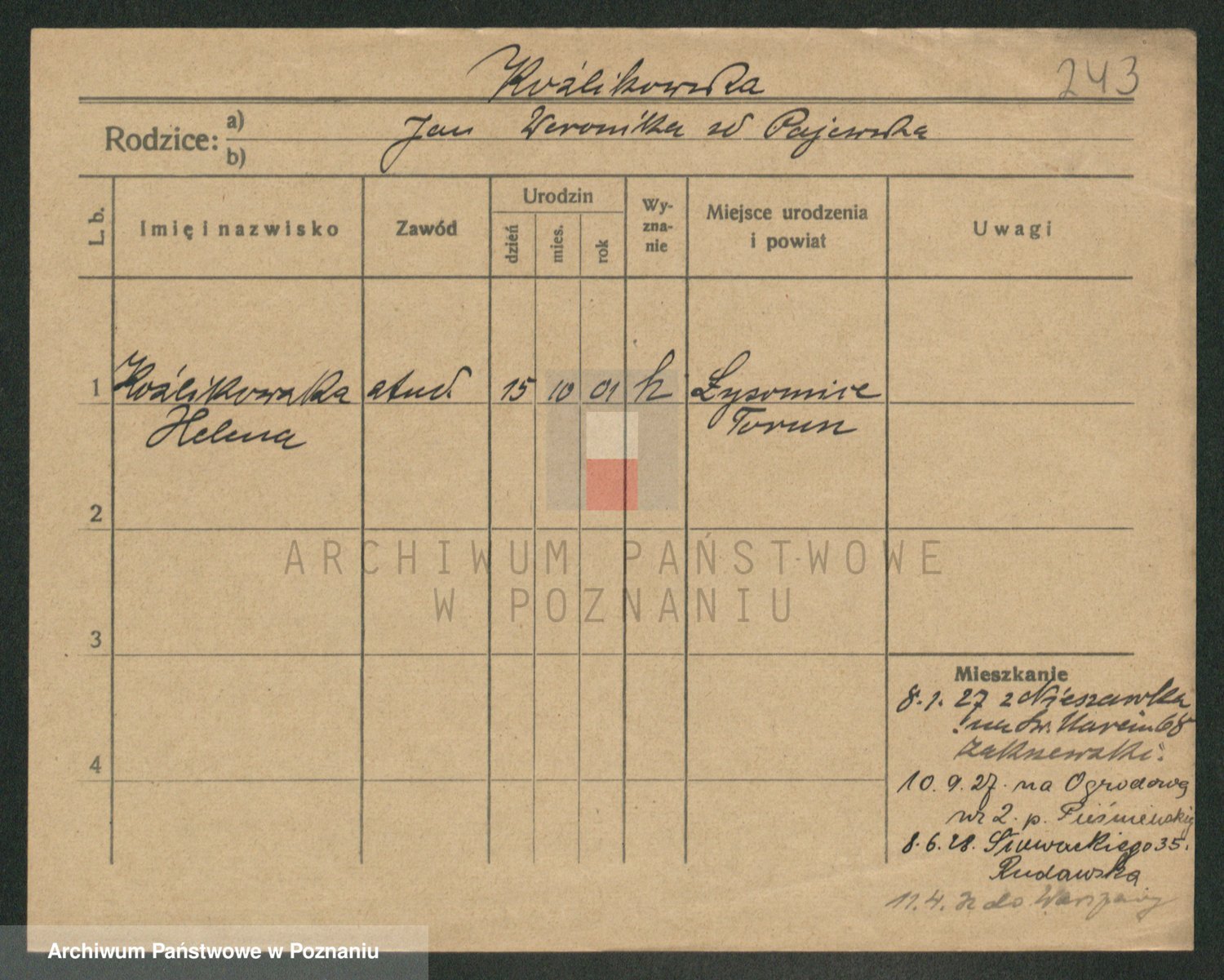 Kozyrowski z d. Ratajczyk, Jadwiga