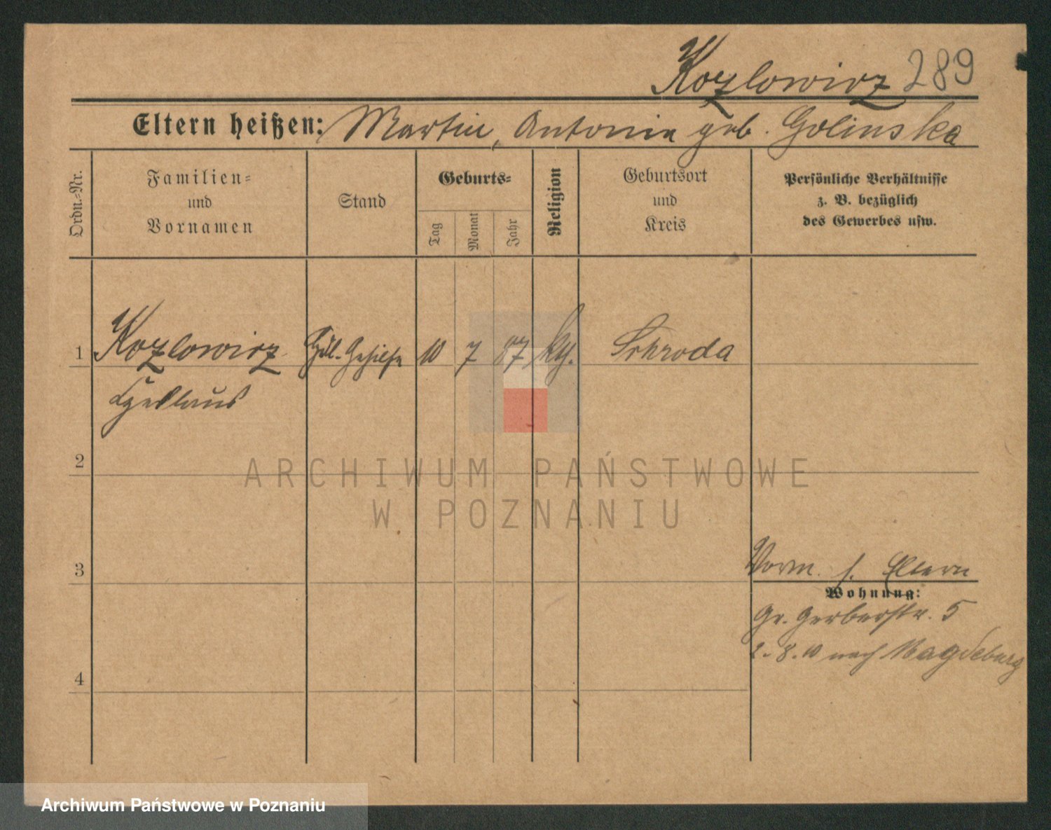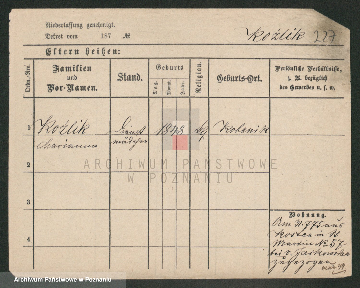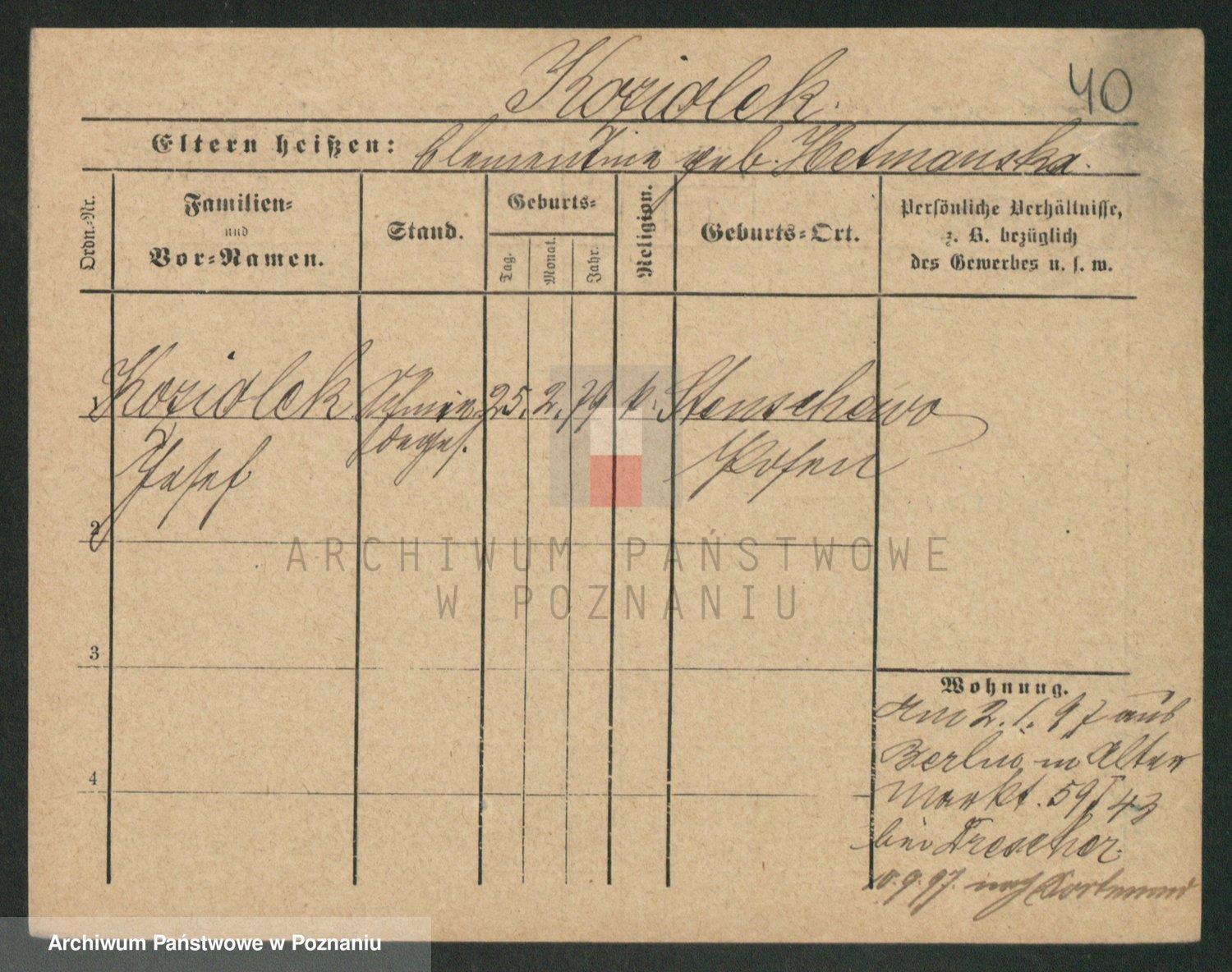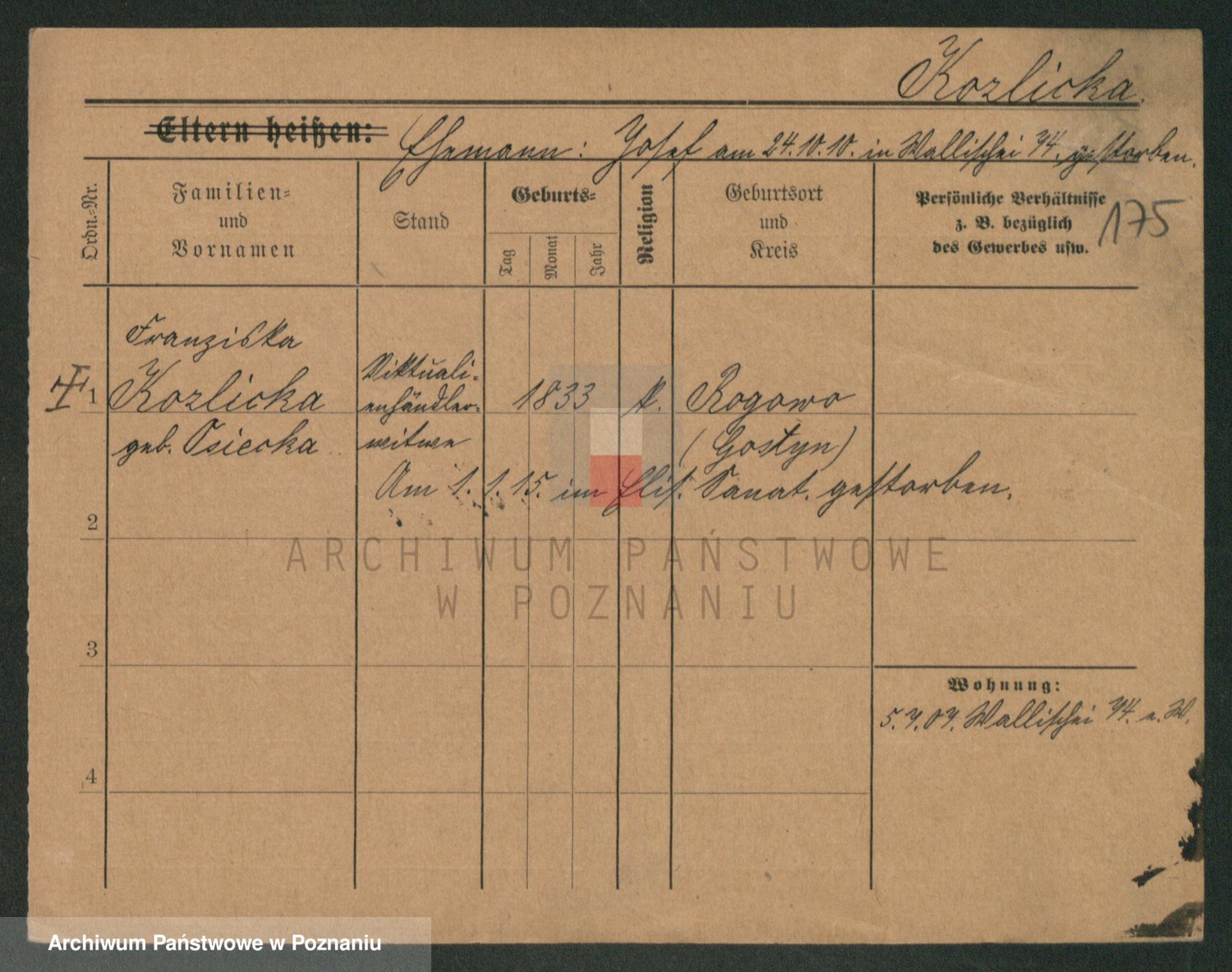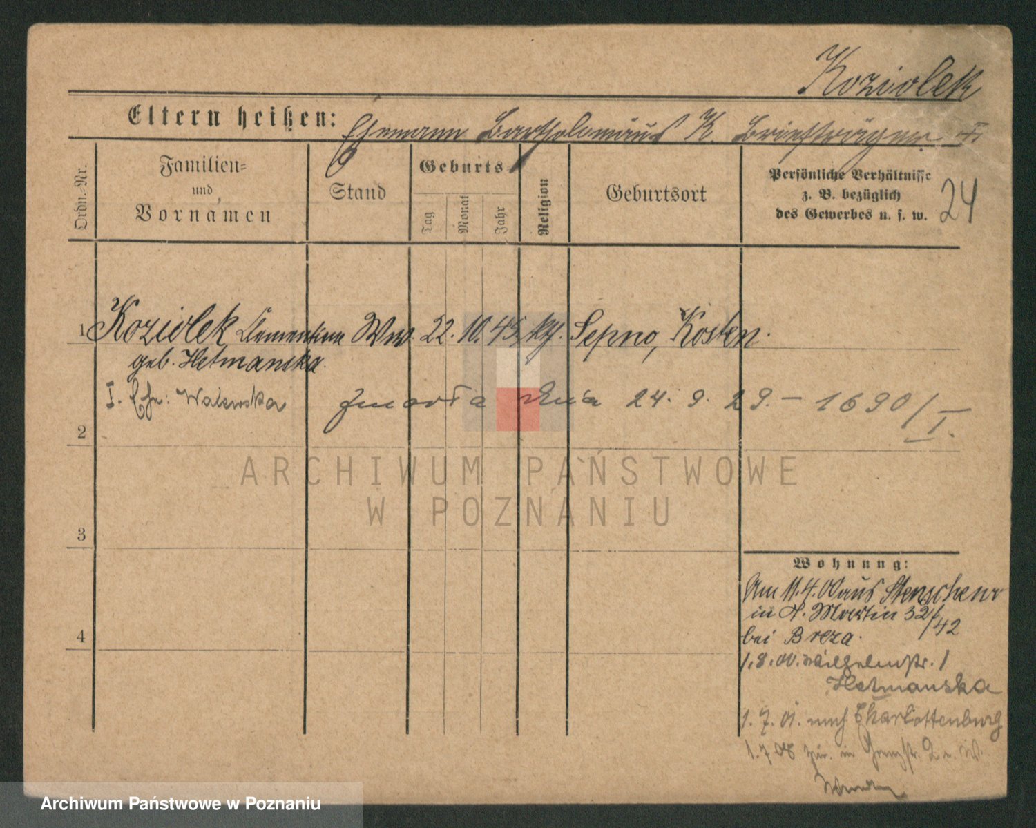 Koziołek z d. Kliczynska I v. Kleinwächter, Josefa