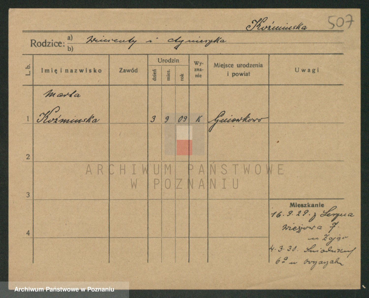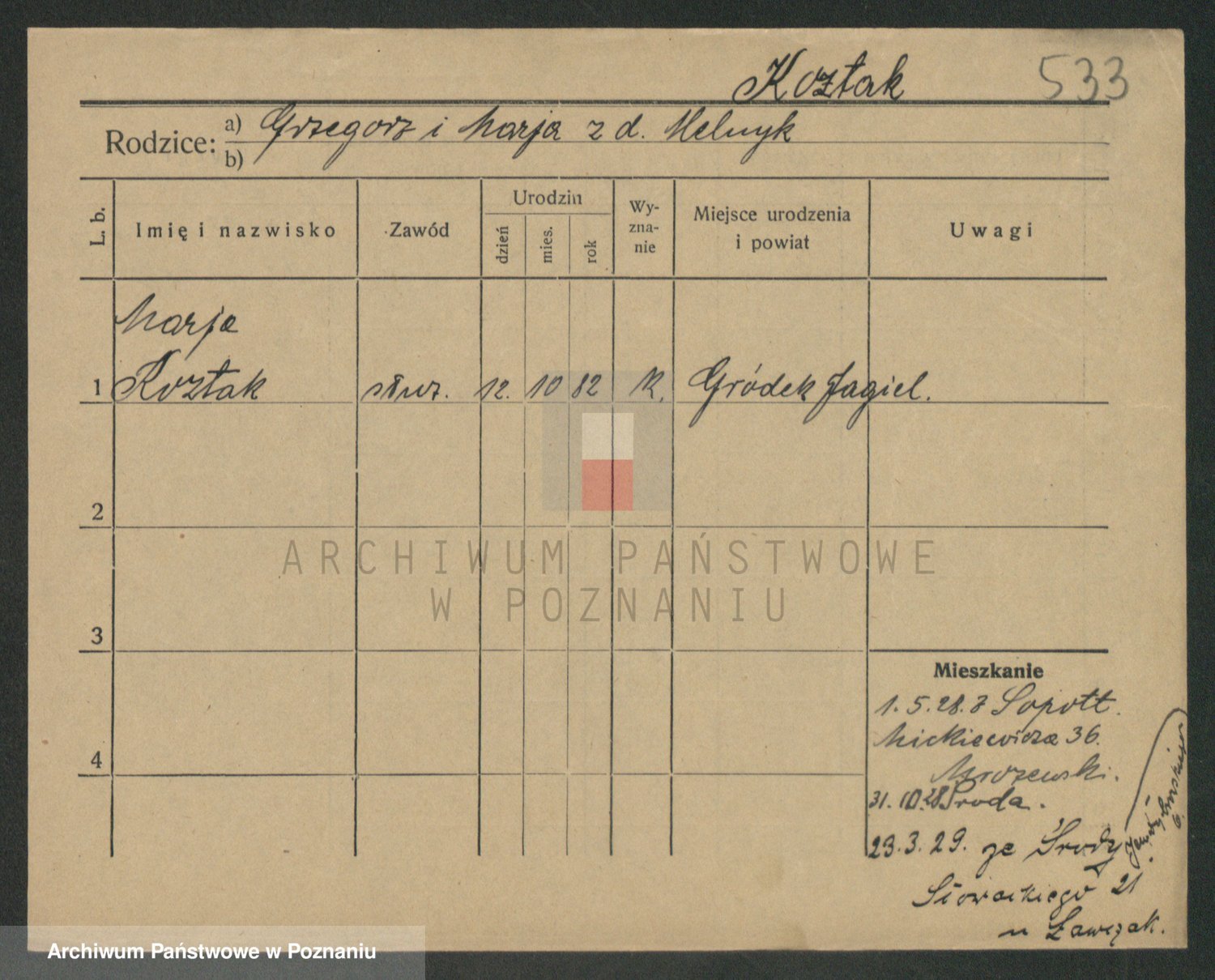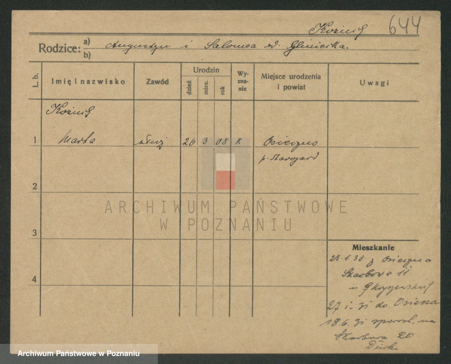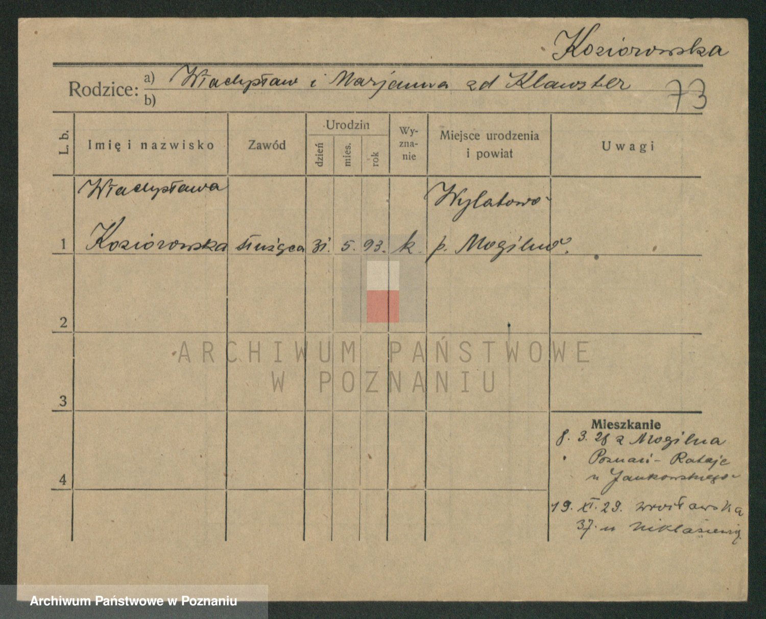 Kożyska, Marie