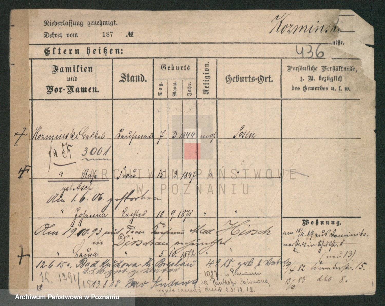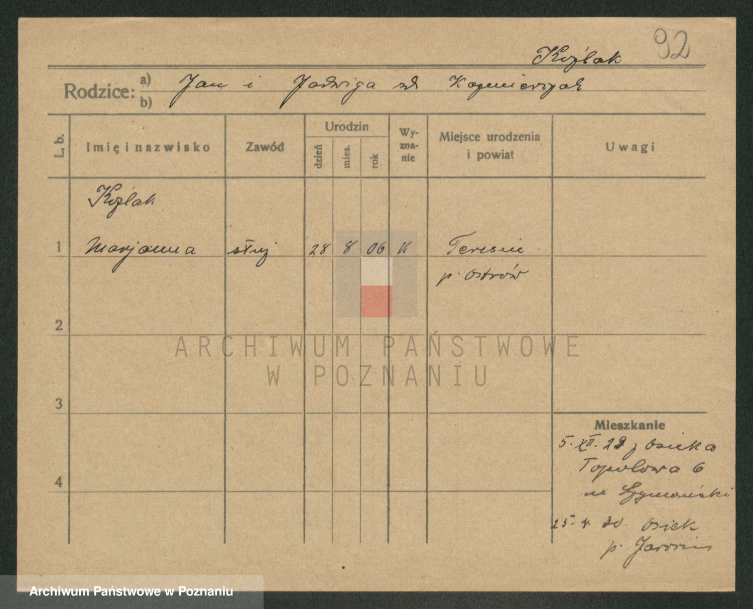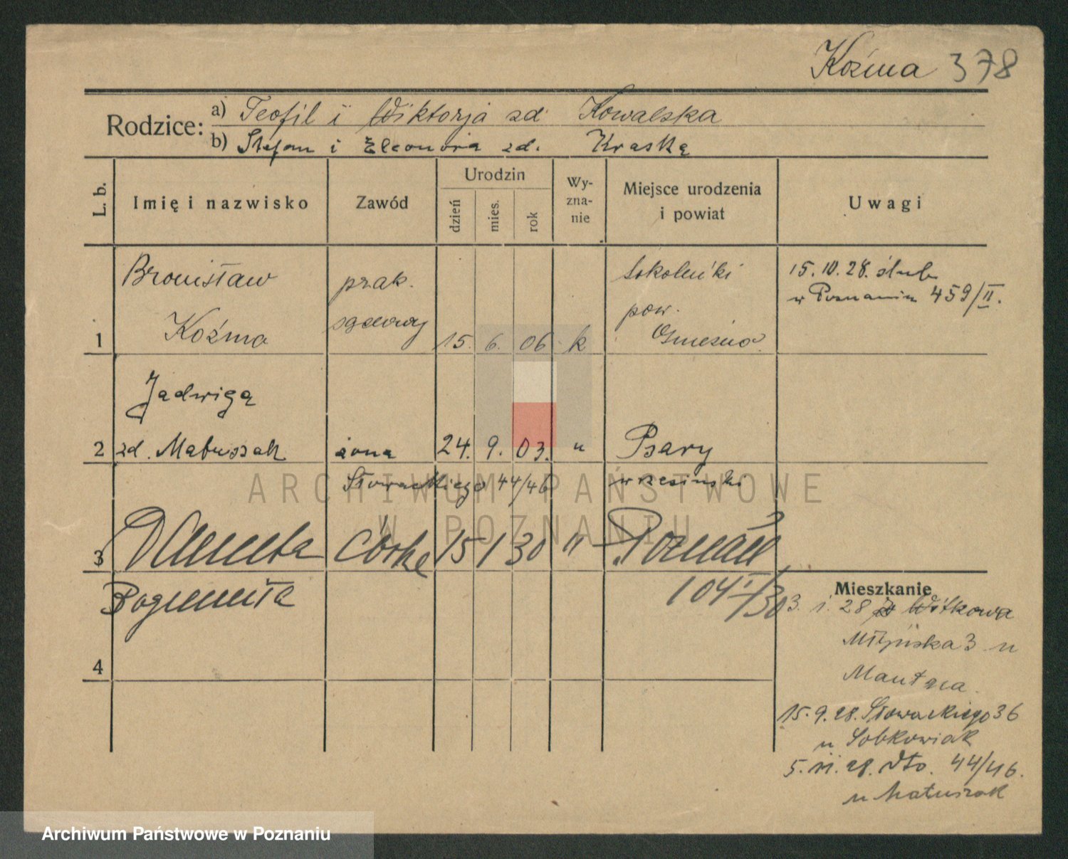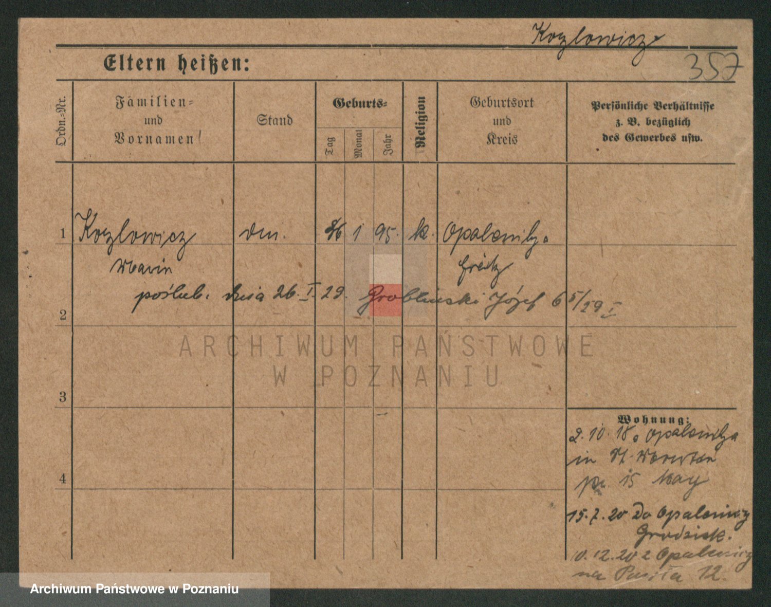 Kożyska, Marie