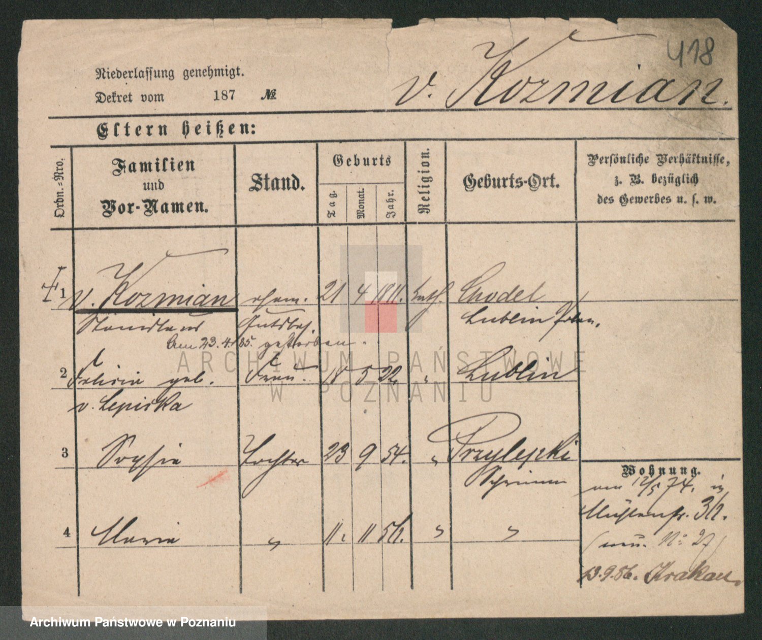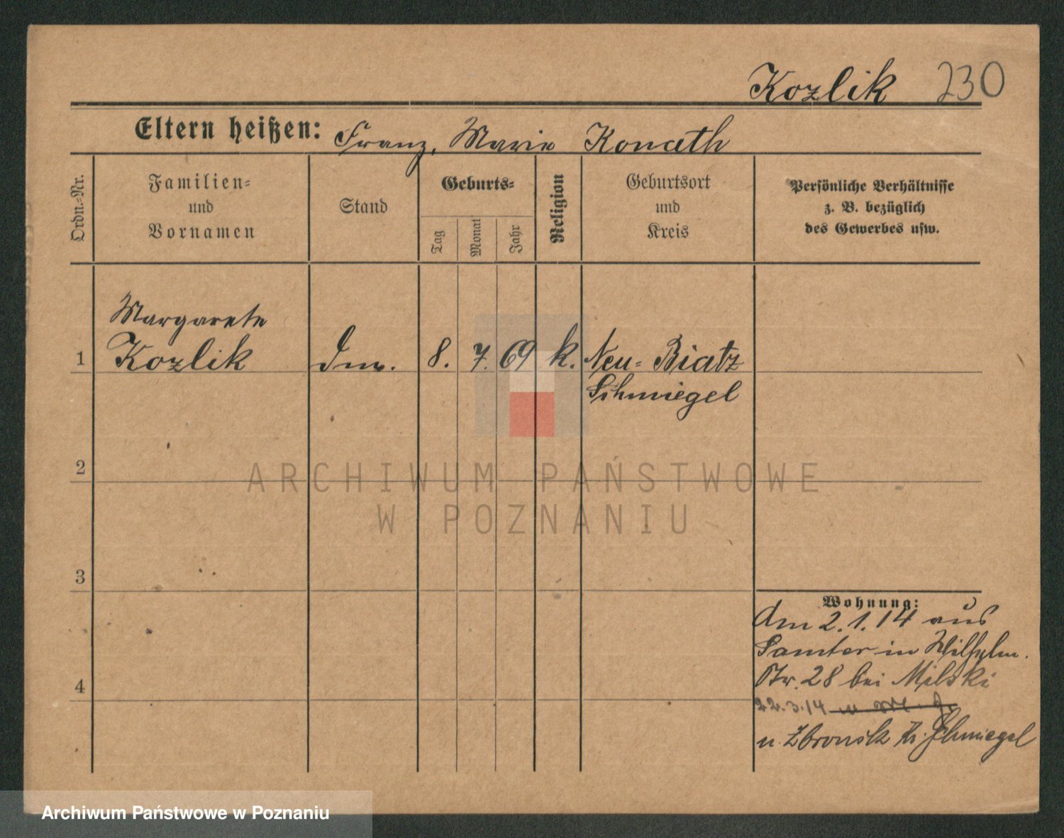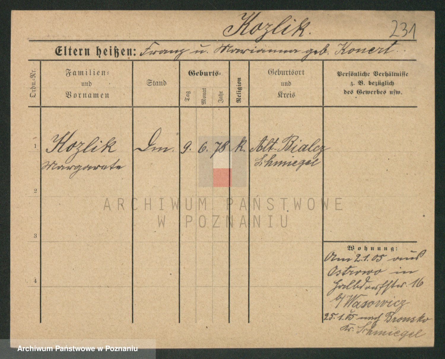 Koziołek z d. Kaczmarek, Konstancja