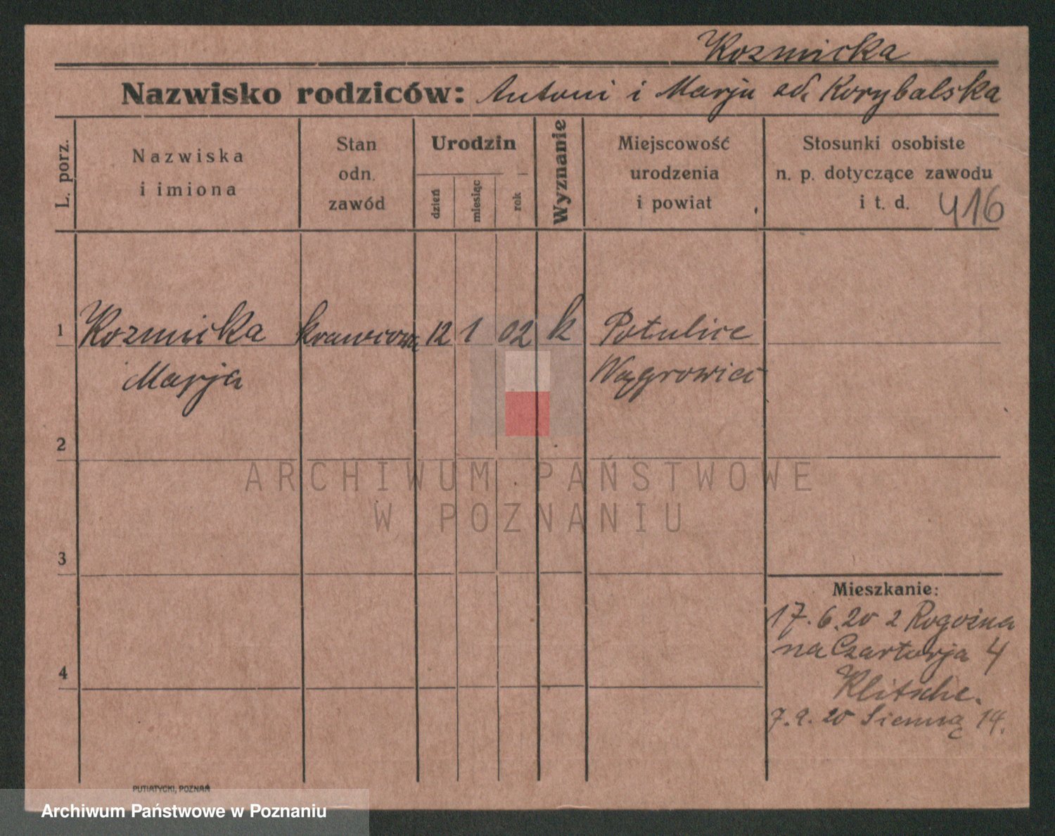 Kozyrowska z d. Rachan, Marja