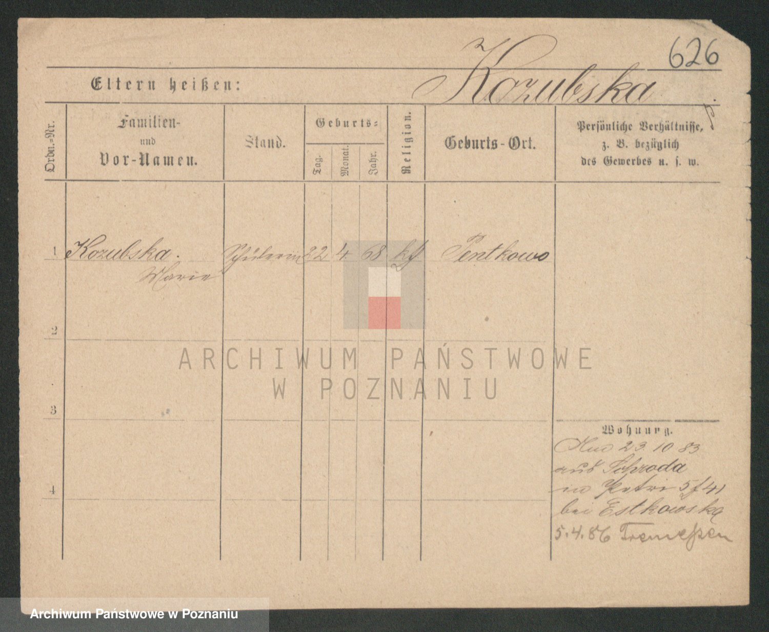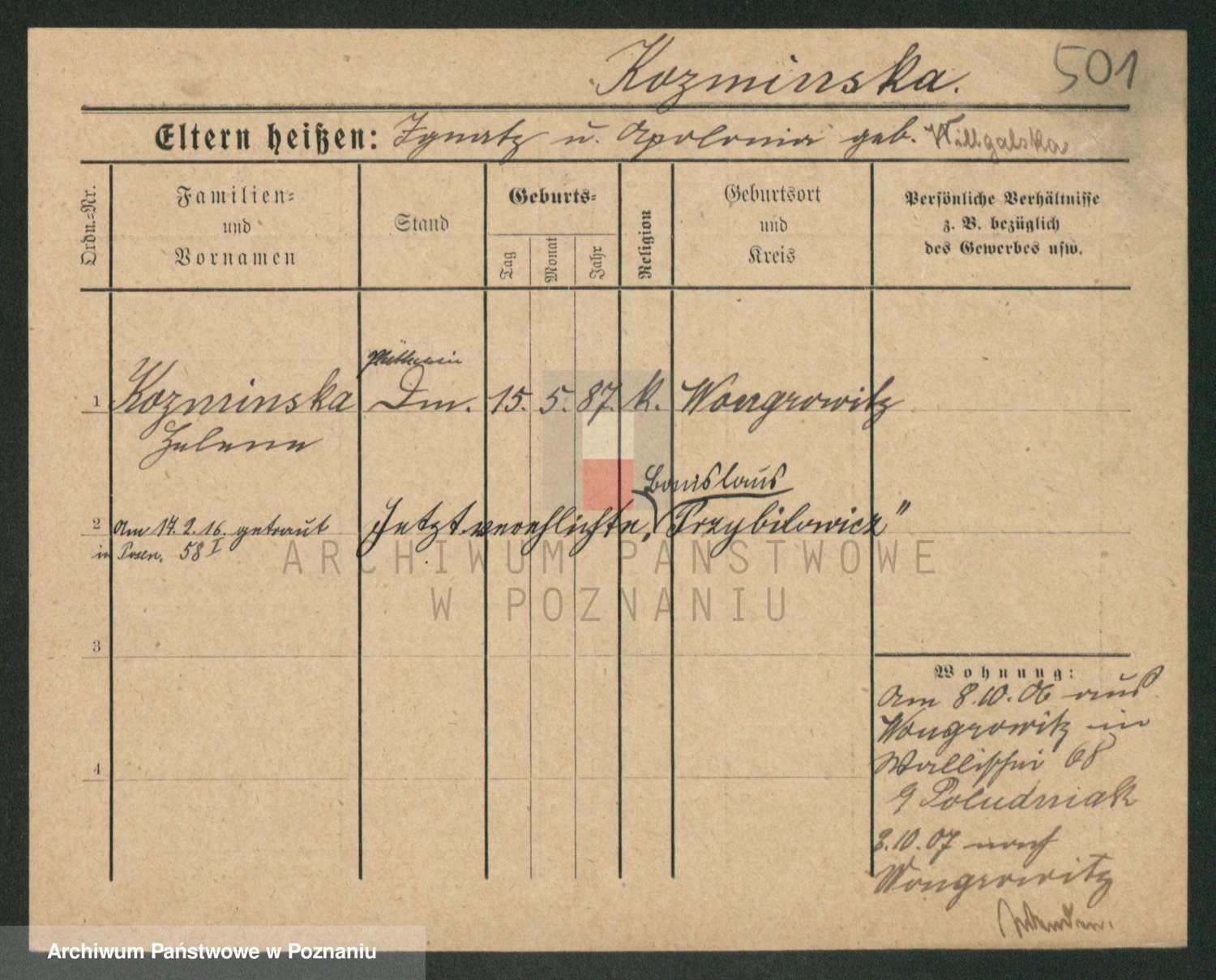 Kozyrowski z d. Przybilska, Wictoria