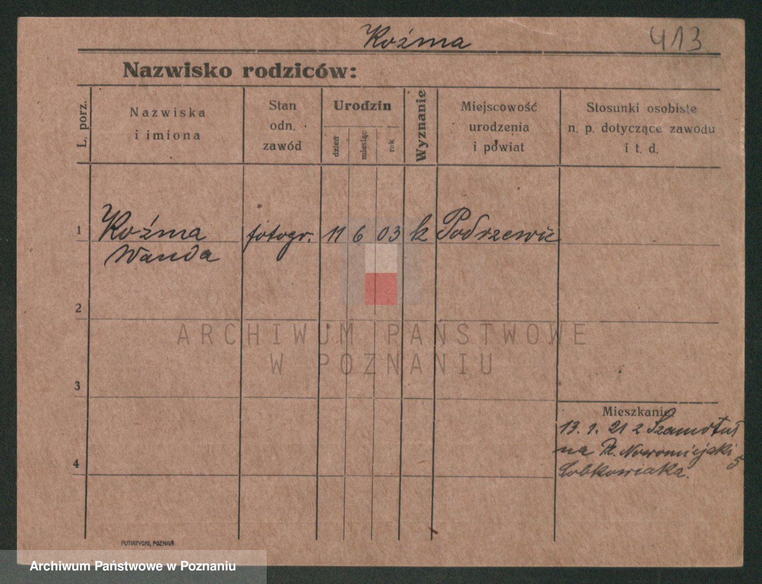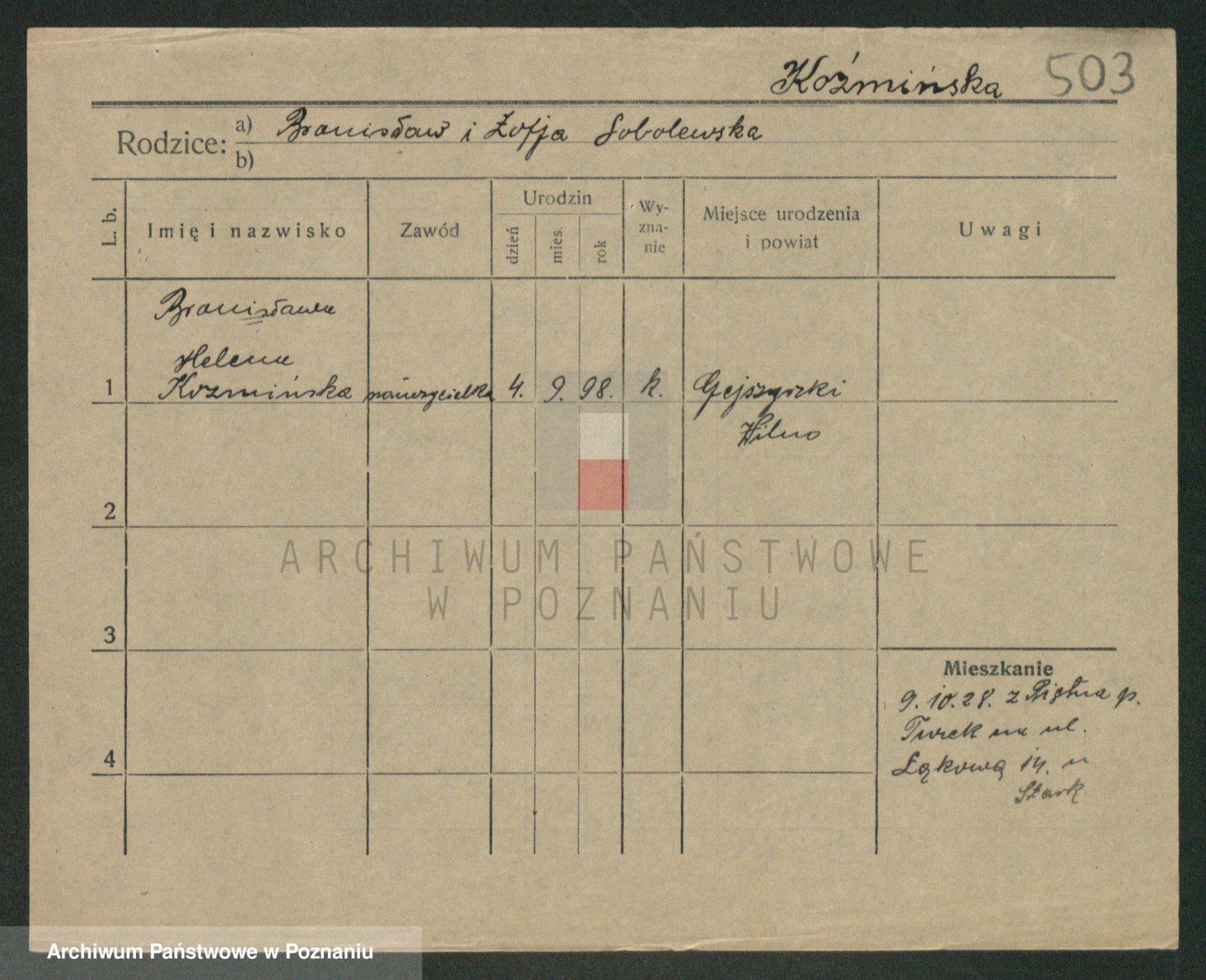 Kozyra z d. Borucka, Stanislawa