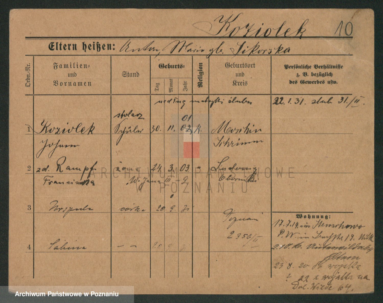 Koziolek z d. Rampf, Franciszka