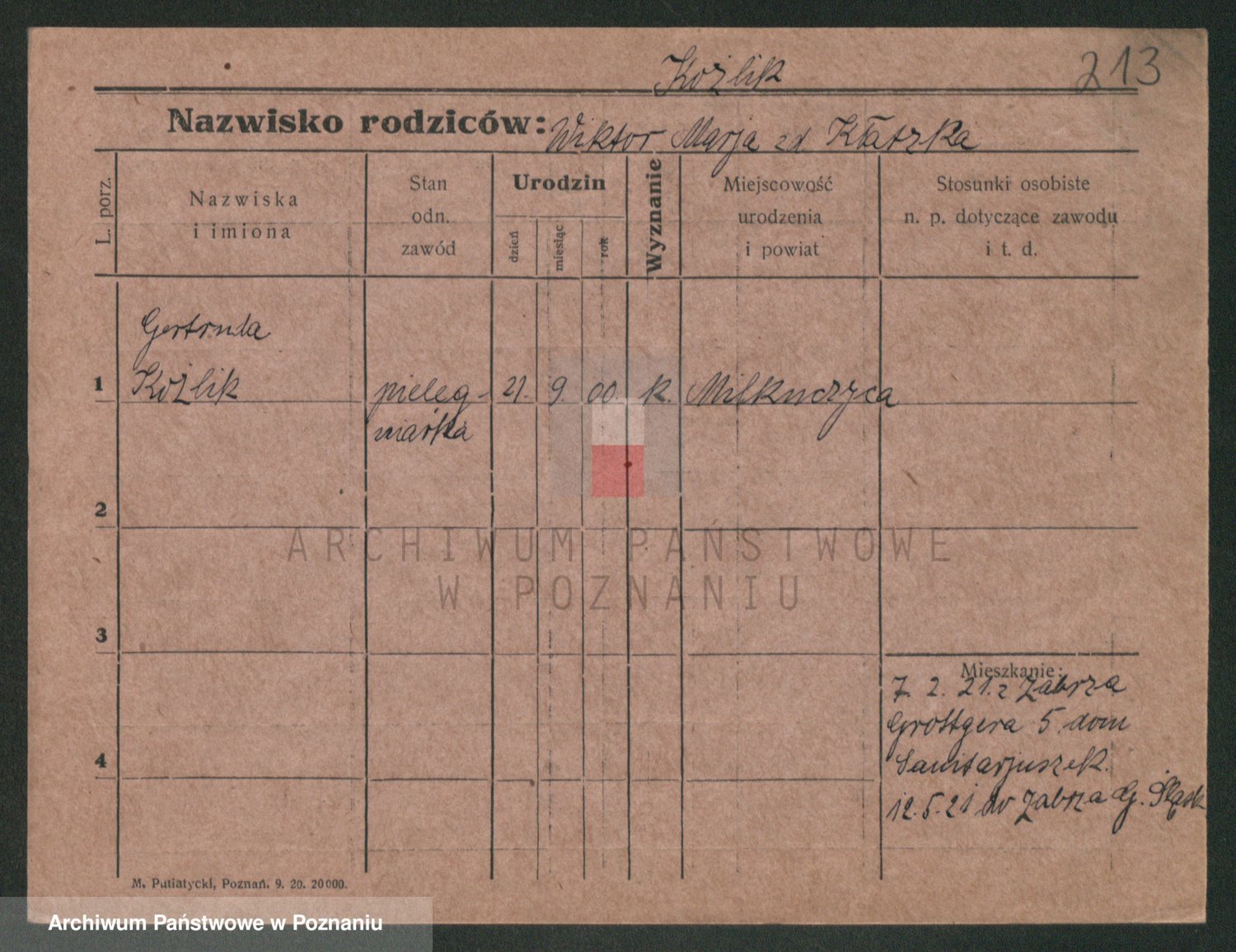 Koziołek z d. Siekorska, Marie