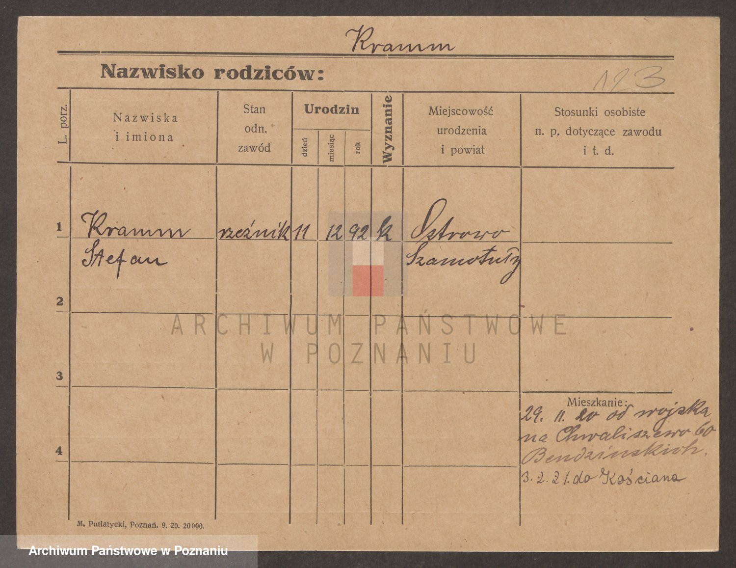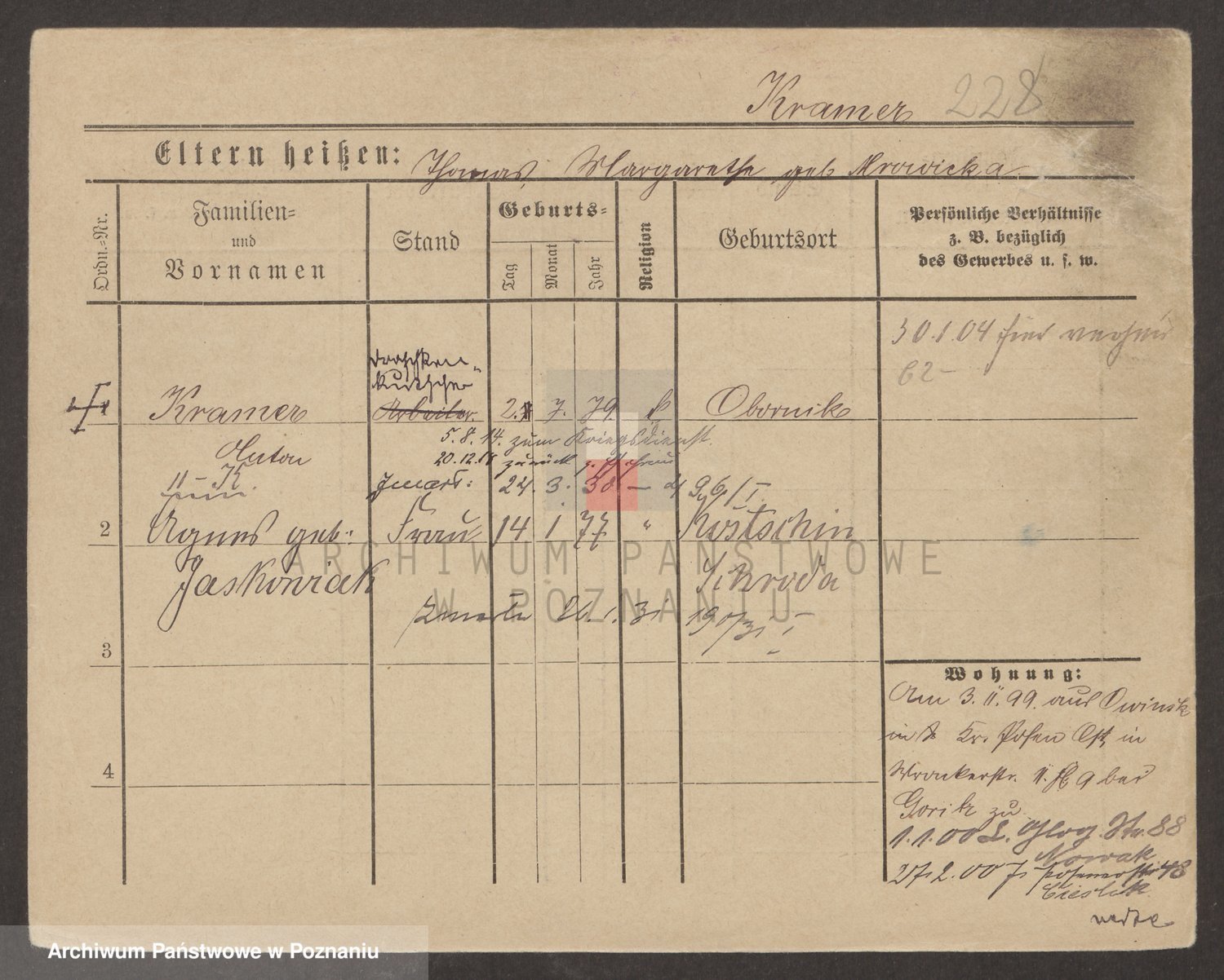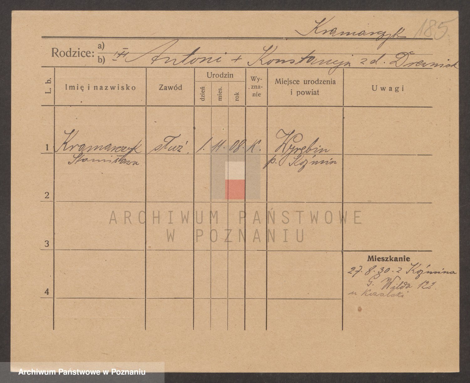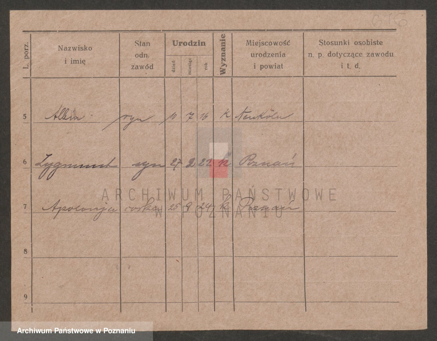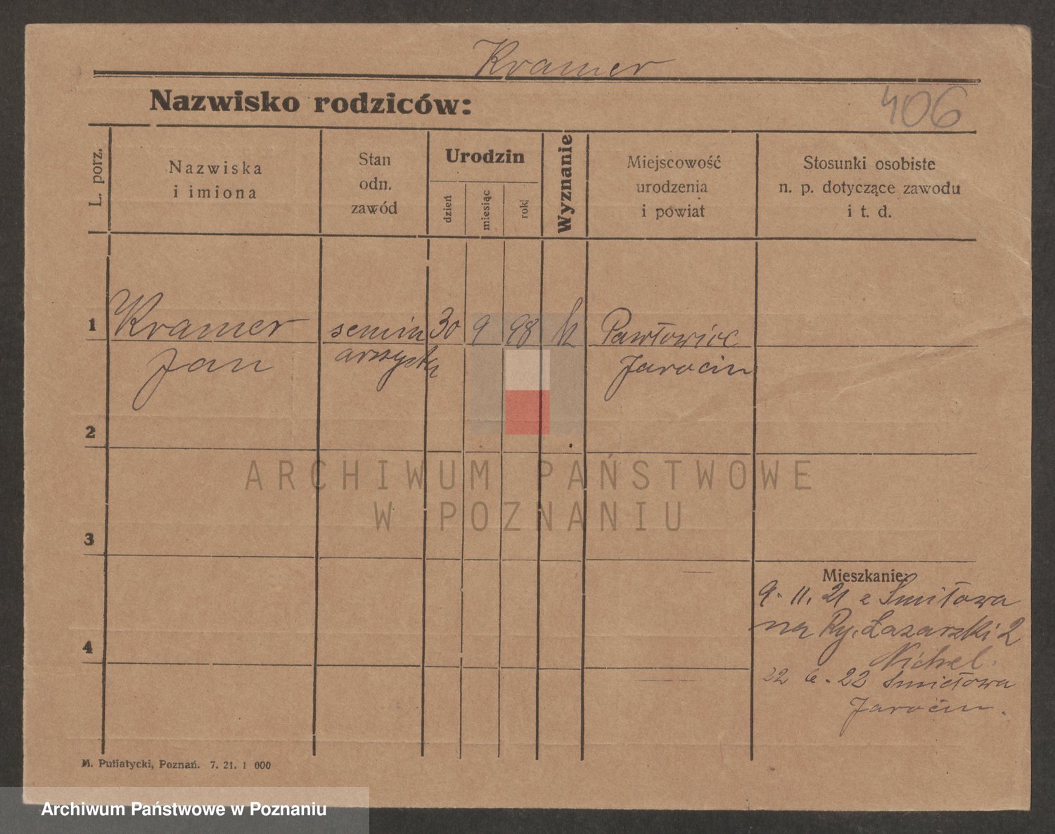 Podgląd karty osobowej dostępny jest po kliknięciu na nazwisko lub ikonkę karty. Można dokonywać powiększenia (ikony na górze) lub przechodzić między kolejnymi skanami (strzałki po bokach).