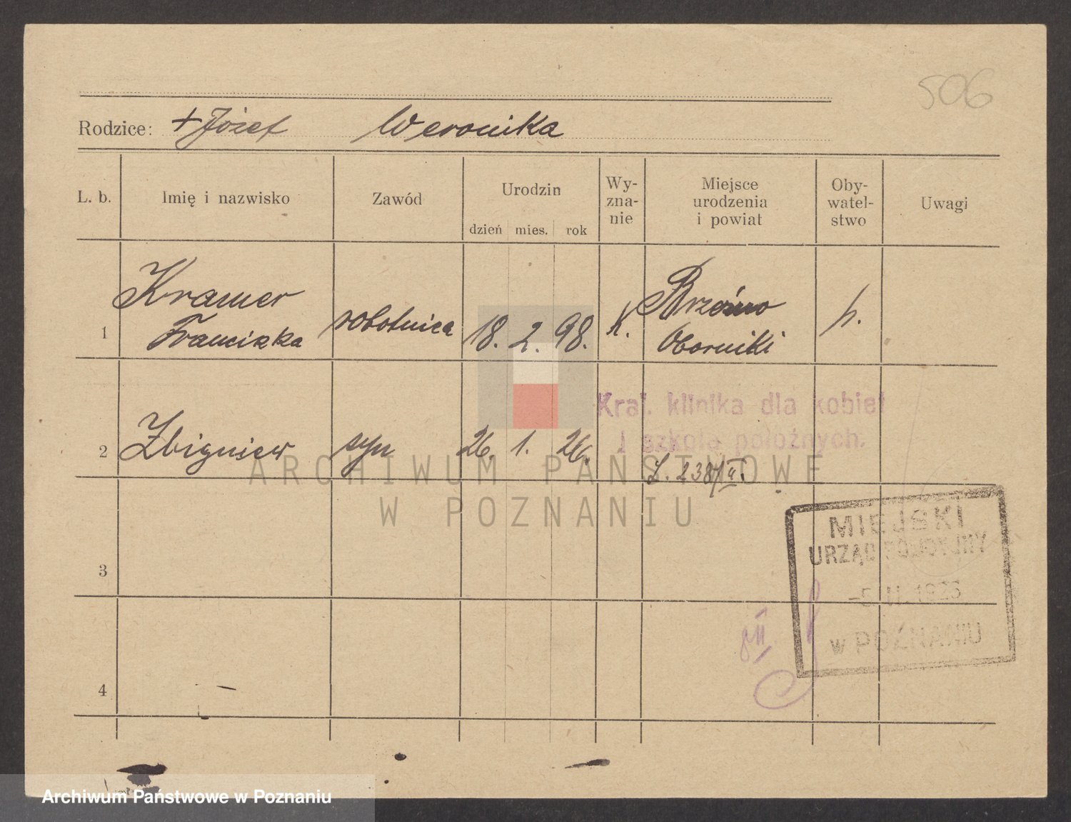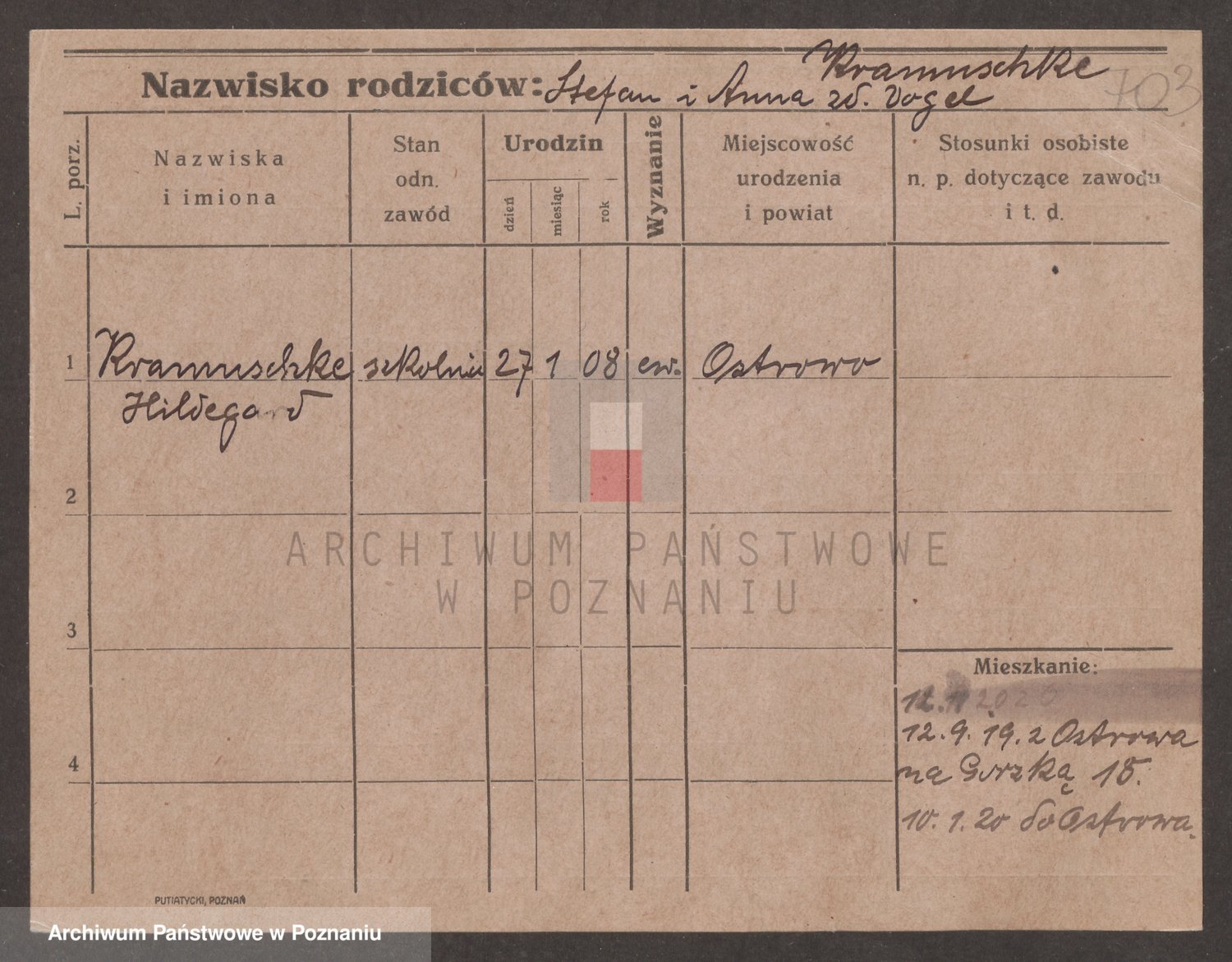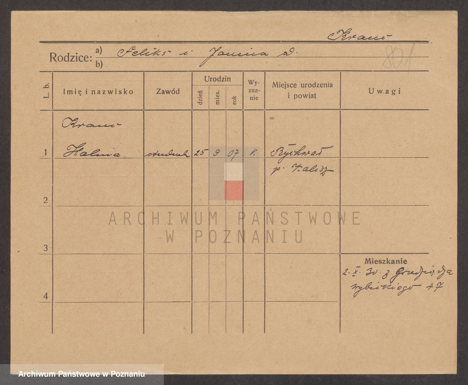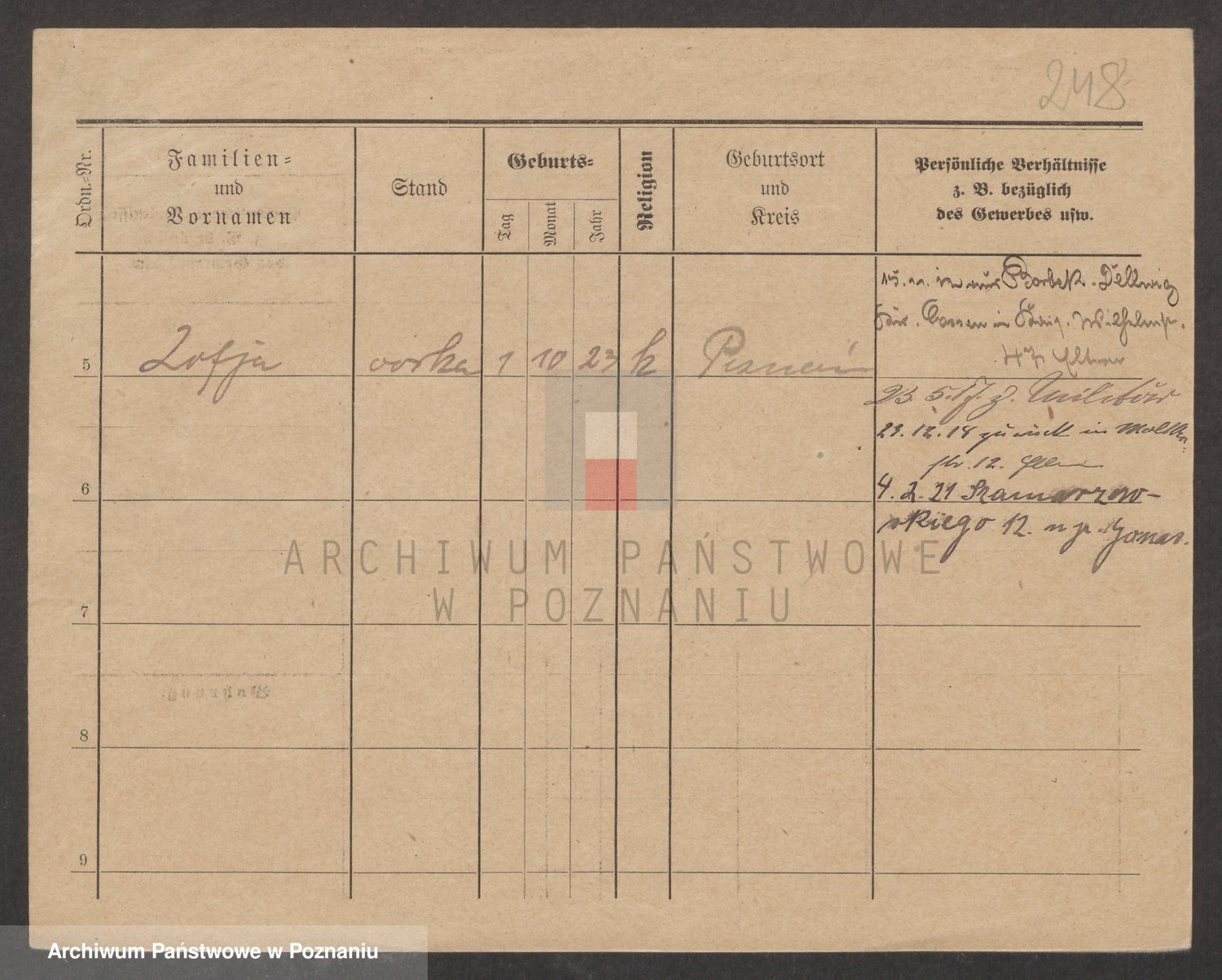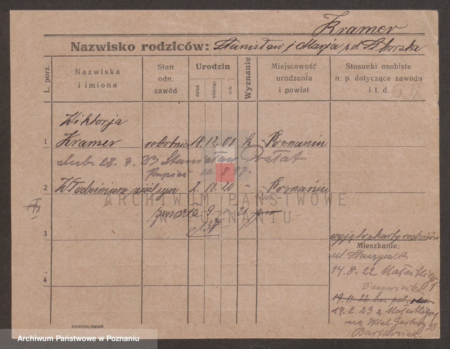 Podgląd karty osobowej dostępny jest po kliknięciu na nazwisko lub ikonkę karty. Można dokonywać powiększenia (ikony na górze) lub przechodzić między kolejnymi skanami (strzałki po bokach).