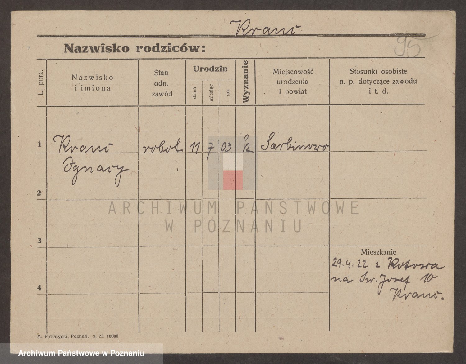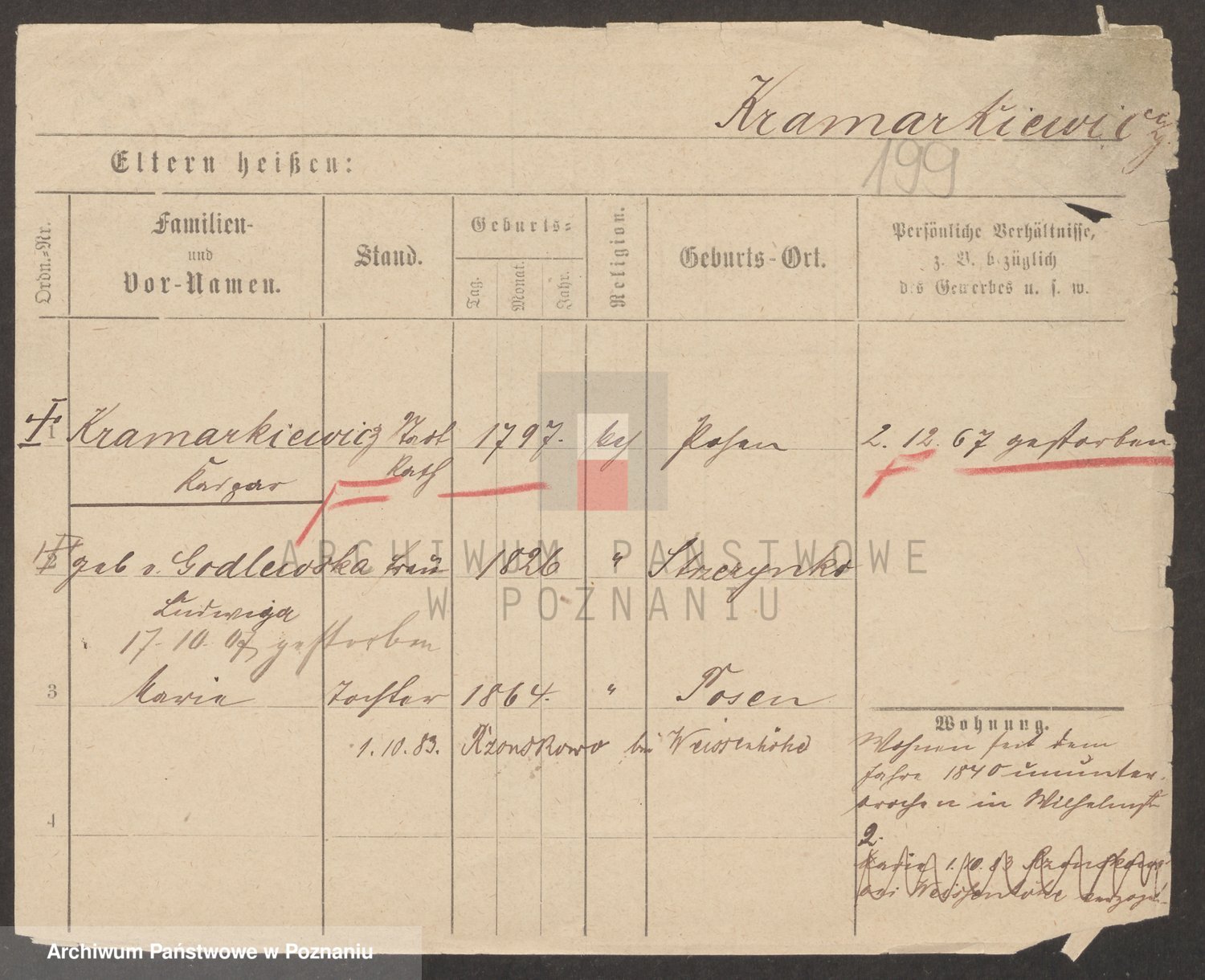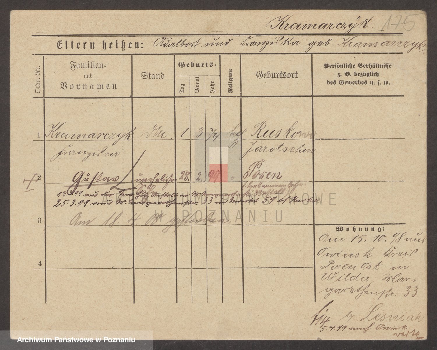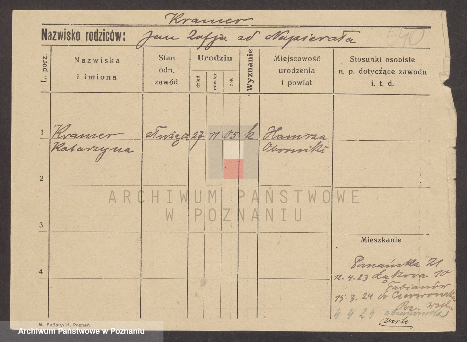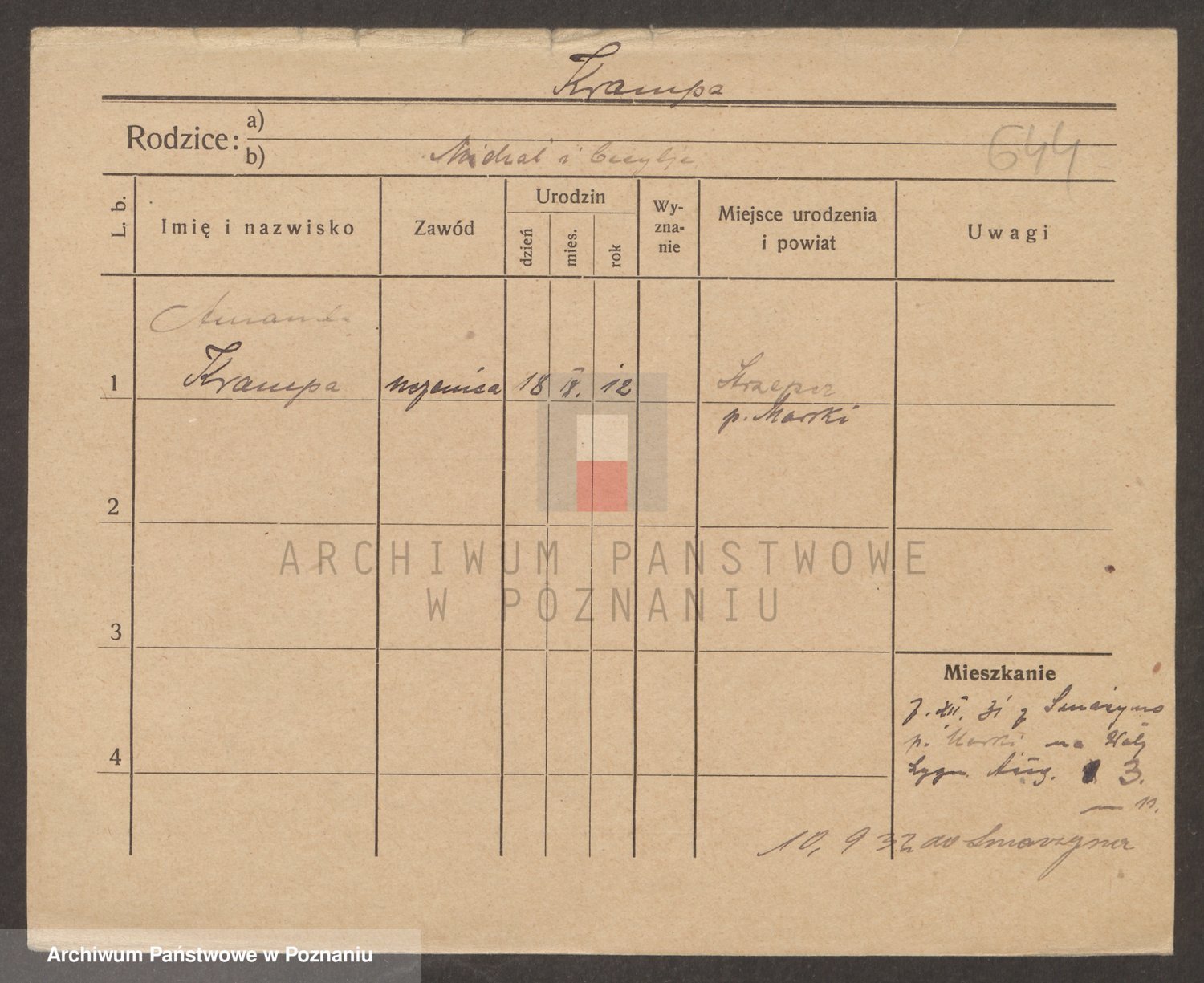 Podgląd karty osobowej dostępny jest po kliknięciu na nazwisko lub ikonkę karty. Można dokonywać powiększenia (ikony na górze) lub przechodzić między kolejnymi skanami (strzałki po bokach).