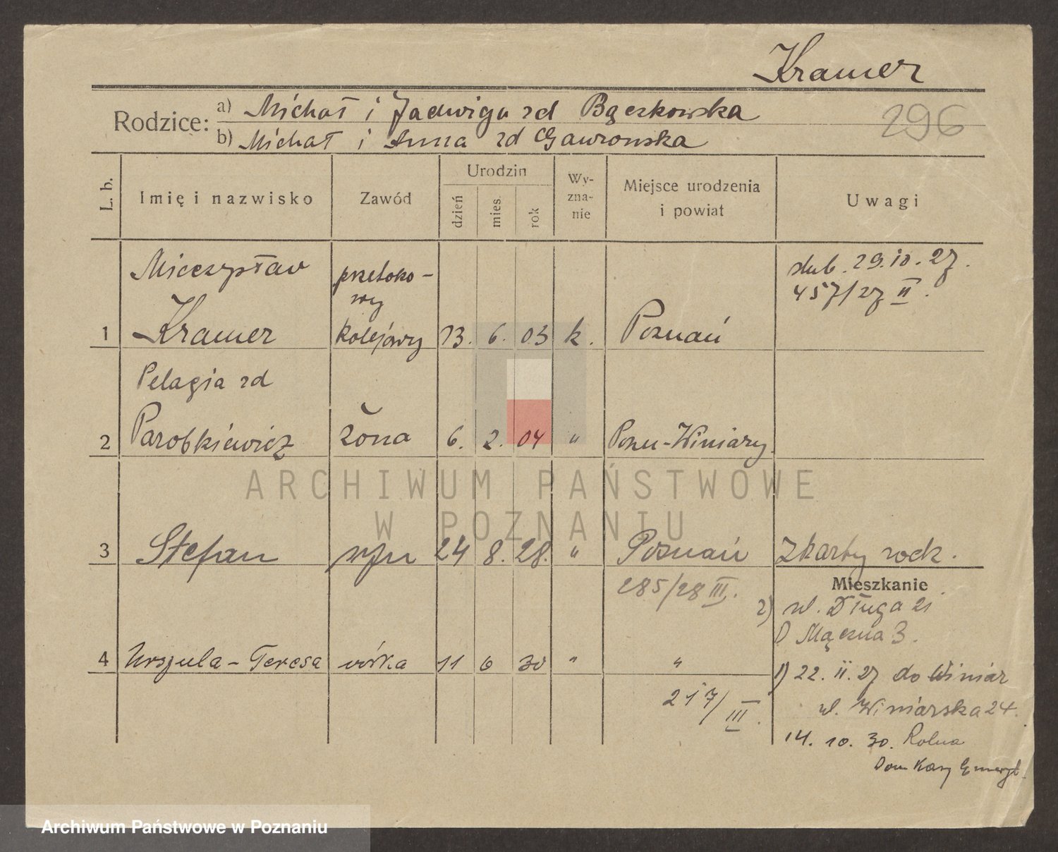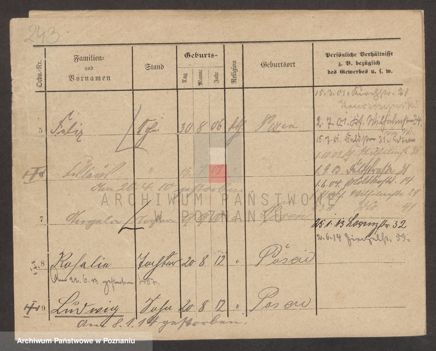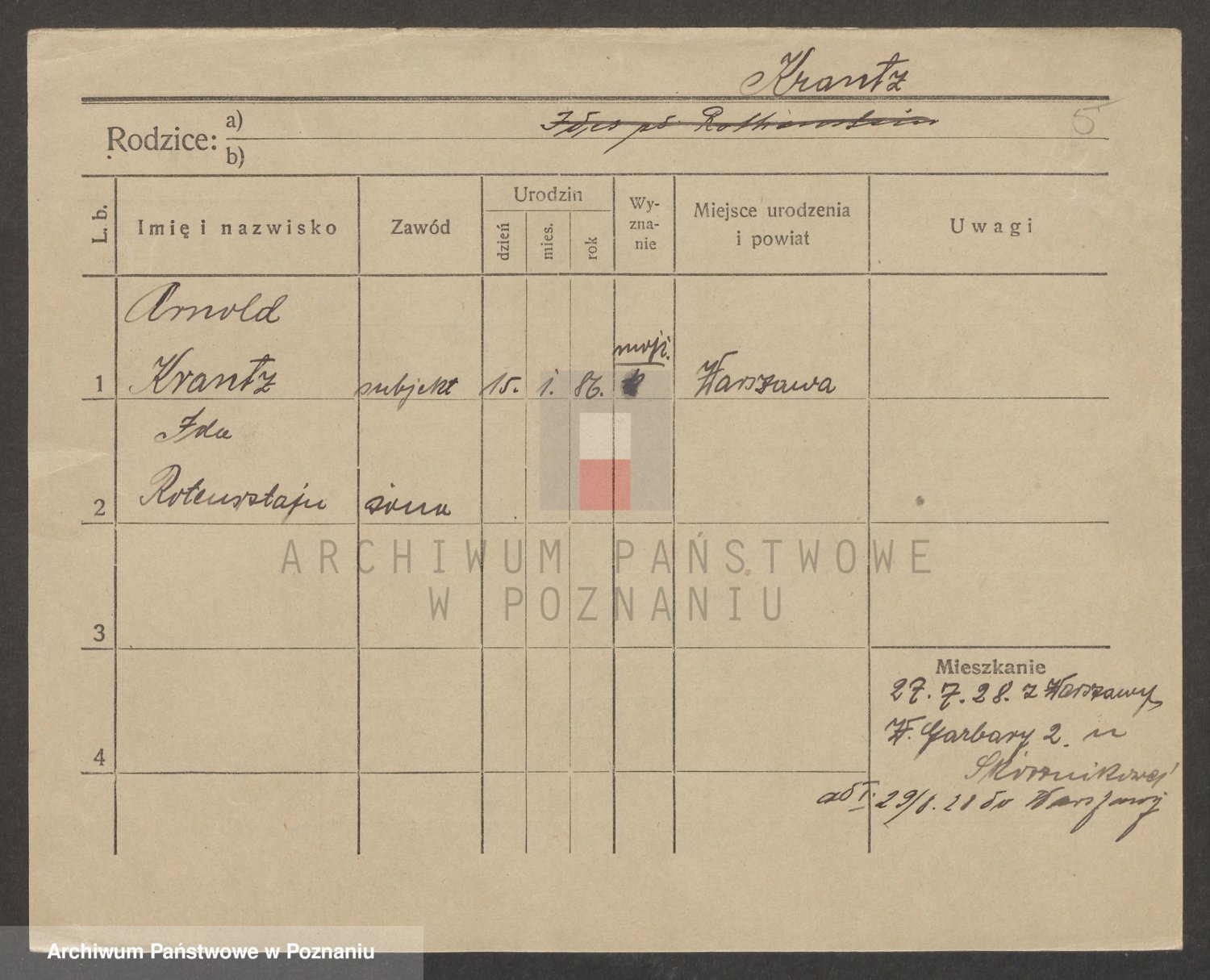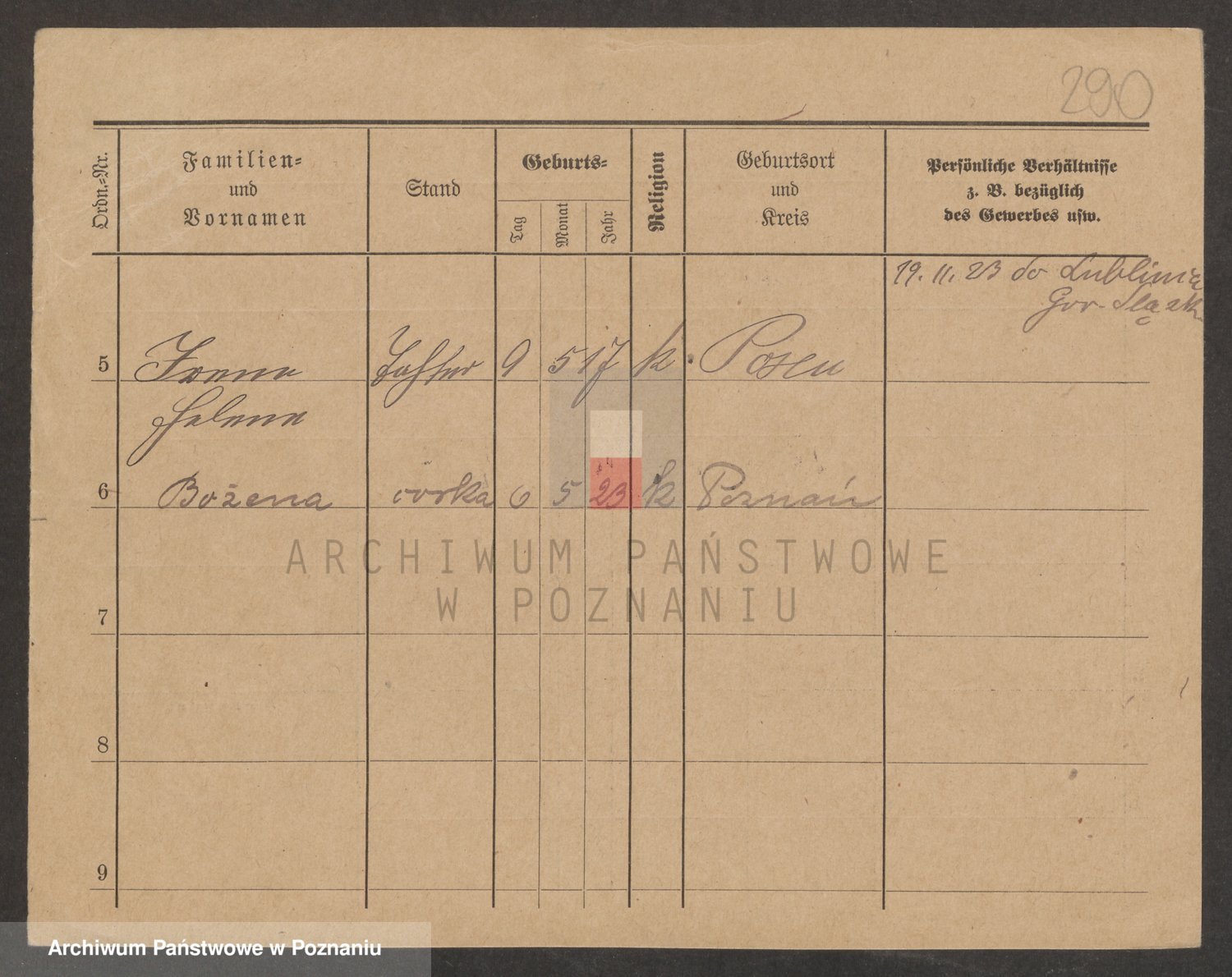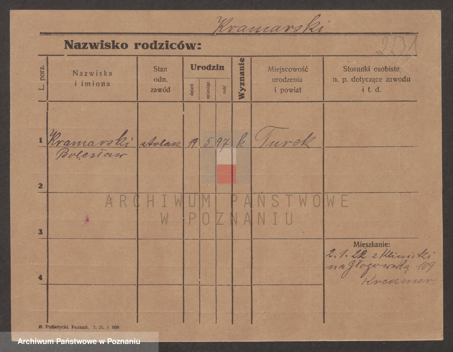 Podgląd karty osobowej dostępny jest po kliknięciu na nazwisko lub ikonkę karty. Można dokonywać powiększenia (ikony na górze) lub przechodzić między kolejnymi skanami (strzałki po bokach).