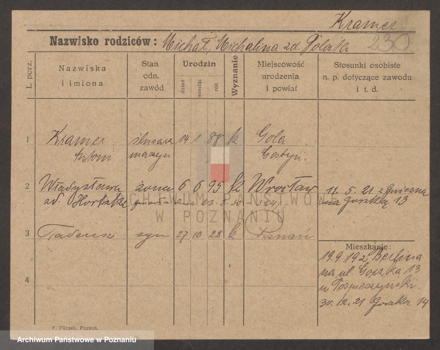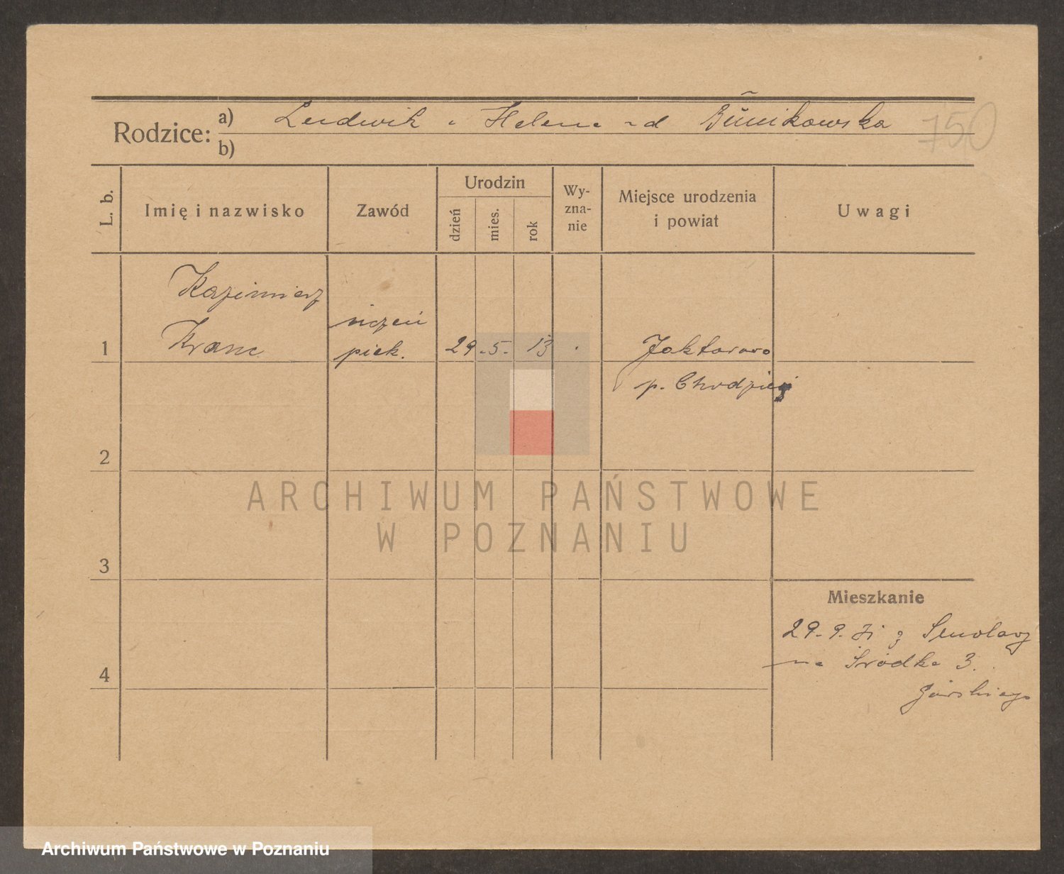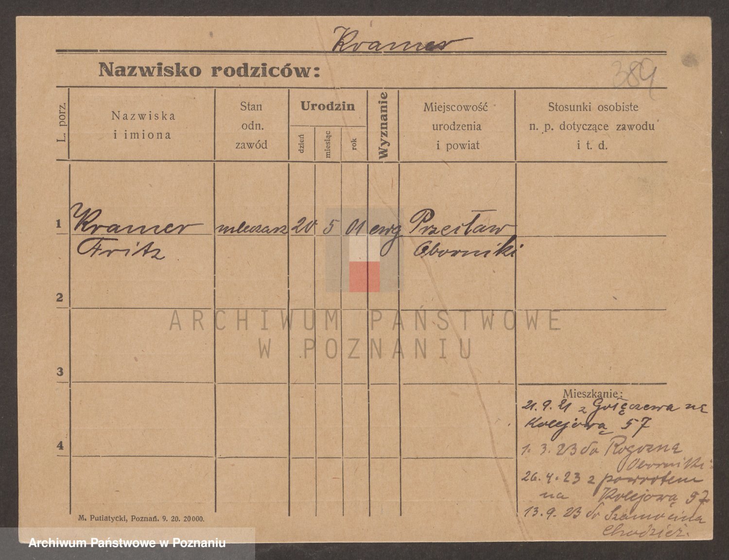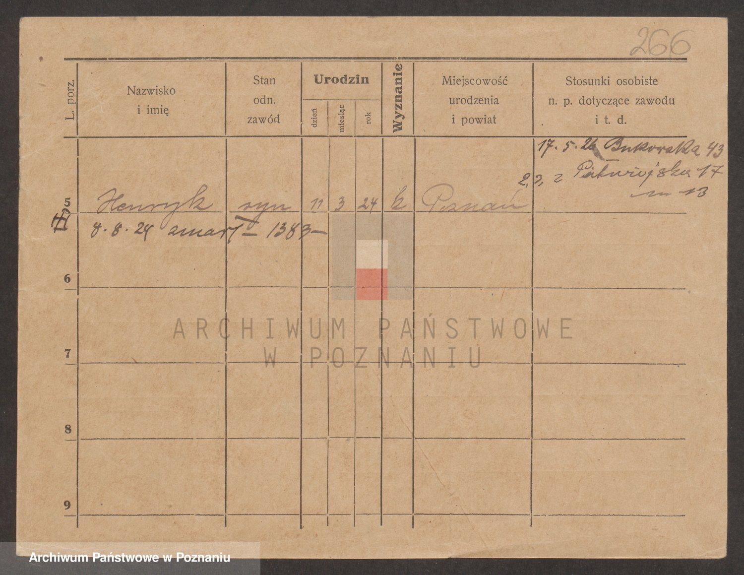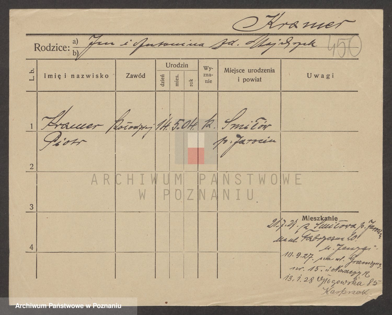 Podgląd karty osobowej dostępny jest po kliknięciu na nazwisko lub ikonkę karty. Można dokonywać powiększenia (ikony na górze) lub przechodzić między kolejnymi skanami (strzałki po bokach).