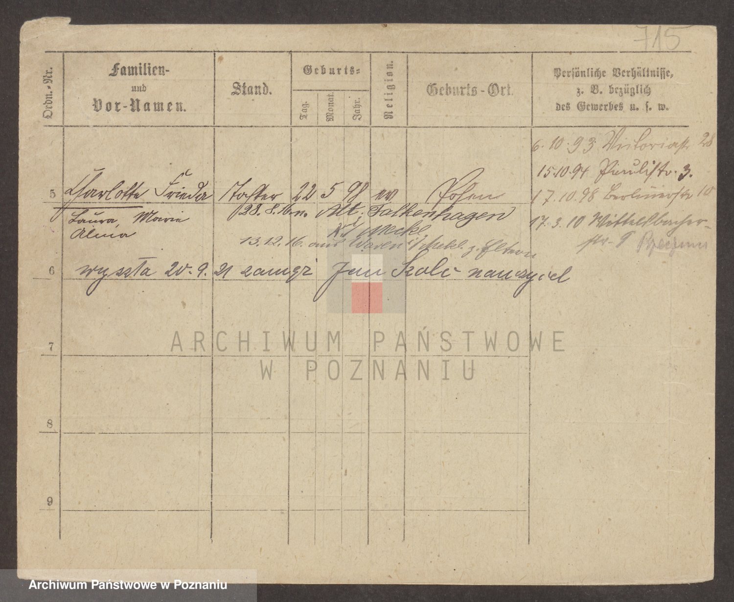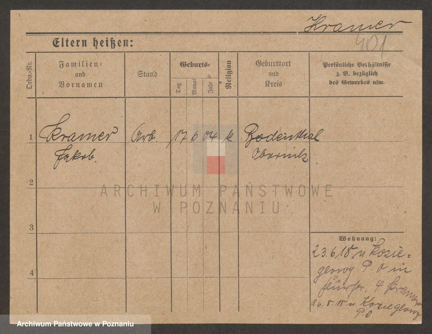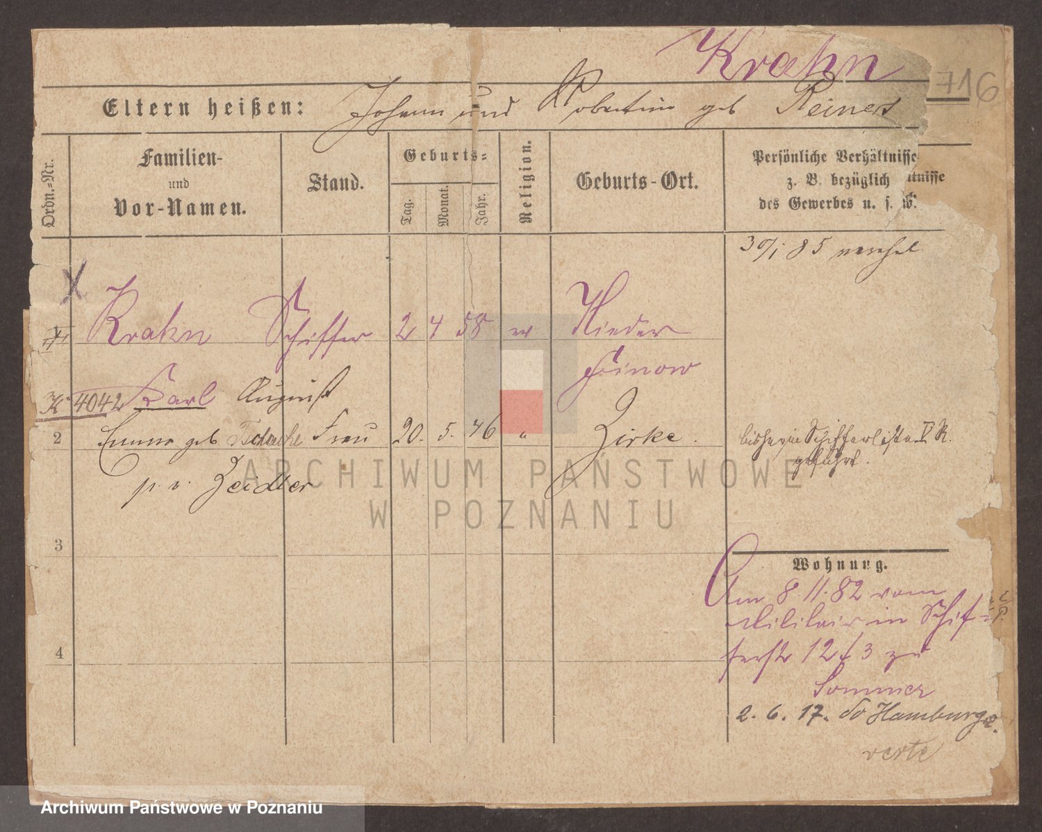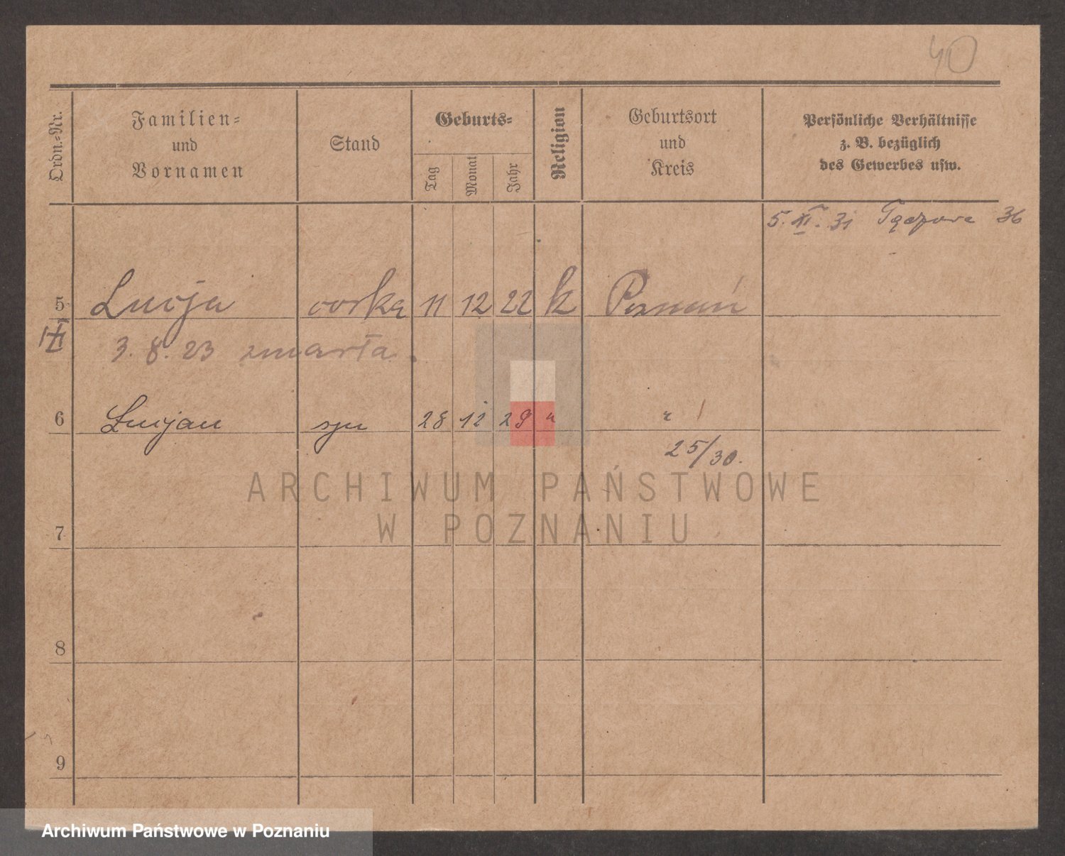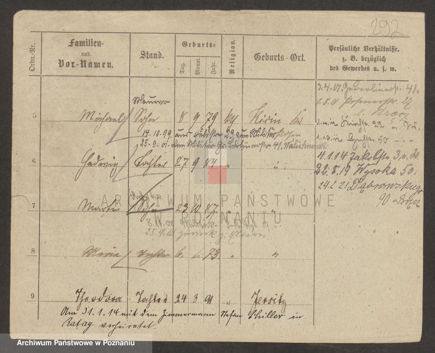 Podgląd karty osobowej dostępny jest po kliknięciu na nazwisko lub ikonkę karty. Można dokonywać powiększenia (ikony na górze) lub przechodzić między kolejnymi skanami (strzałki po bokach).