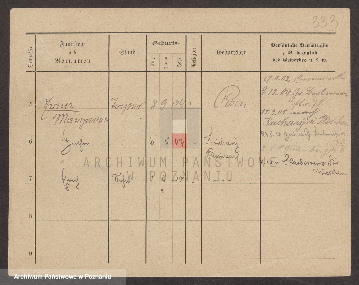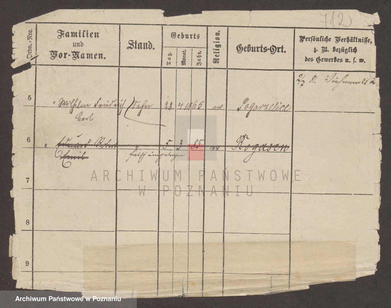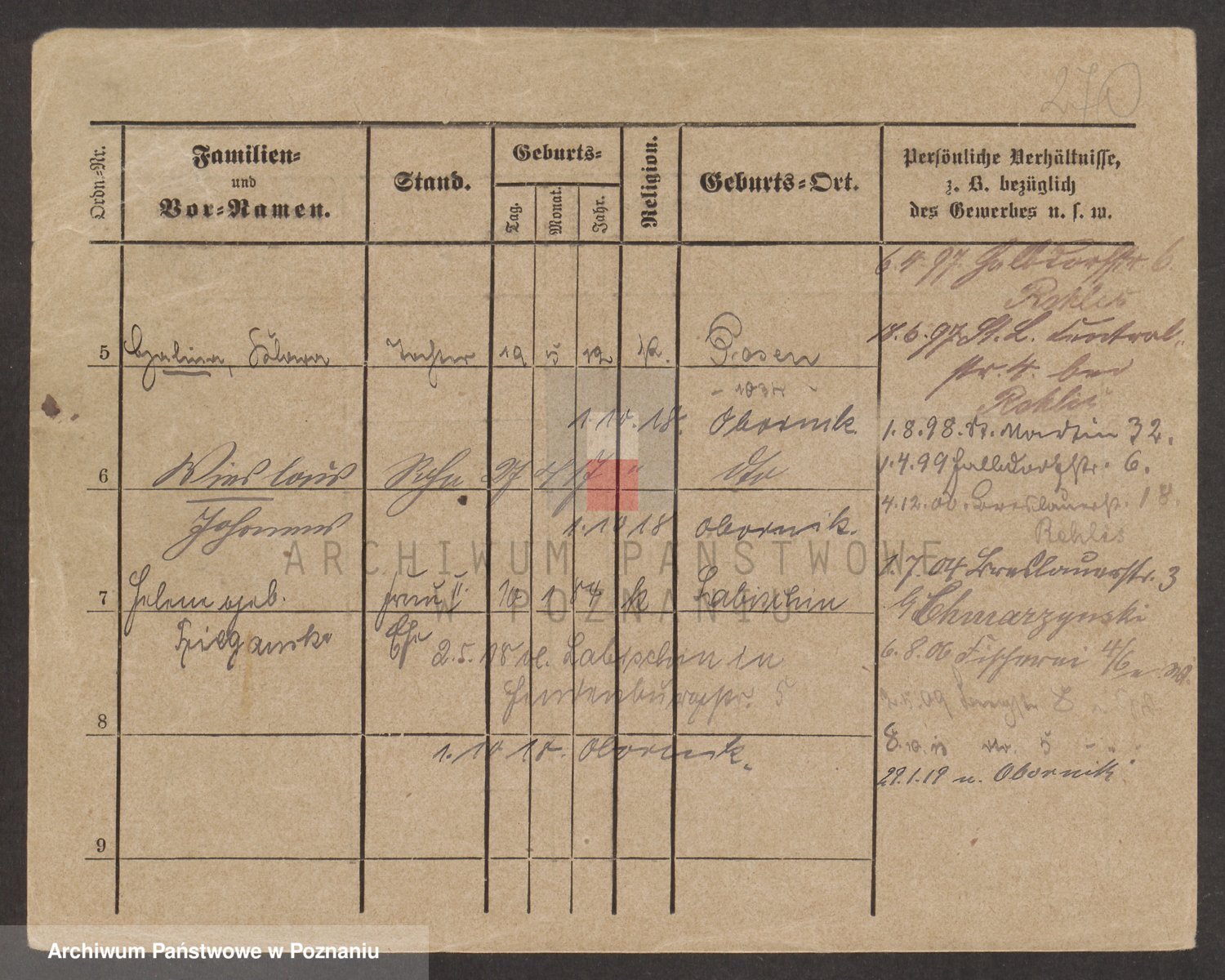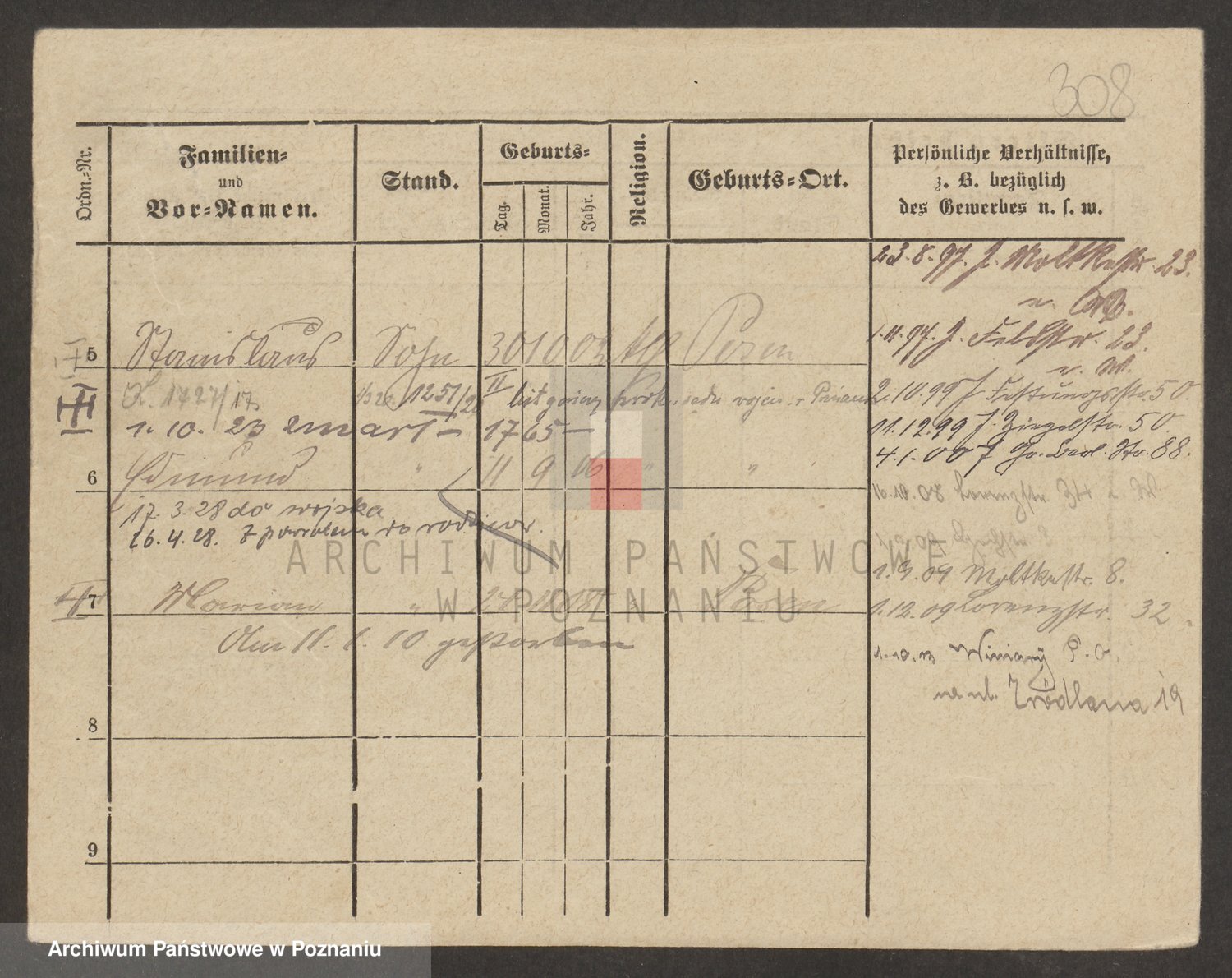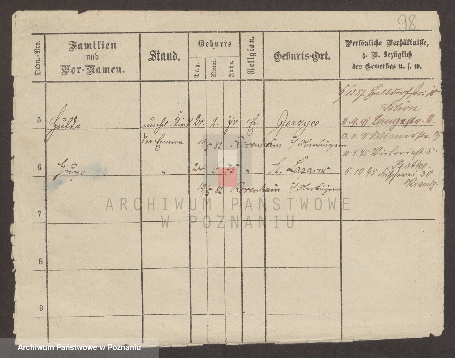 Podgląd karty osobowej dostępny jest po kliknięciu na nazwisko lub ikonkę karty. Można dokonywać powiększenia (ikony na górze) lub przechodzić między kolejnymi skanami (strzałki po bokach).