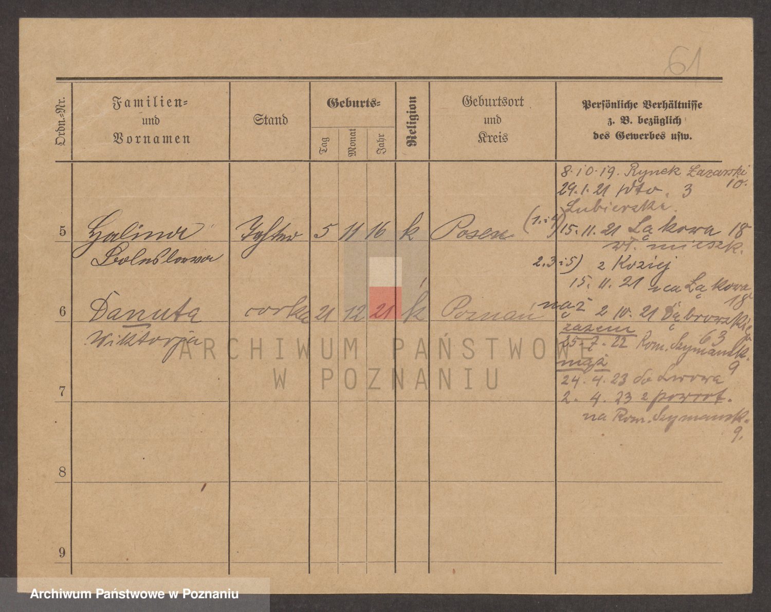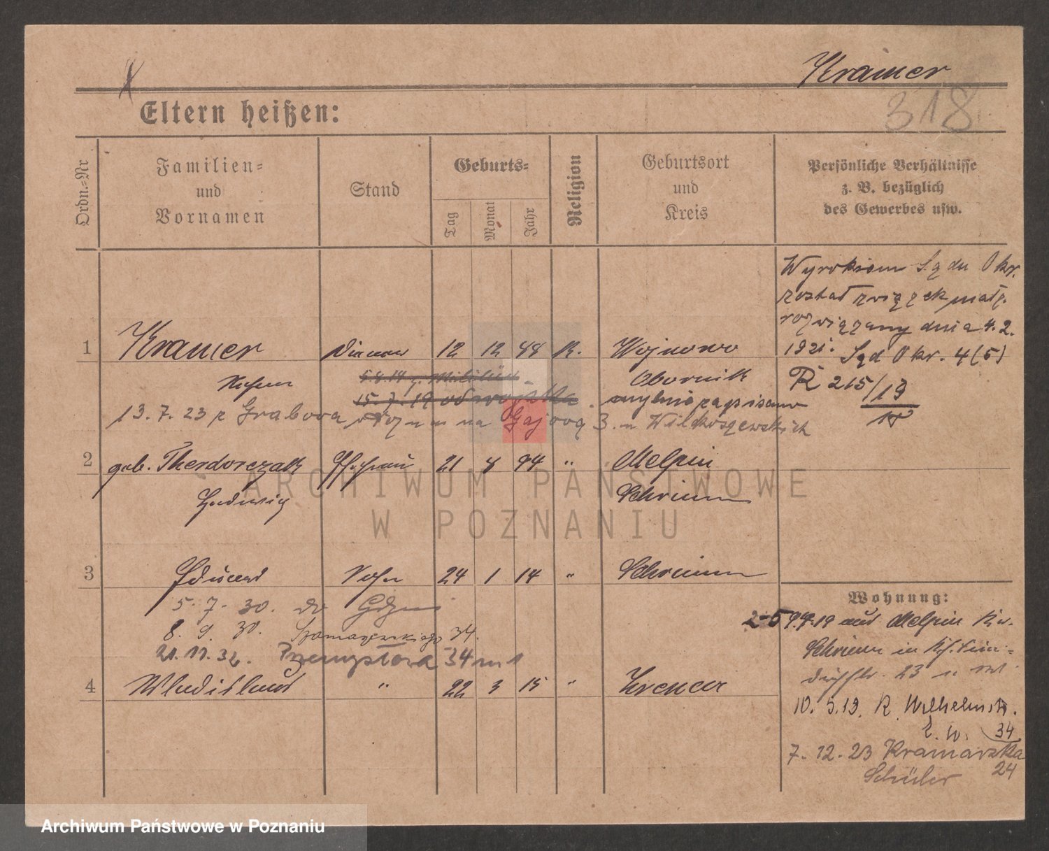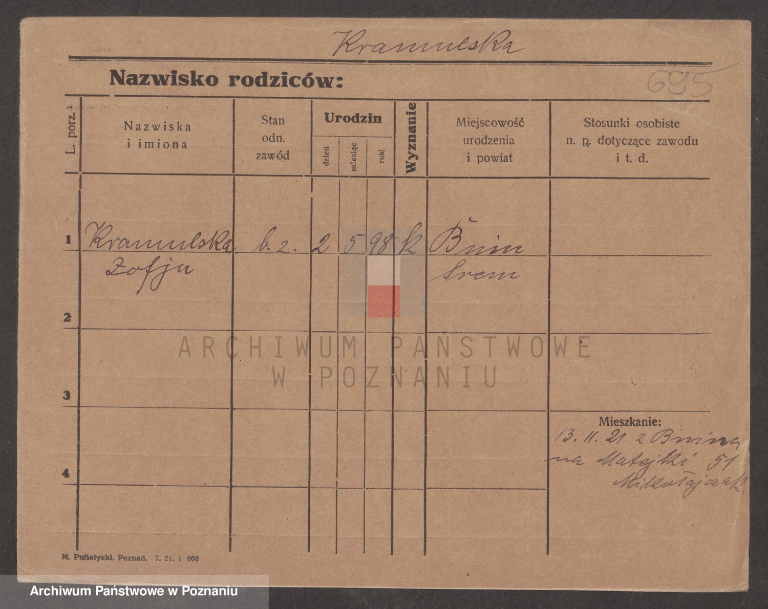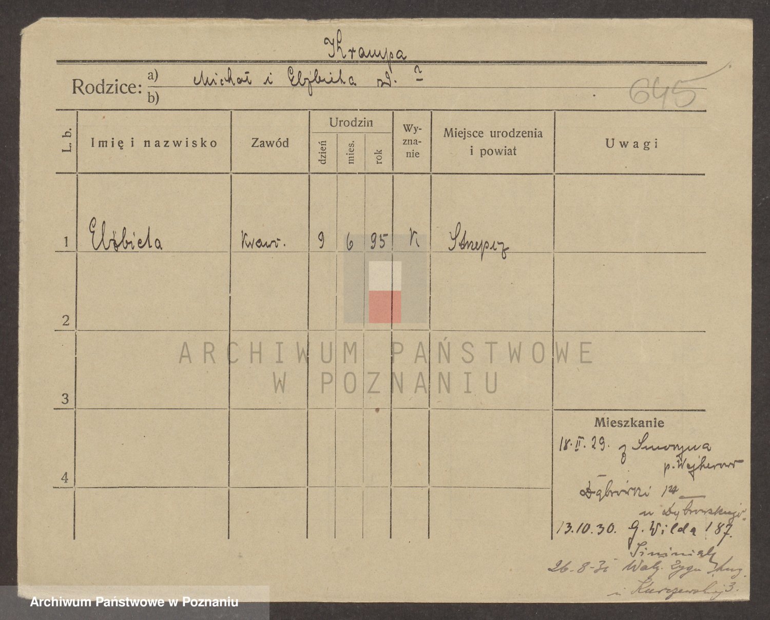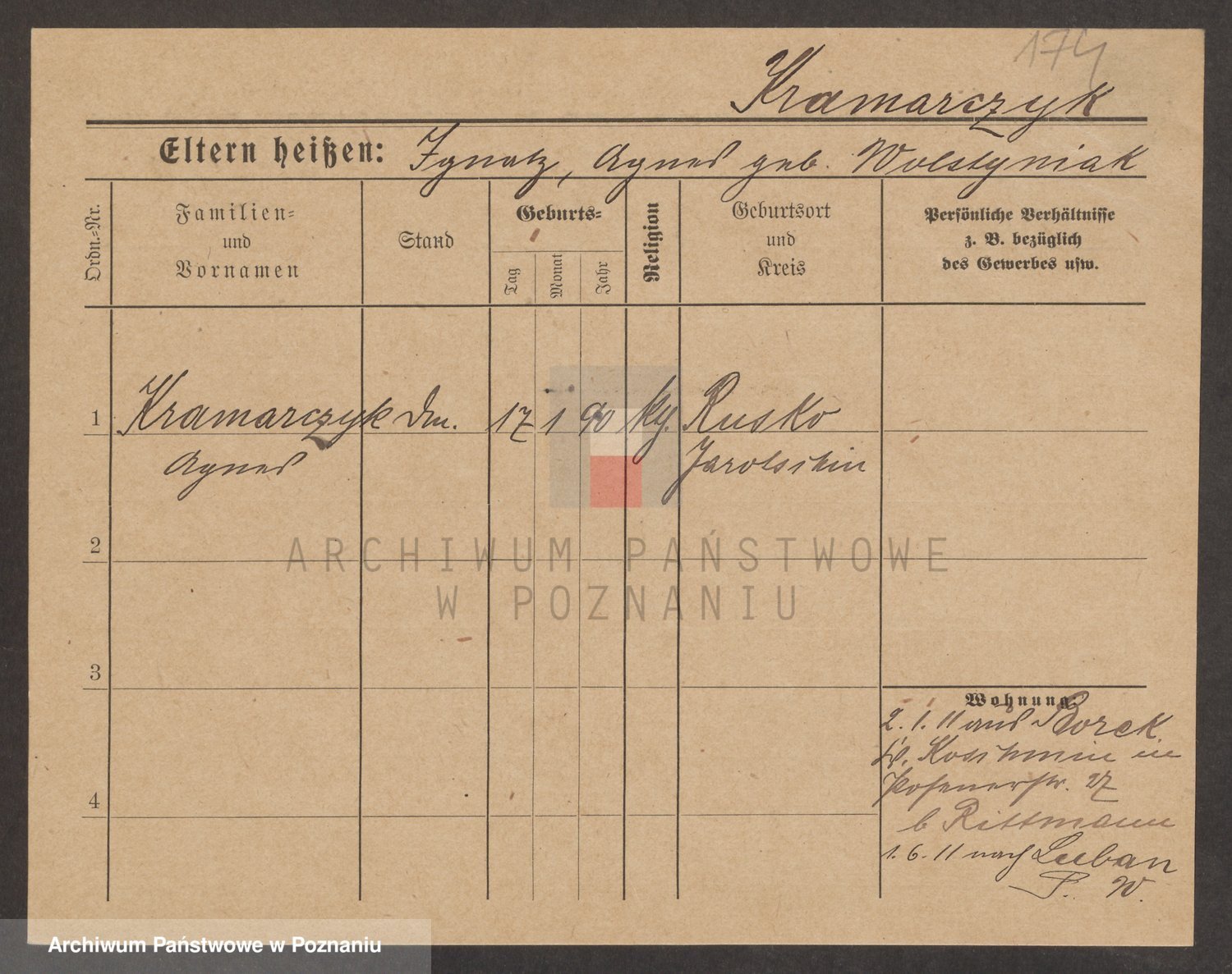 Podgląd karty osobowej dostępny jest po kliknięciu na nazwisko lub ikonkę karty. Można dokonywać powiększenia (ikony na górze) lub przechodzić między kolejnymi skanami (strzałki po bokach).