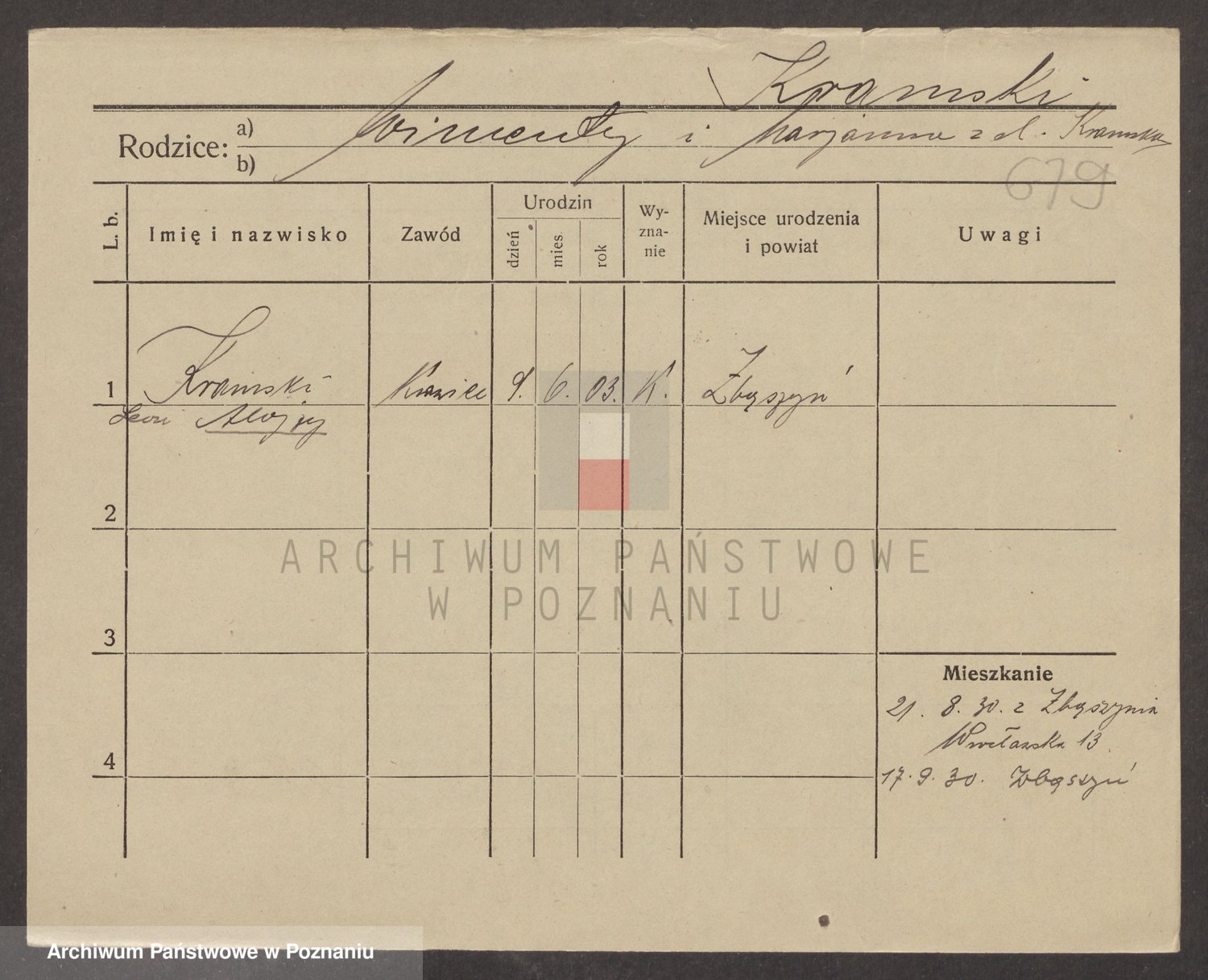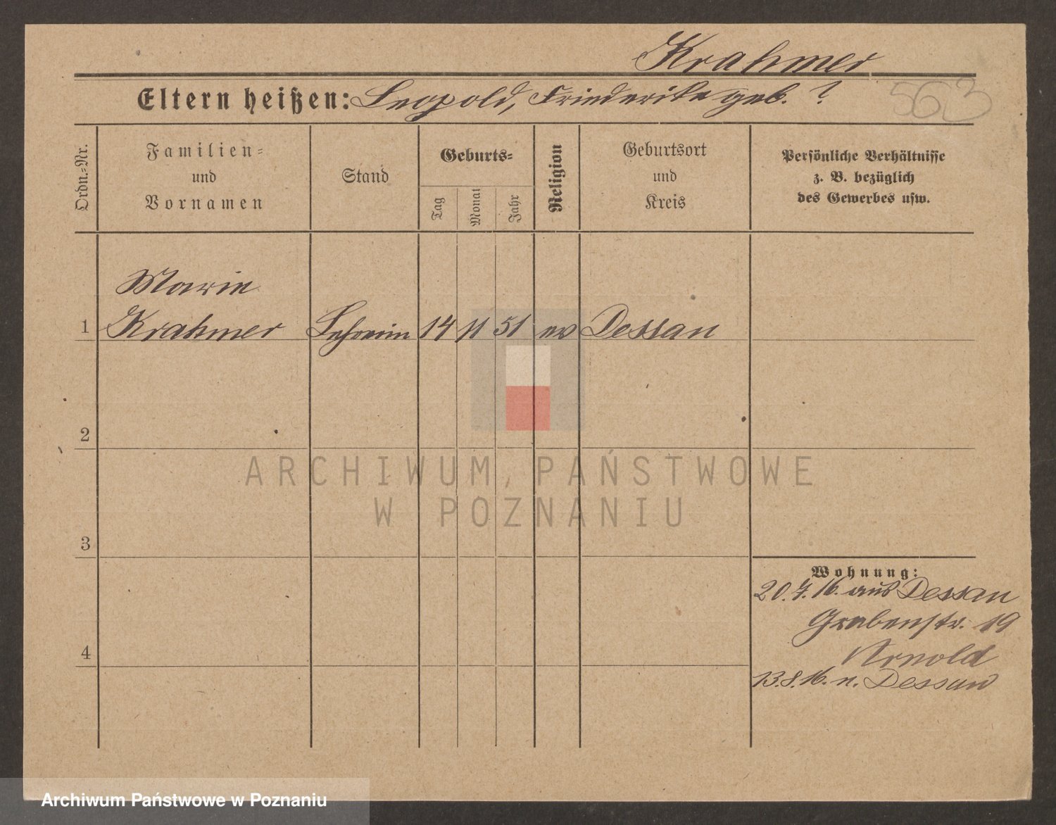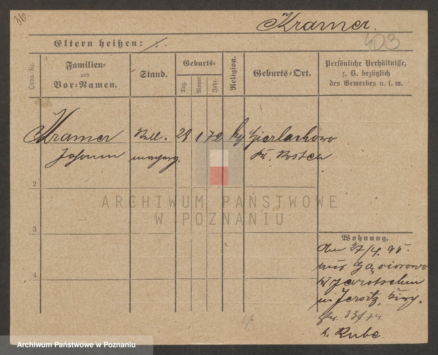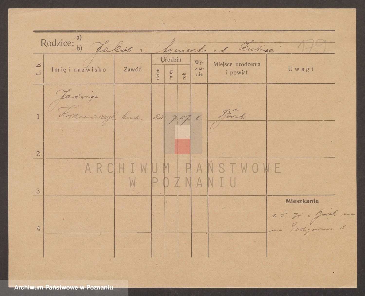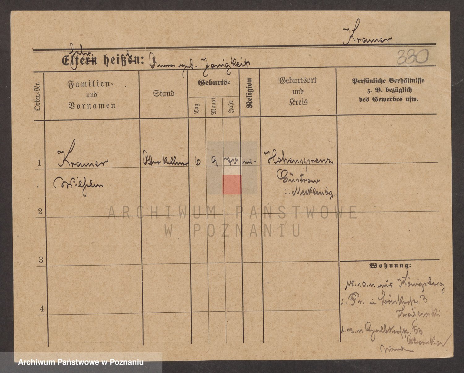 Podgląd karty osobowej dostępny jest po kliknięciu na nazwisko lub ikonkę karty. Można dokonywać powiększenia (ikony na górze) lub przechodzić między kolejnymi skanami (strzałki po bokach).