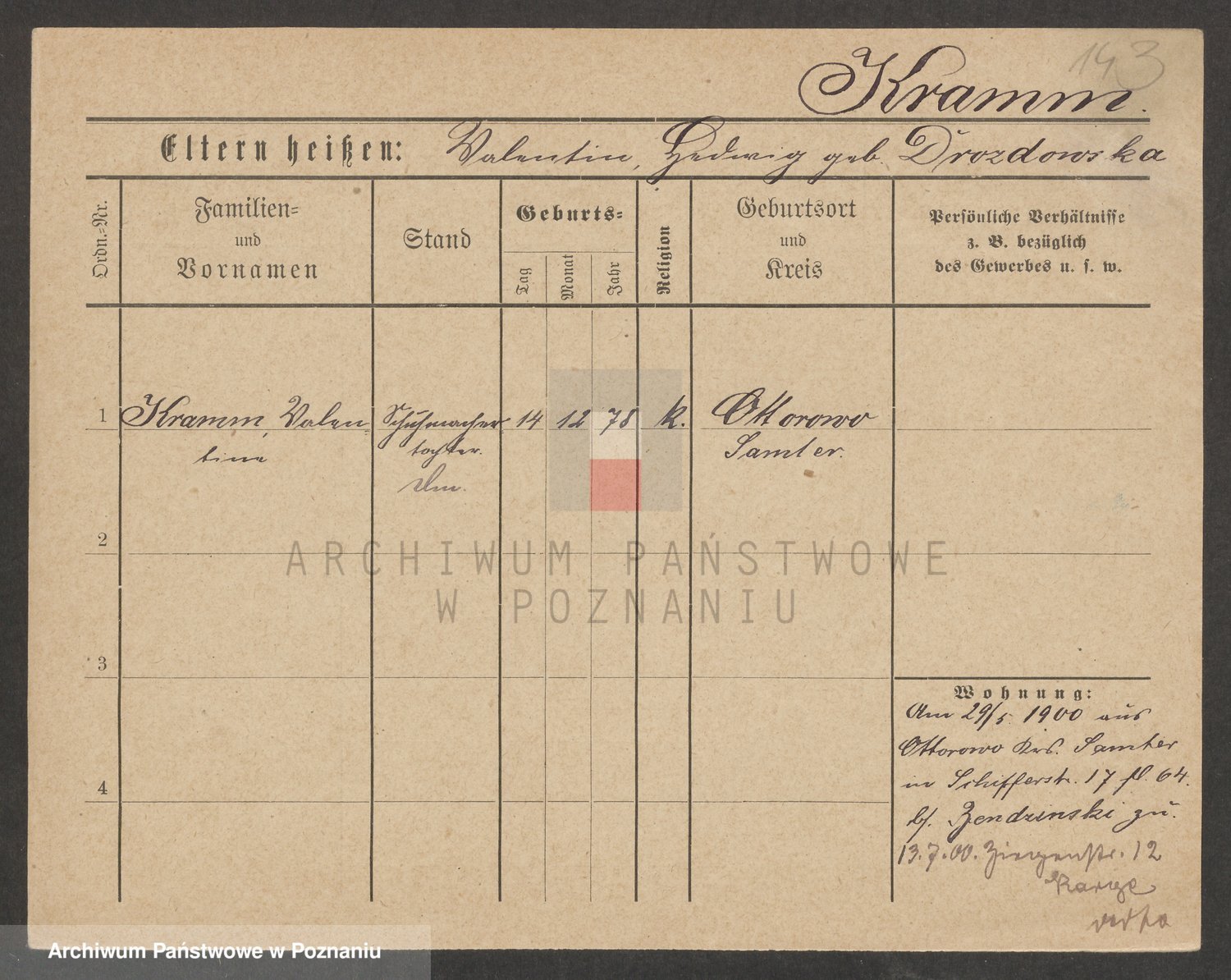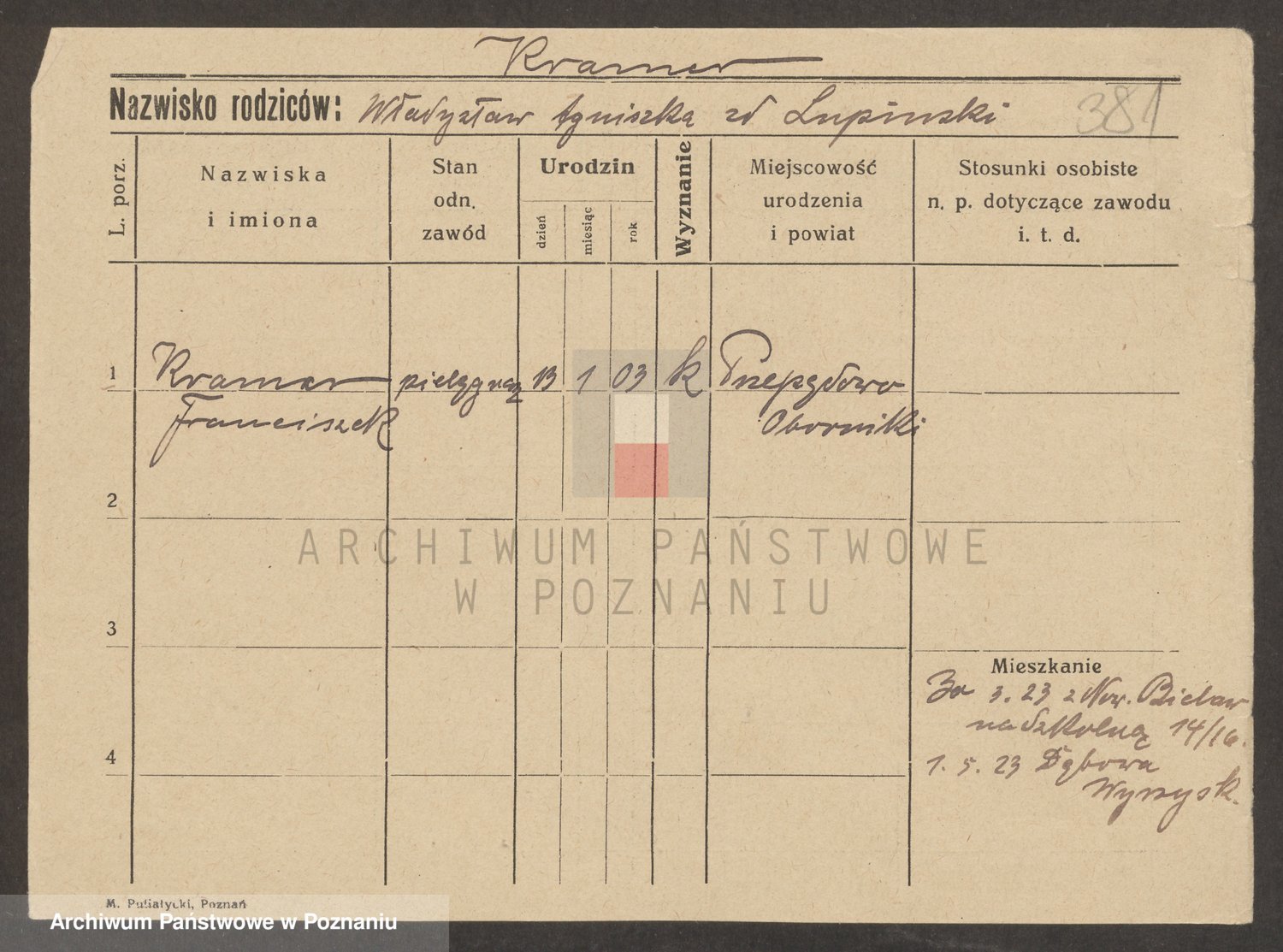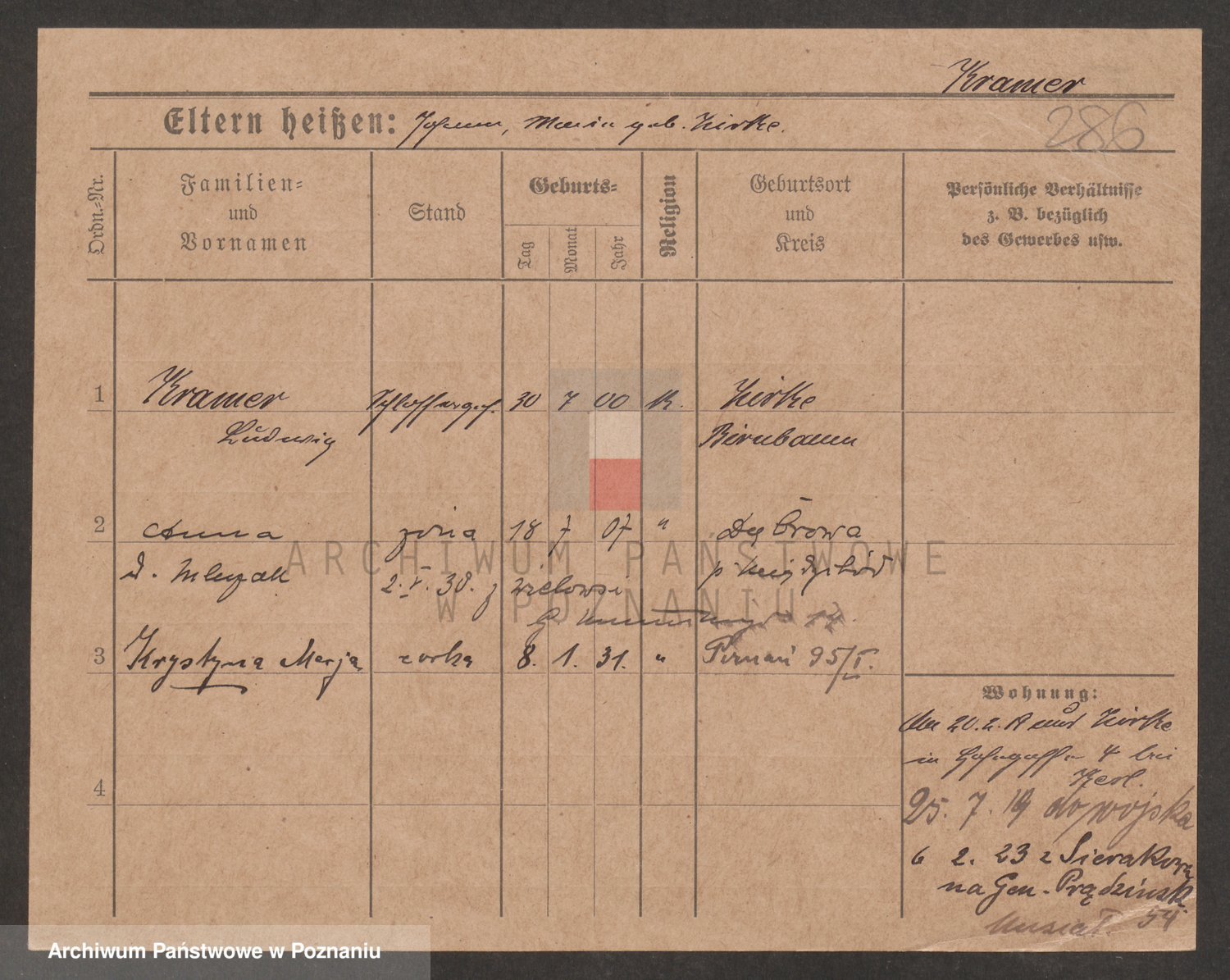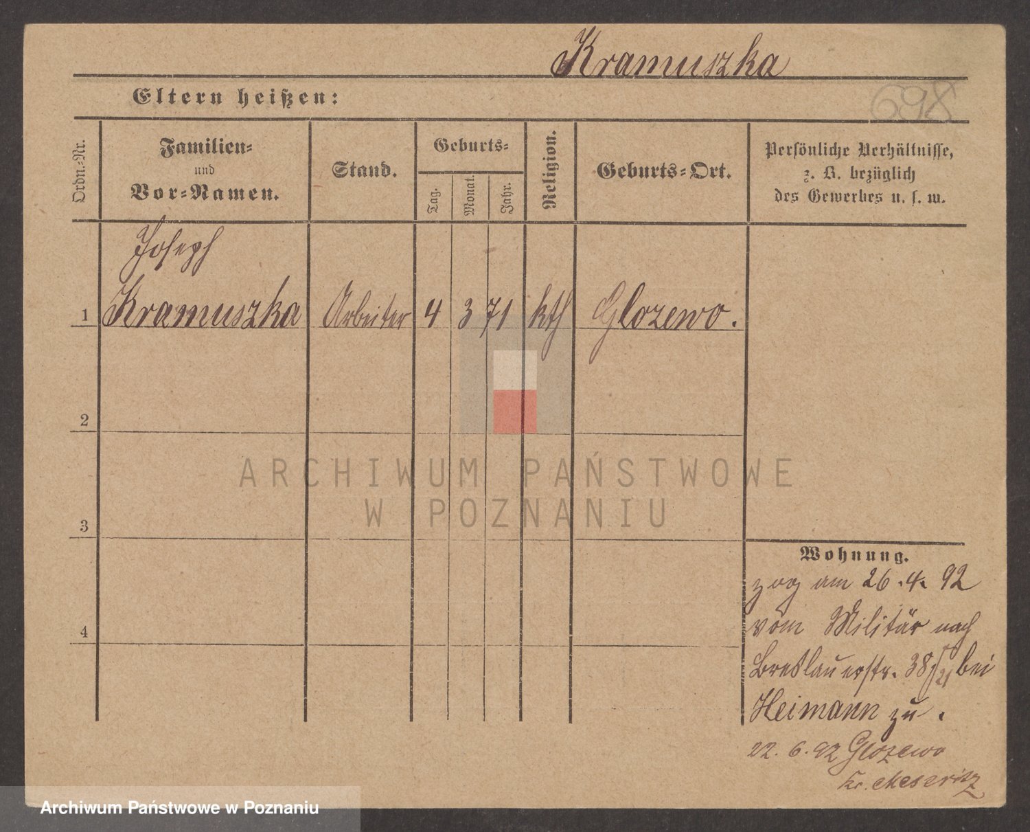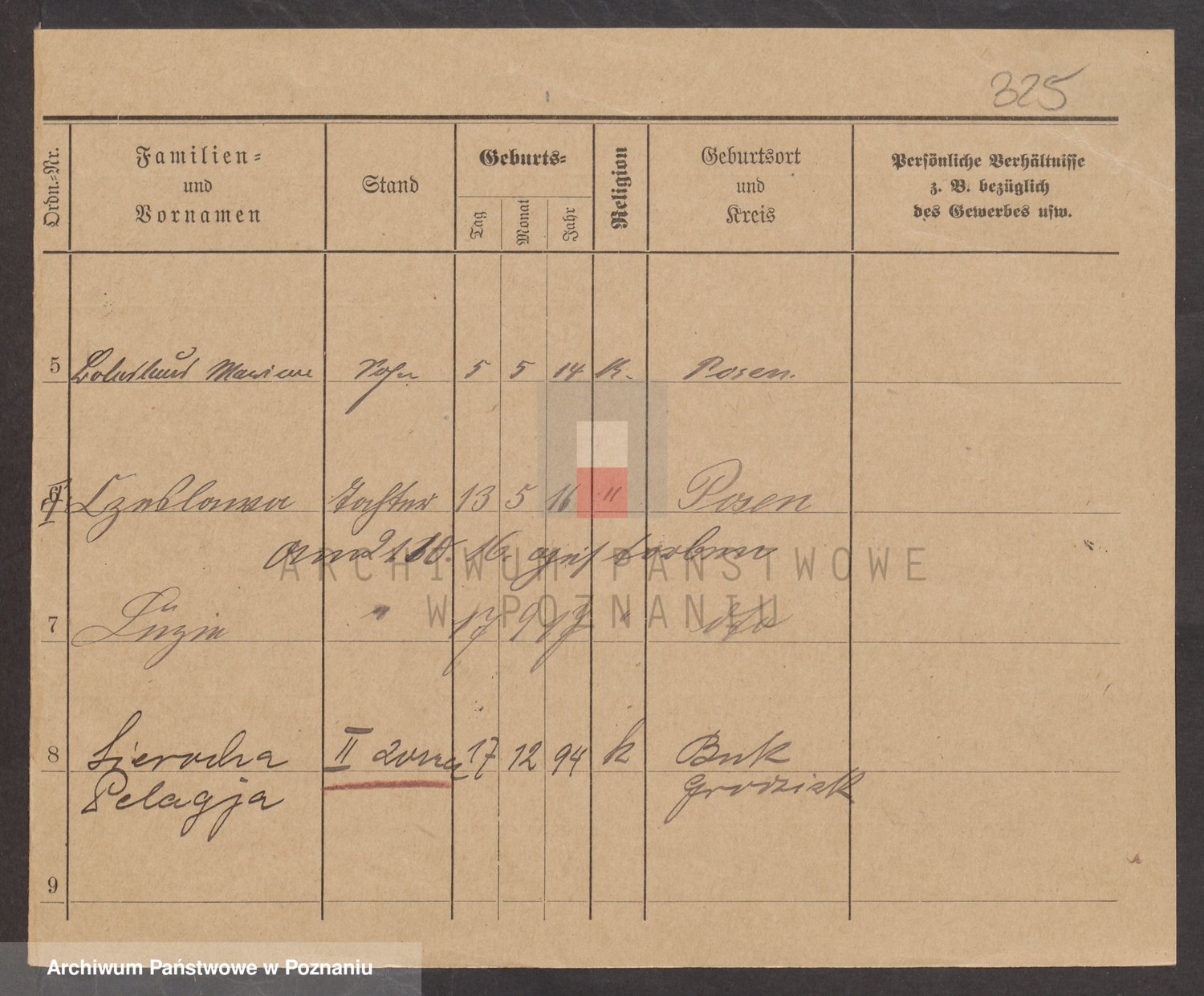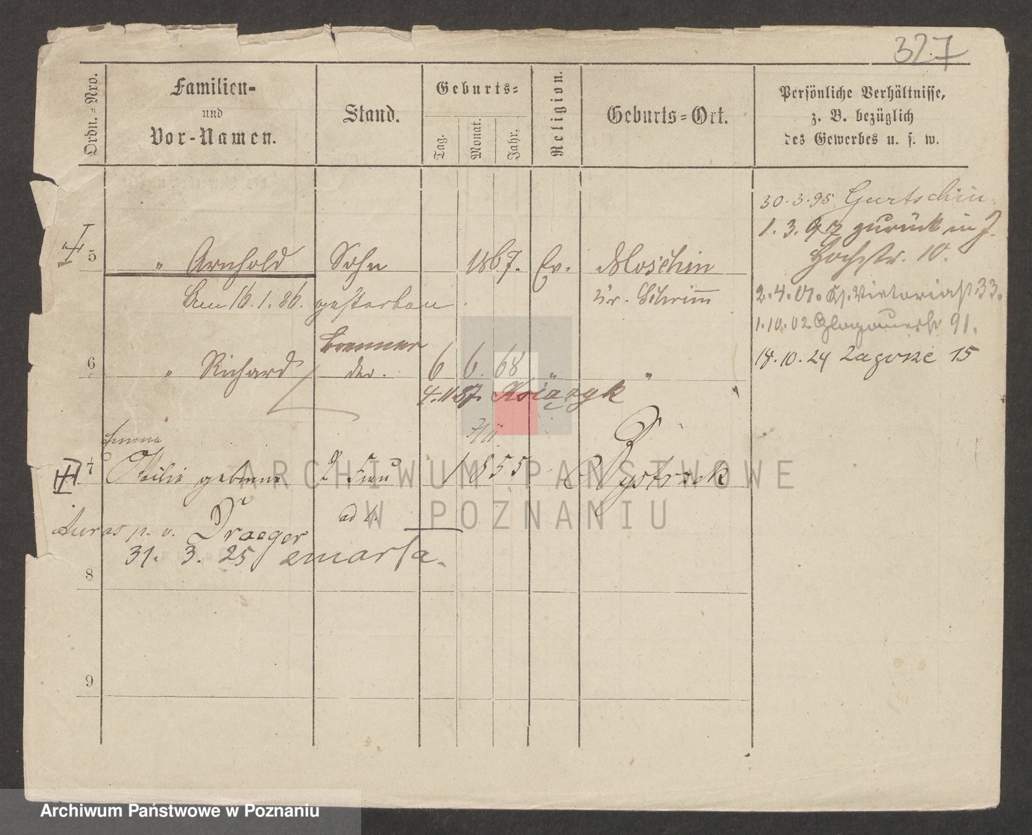 Podgląd karty osobowej dostępny jest po kliknięciu na nazwisko lub ikonkę karty. Można dokonywać powiększenia (ikony na górze) lub przechodzić między kolejnymi skanami (strzałki po bokach).