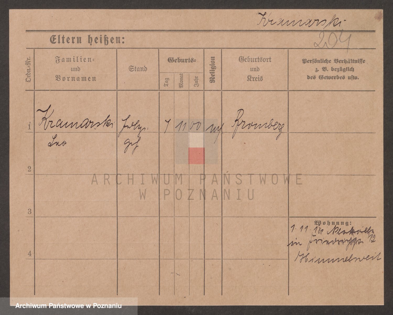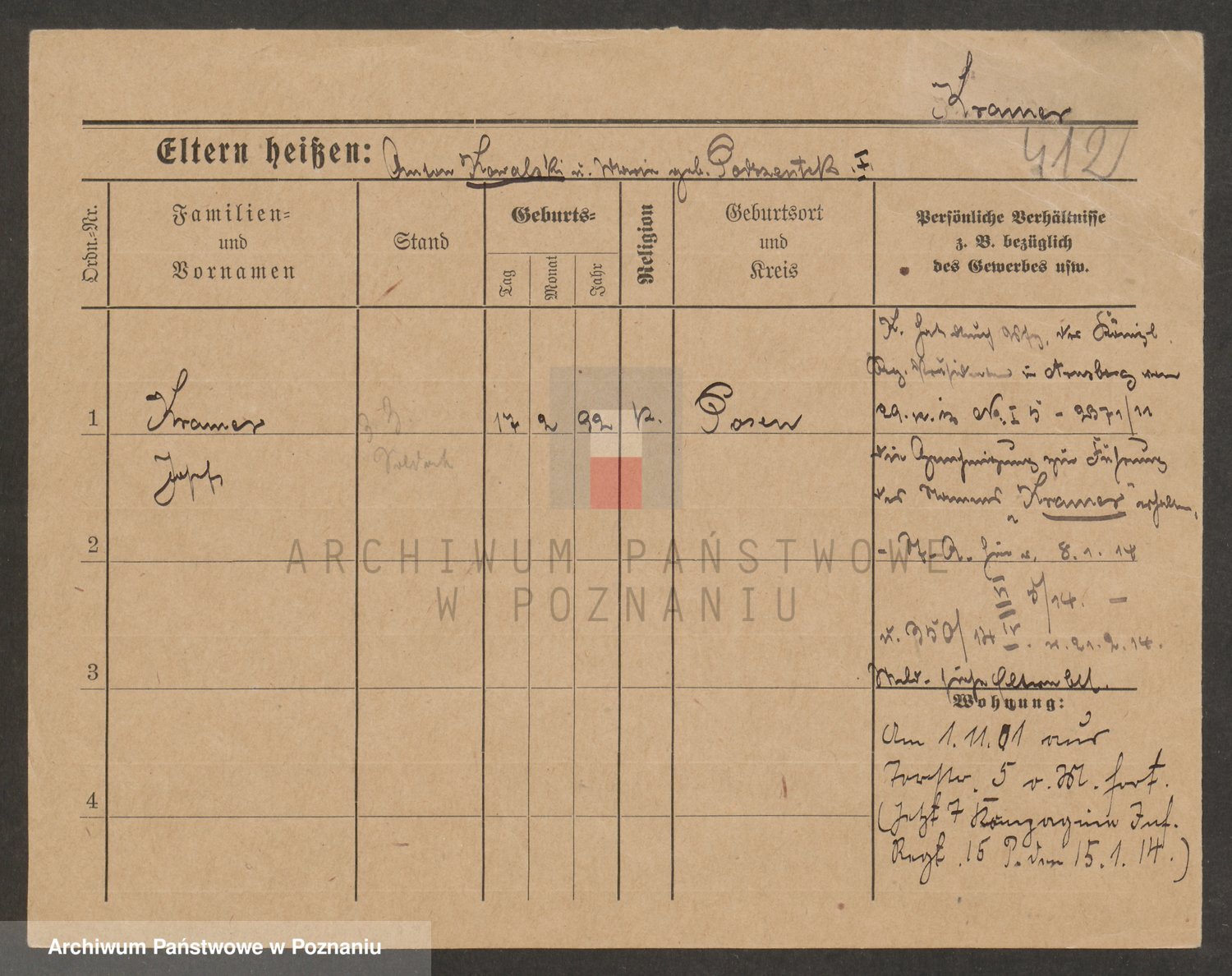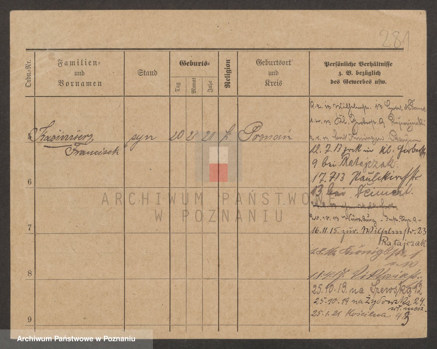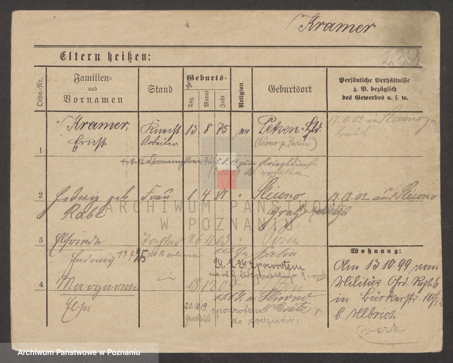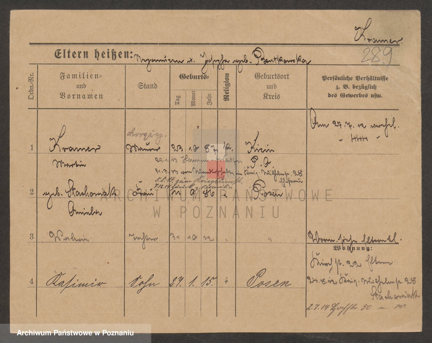 Podgląd karty osobowej dostępny jest po kliknięciu na nazwisko lub ikonkę karty. Można dokonywać powiększenia (ikony na górze) lub przechodzić między kolejnymi skanami (strzałki po bokach).