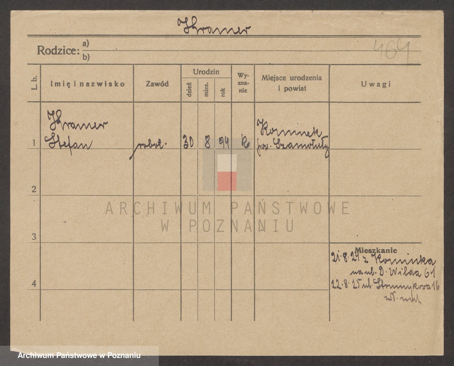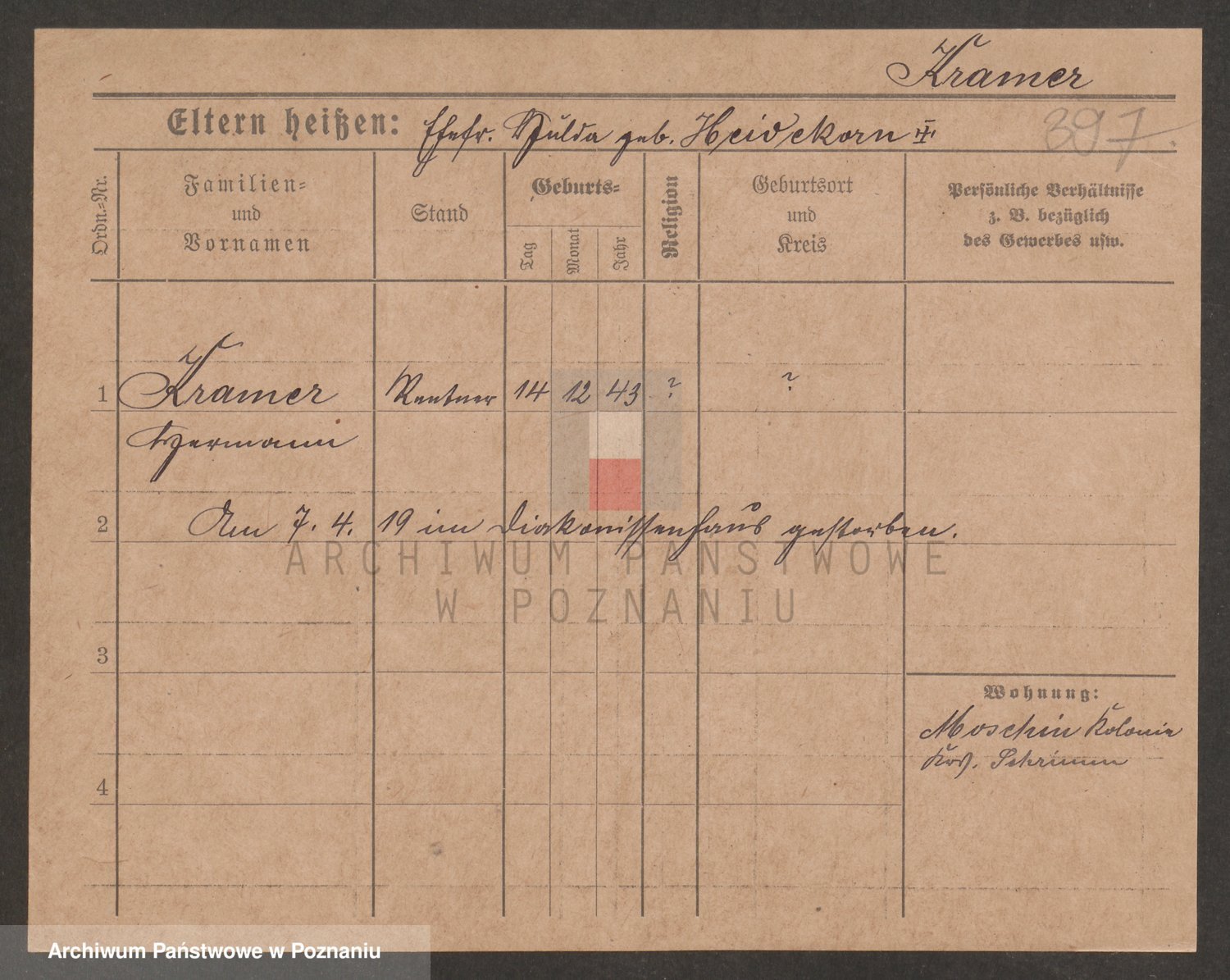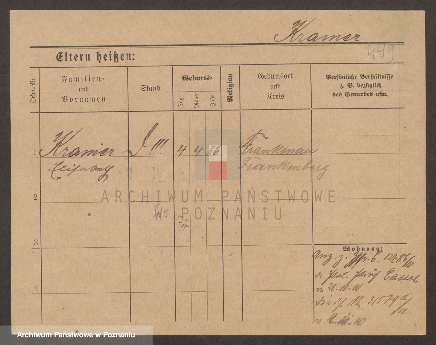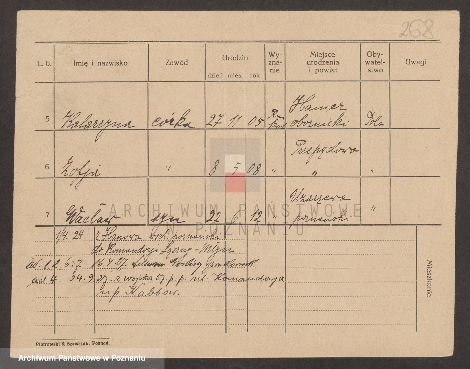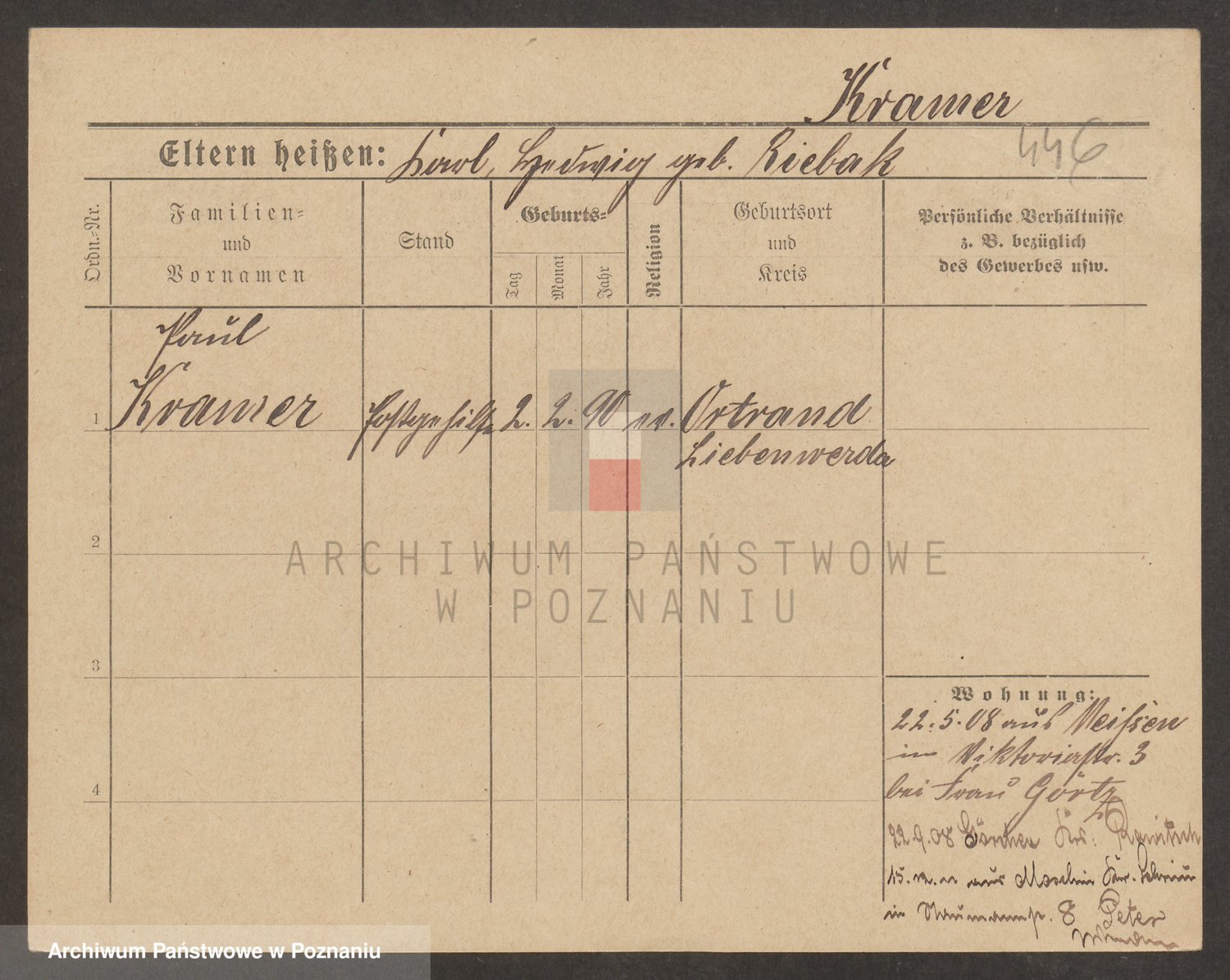 Podgląd karty osobowej dostępny jest po kliknięciu na nazwisko lub ikonkę karty. Można dokonywać powiększenia (ikony na górze) lub przechodzić między kolejnymi skanami (strzałki po bokach).