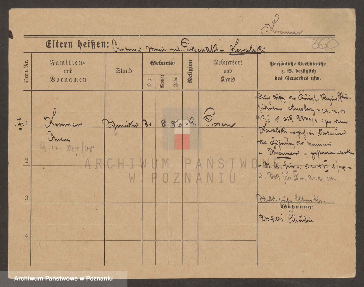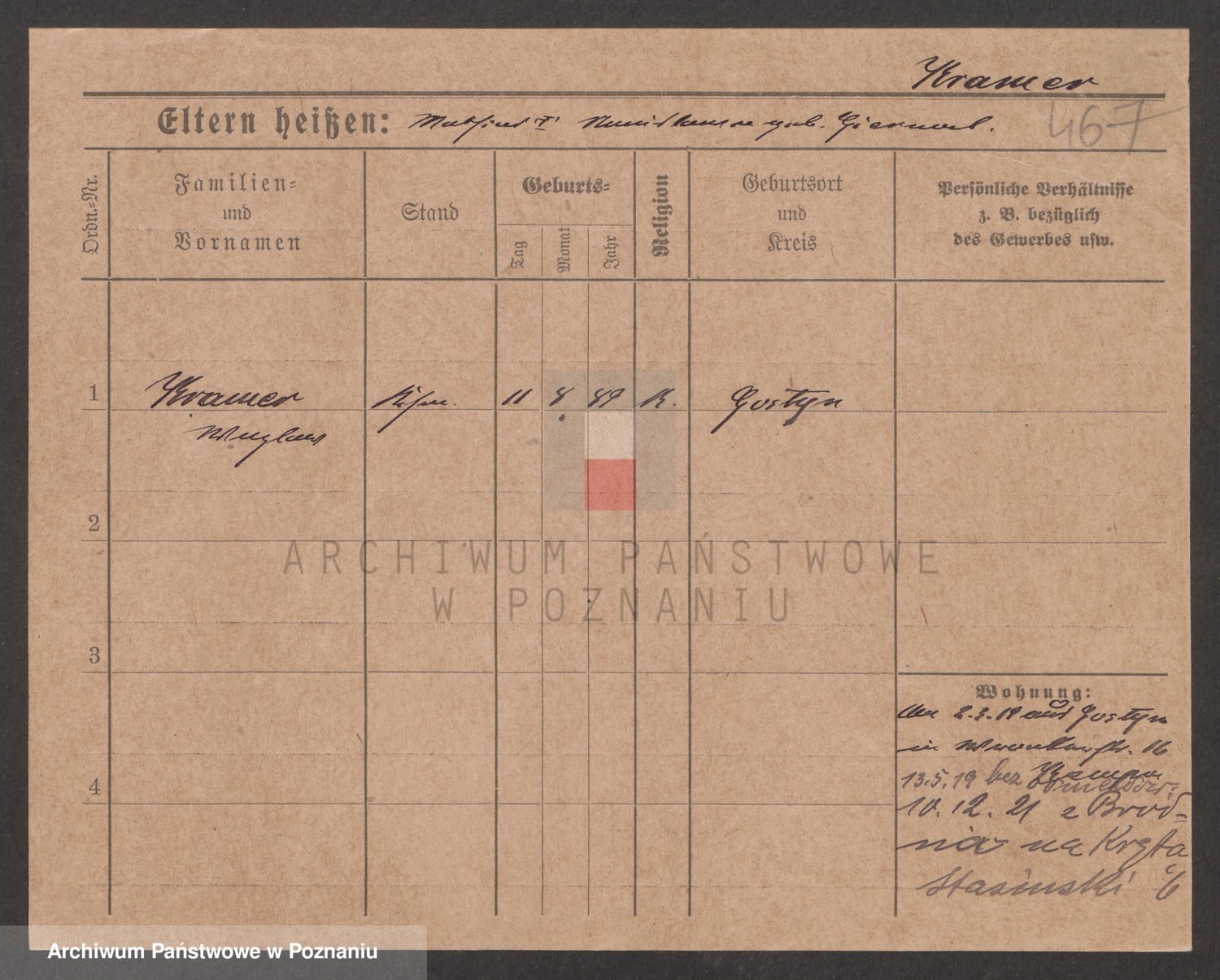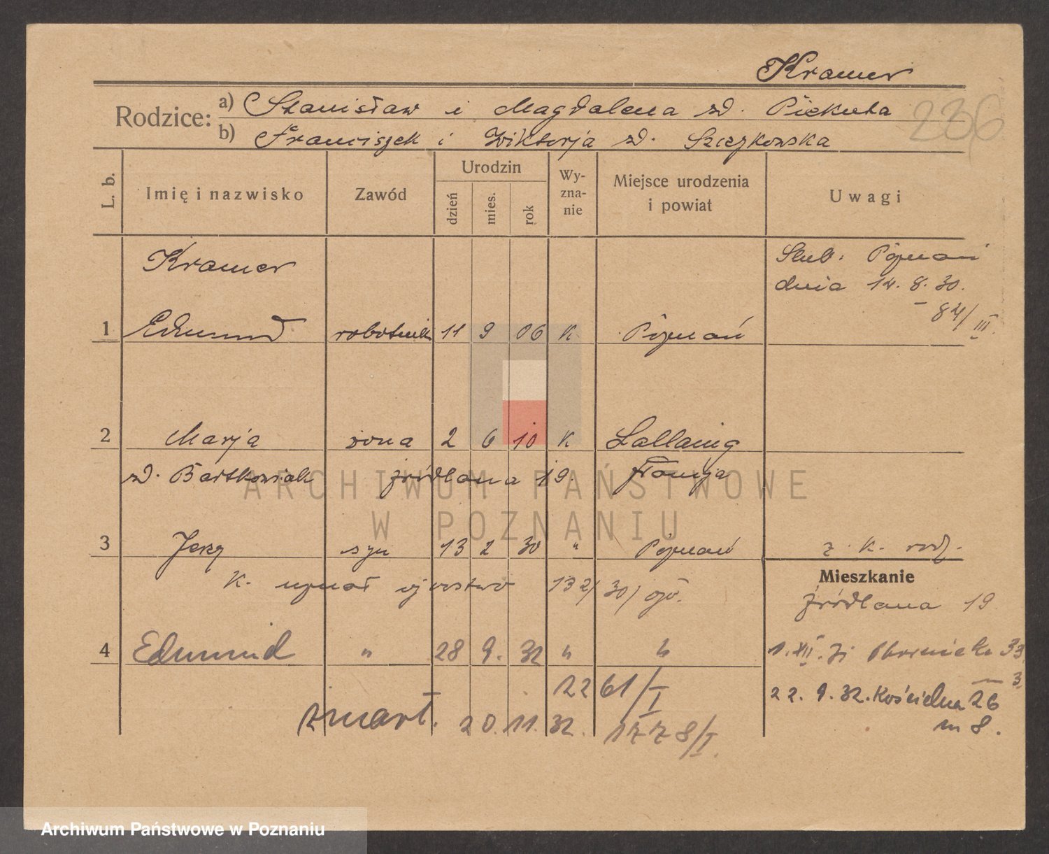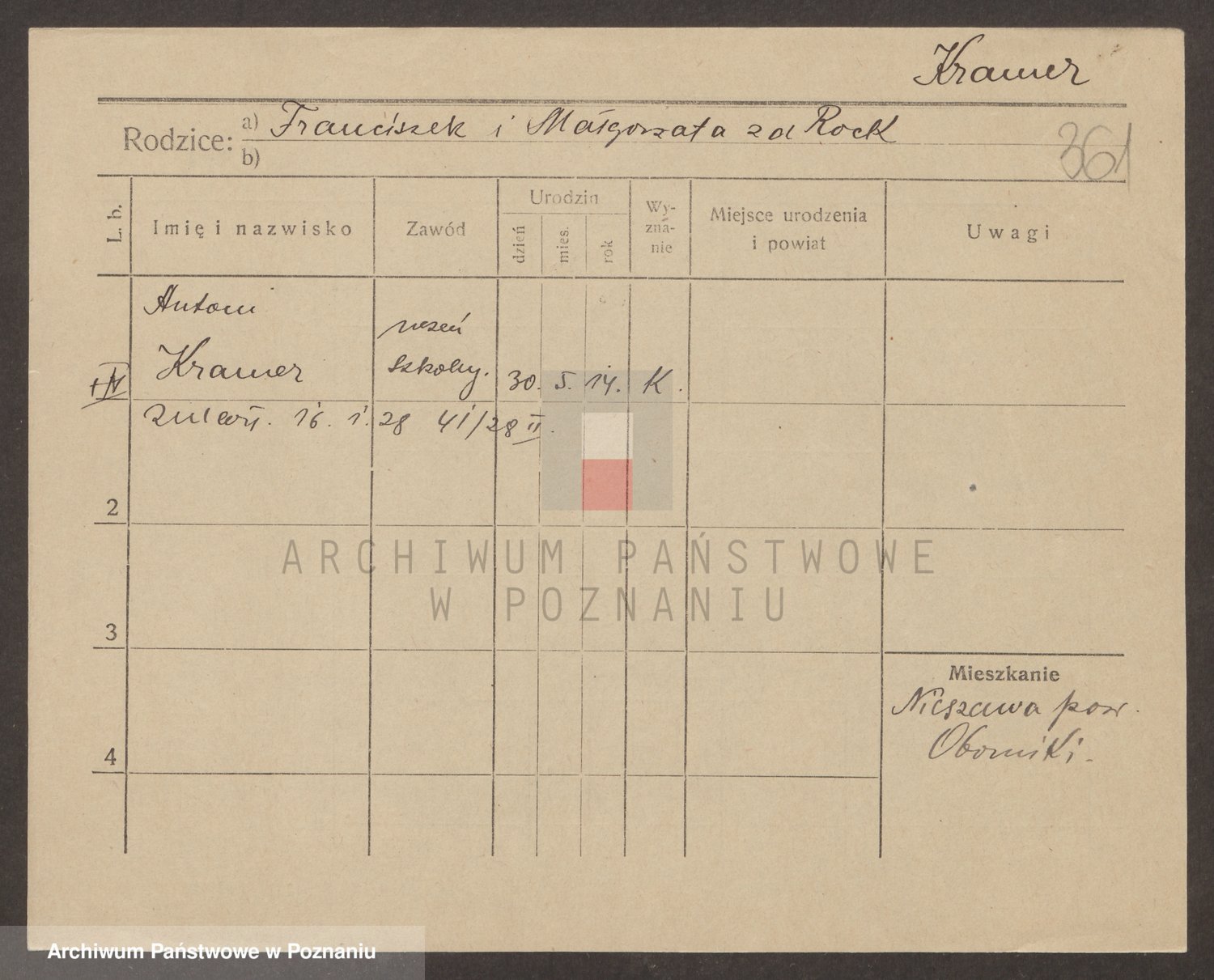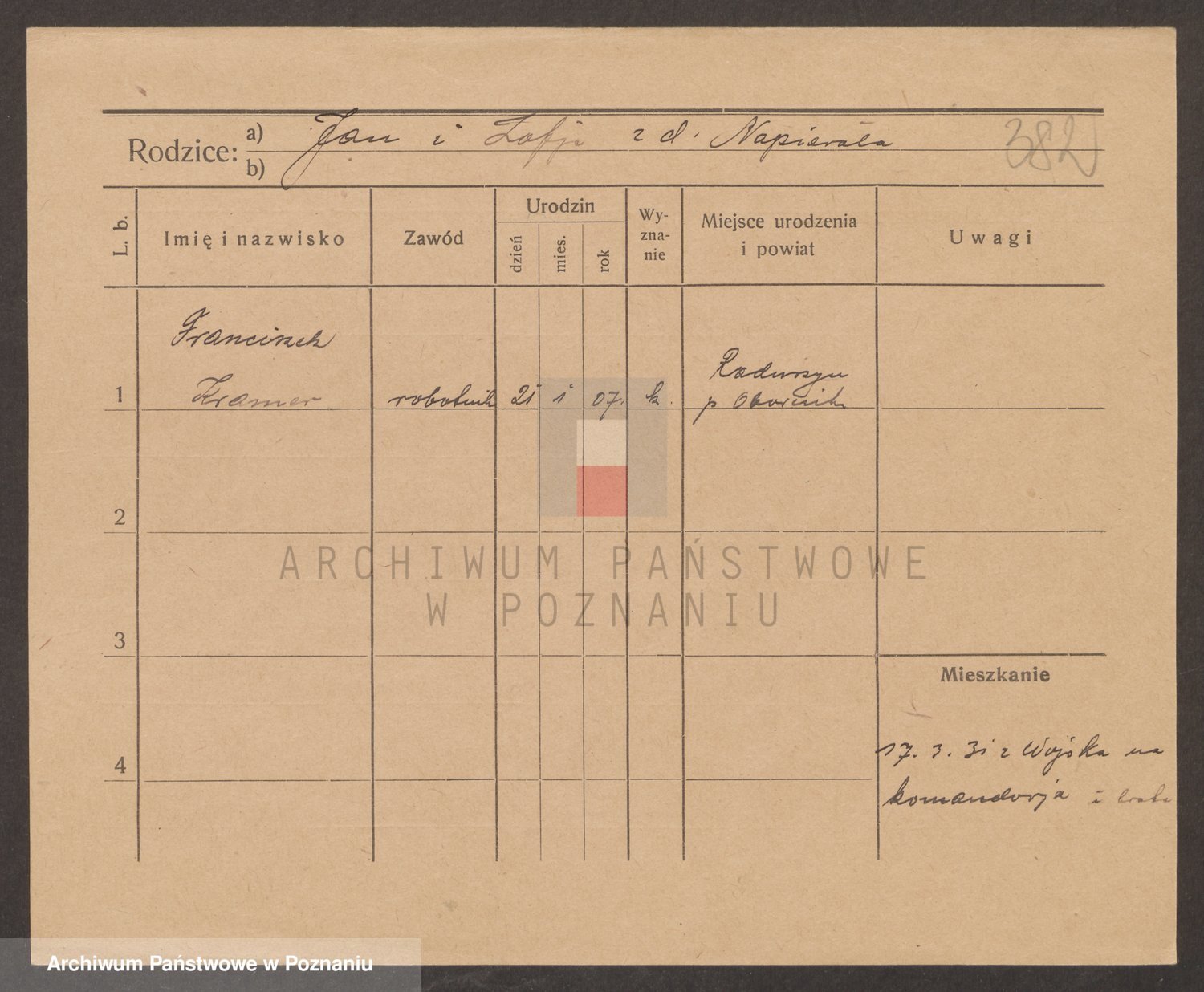 Podgląd karty osobowej dostępny jest po kliknięciu na nazwisko lub ikonkę karty. Można dokonywać powiększenia (ikony na górze) lub przechodzić między kolejnymi skanami (strzałki po bokach).