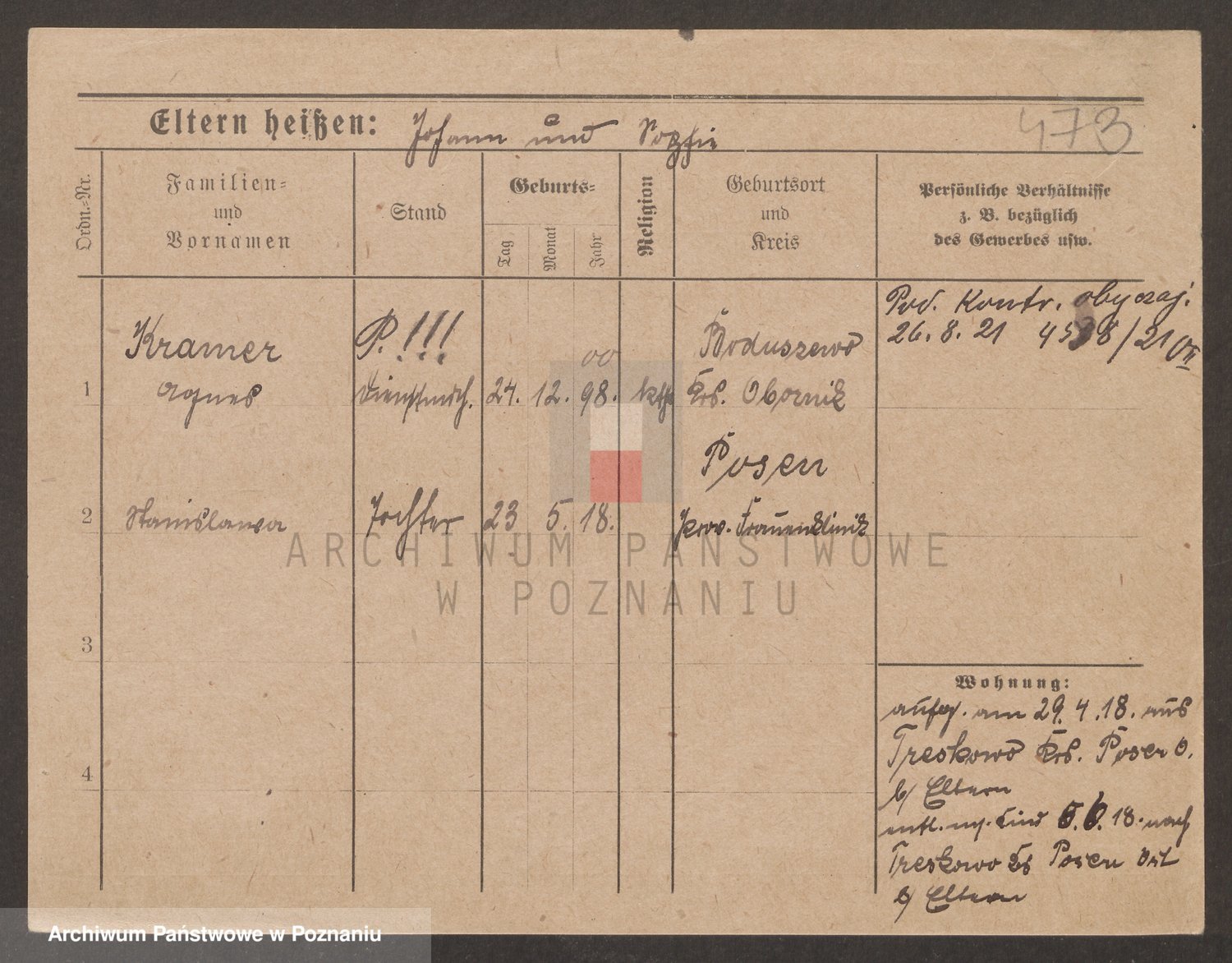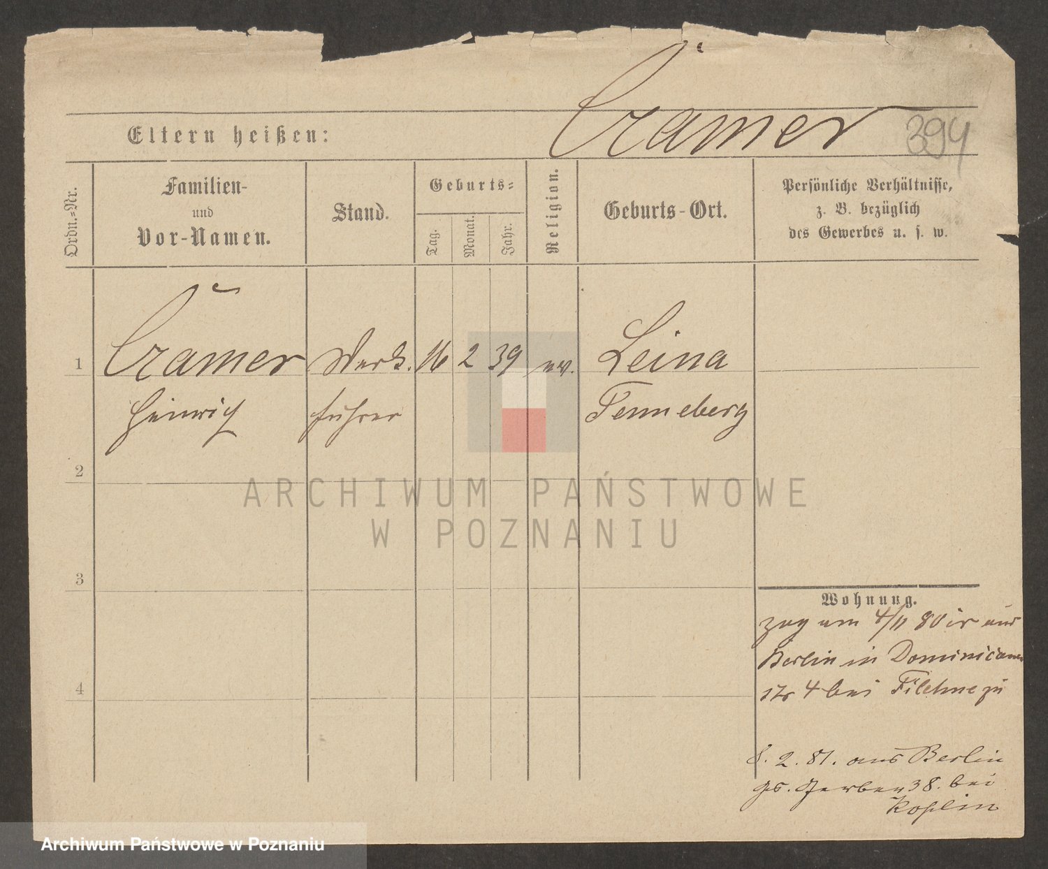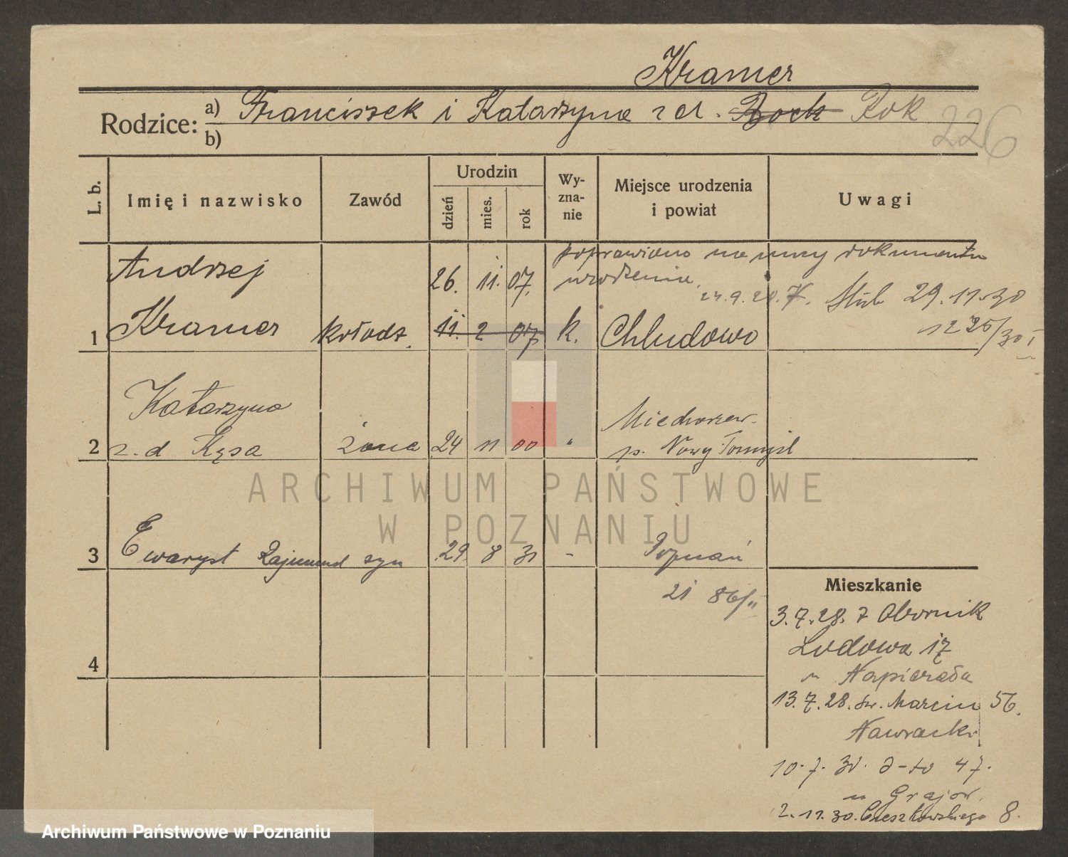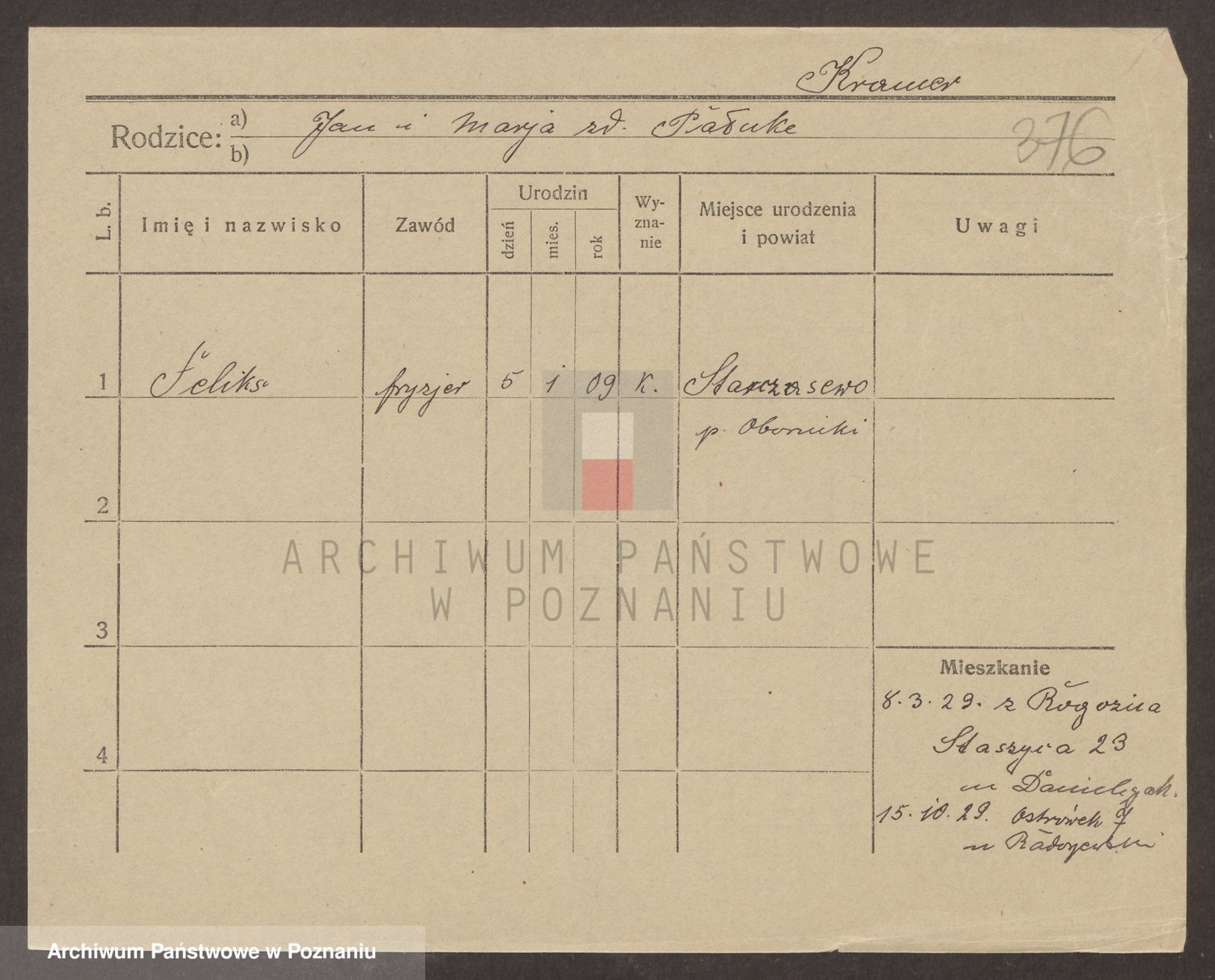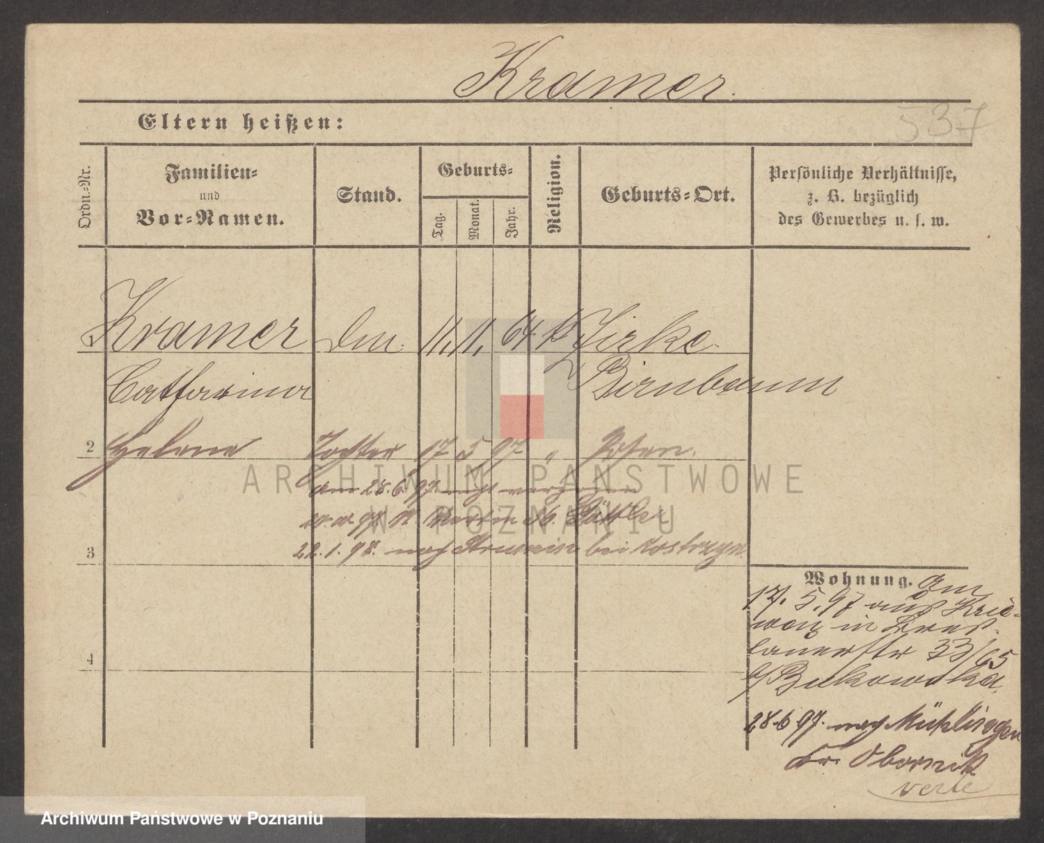 Podgląd karty osobowej dostępny jest po kliknięciu na nazwisko lub ikonkę karty. Można dokonywać powiększenia (ikony na górze) lub przechodzić między kolejnymi skanami (strzałki po bokach).