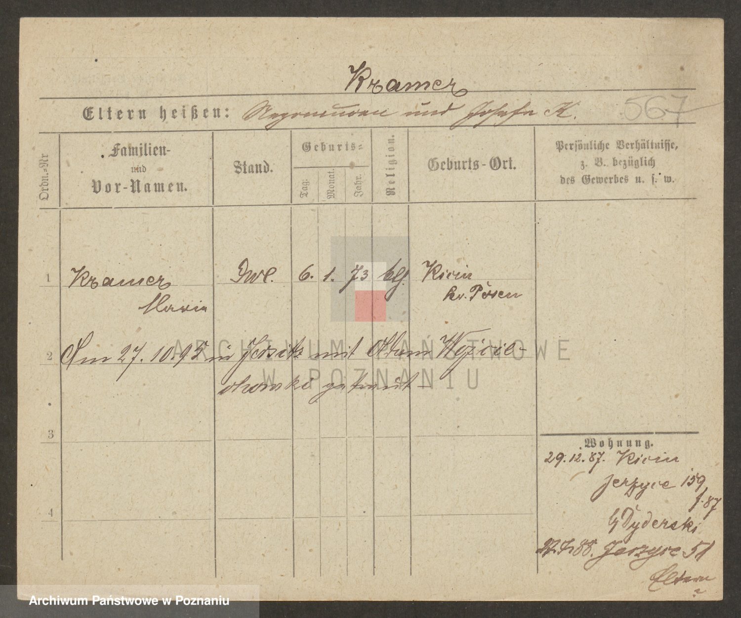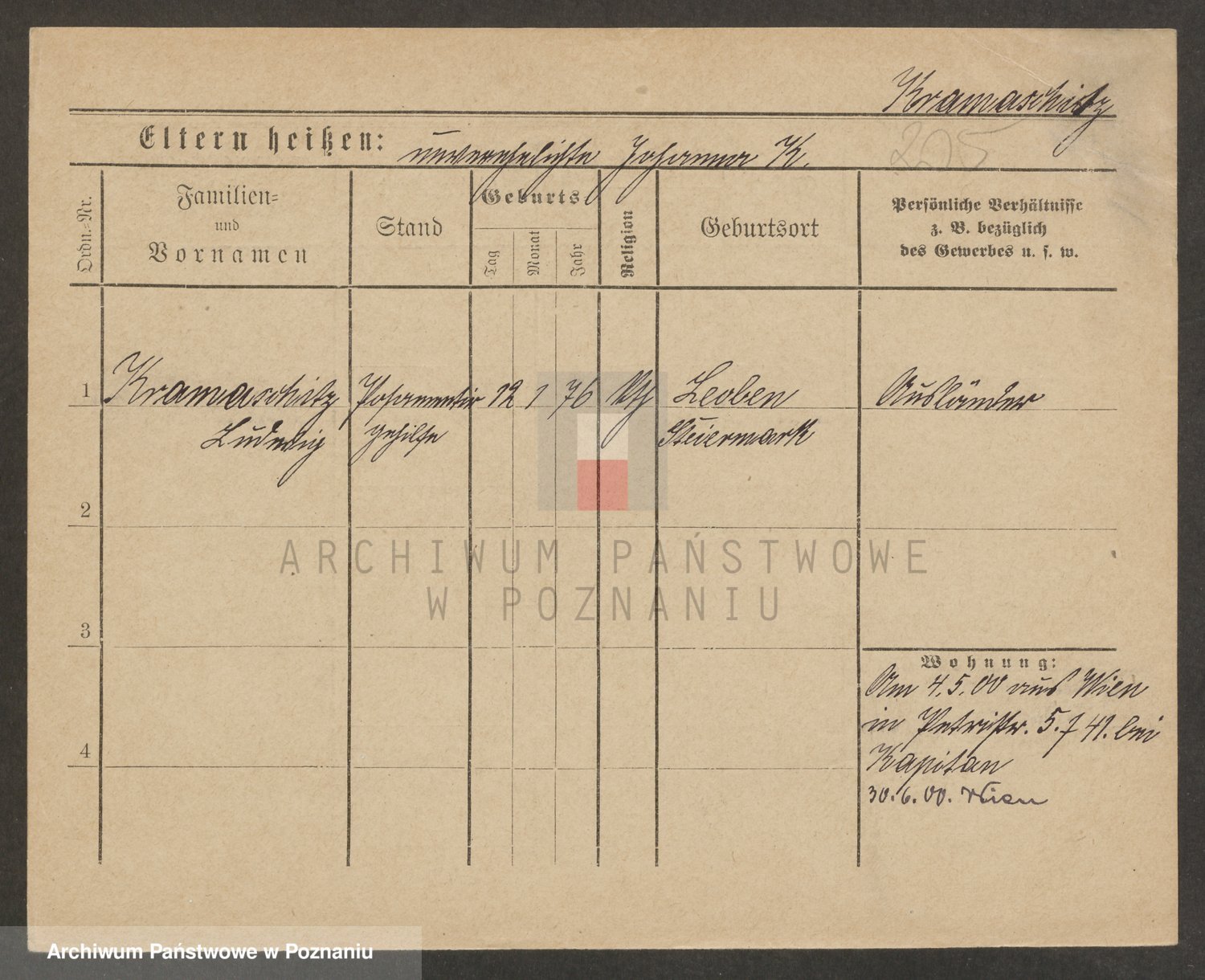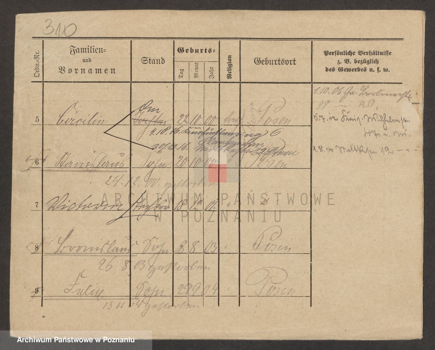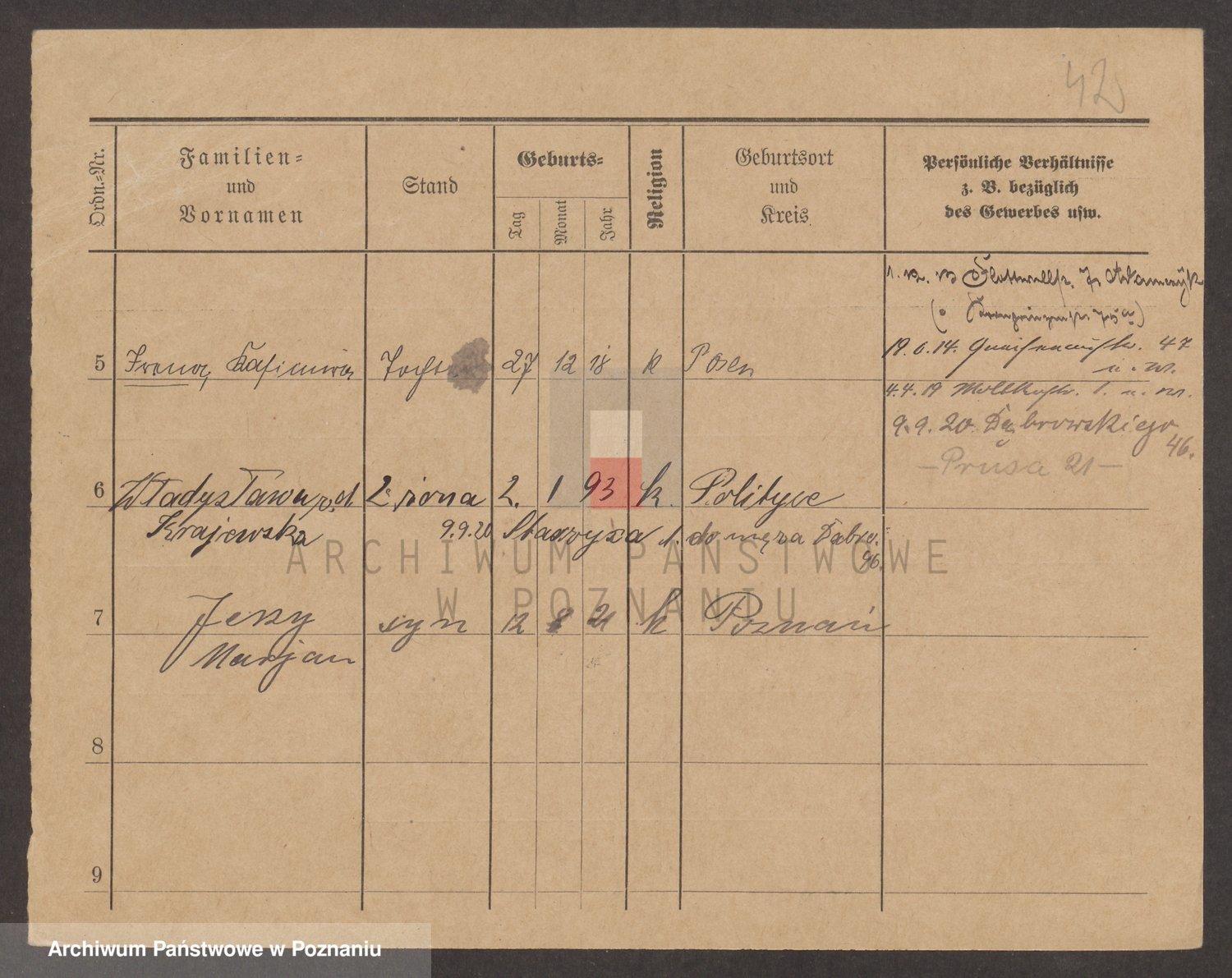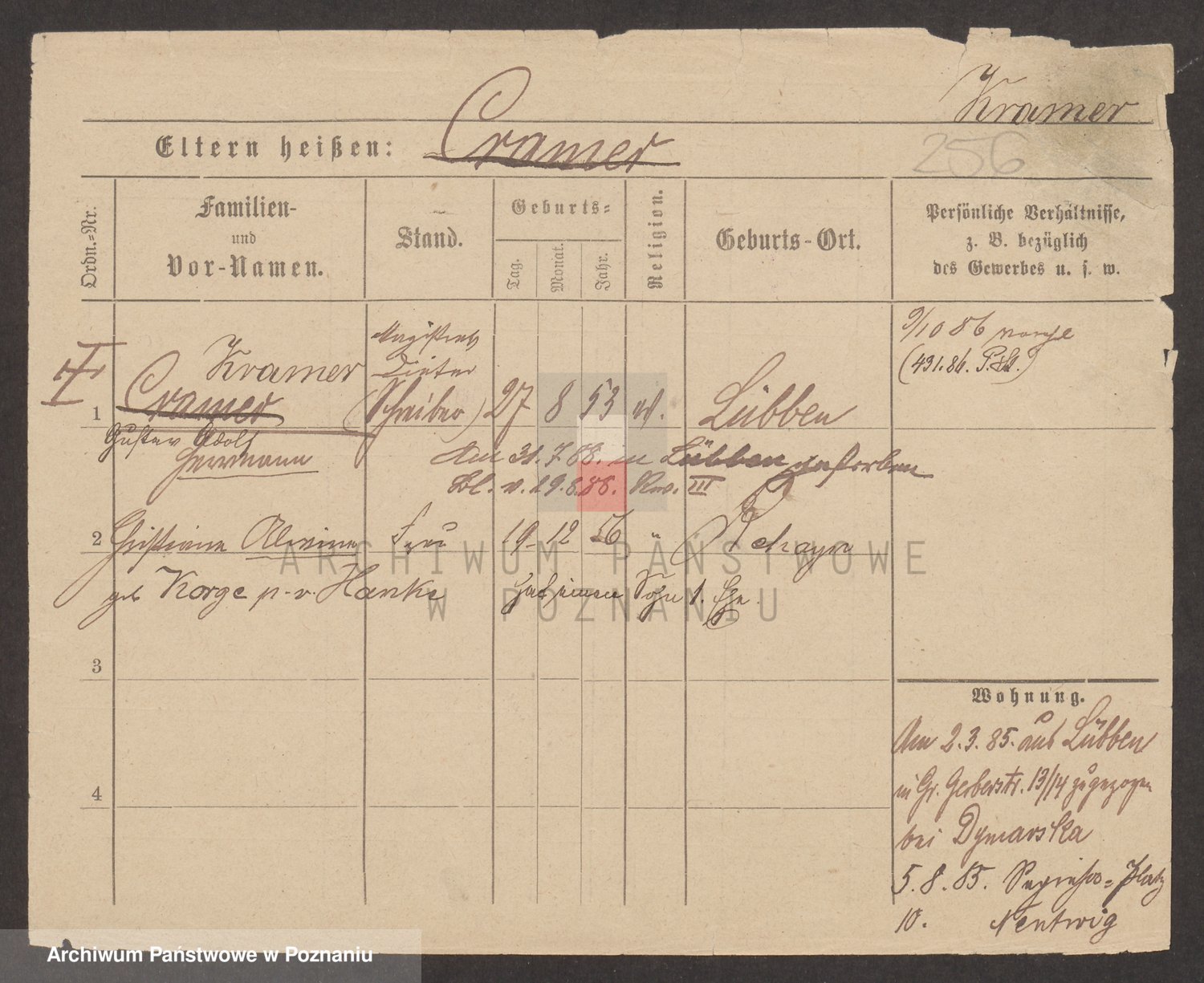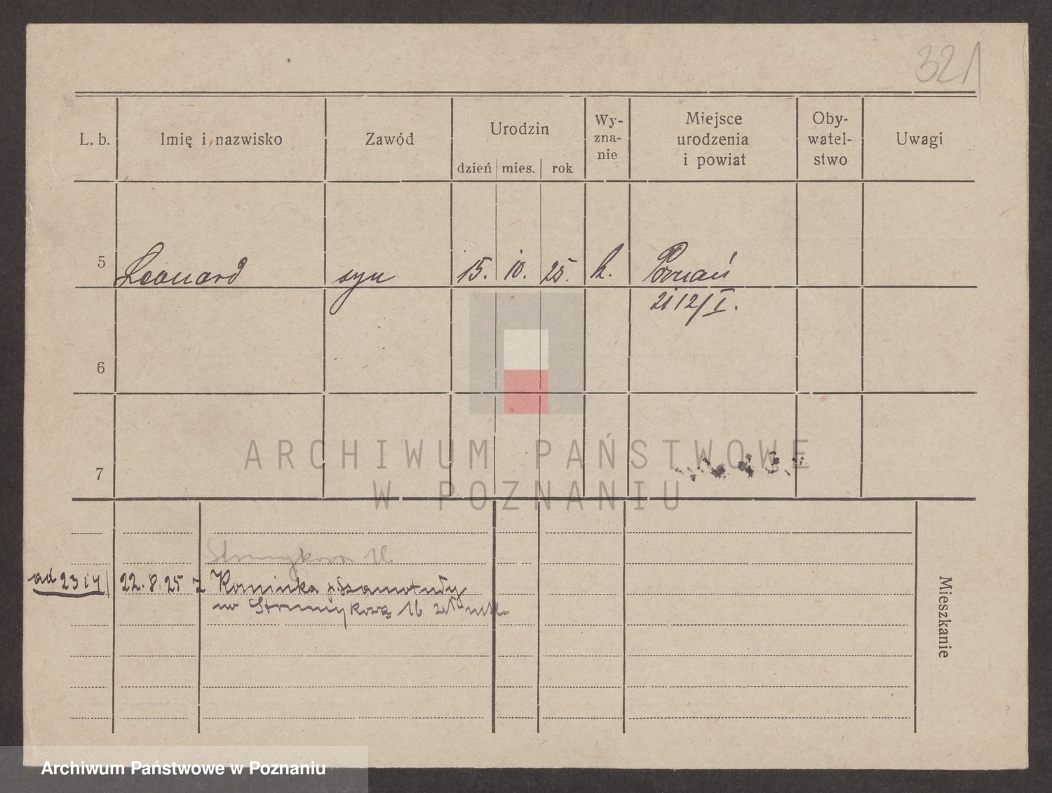 Podgląd karty osobowej dostępny jest po kliknięciu na nazwisko lub ikonkę karty. Można dokonywać powiększenia (ikony na górze) lub przechodzić między kolejnymi skanami (strzałki po bokach).