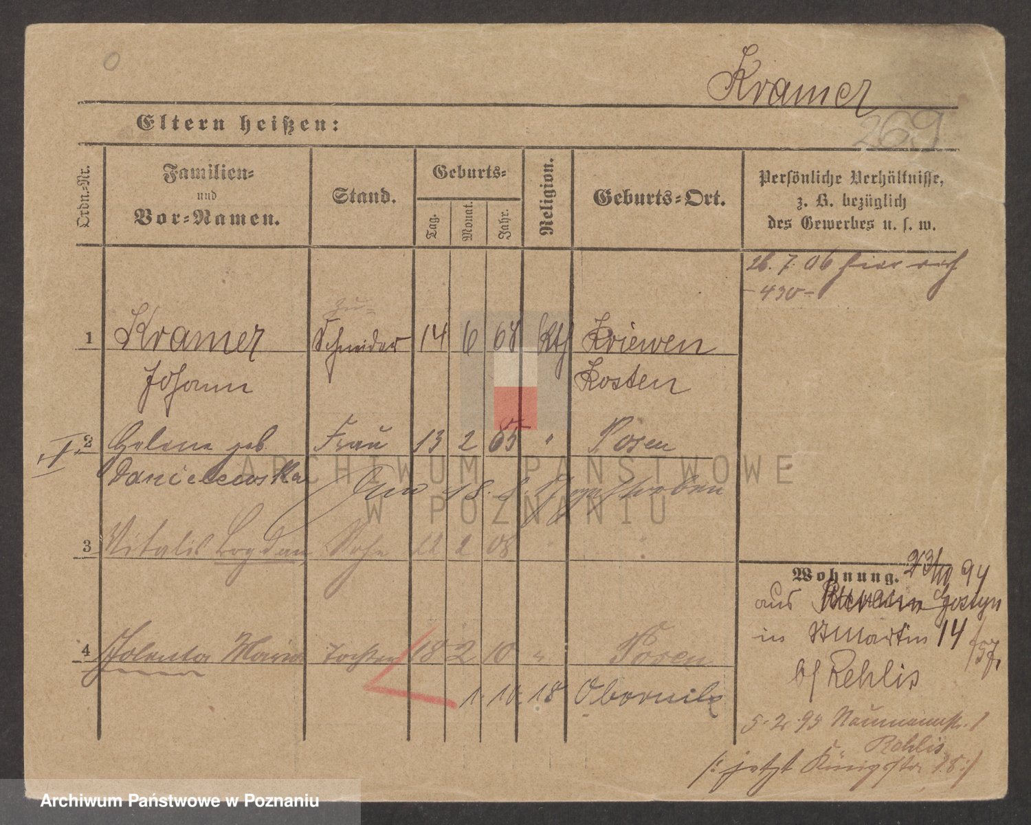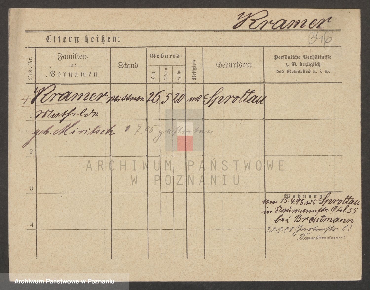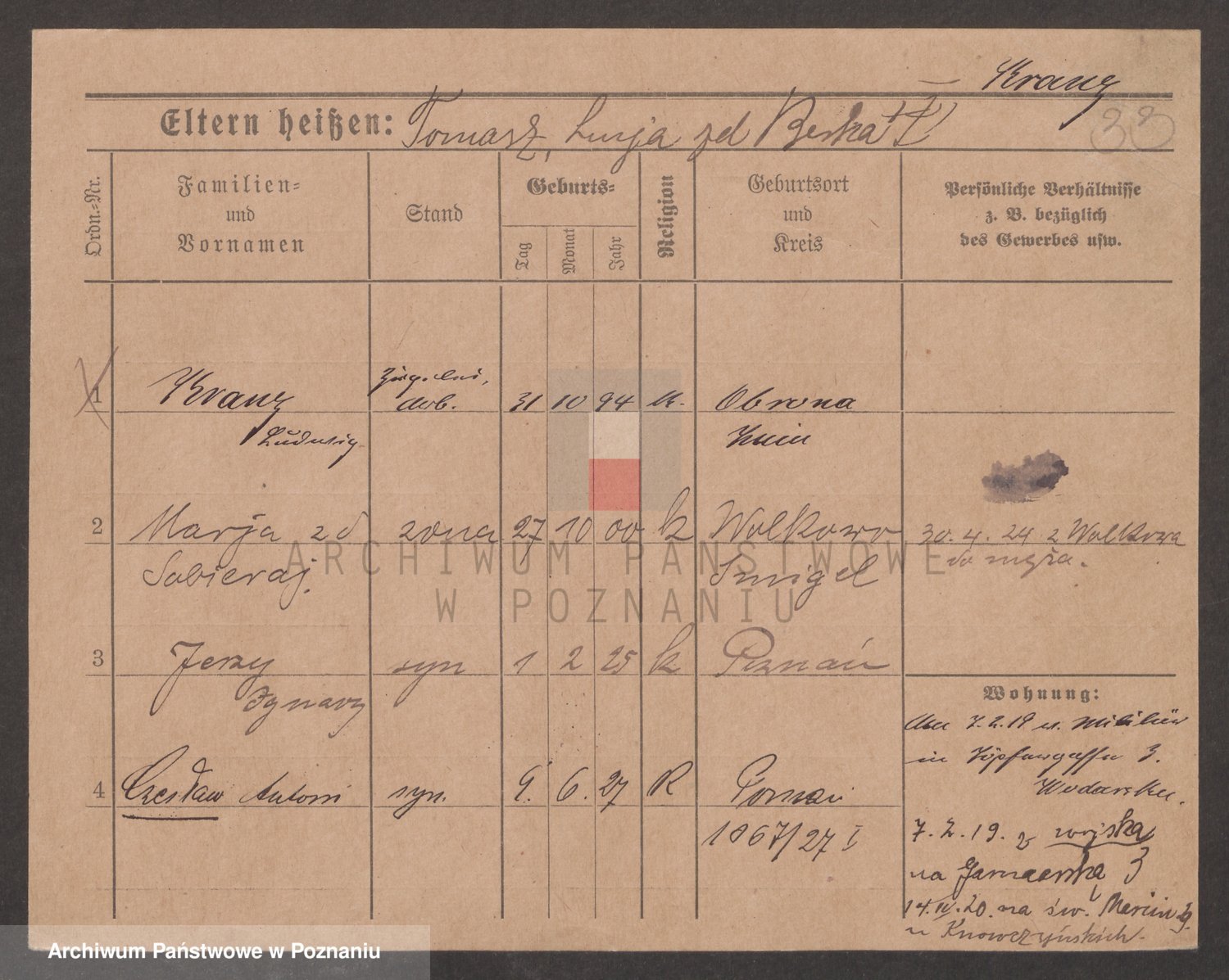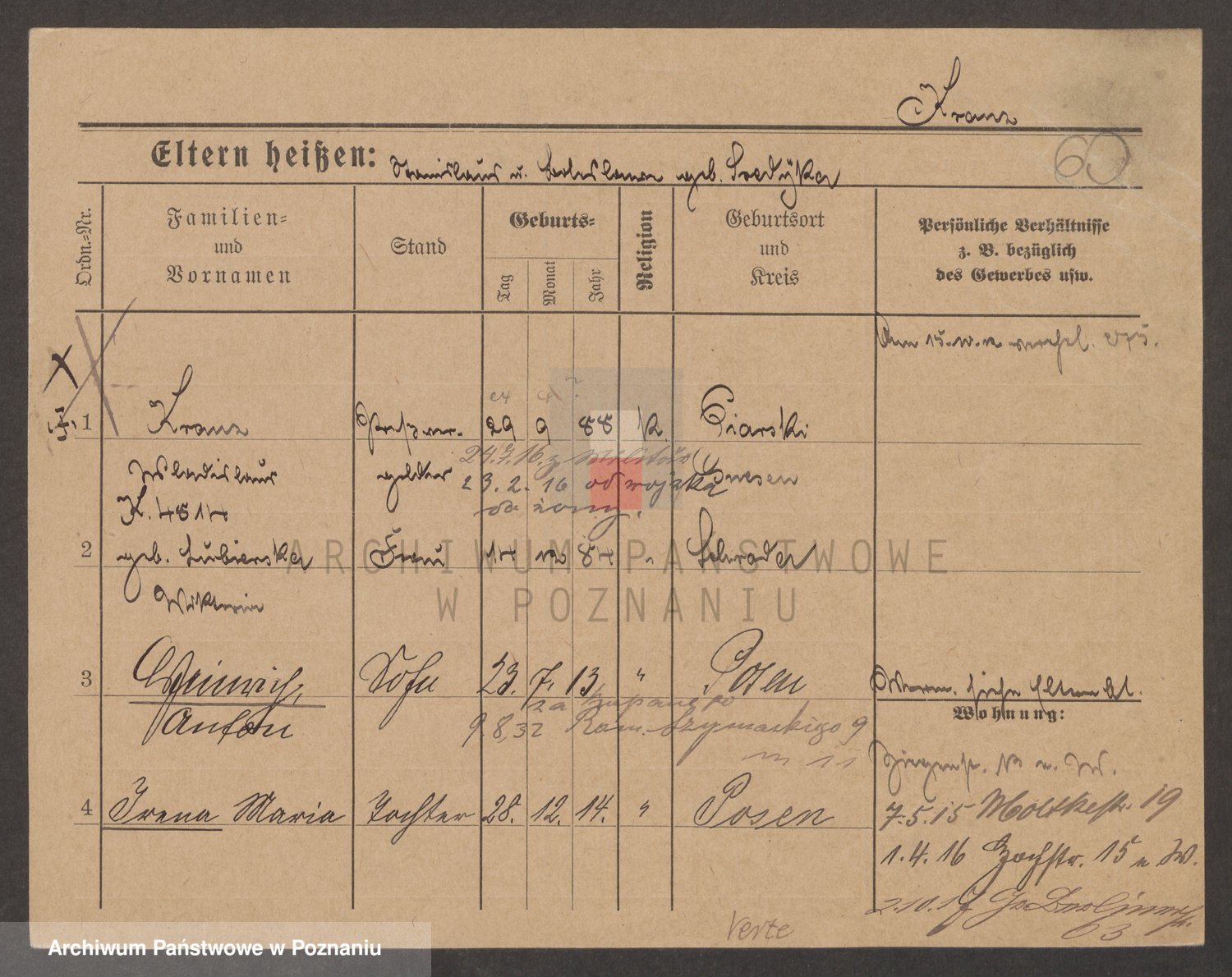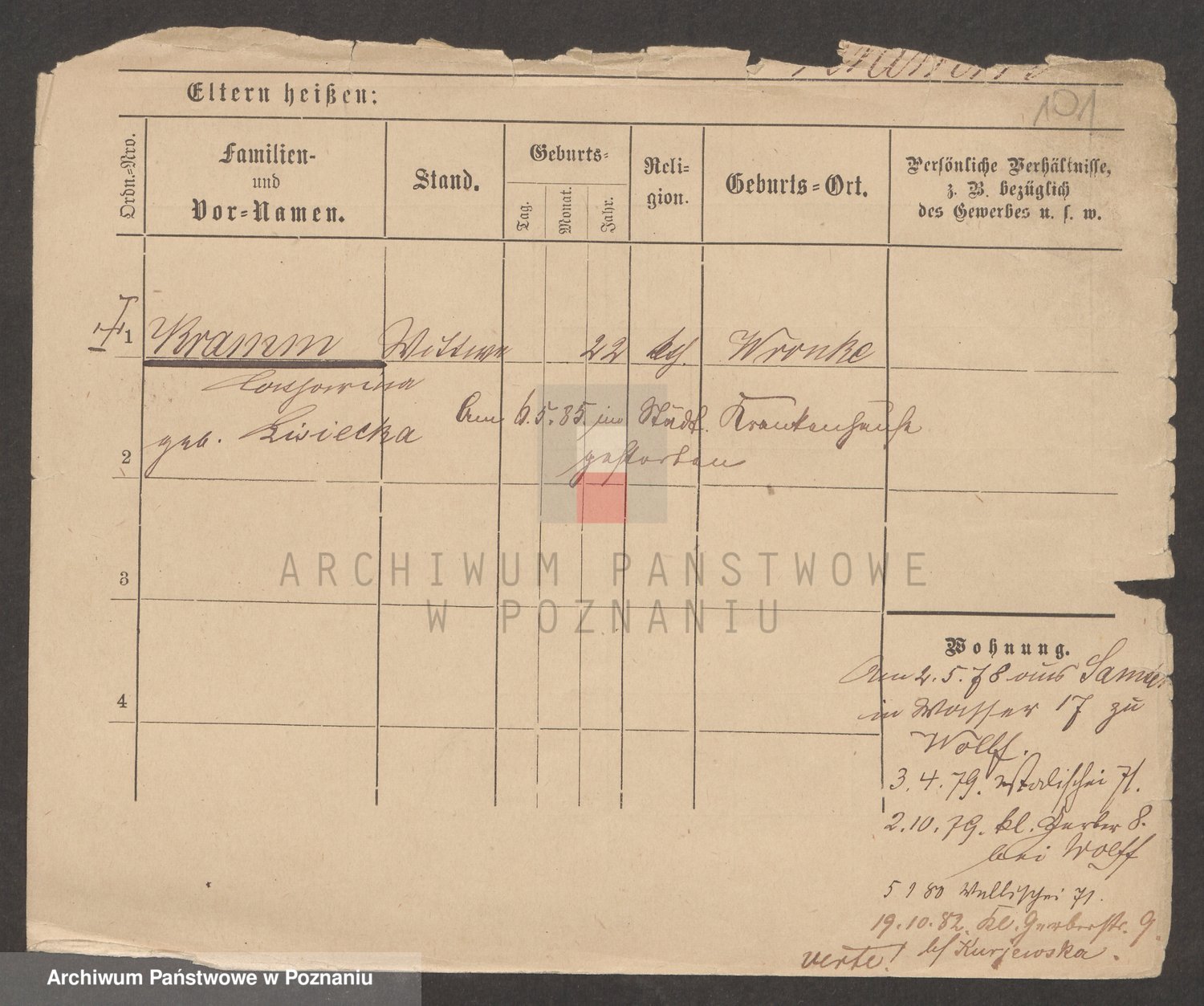 Podgląd karty osobowej dostępny jest po kliknięciu na nazwisko lub ikonkę karty. Można dokonywać powiększenia (ikony na górze) lub przechodzić między kolejnymi skanami (strzałki po bokach).