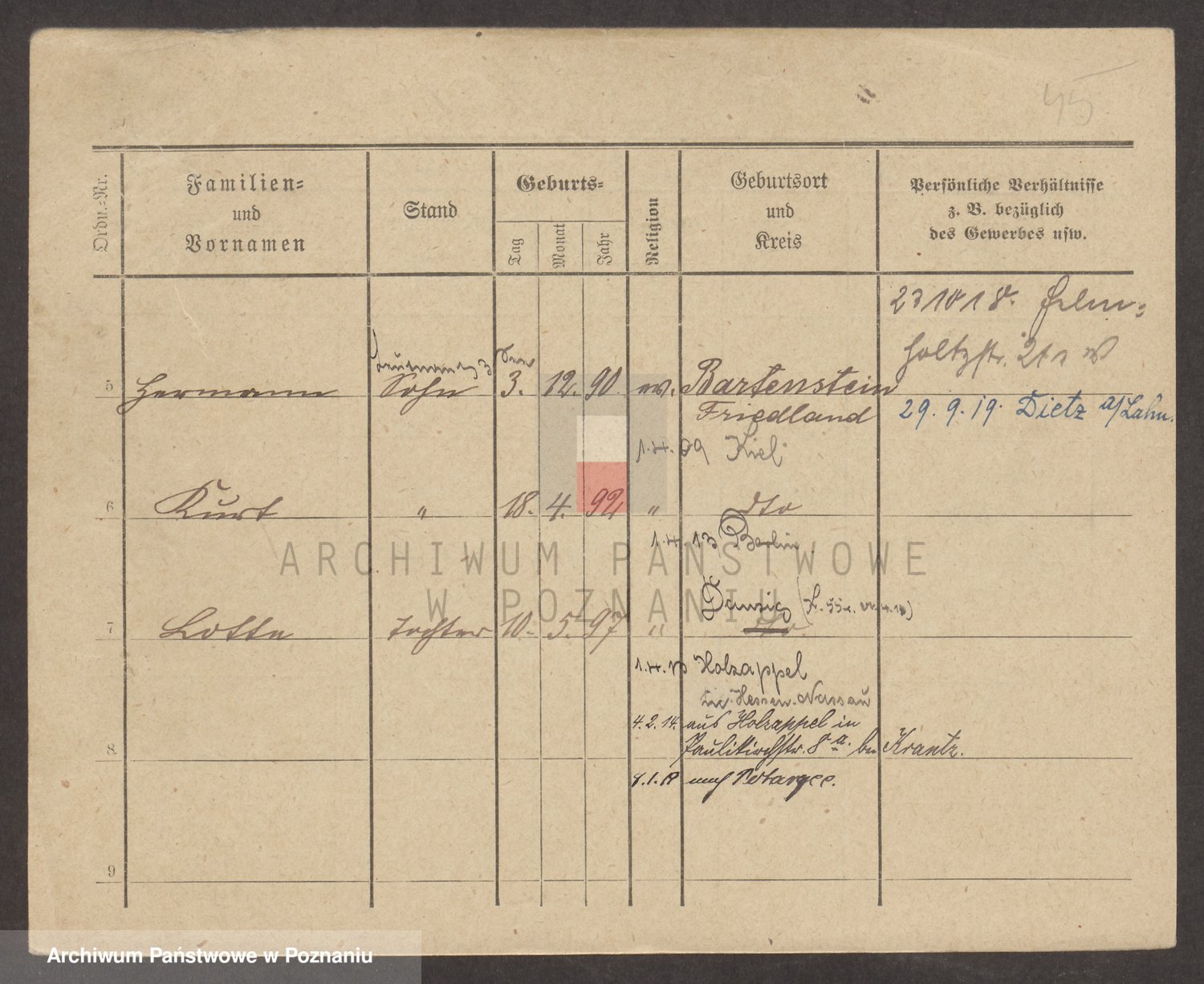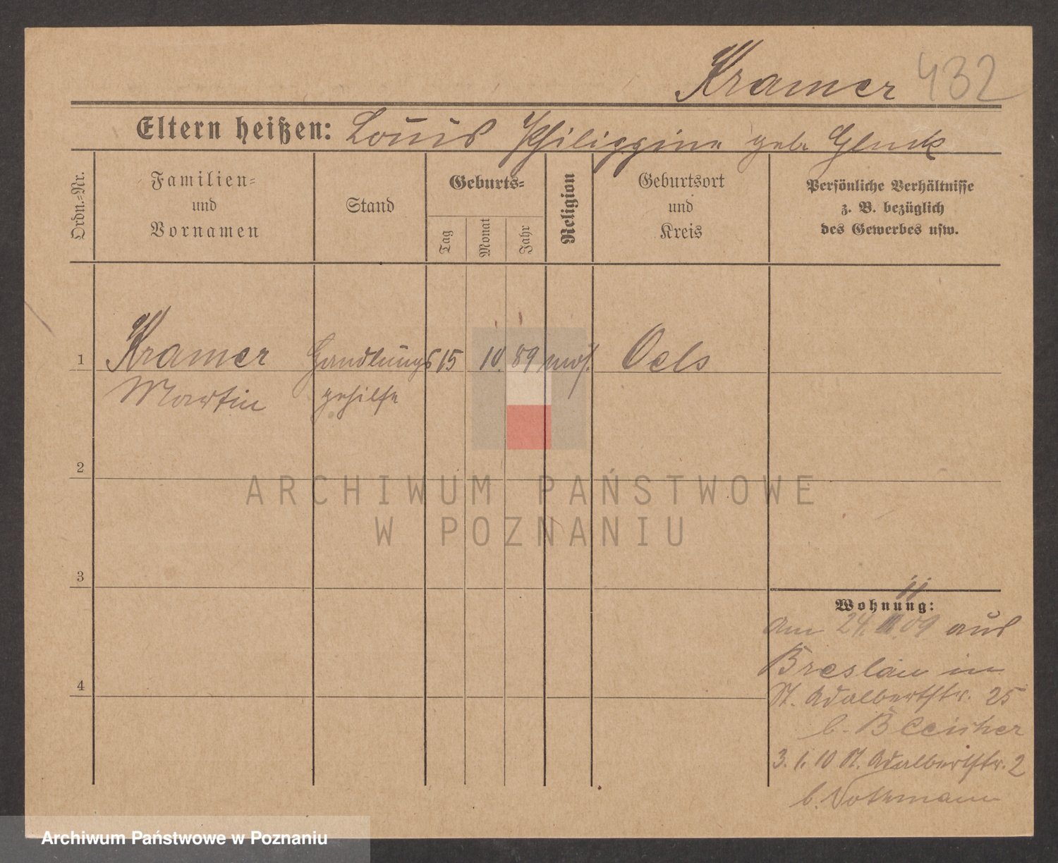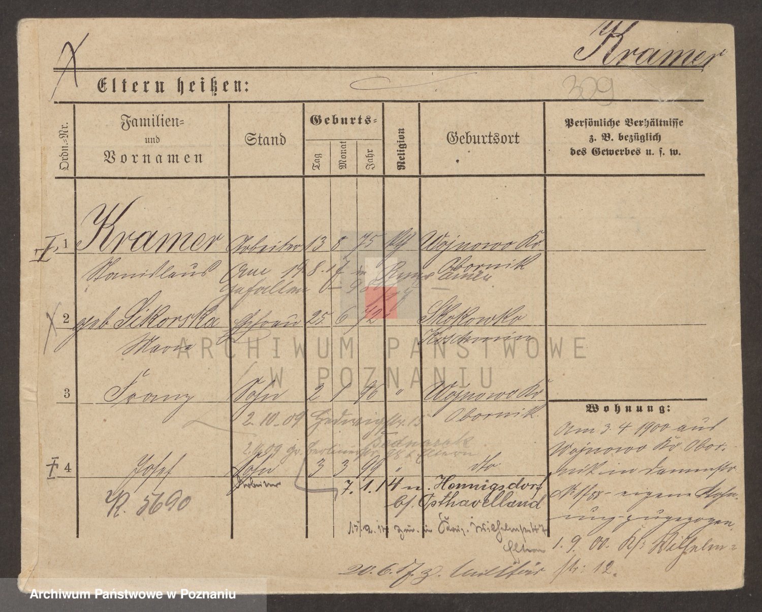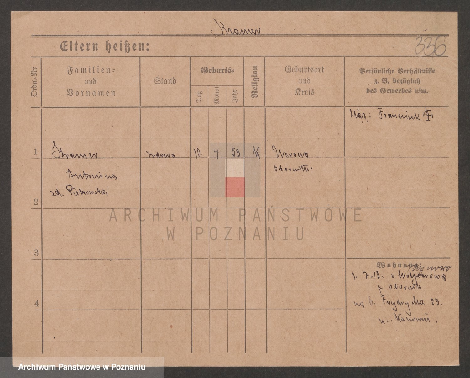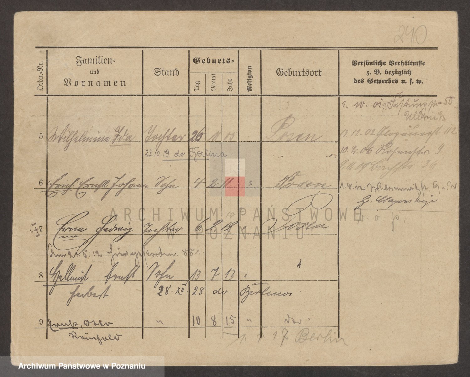 Podgląd karty osobowej dostępny jest po kliknięciu na nazwisko lub ikonkę karty. Można dokonywać powiększenia (ikony na górze) lub przechodzić między kolejnymi skanami (strzałki po bokach).